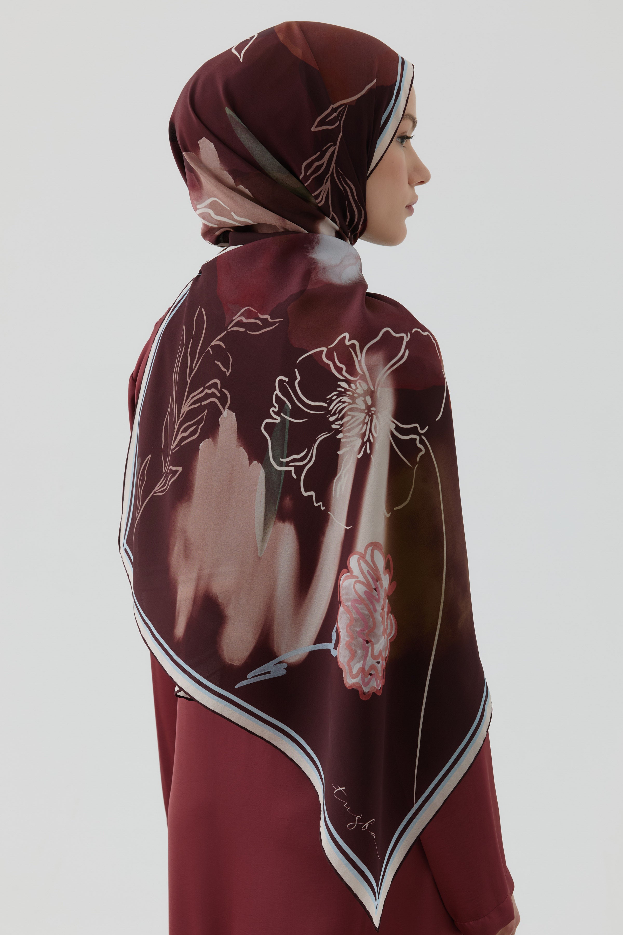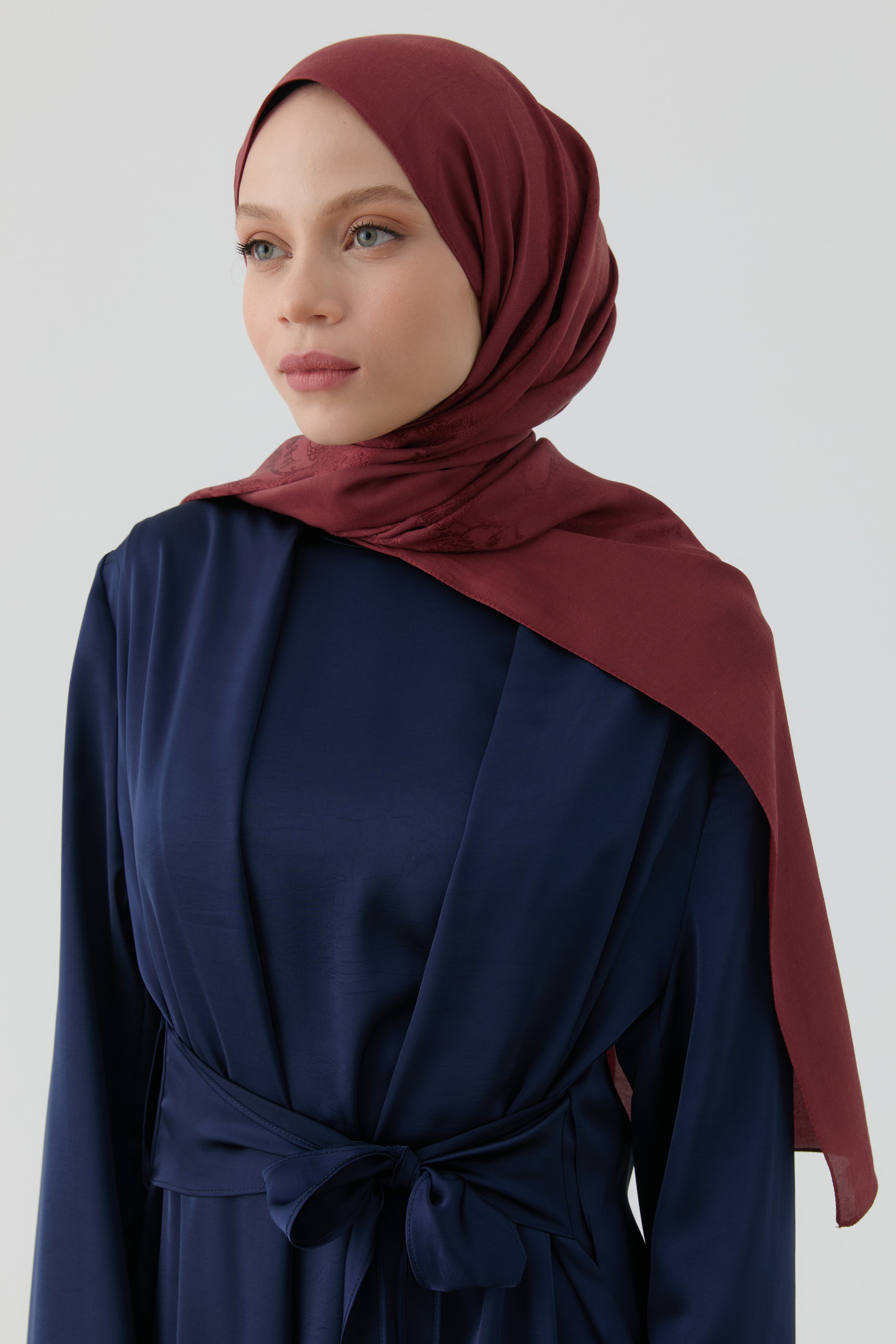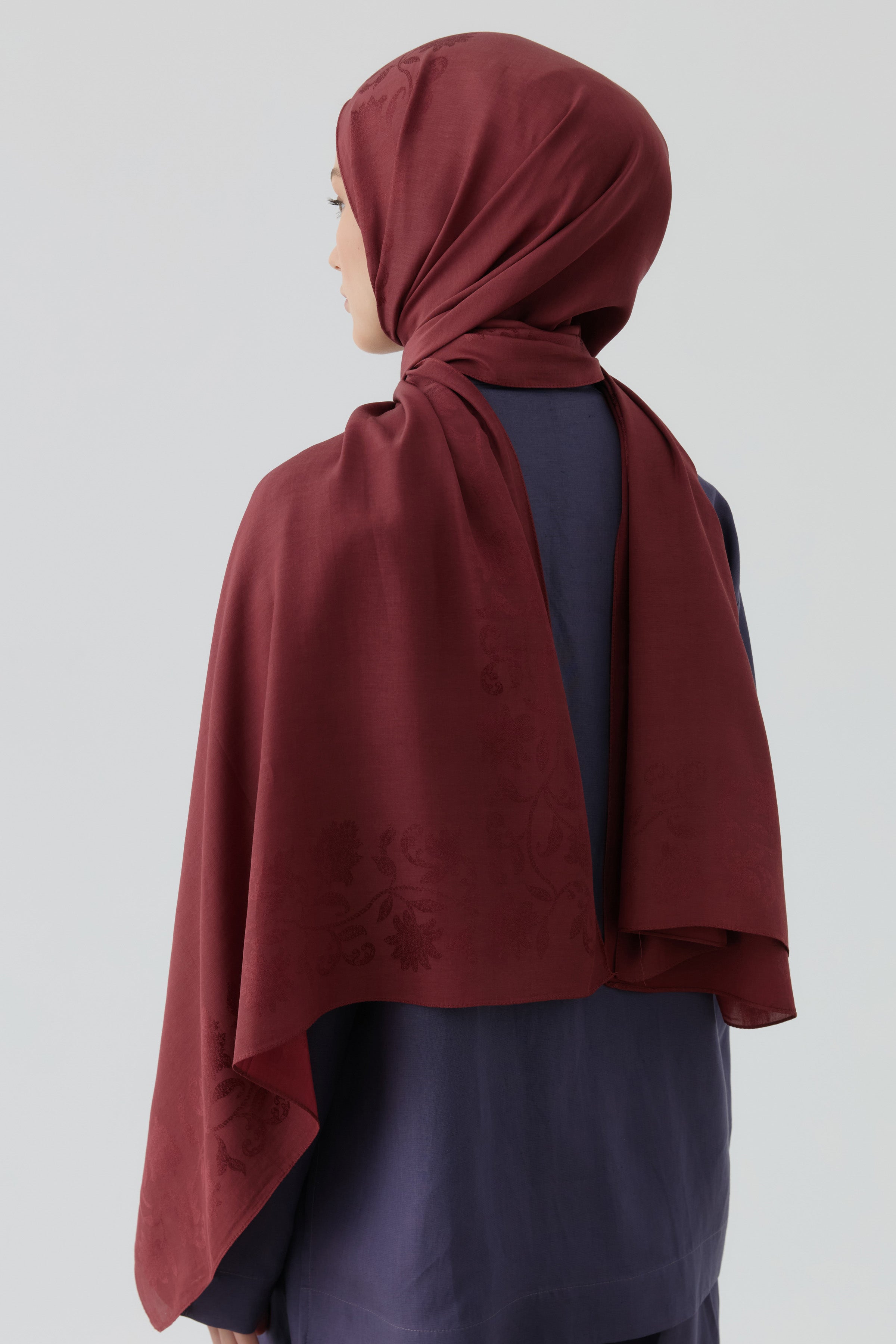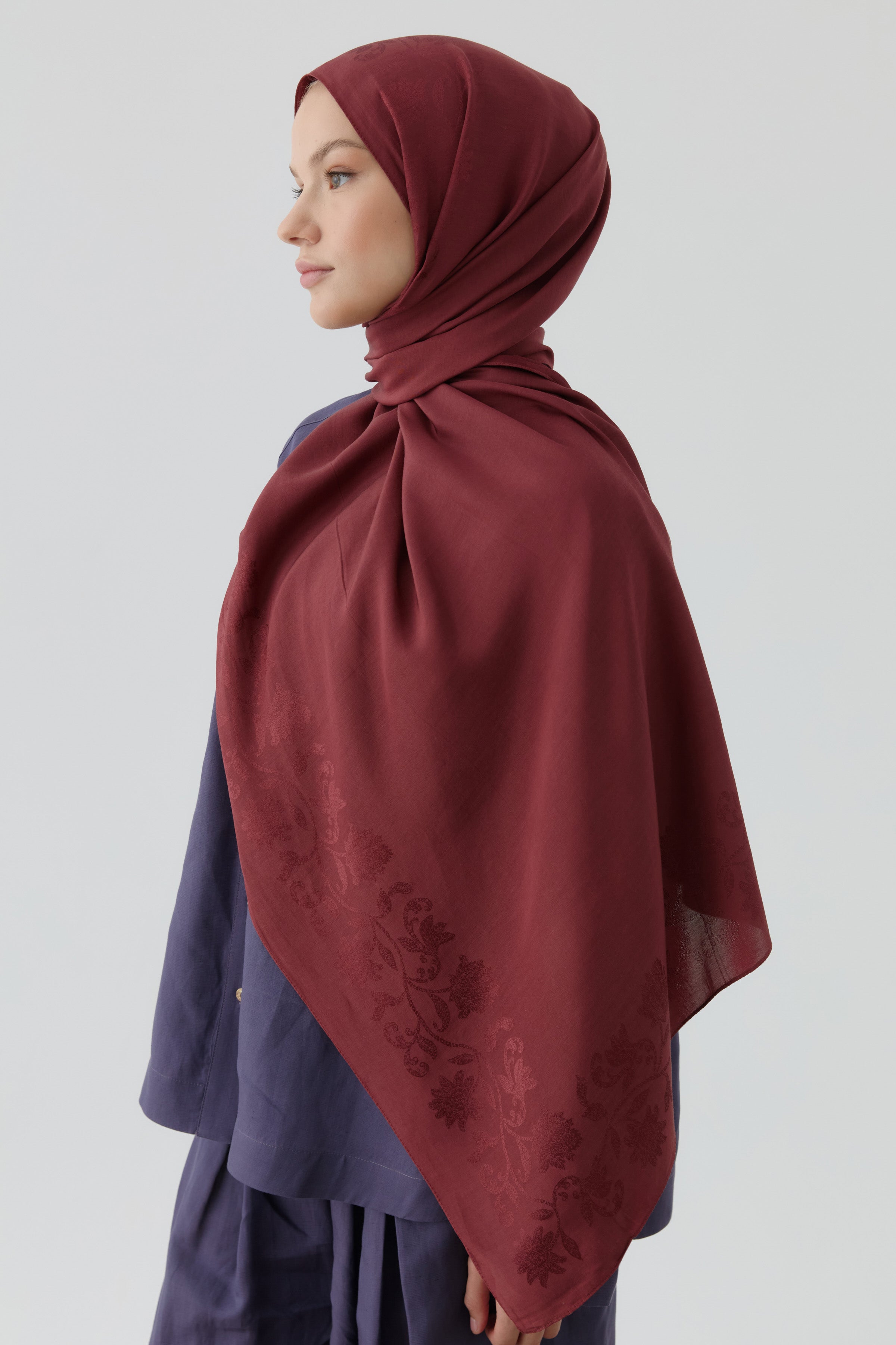 Natural Shawl with Marbled Pattern Ebru - Bordeaux