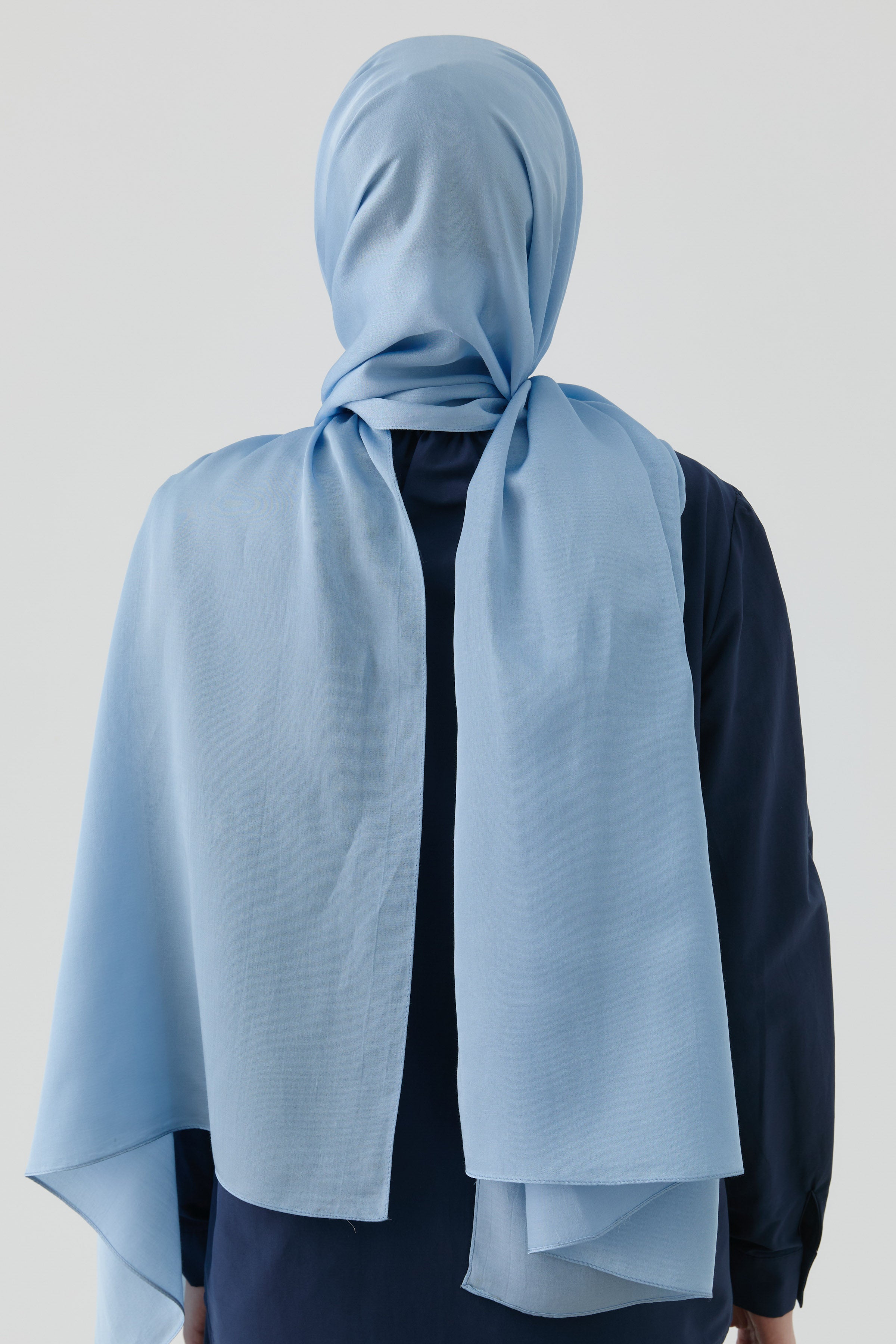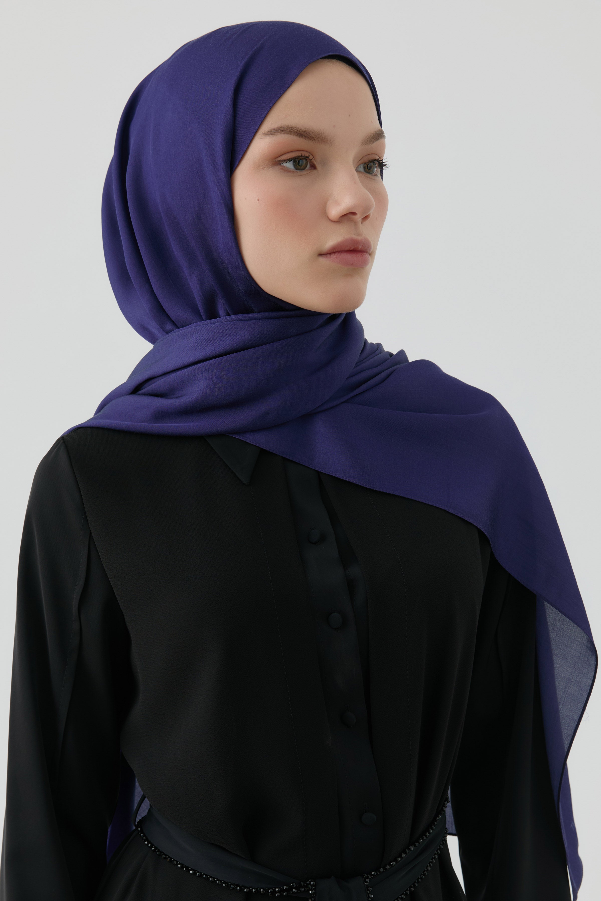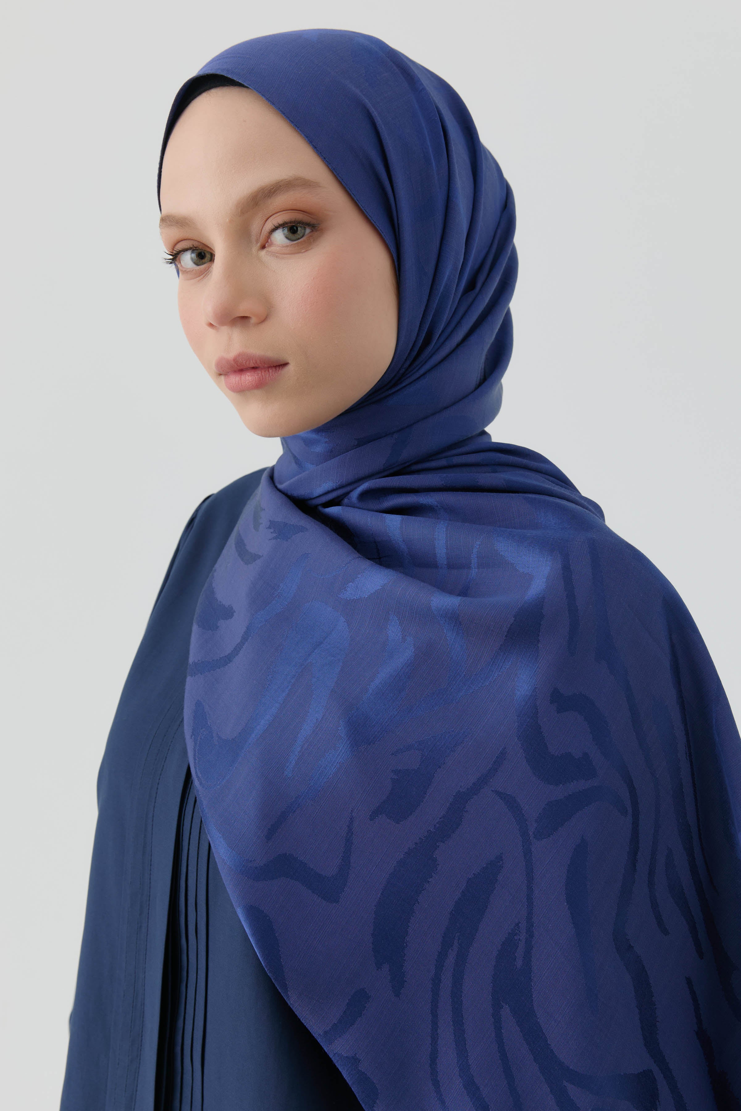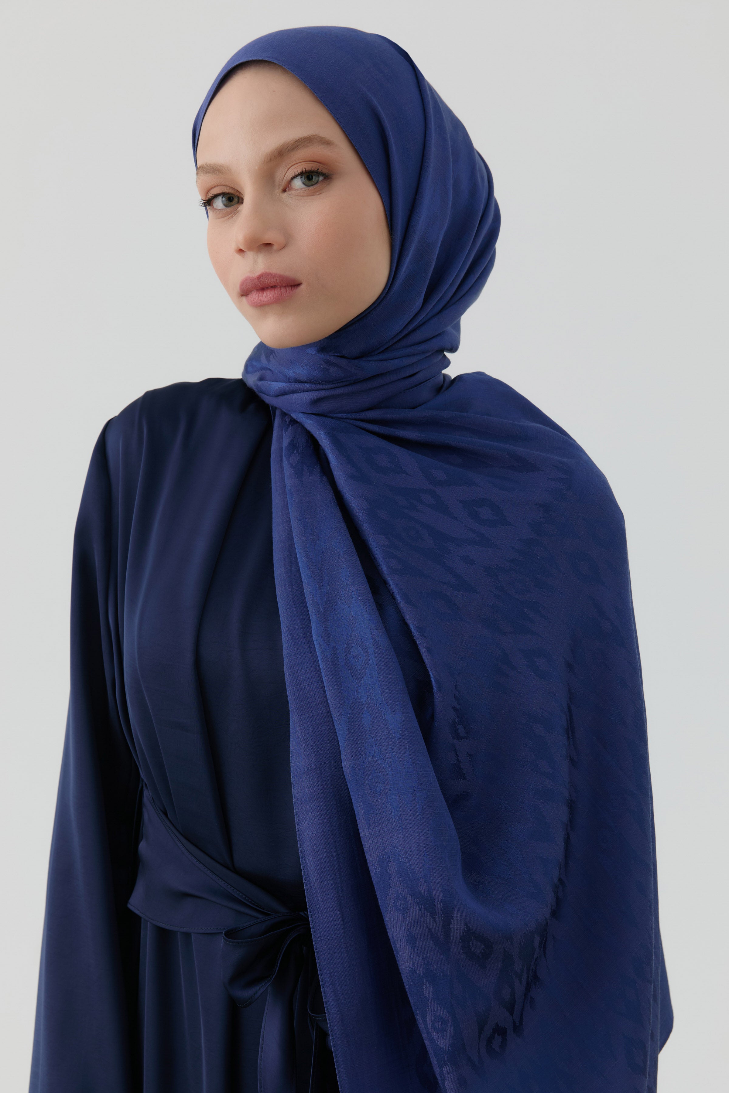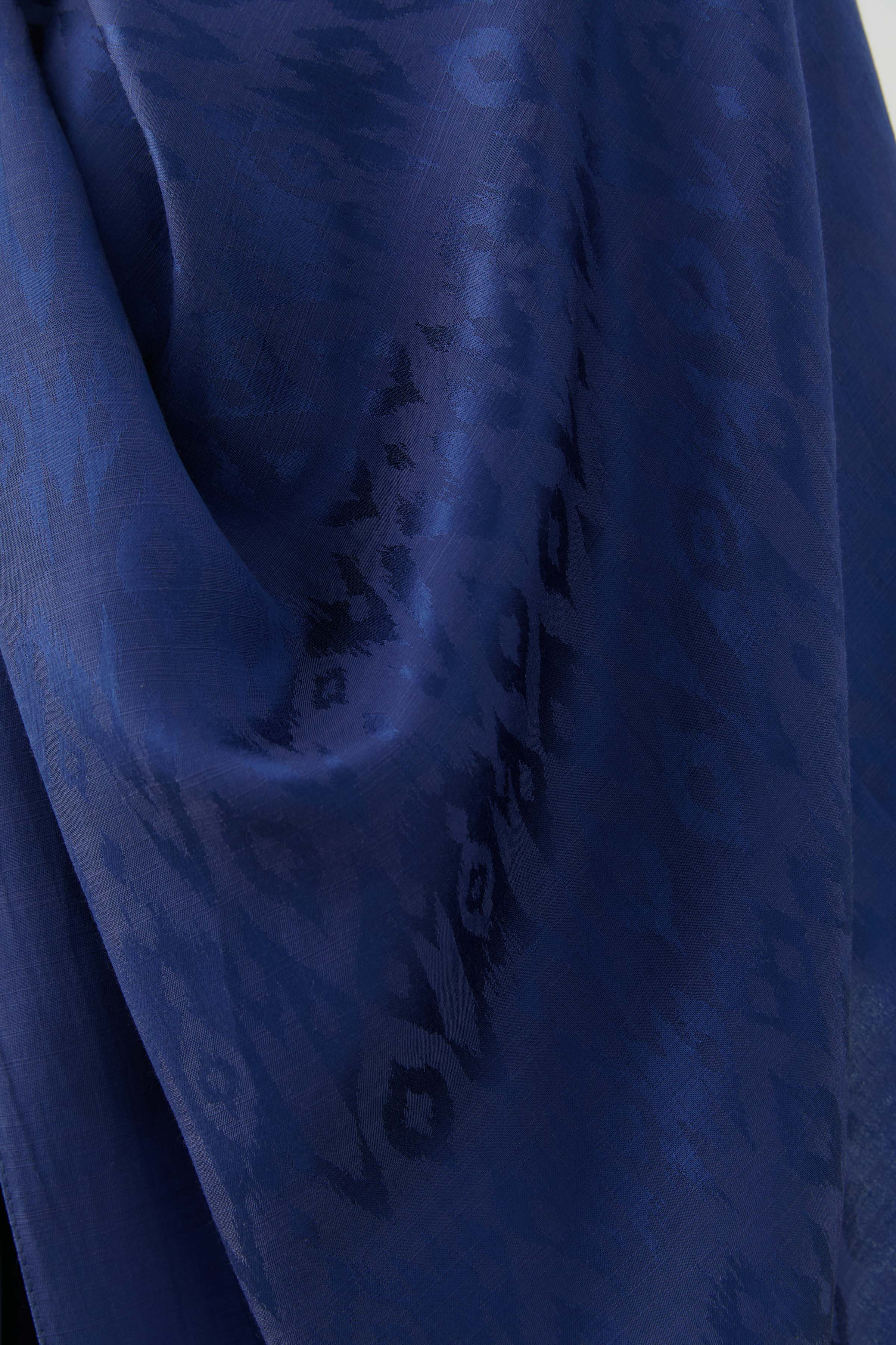 Natural Nida shawl with ethnic ikat pattern - Navy blue