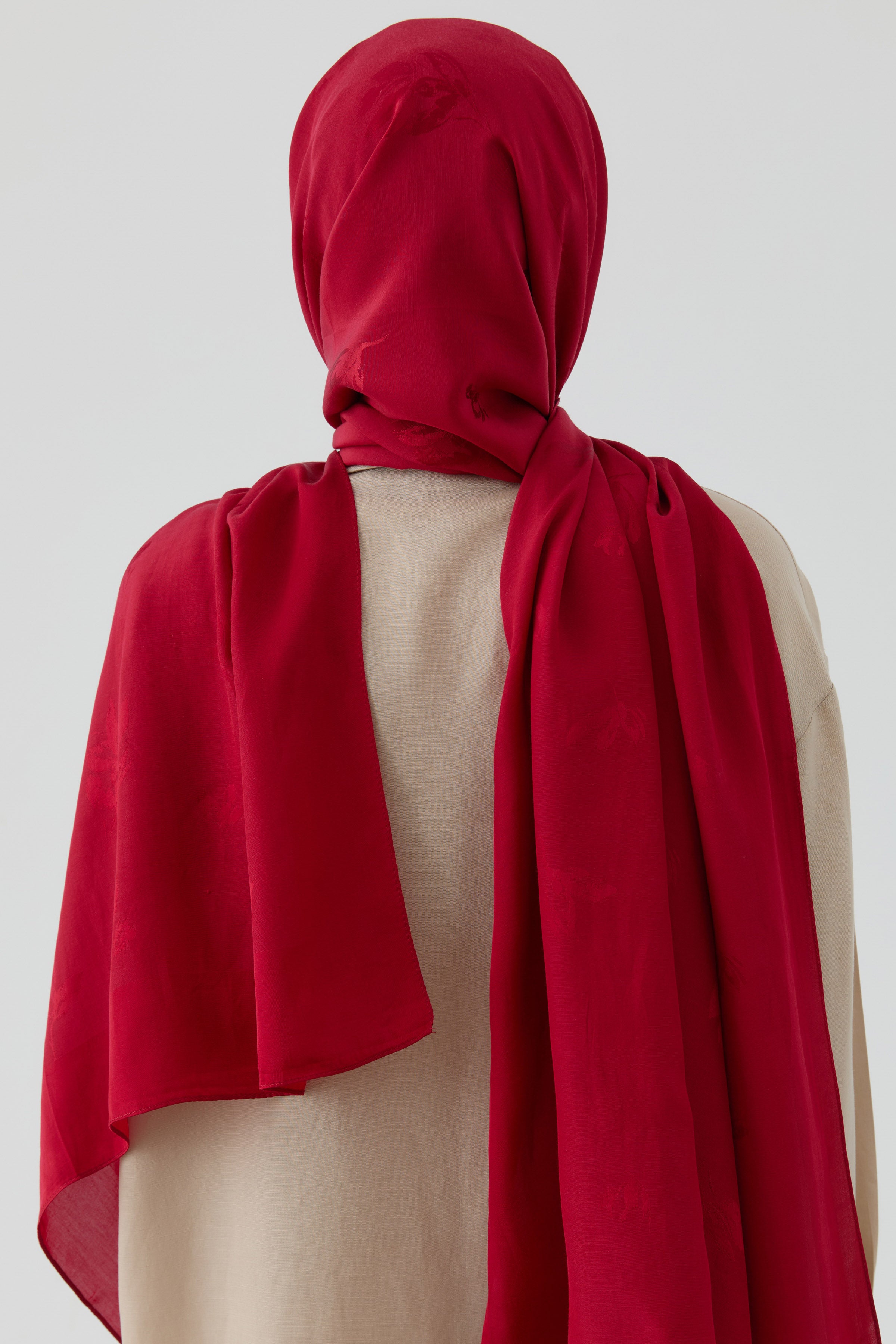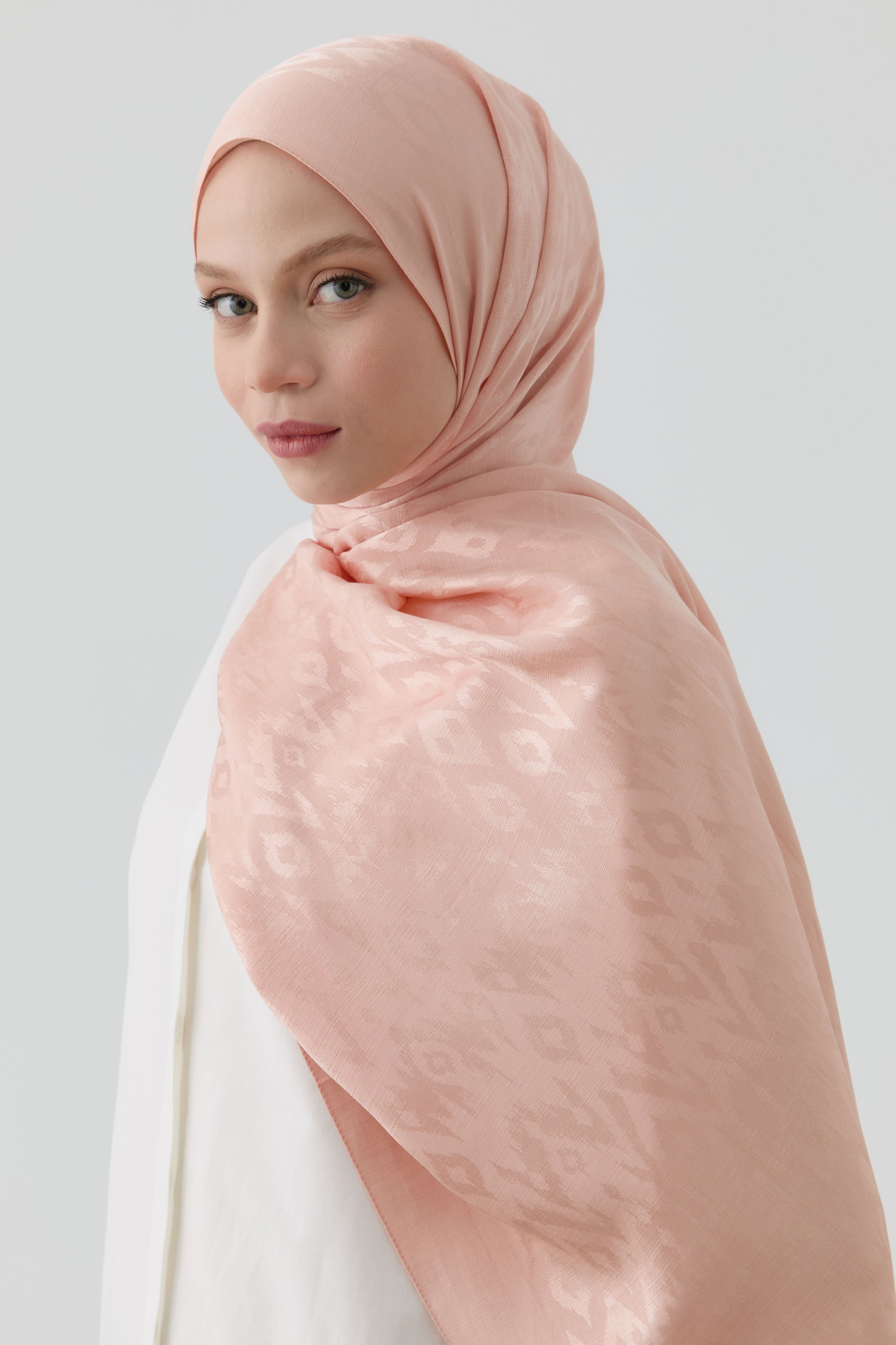 Natural Nida shawl with ethnic ikat pattern - Salmon