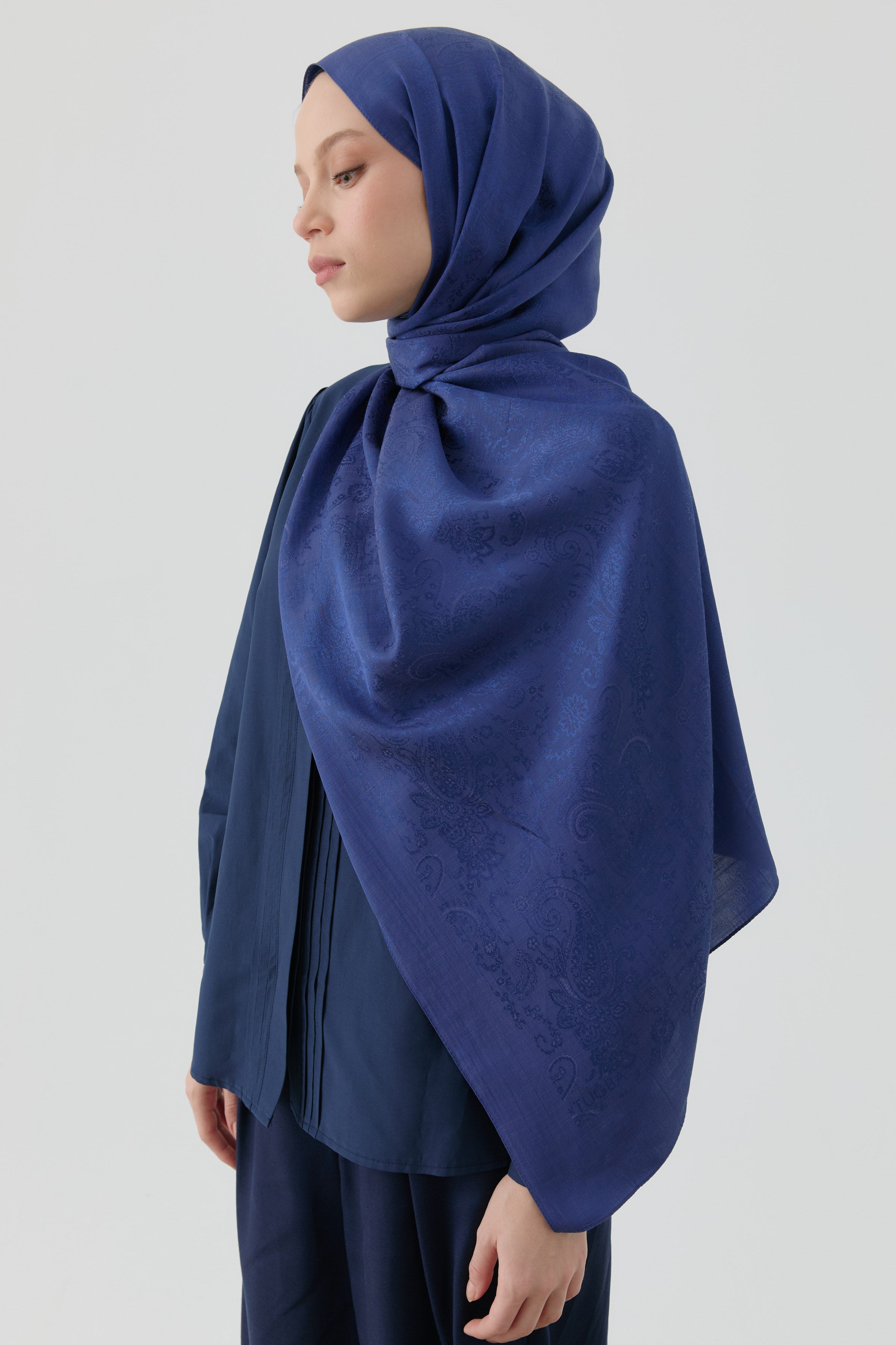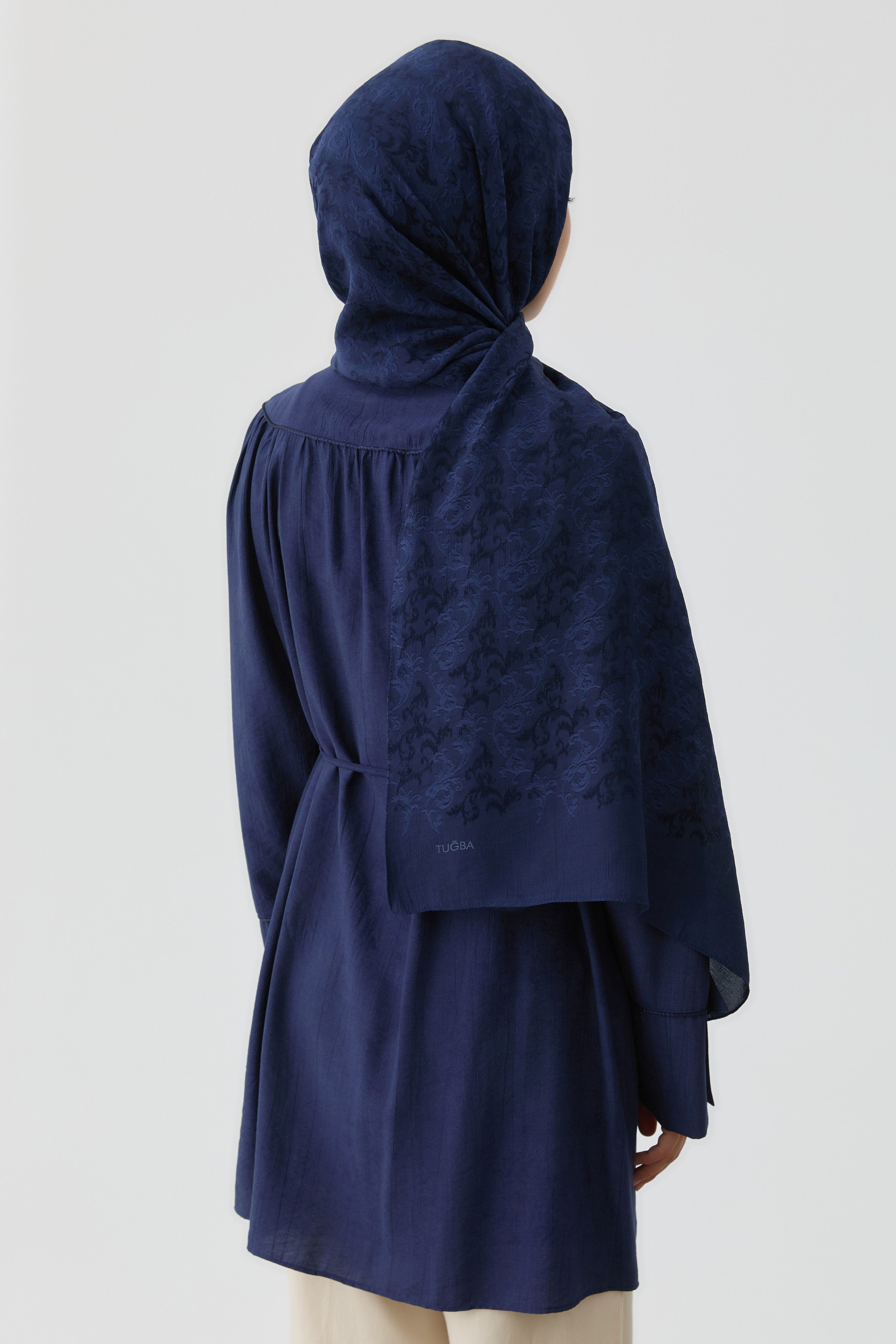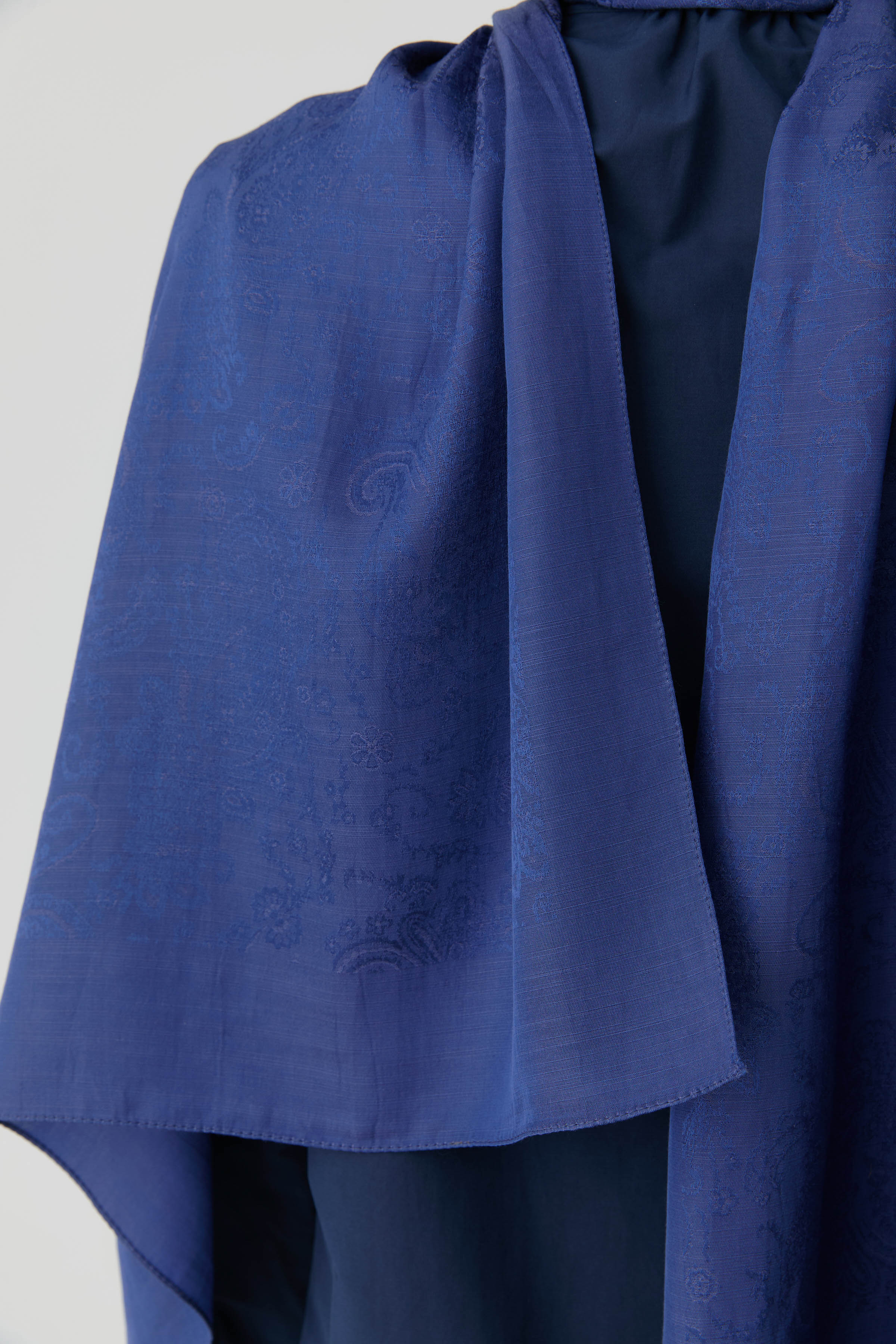 Natural Nida shawl with ethnic shawl pattern - Navy blue
