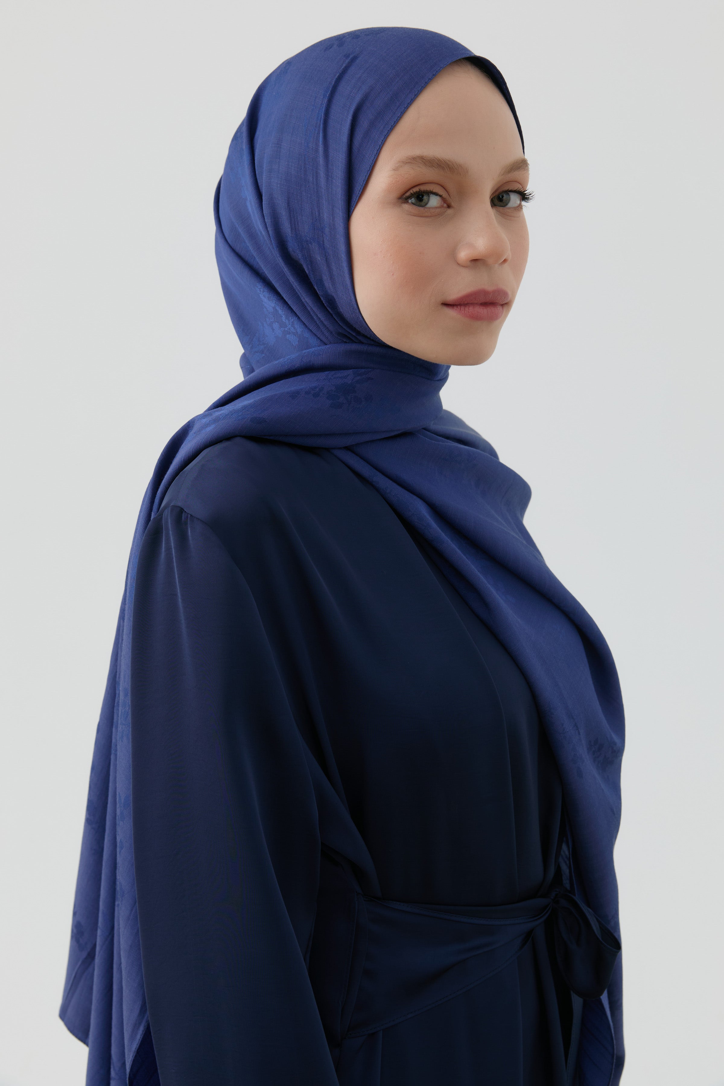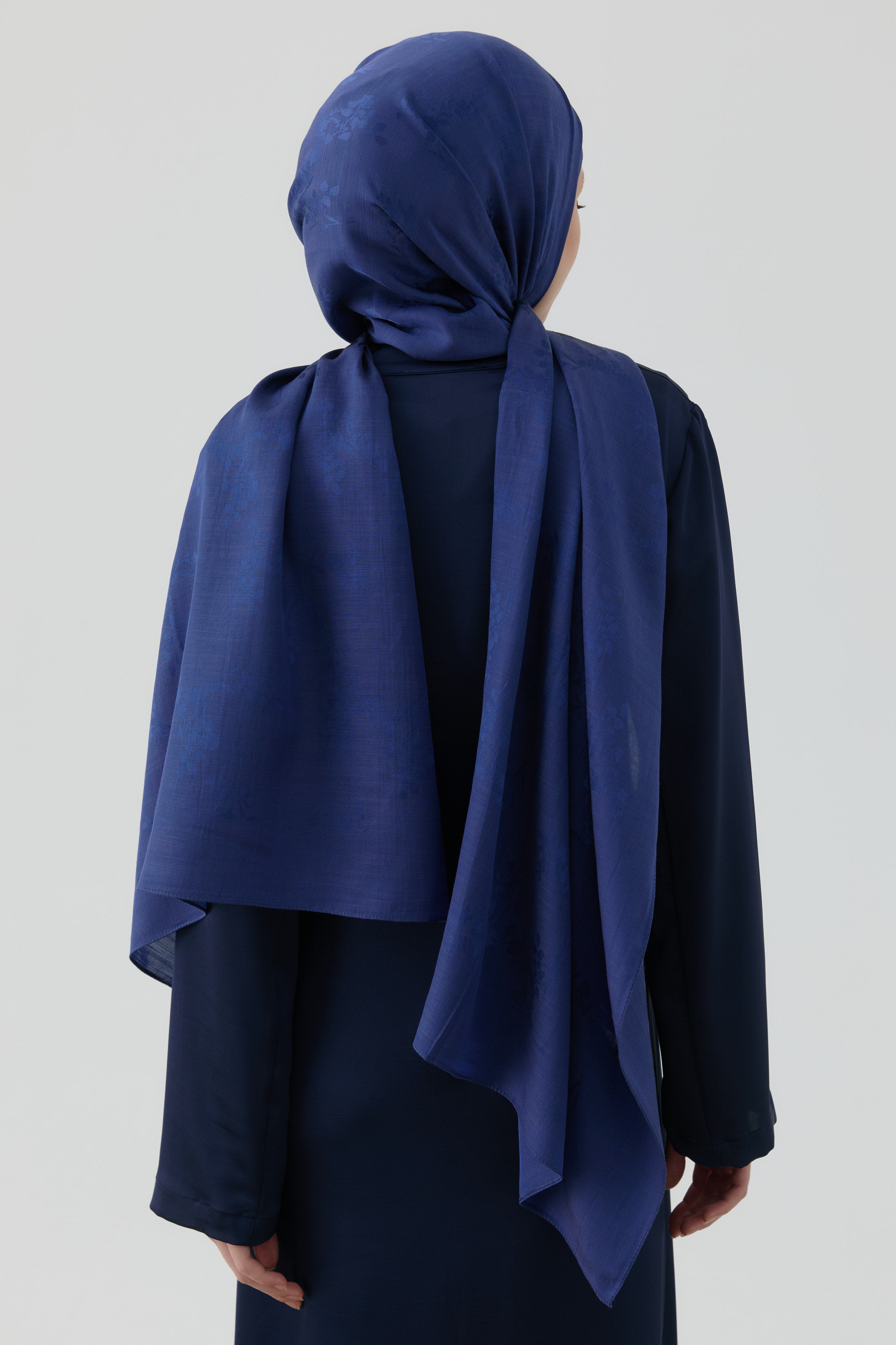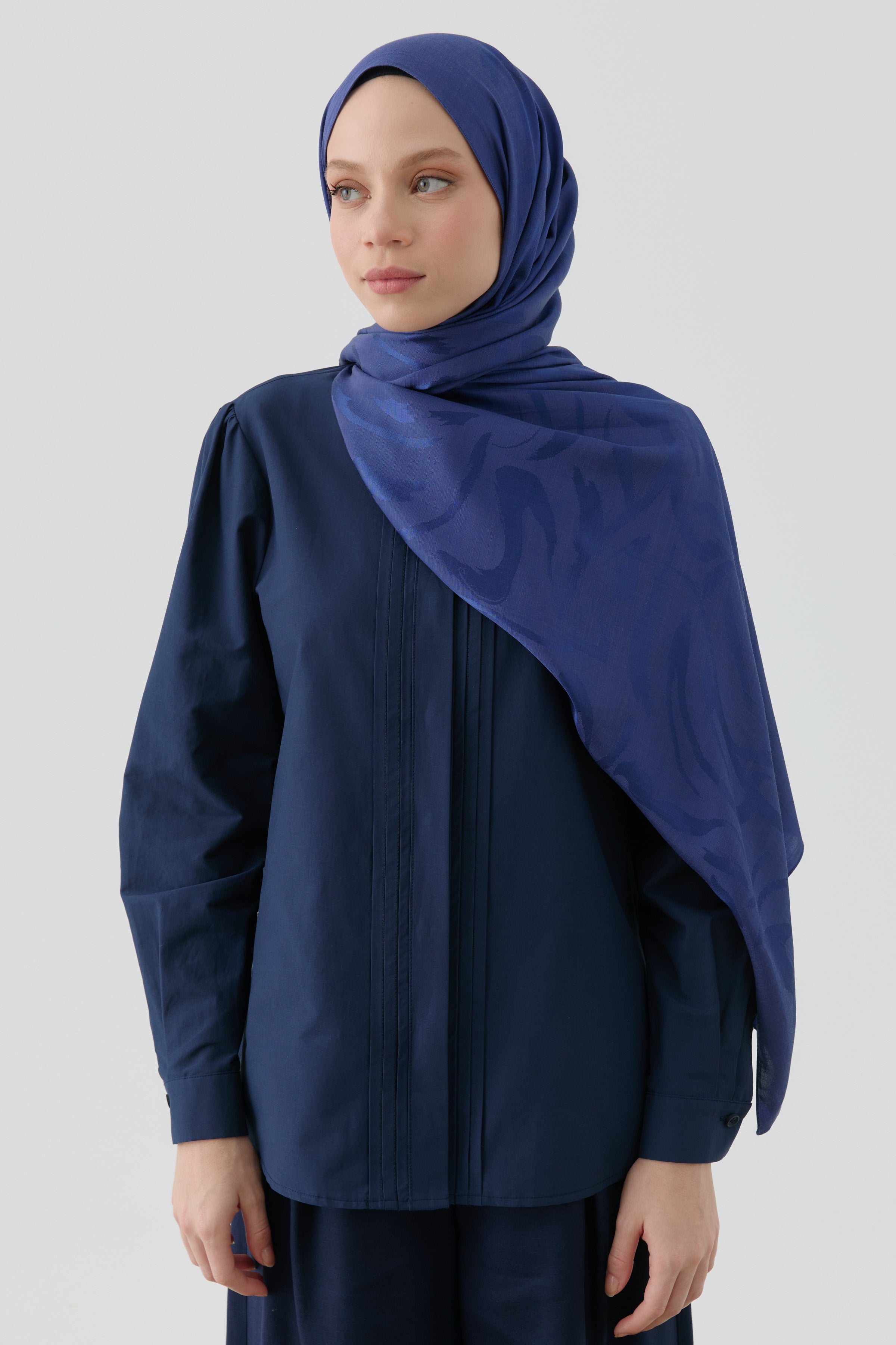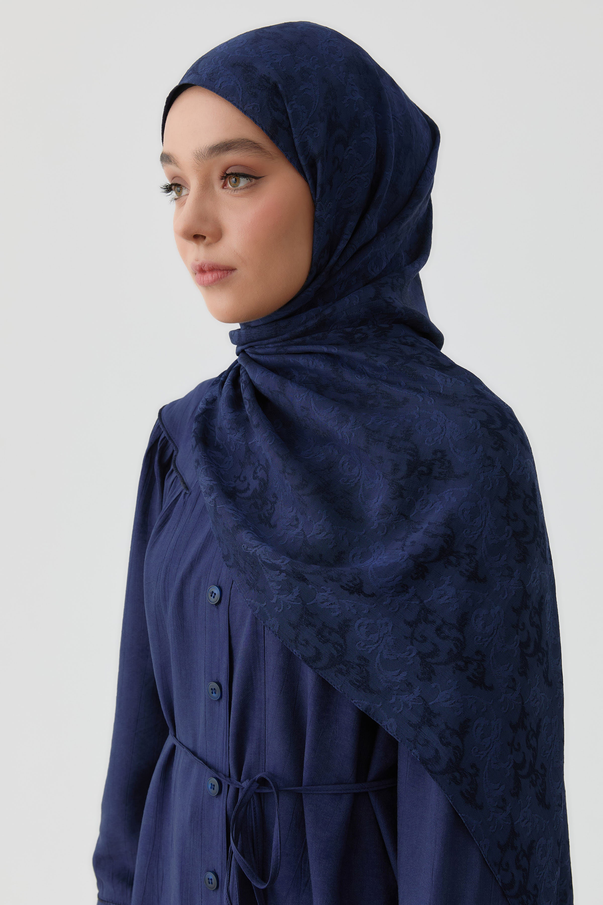 Natural Nida shawl with ethnic shawl pattern - Navy blue