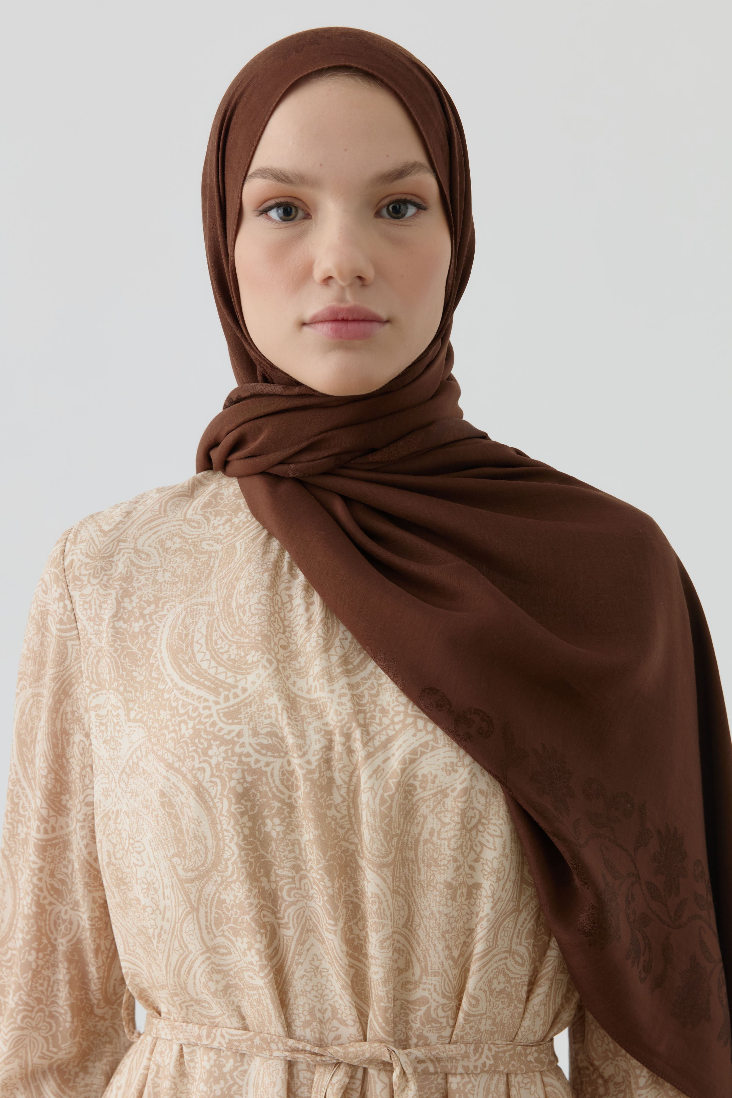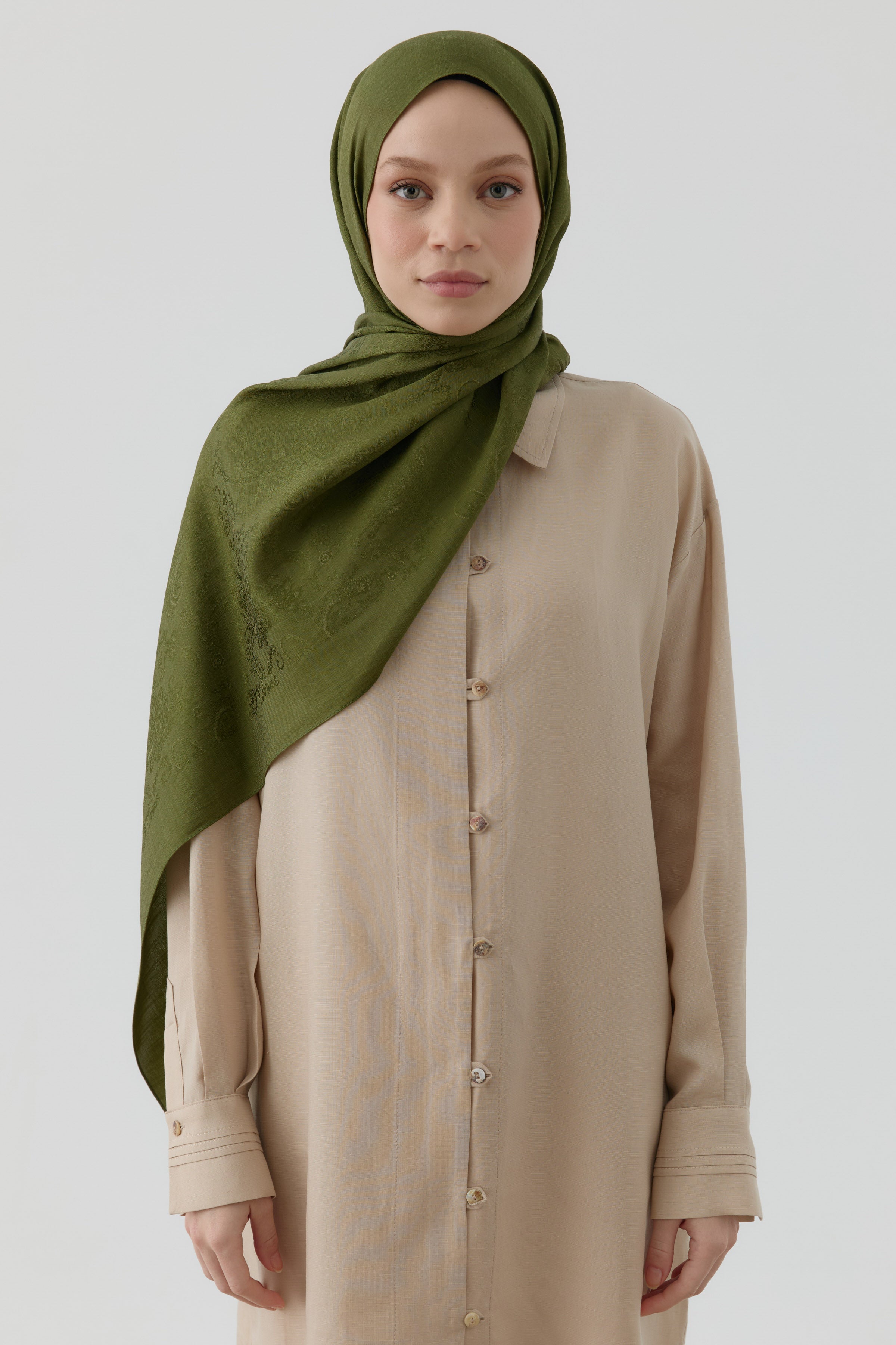 Natural Nida shawl with ethnic shawl pattern - Khaki