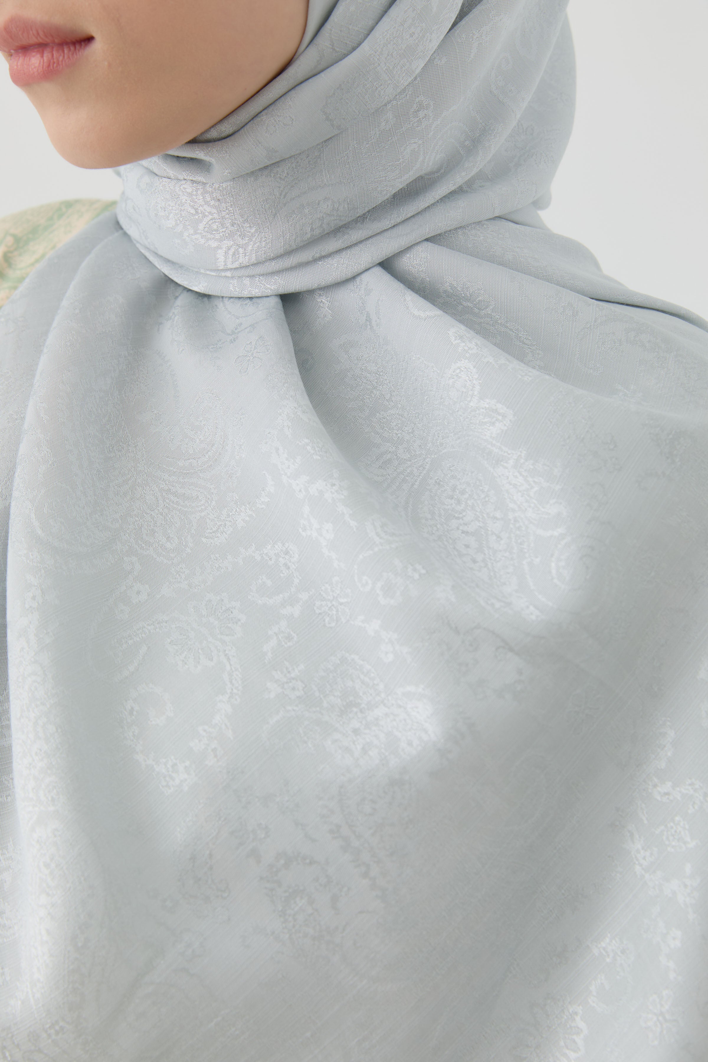 Natural Nida shawl with ethnic shawl pattern - Silver