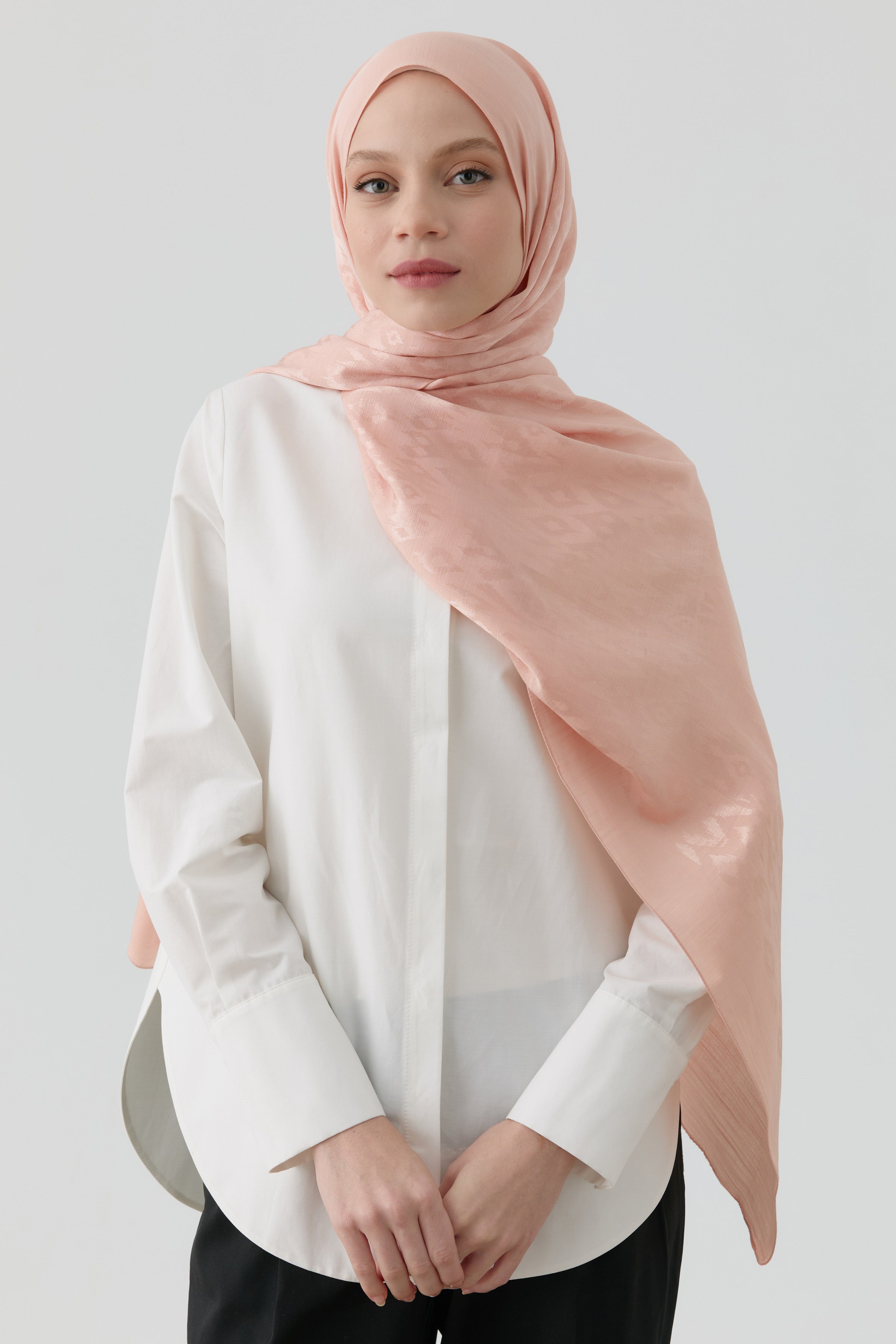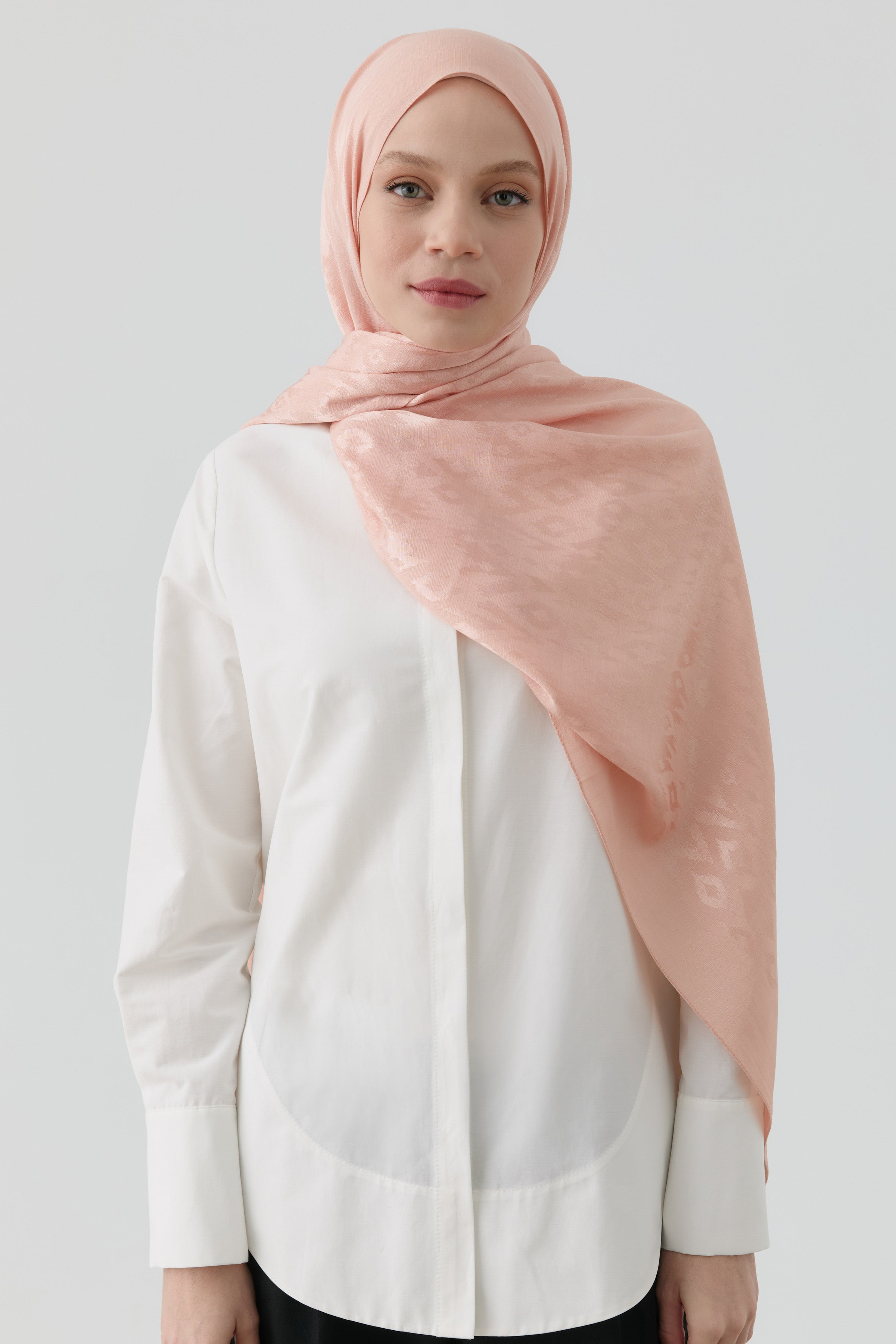 Natural Nida shawl with ethnic shawl pattern - Salmon