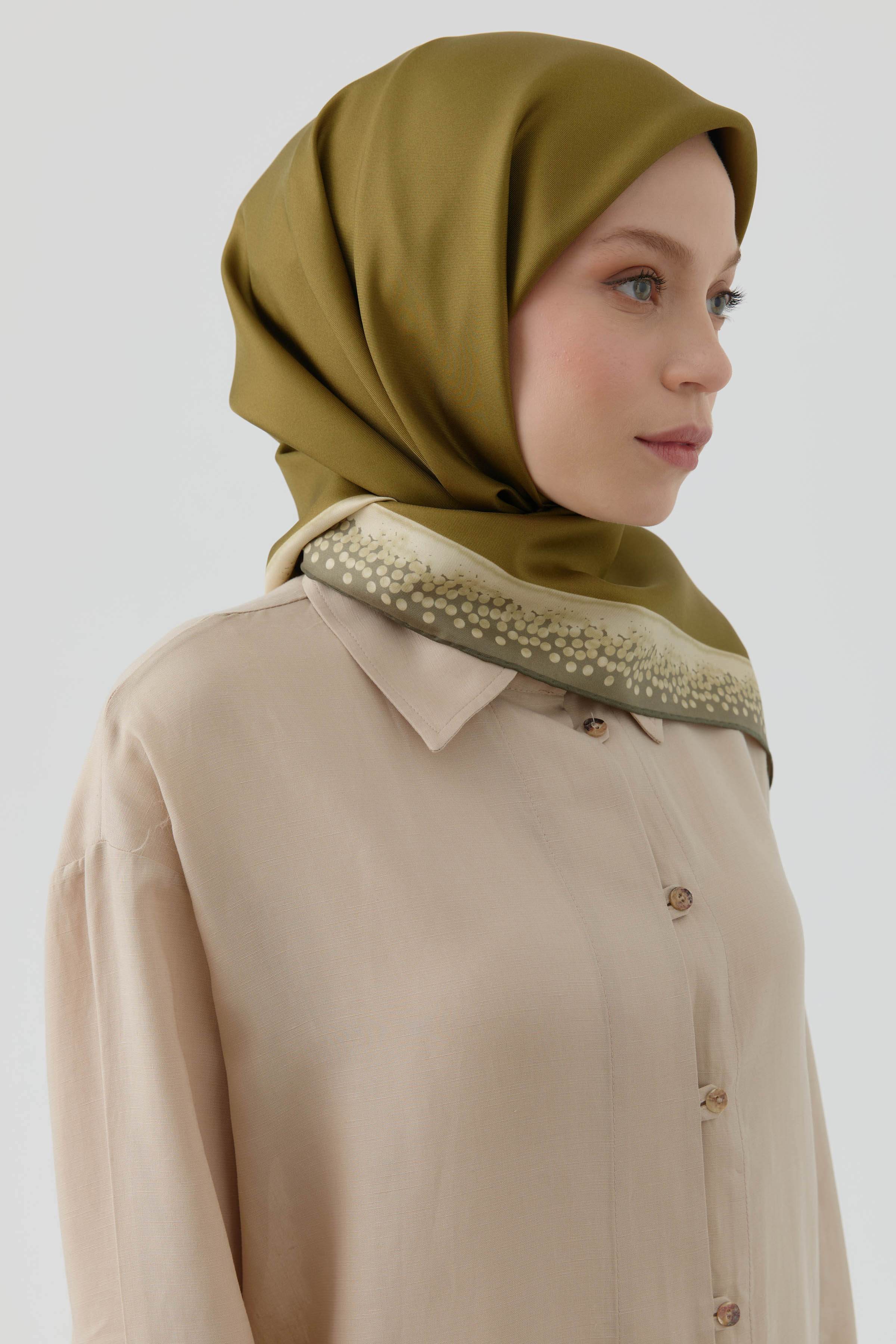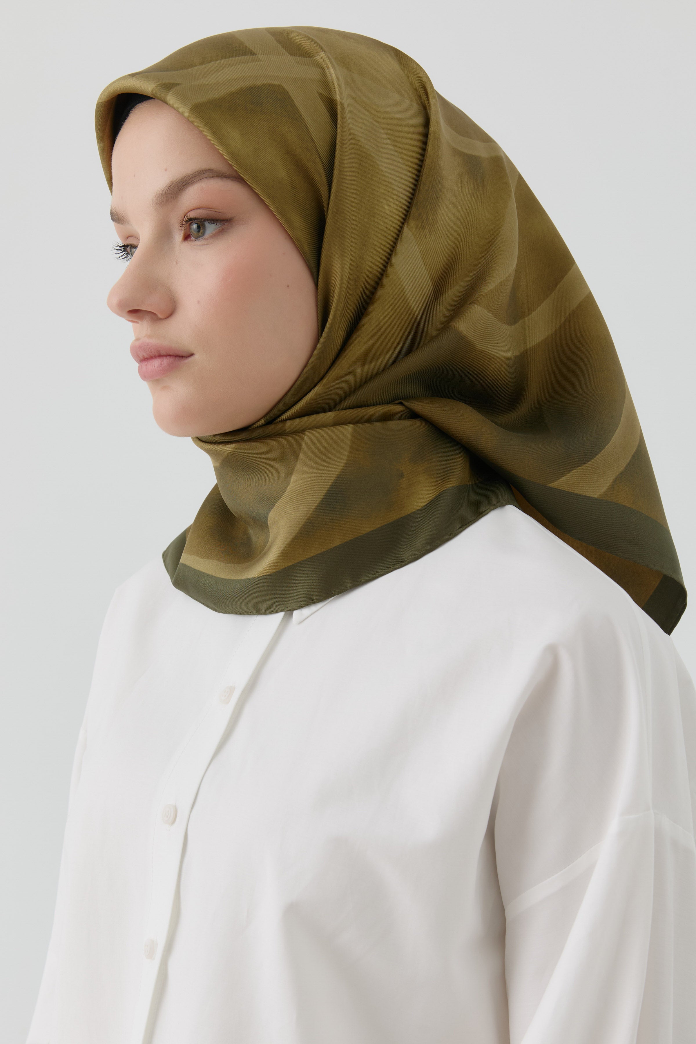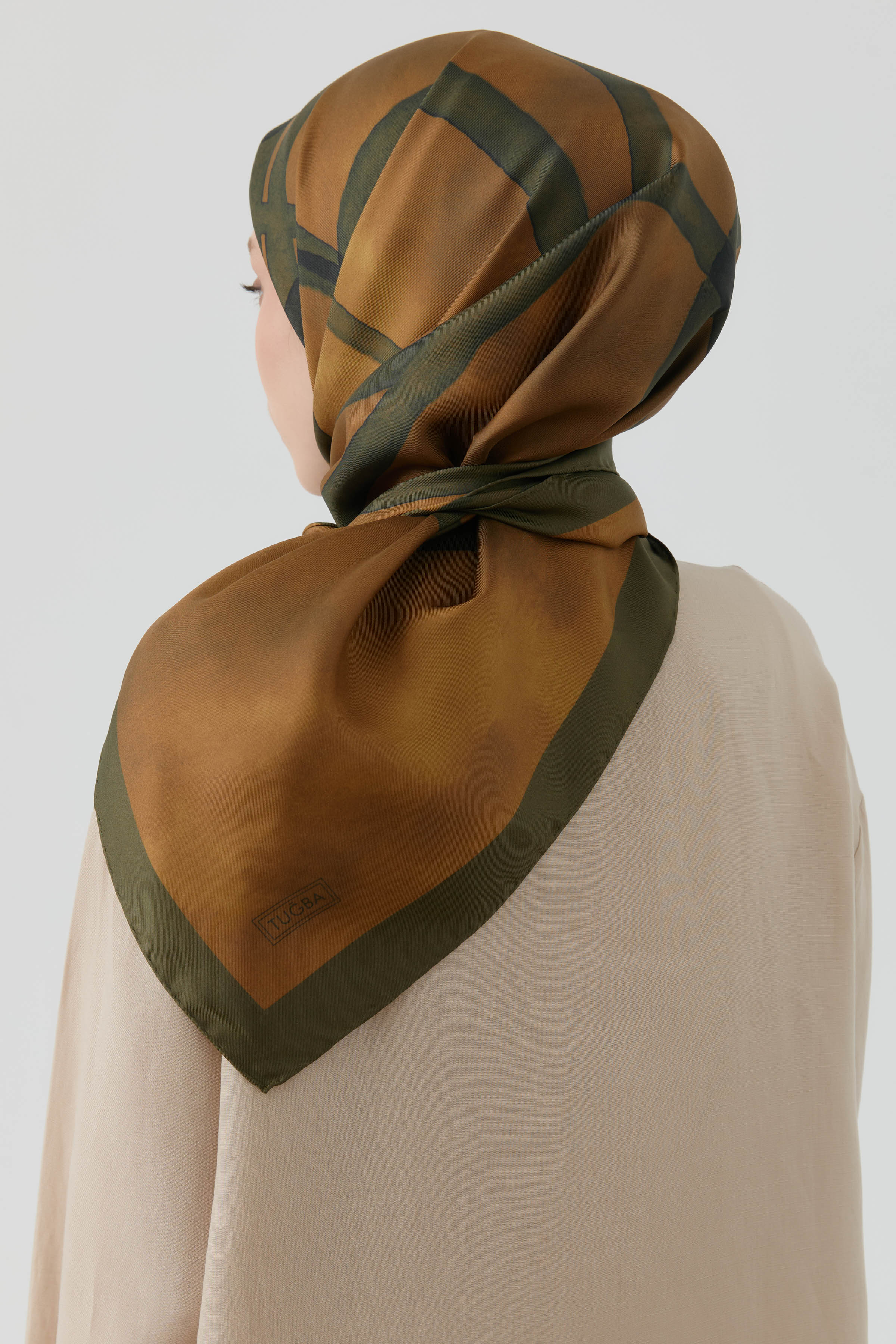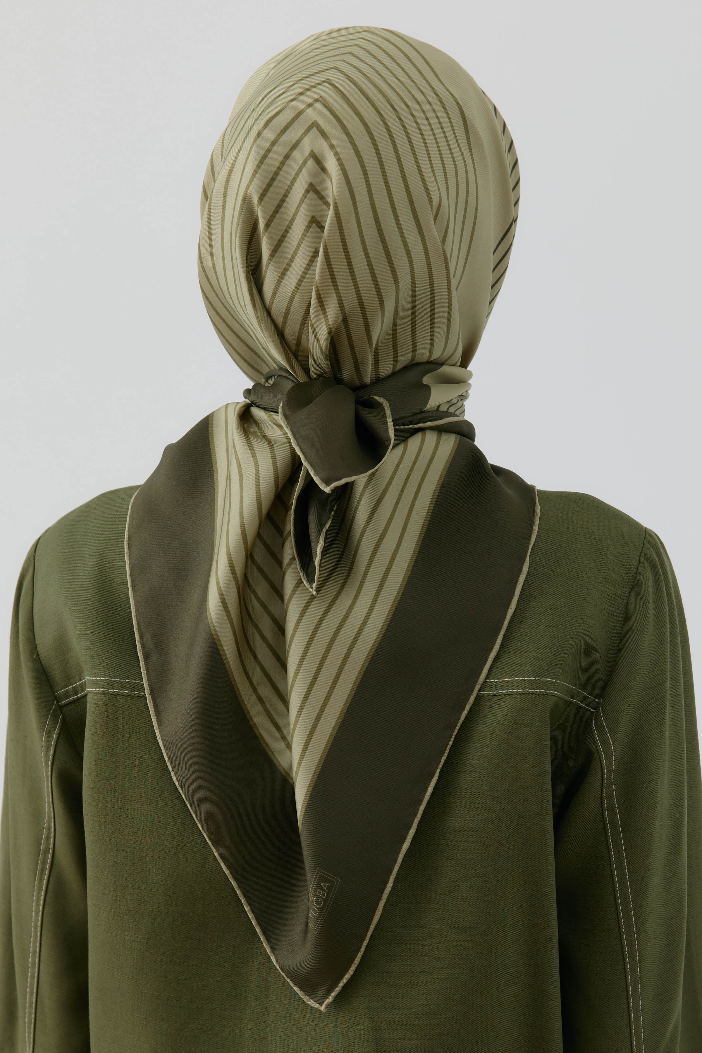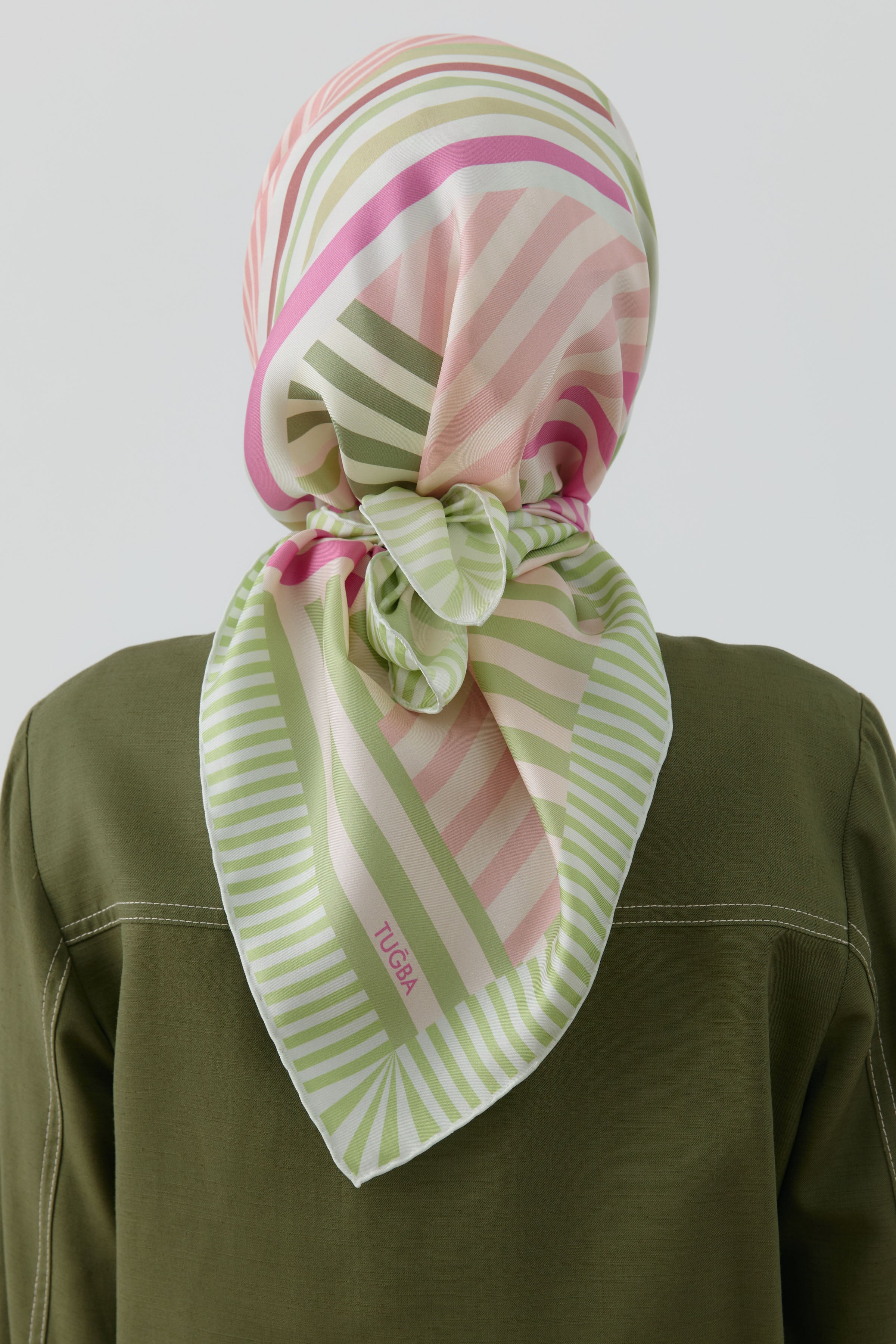 Tuğba Geometric Twill Silk Scarf - Light Green