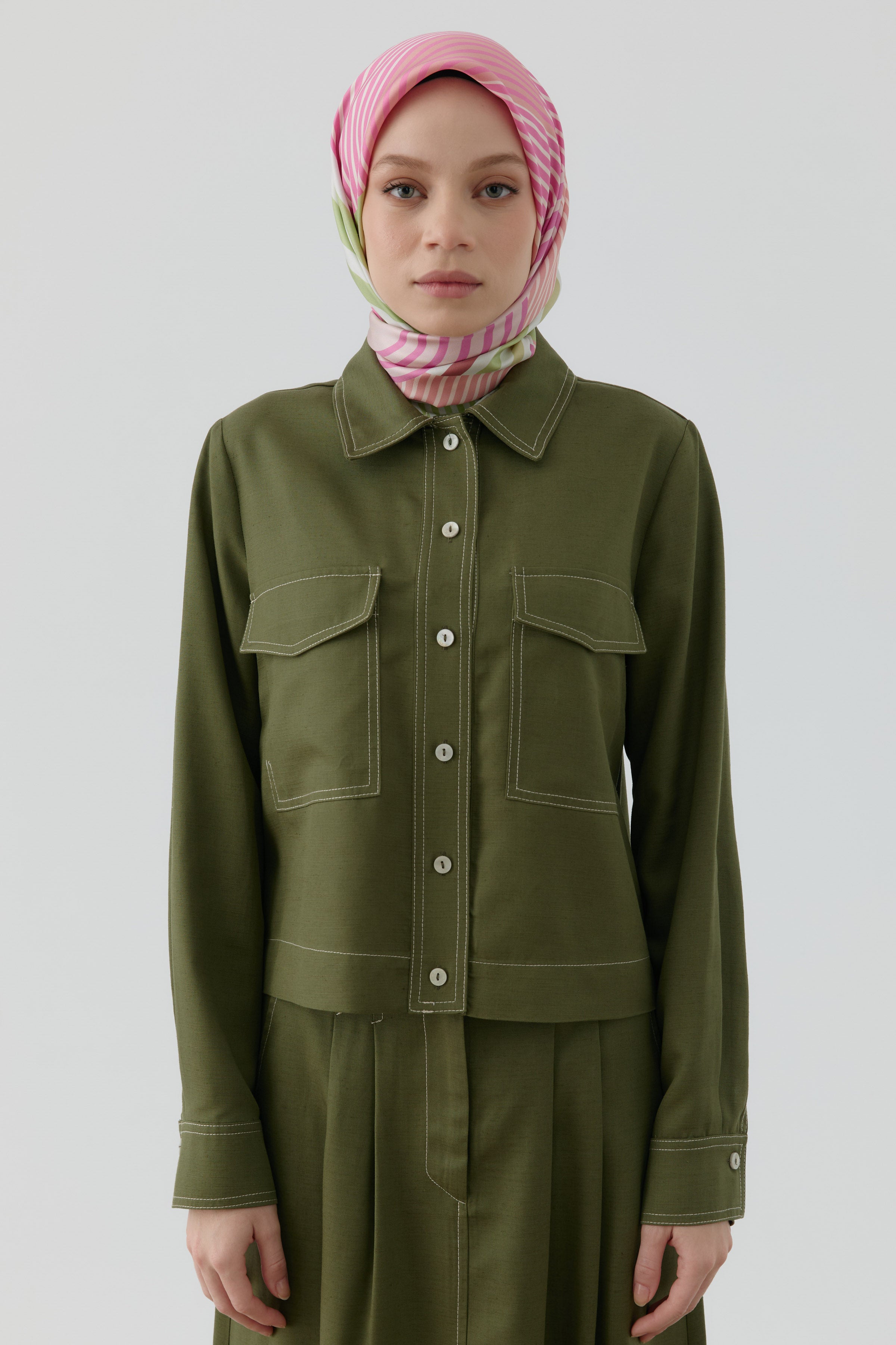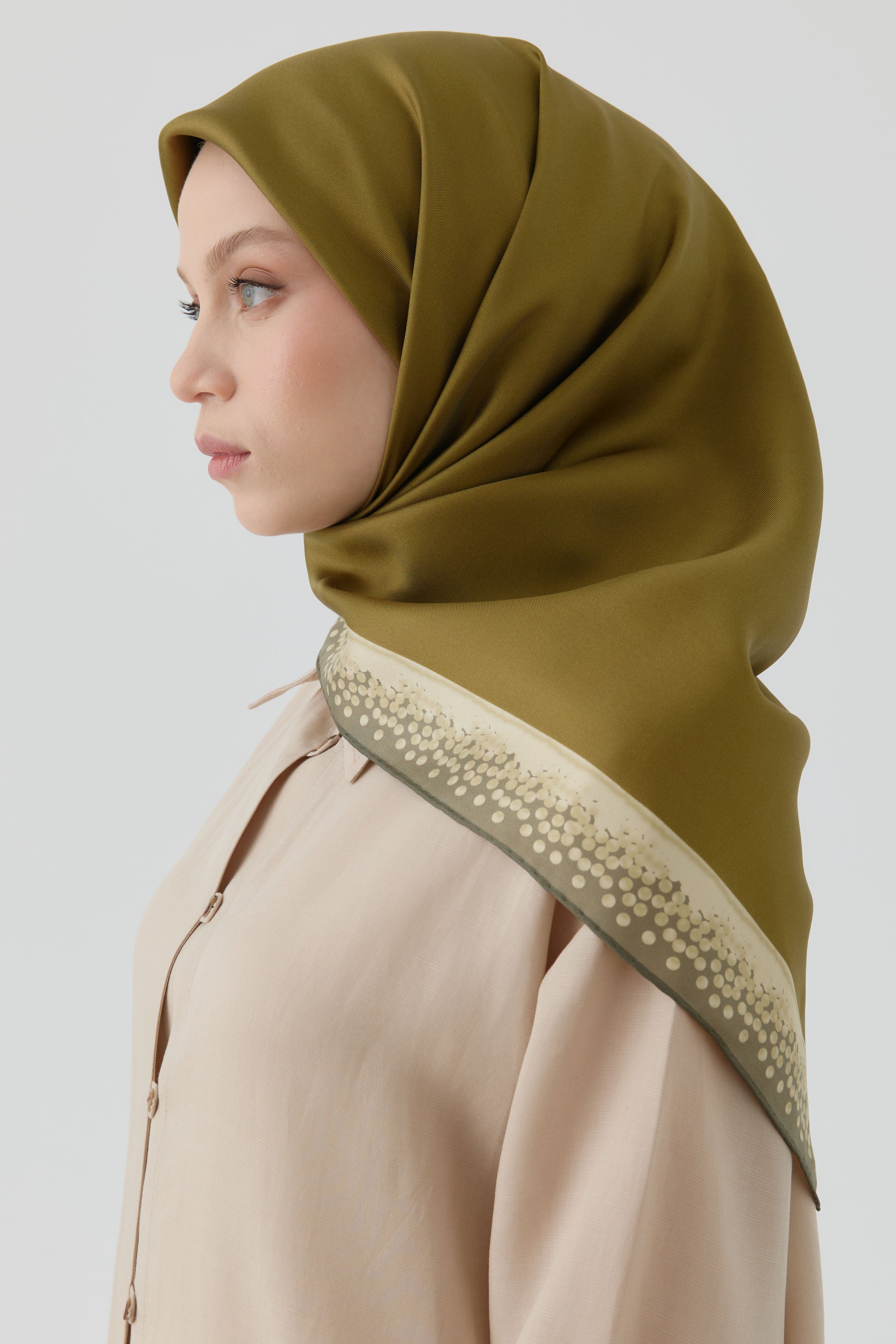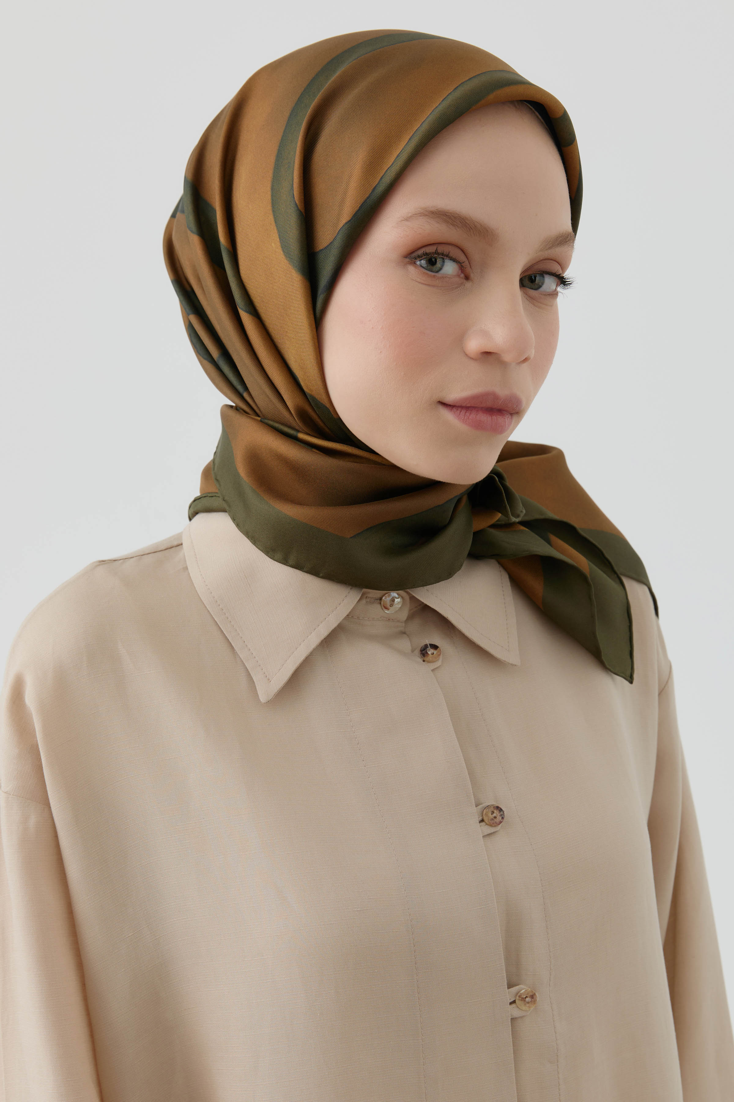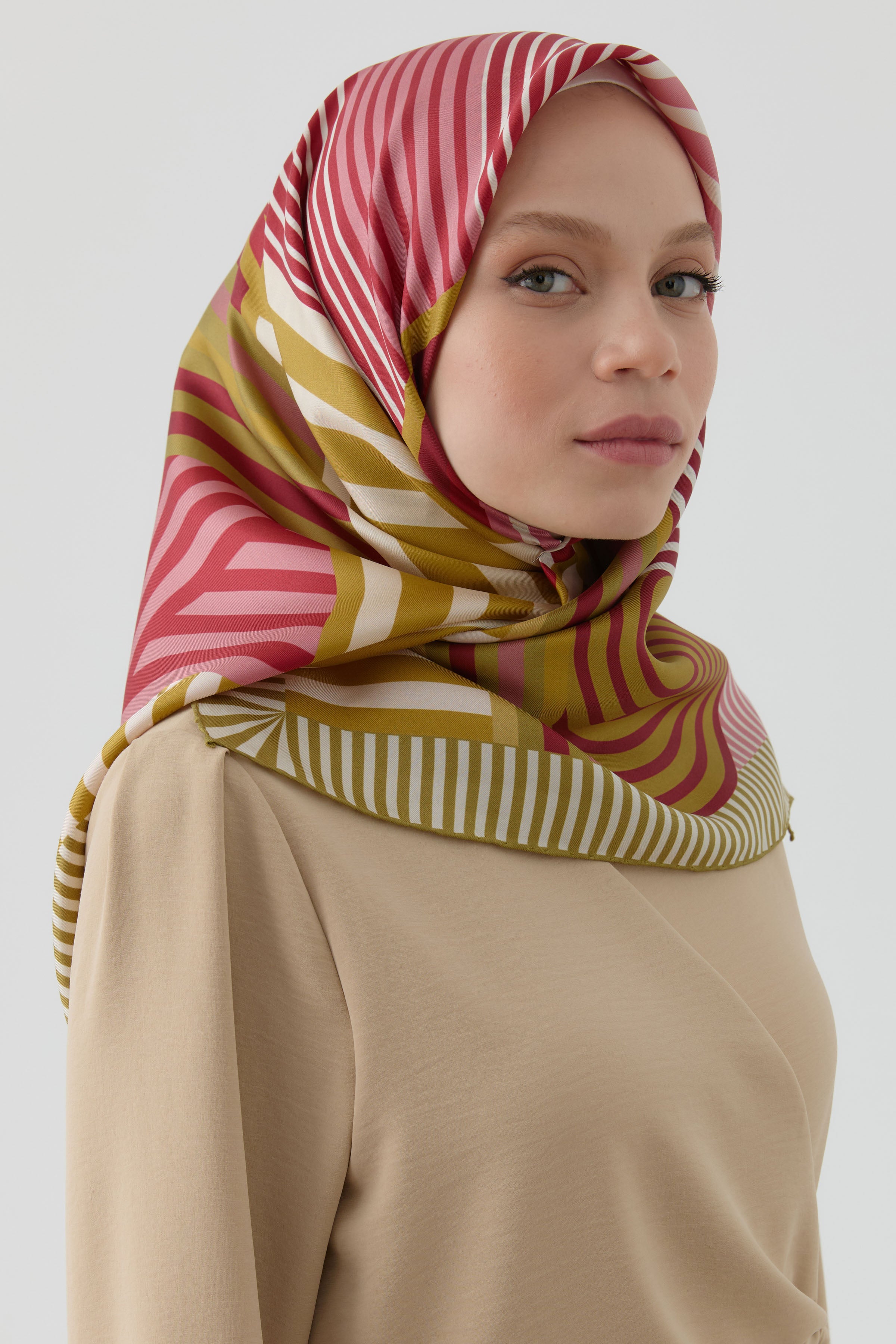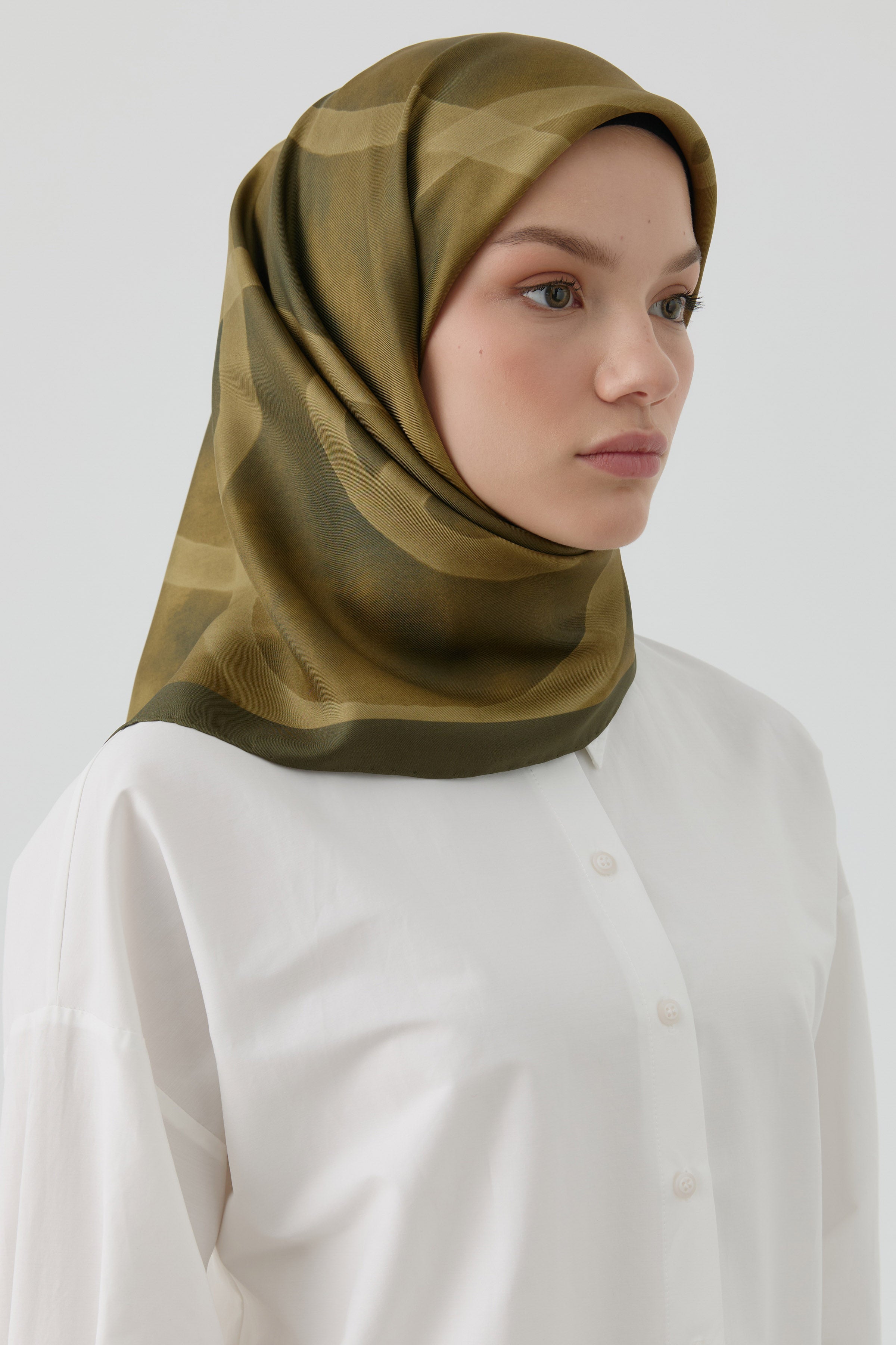 Tuğba Geometric Twill Silk Scarf - Light Green