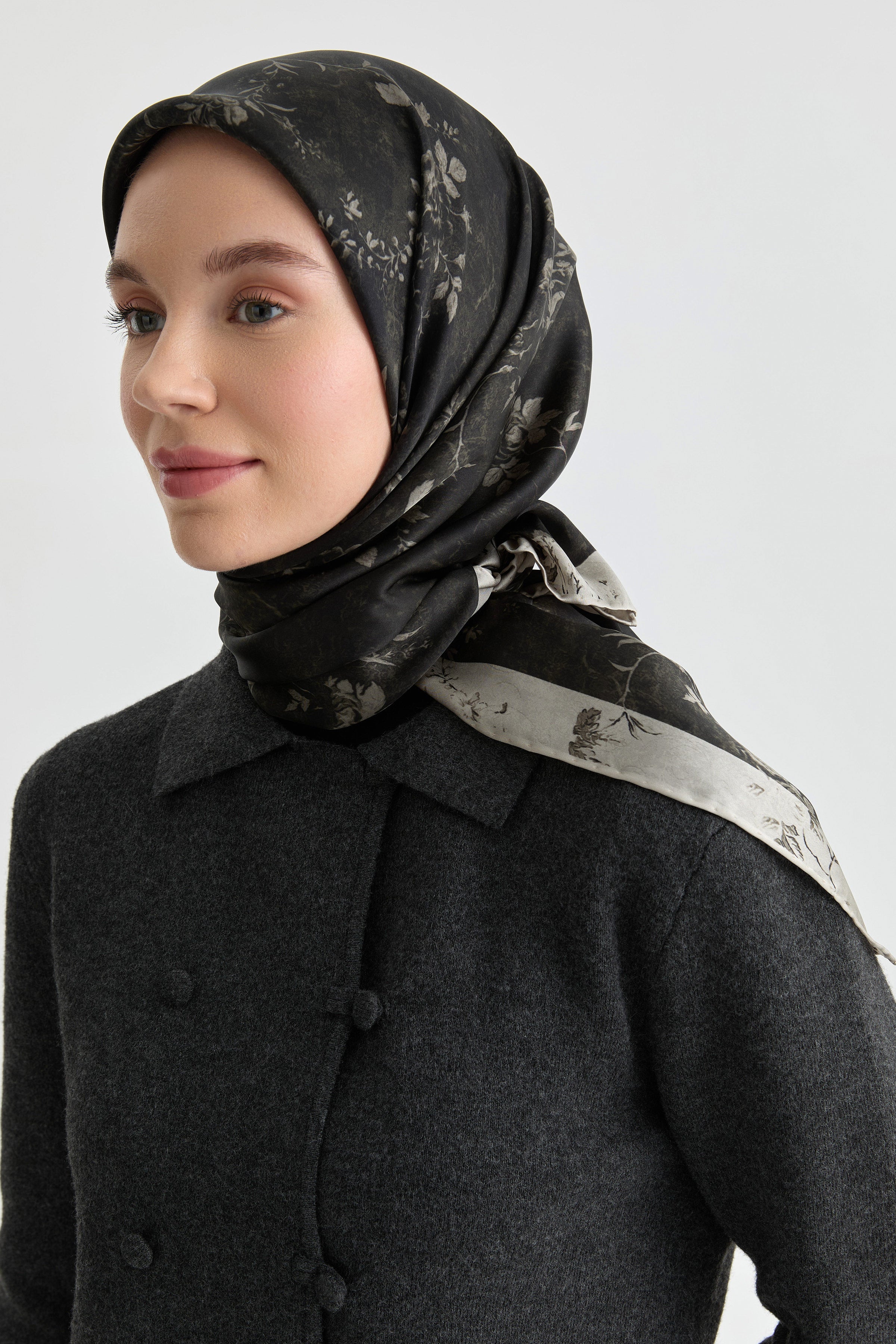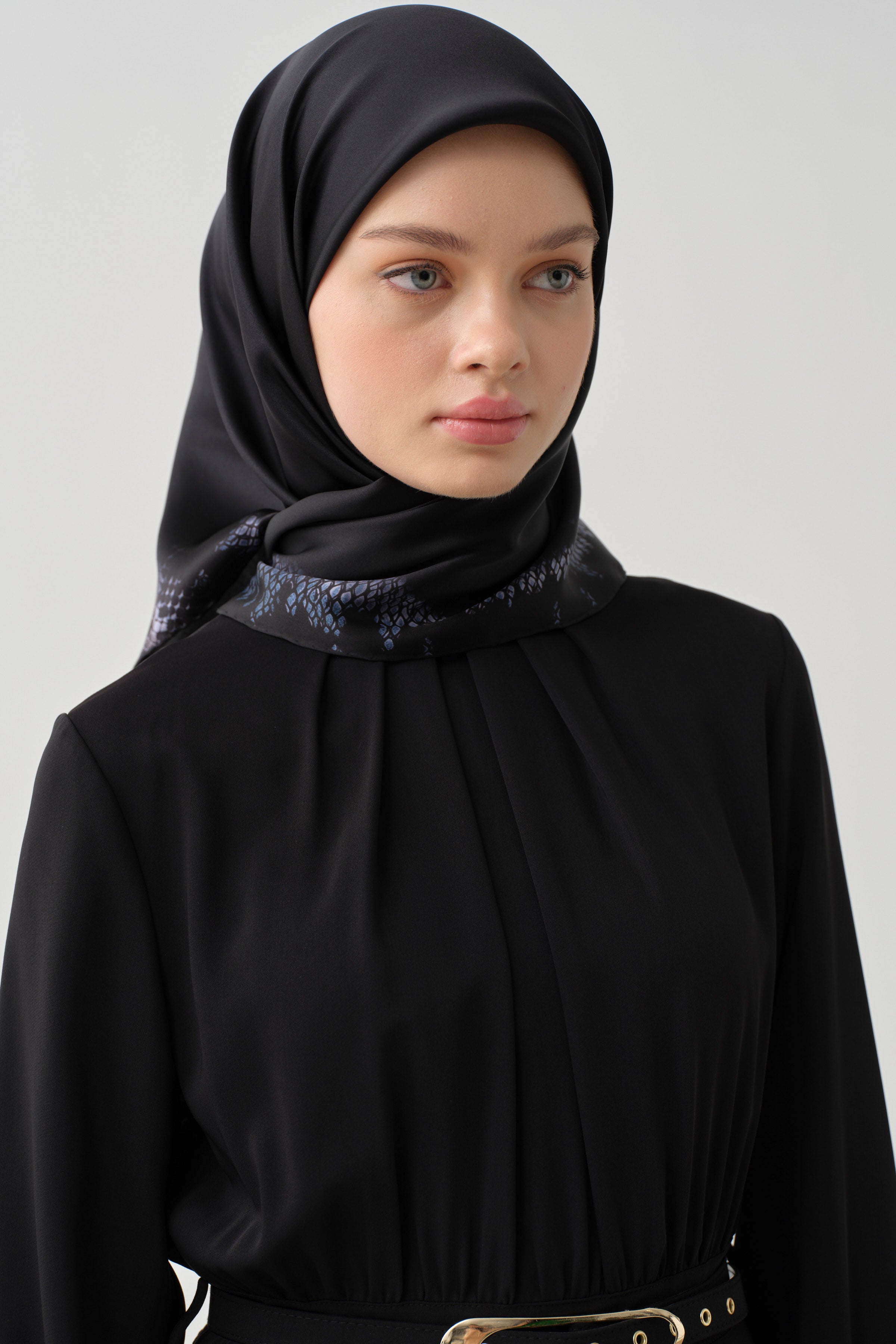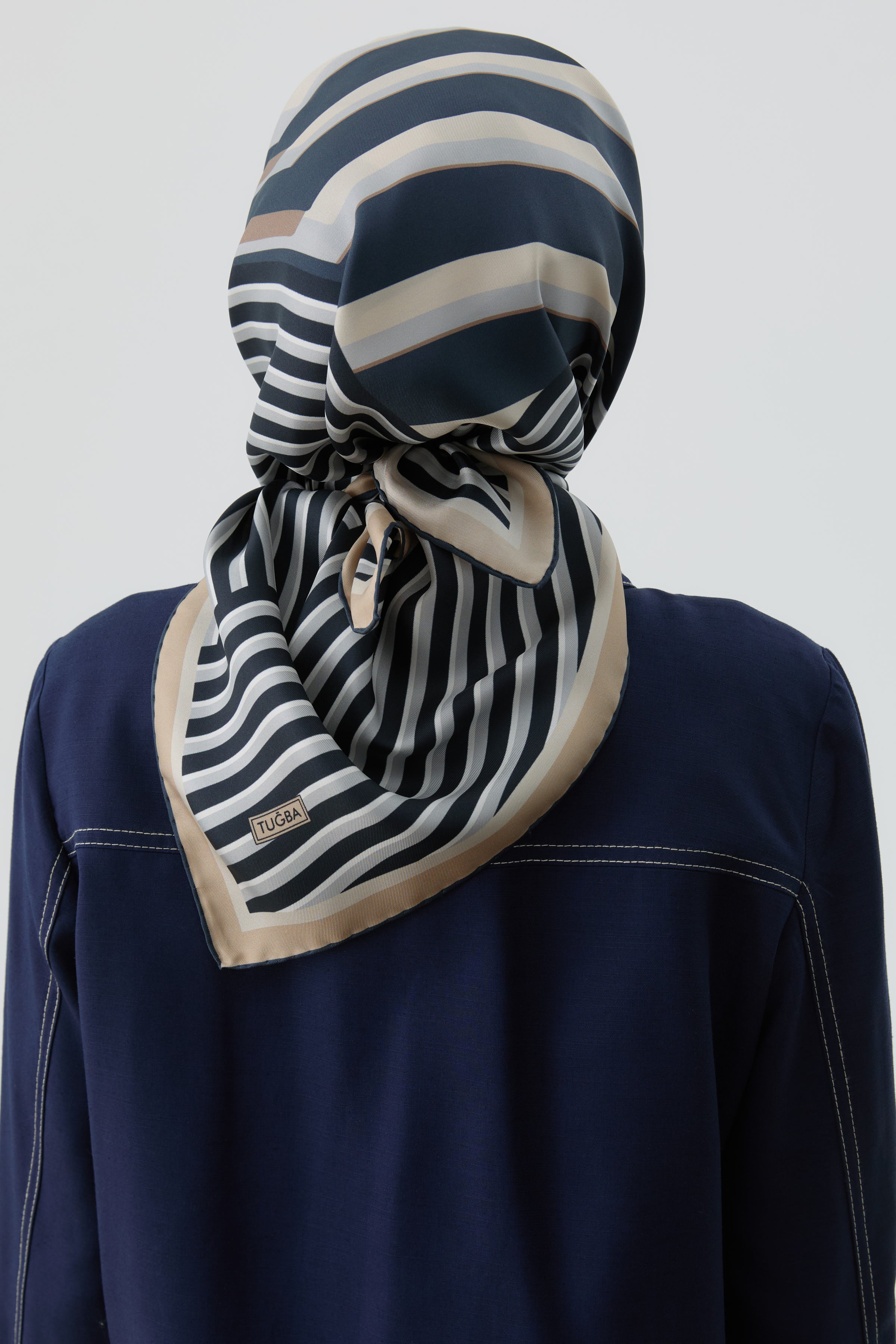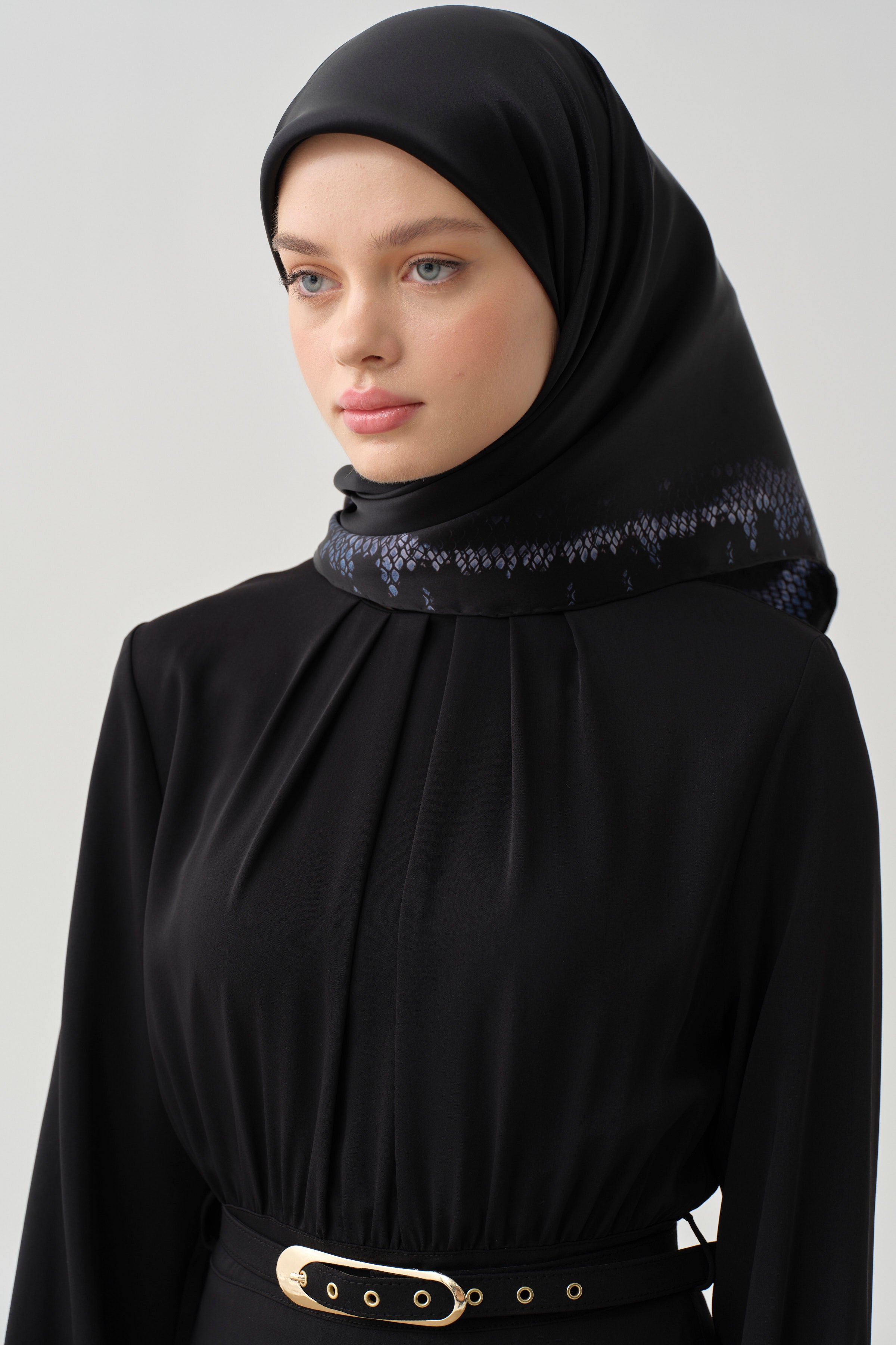 Tuğba Geometric Twill Silk Scarf - Black - Navy Blue
