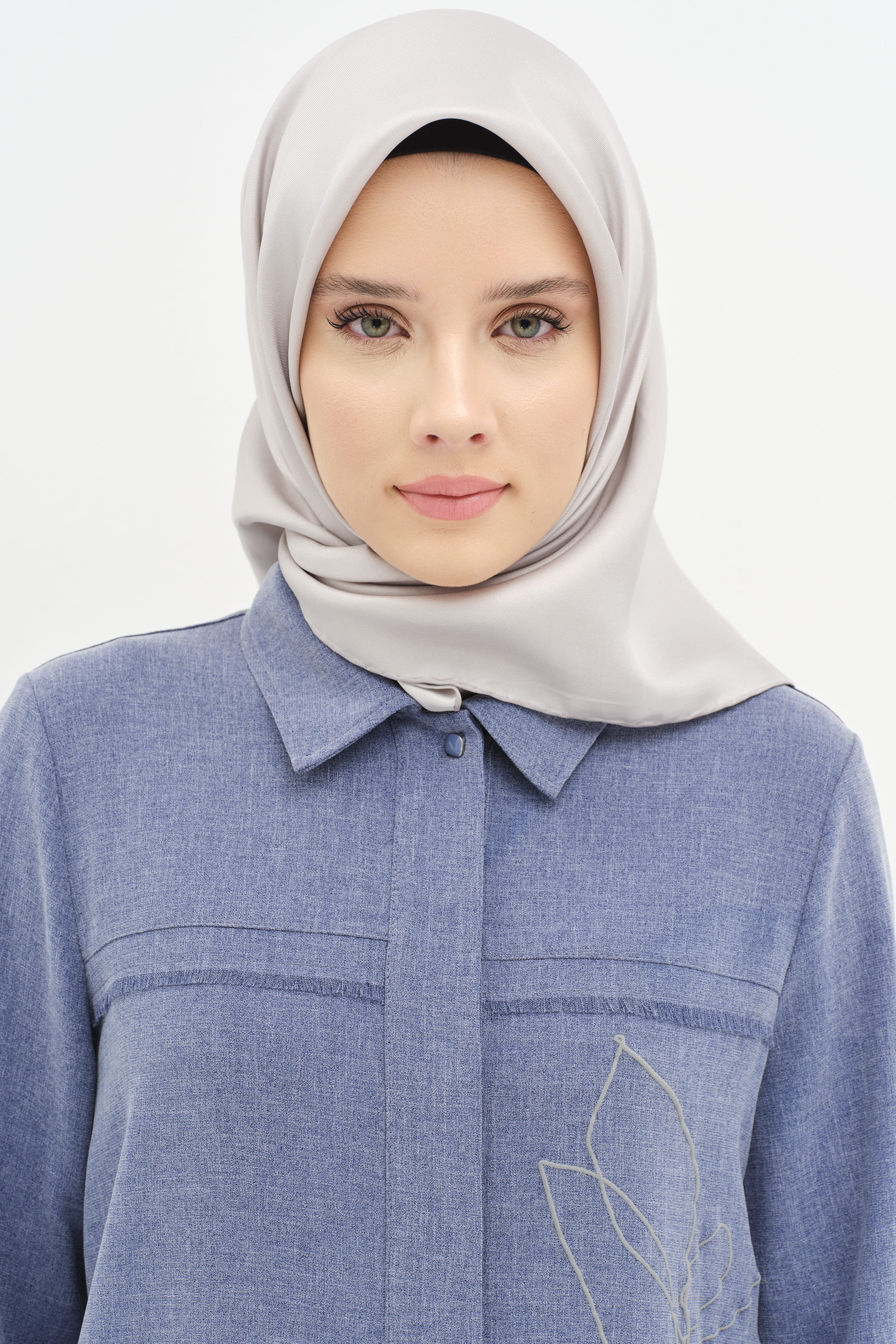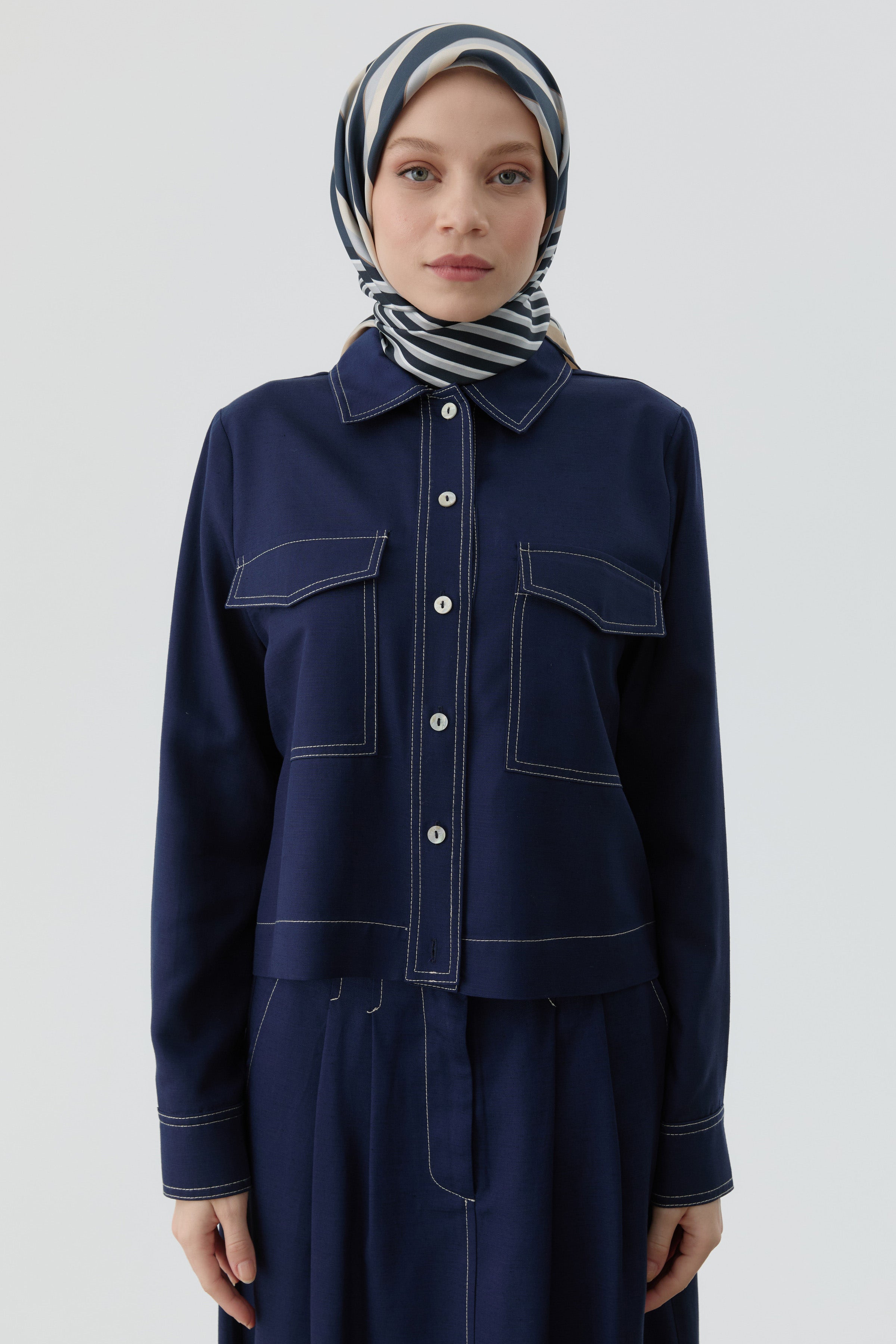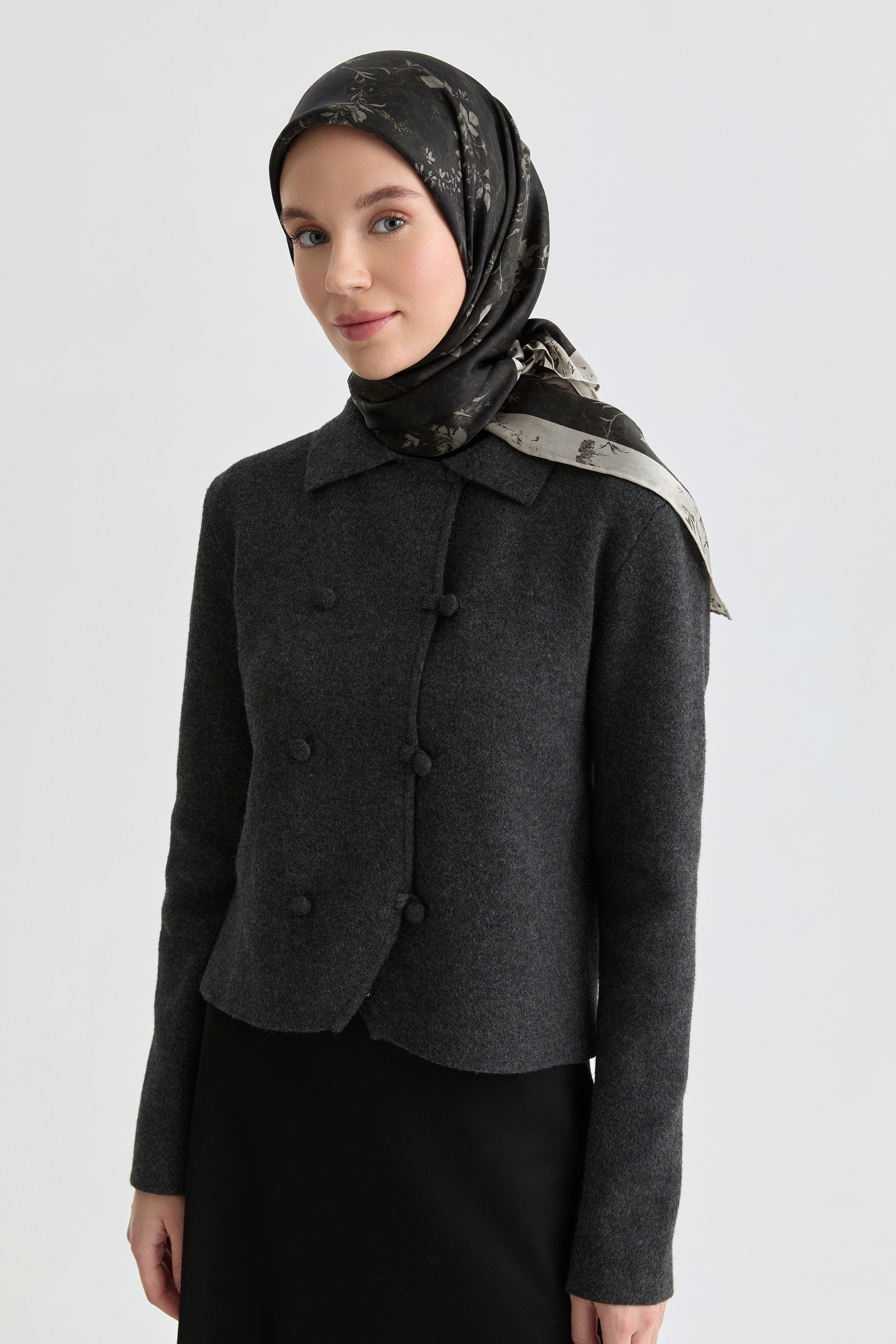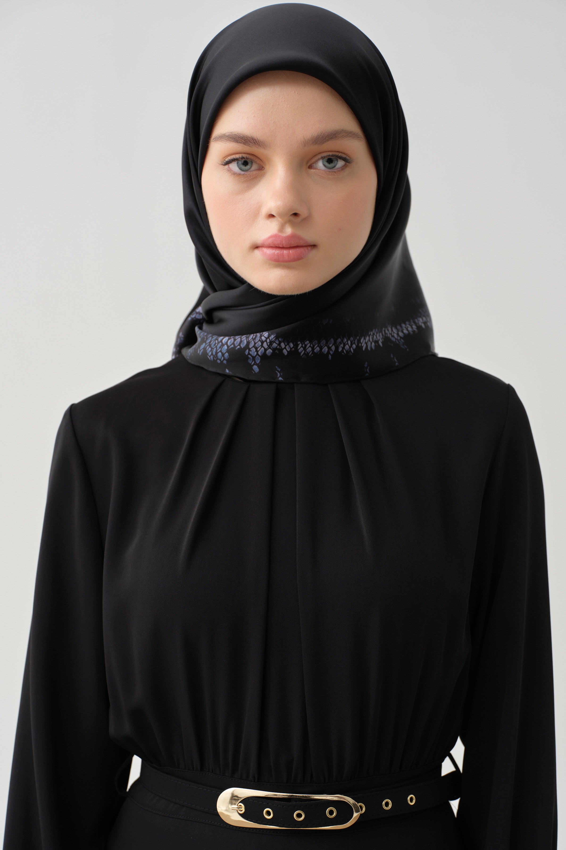 Tuğba Geometric Twill Silk Scarf - Black - Navy Blue