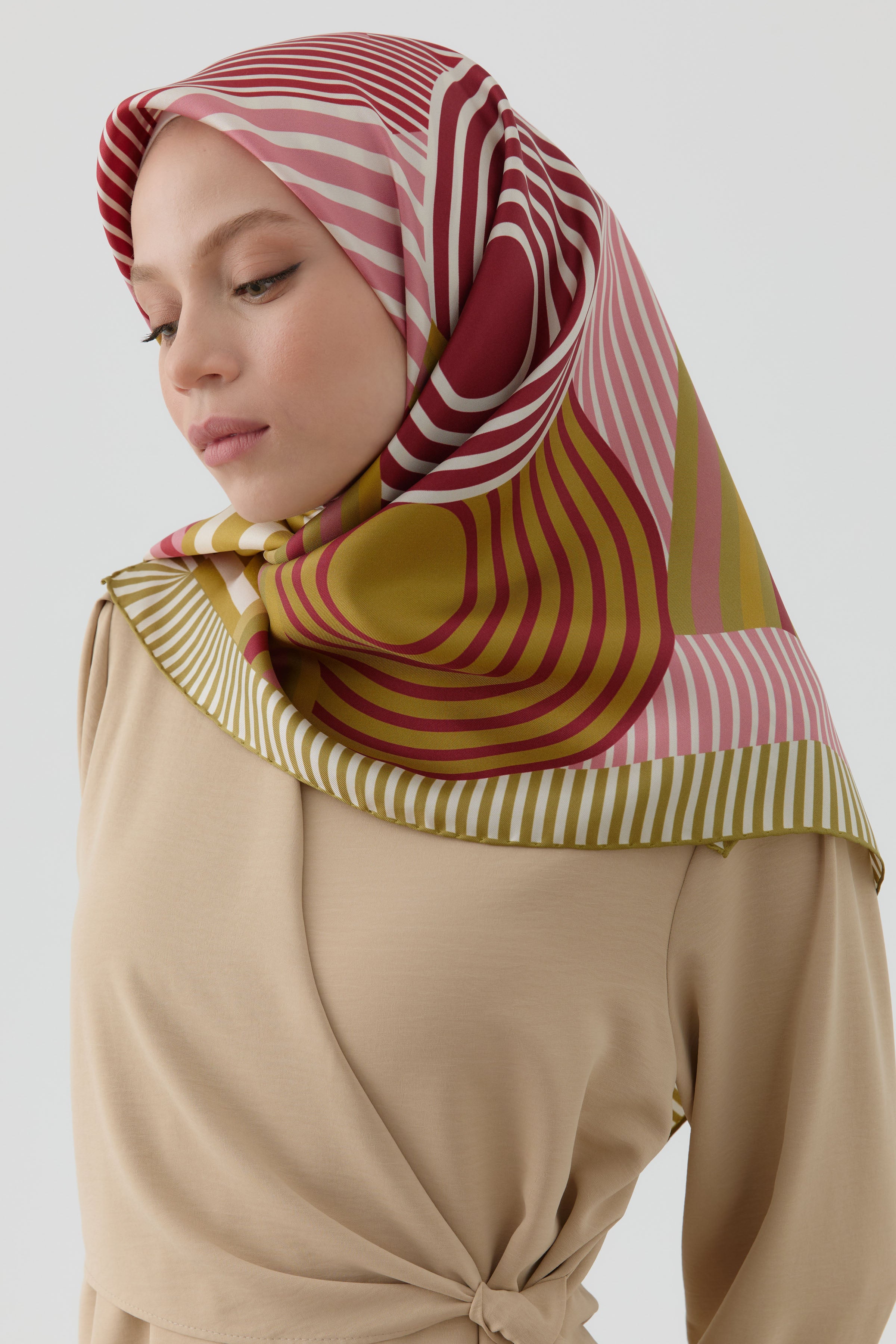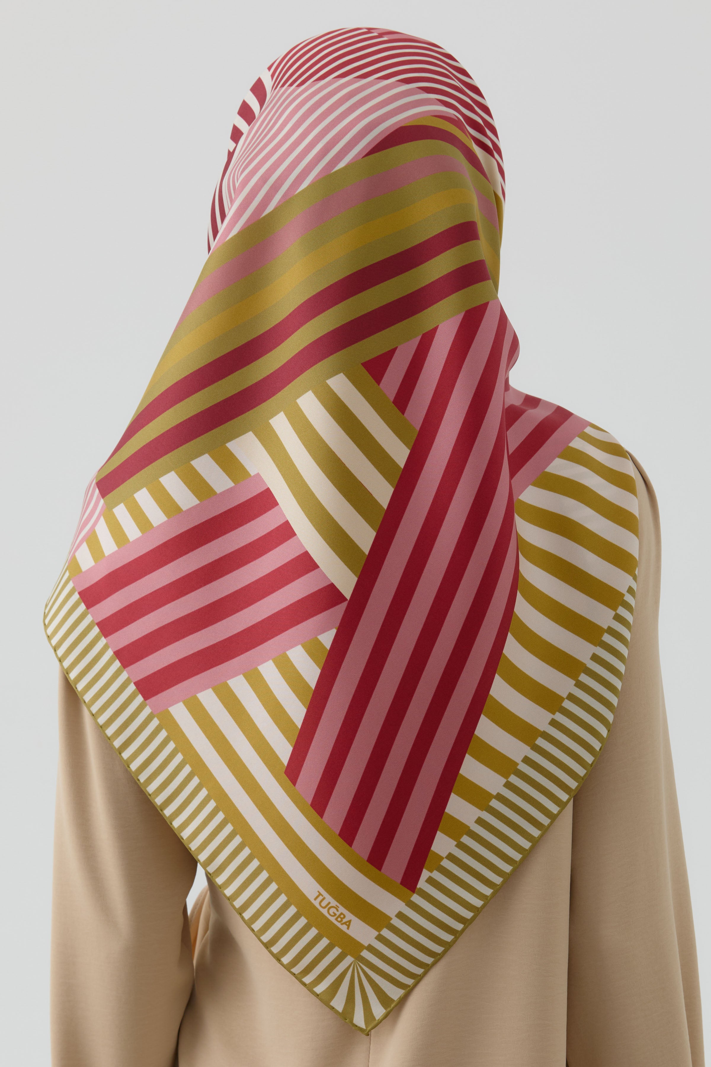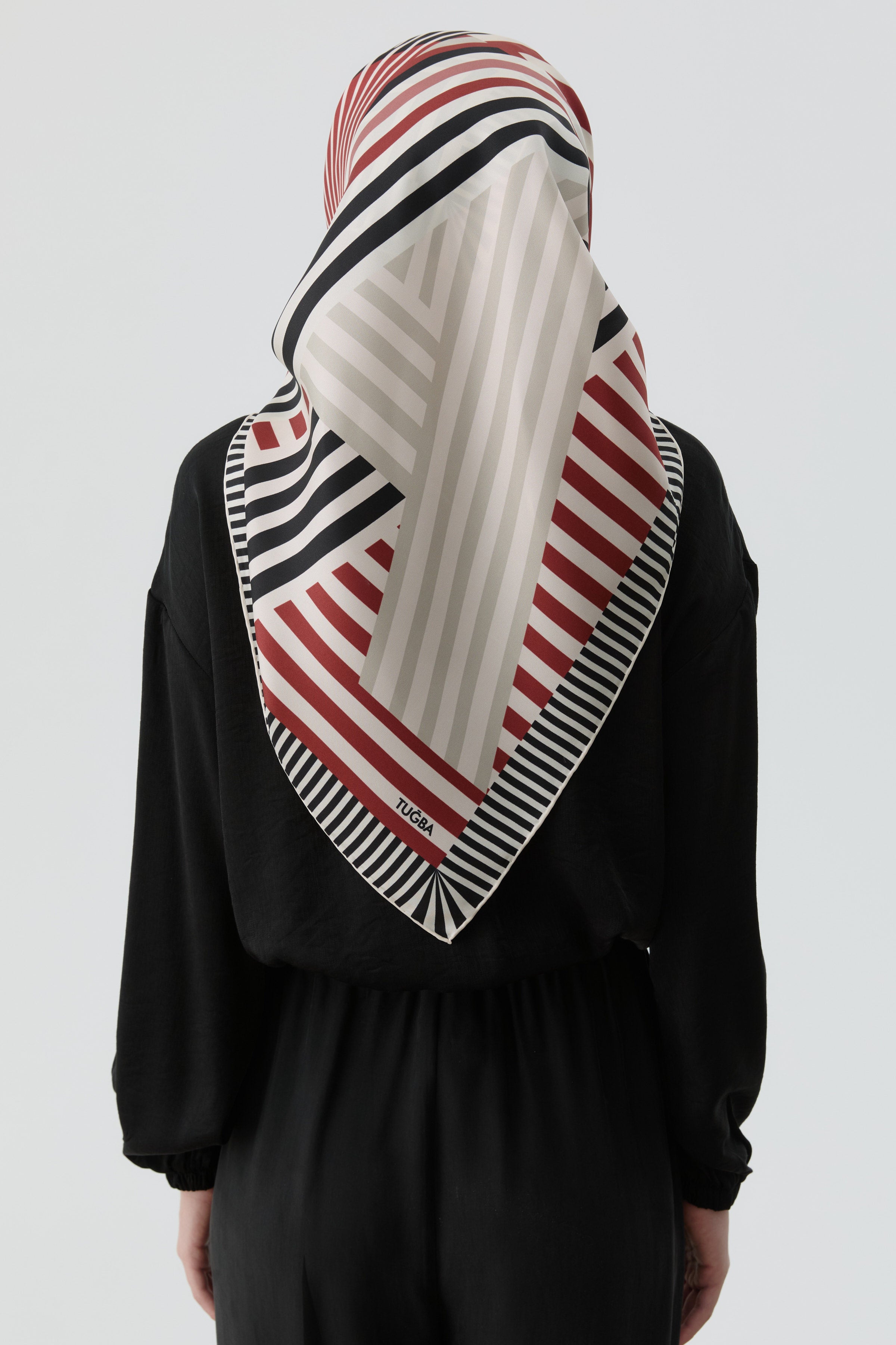 Tuğba Geometric Twill Silk Scarf - Red - Black