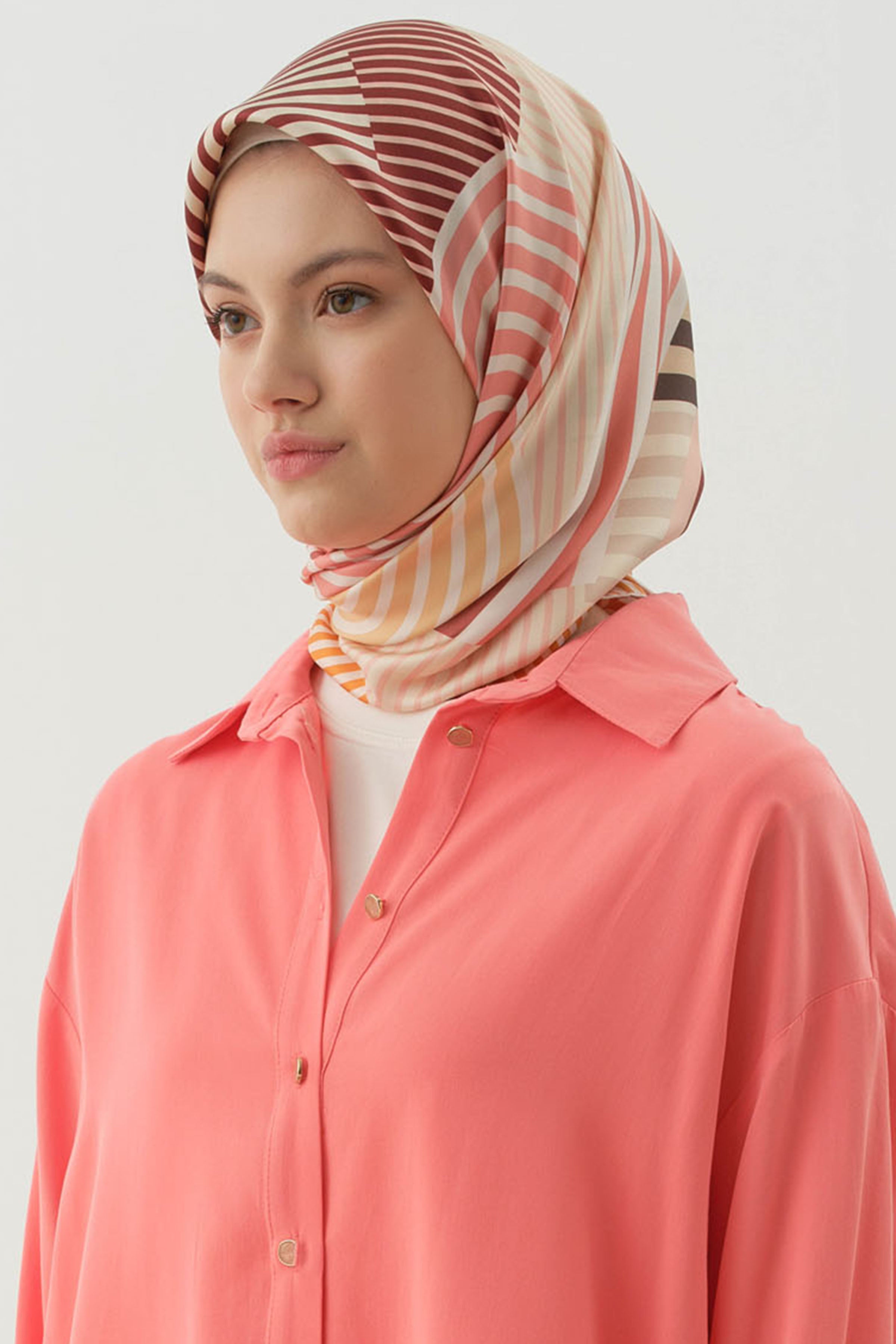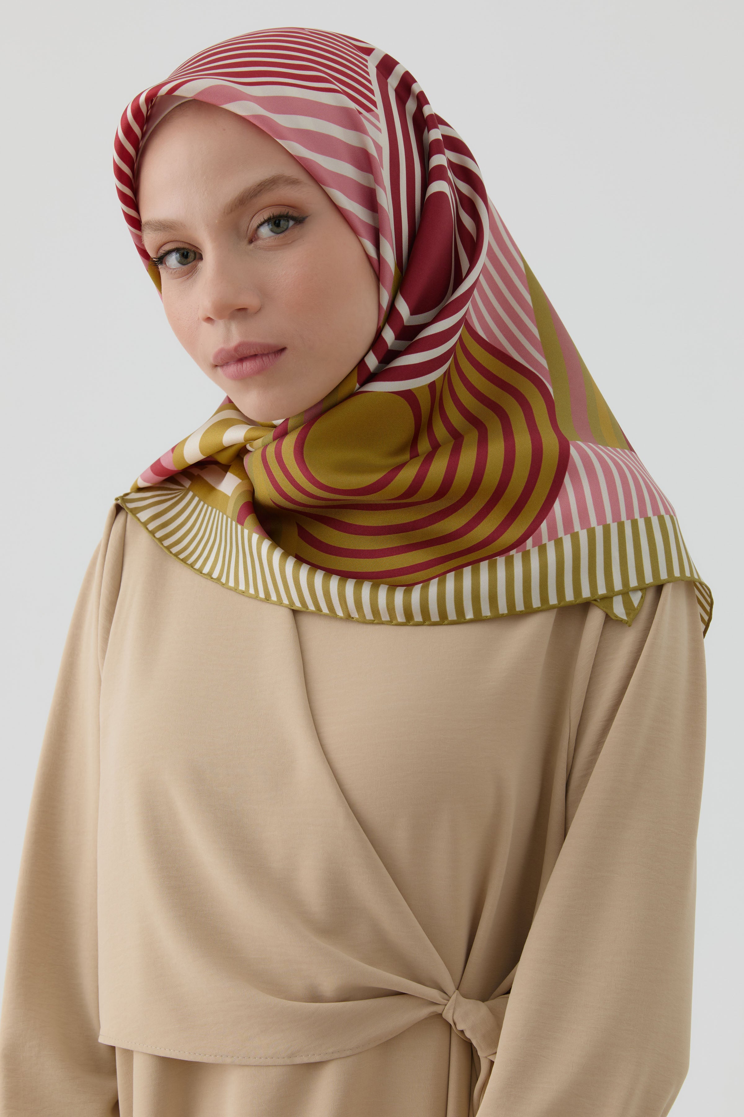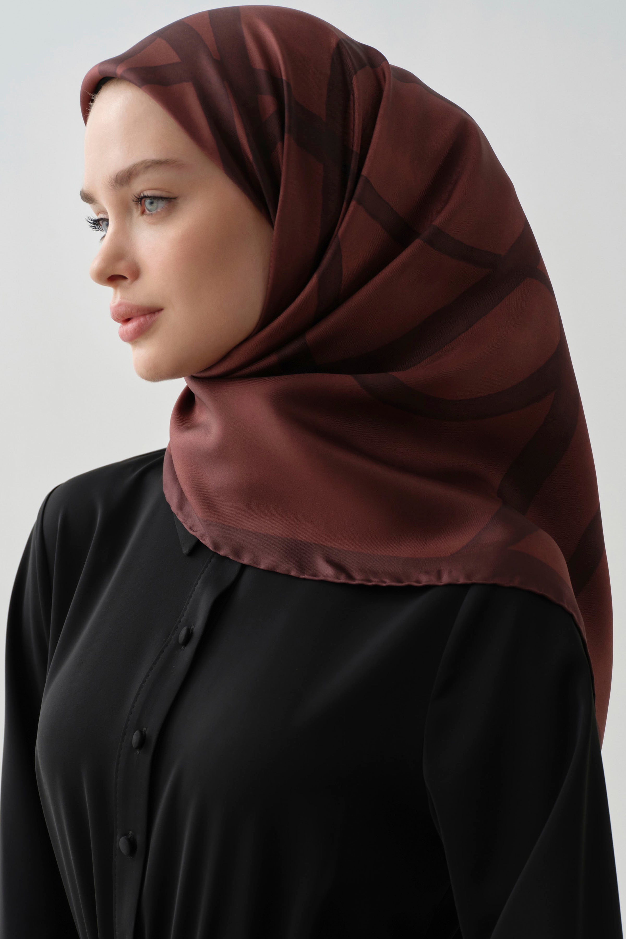 Tuğba Geometric Twill Silk Scarf - Red - Black
