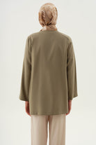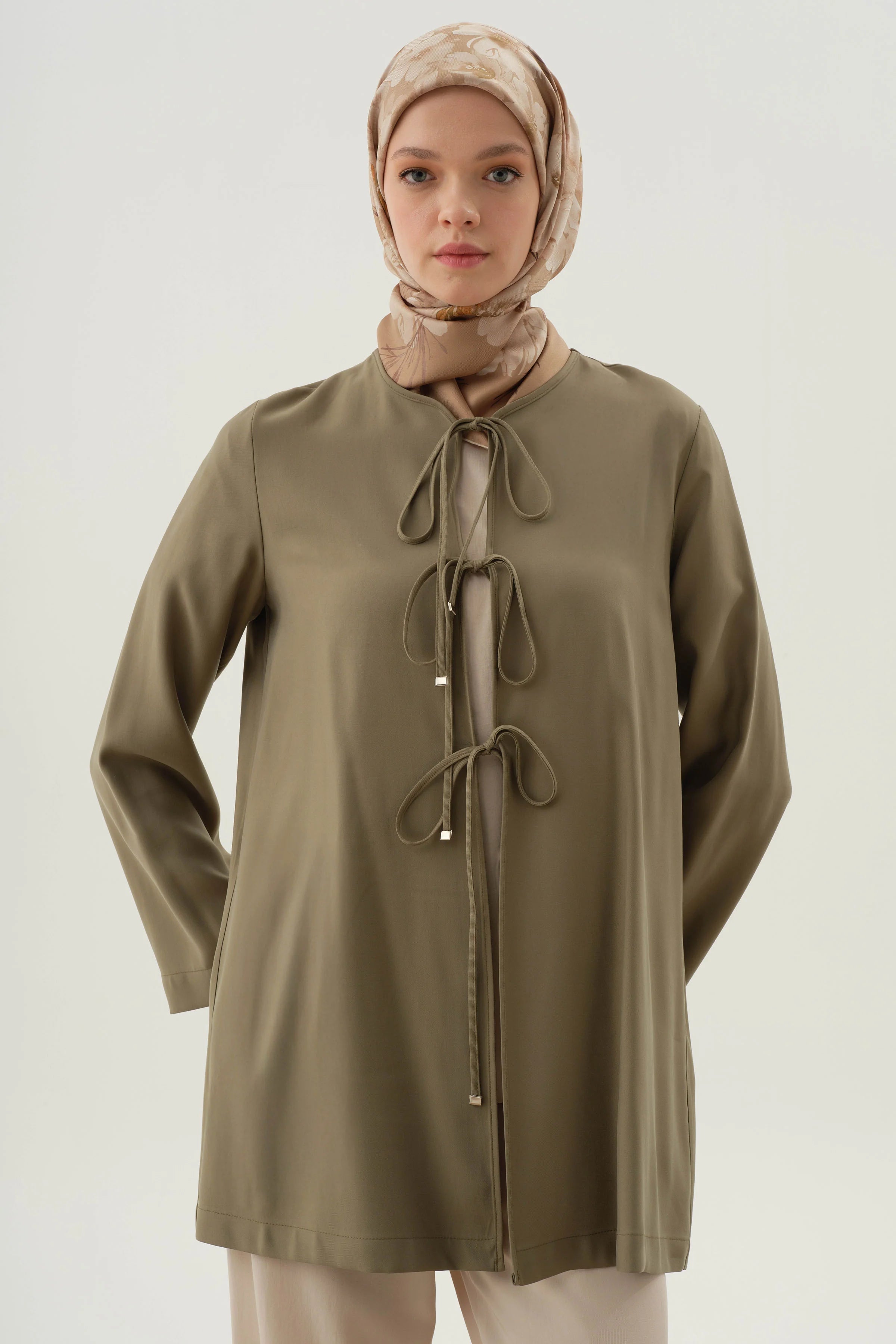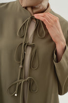 Kimono with piping and tie at the front - Khaki
