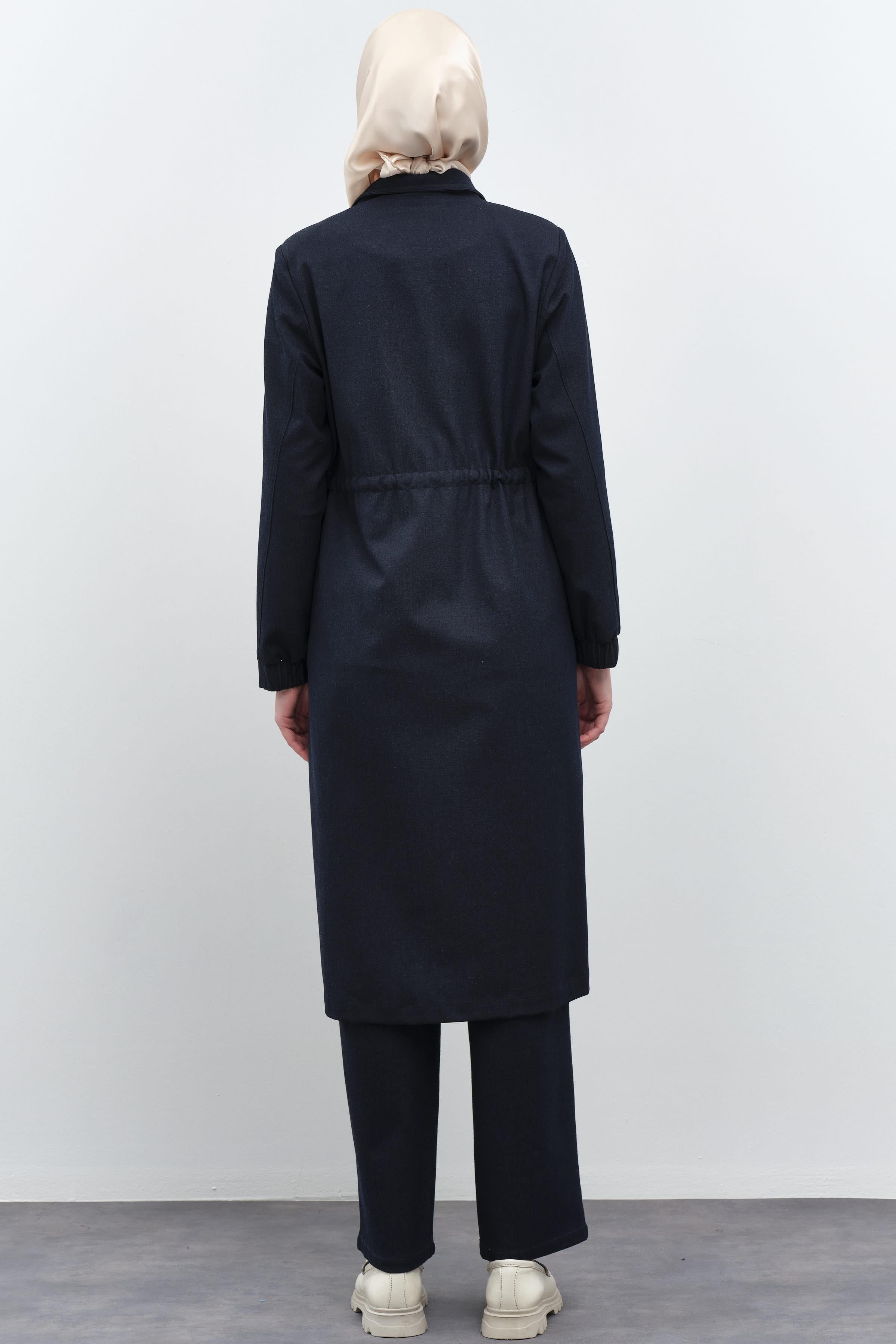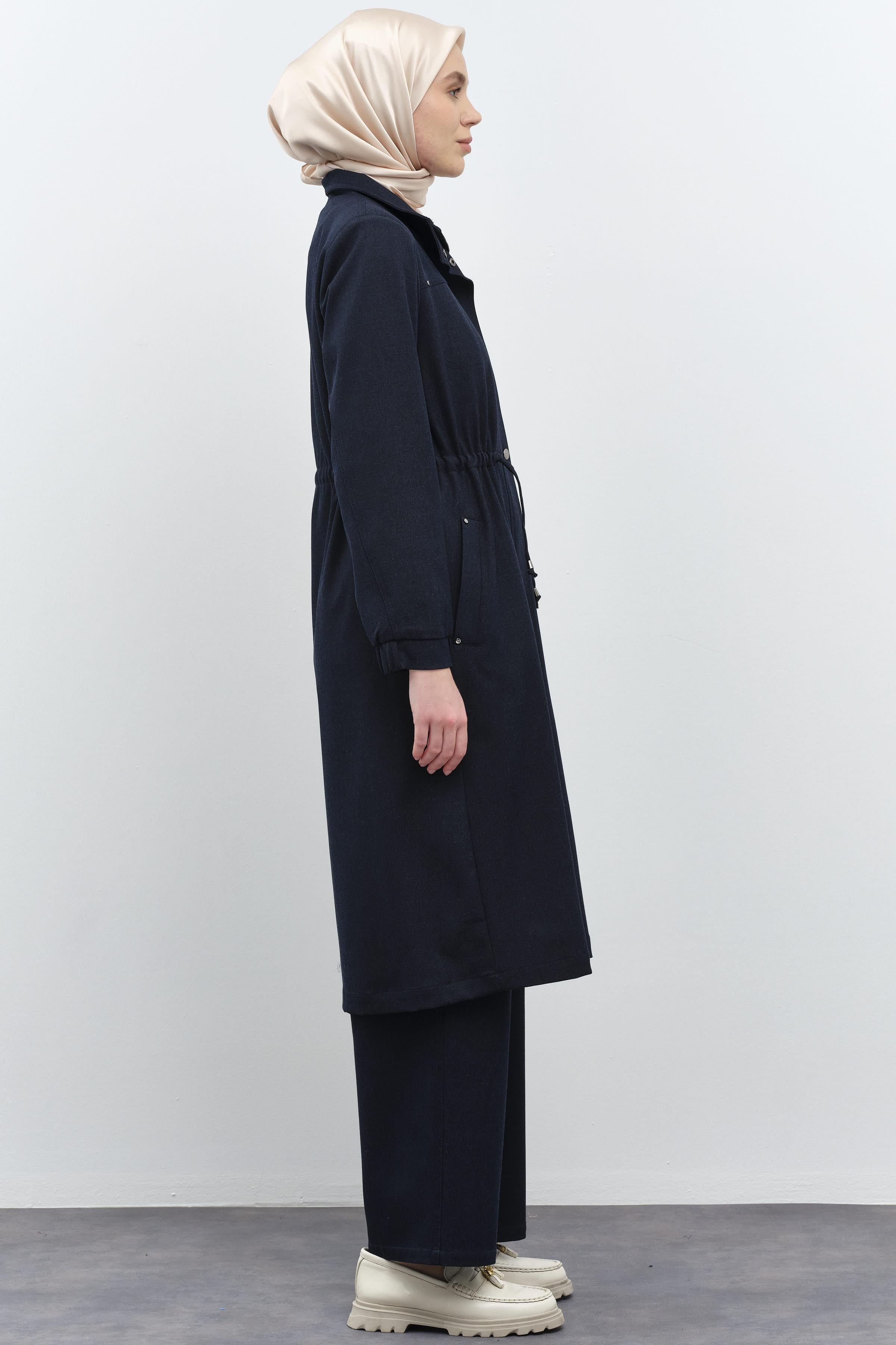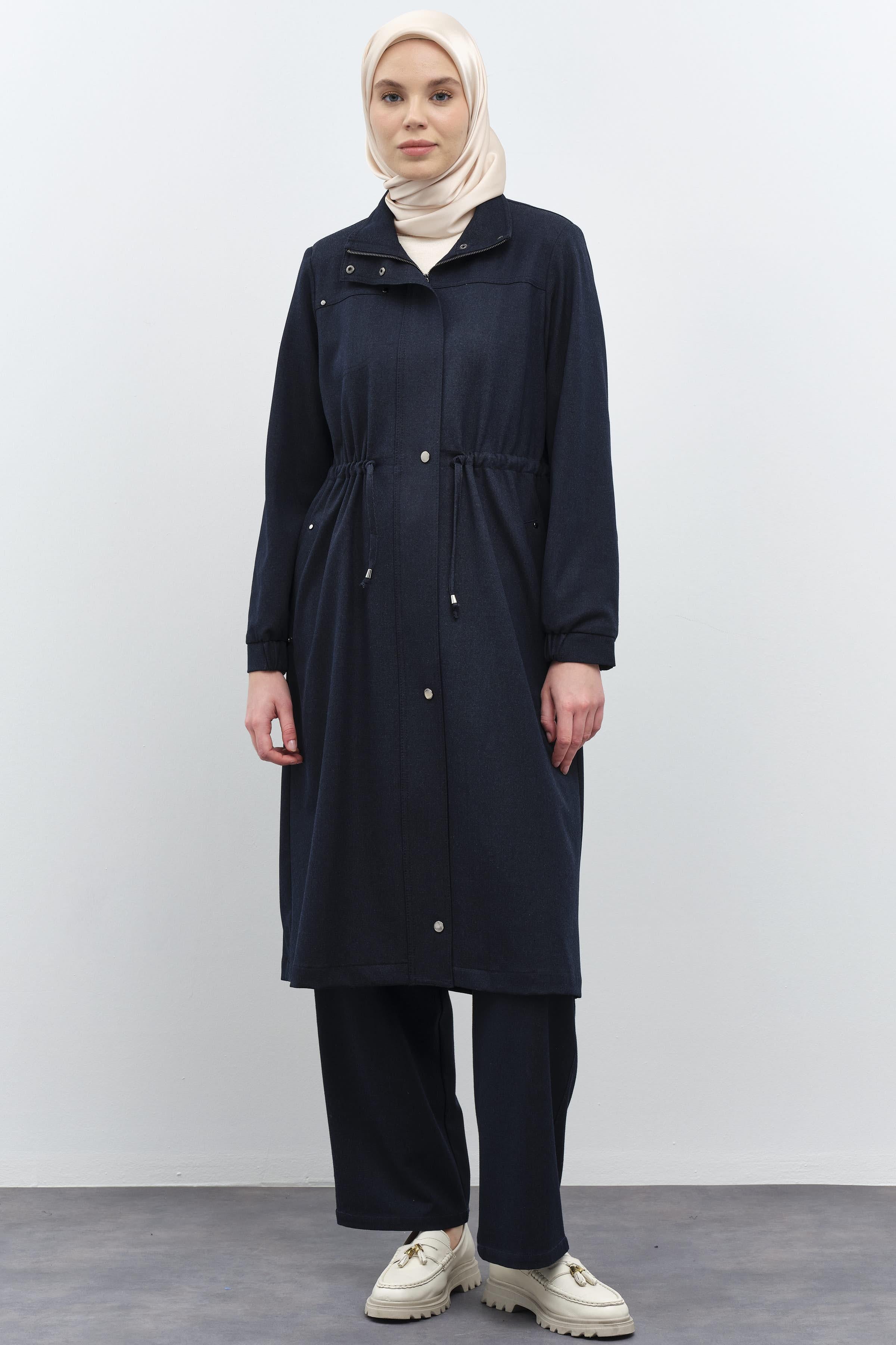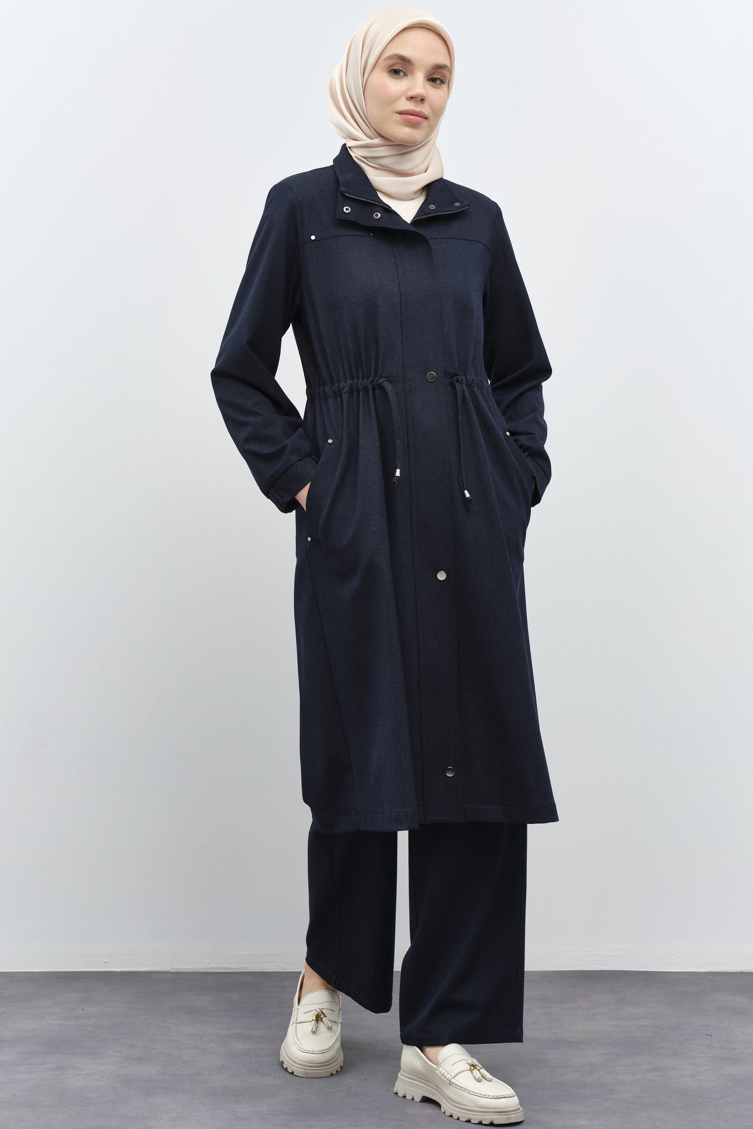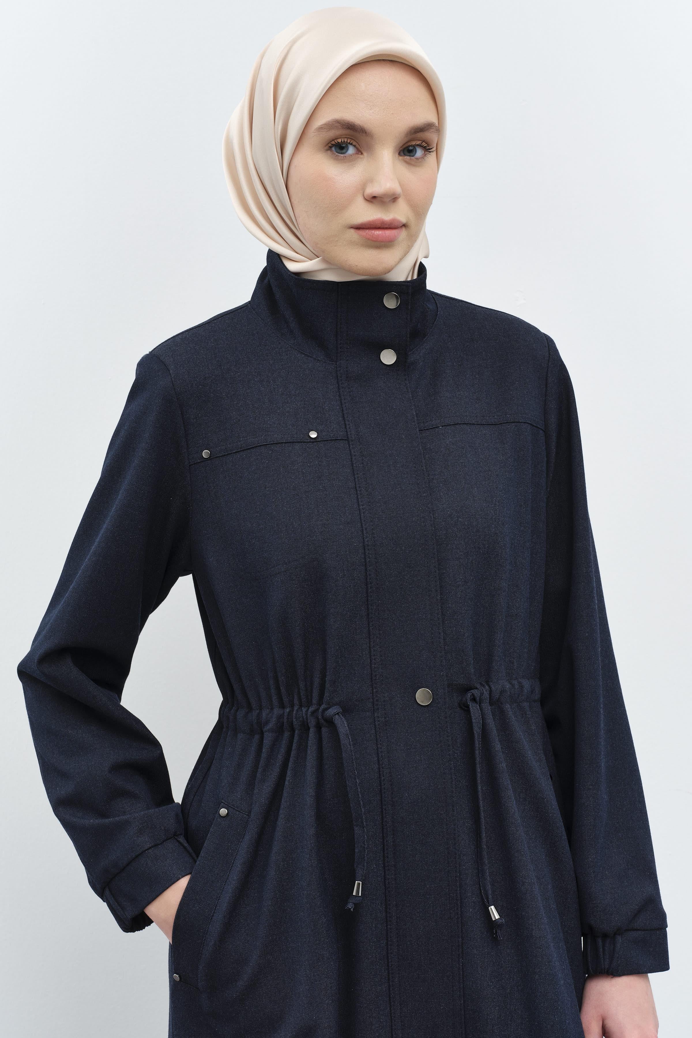 Double Collar Buttoned Detailed Trench Coat - Indigo