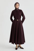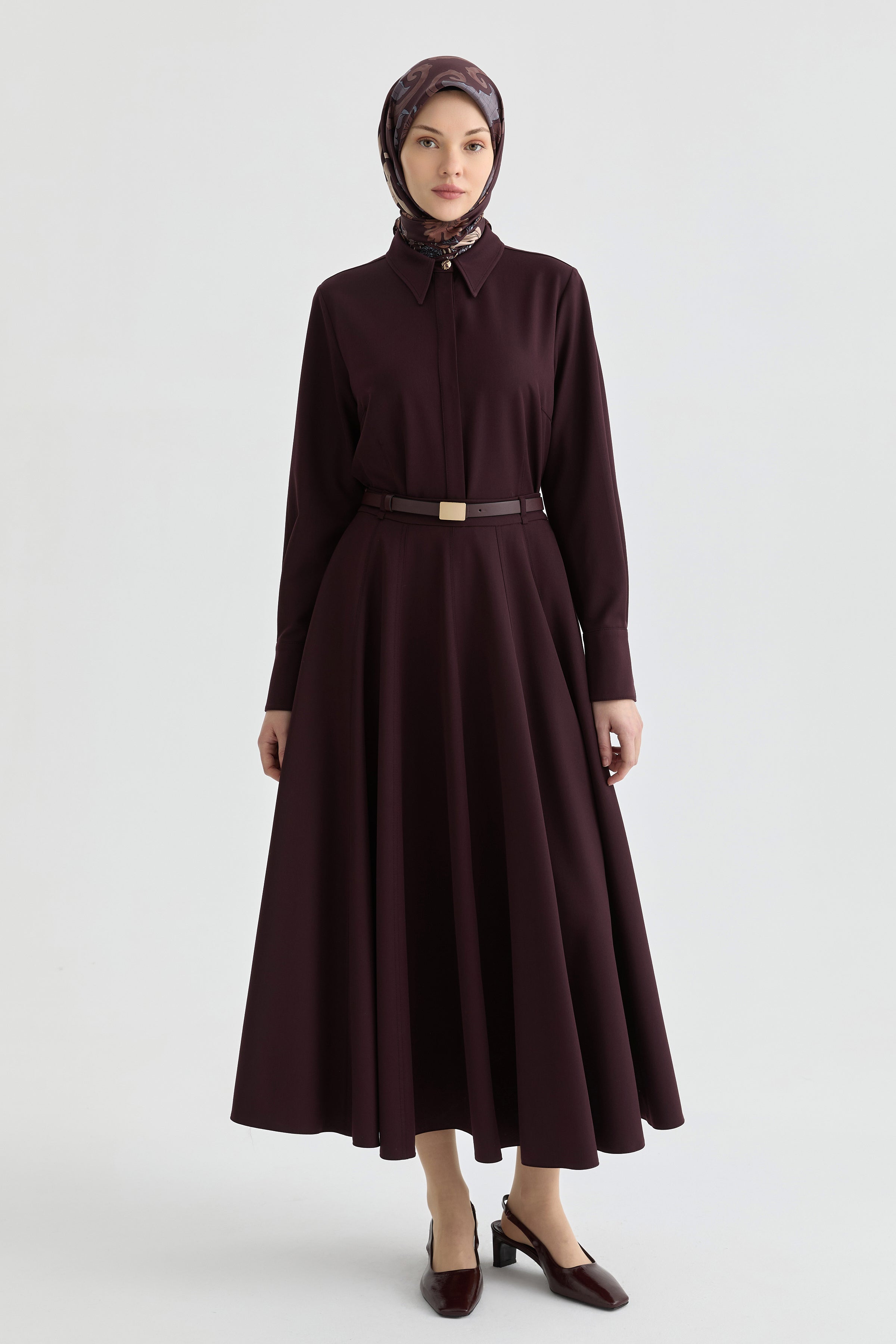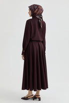 Jupe godet avec ceinture - Bordeaux
