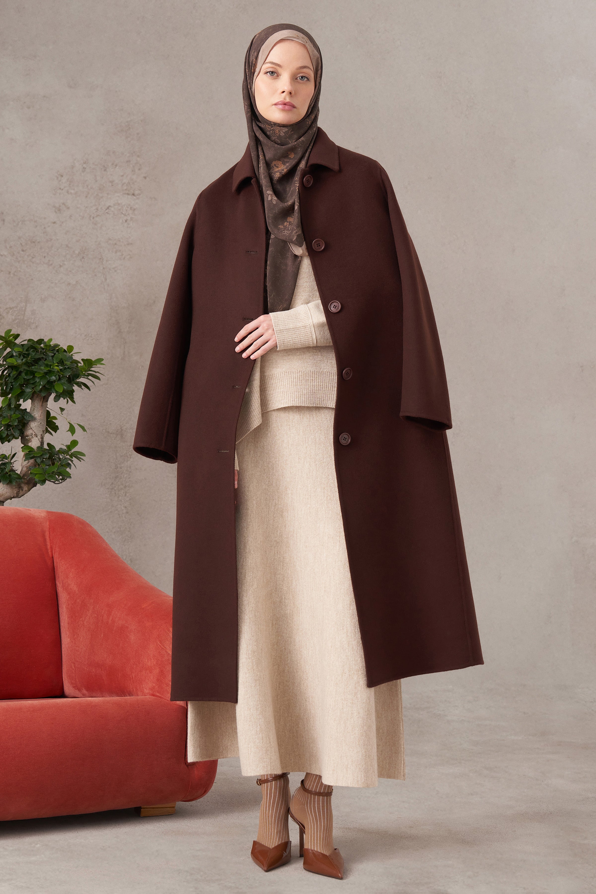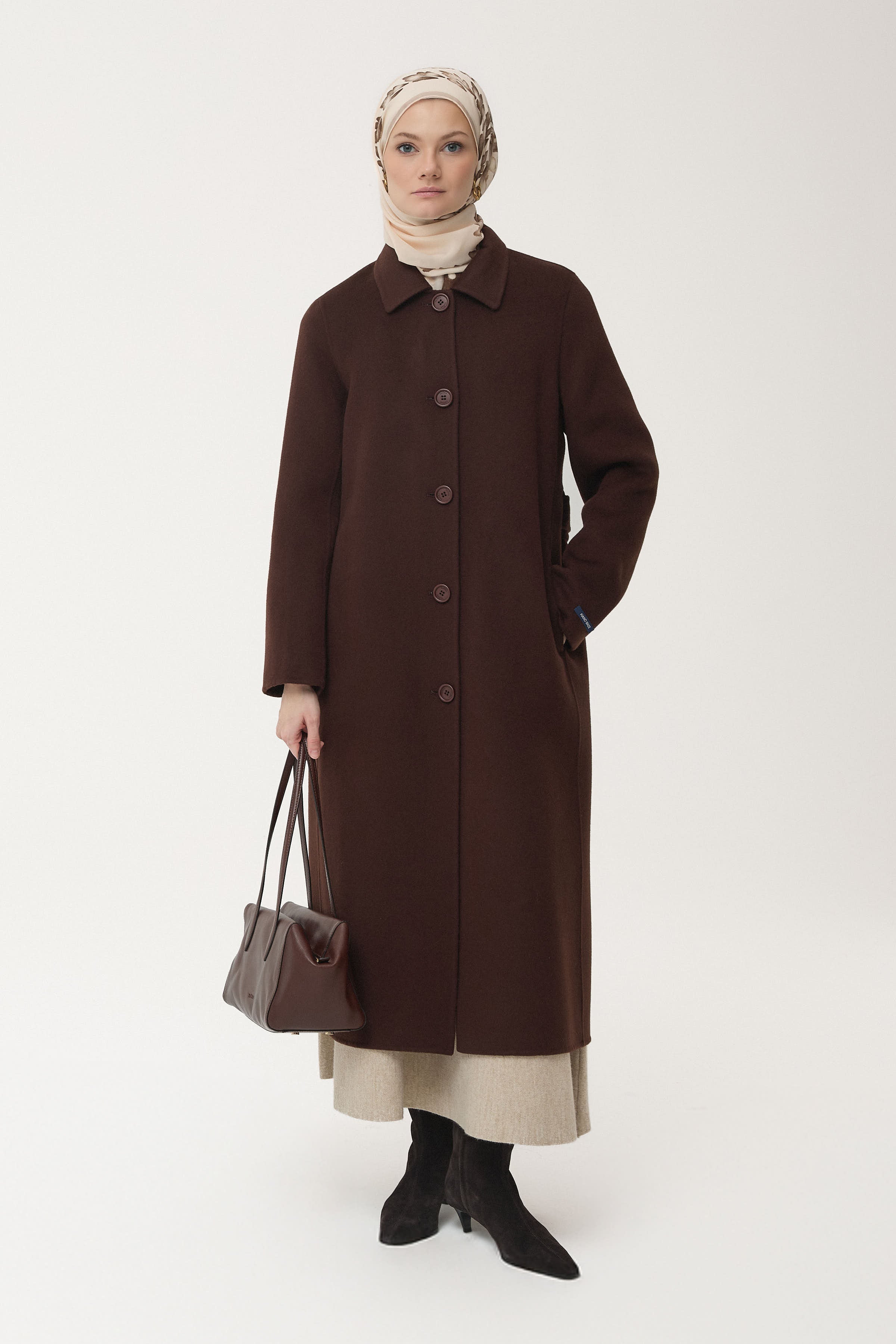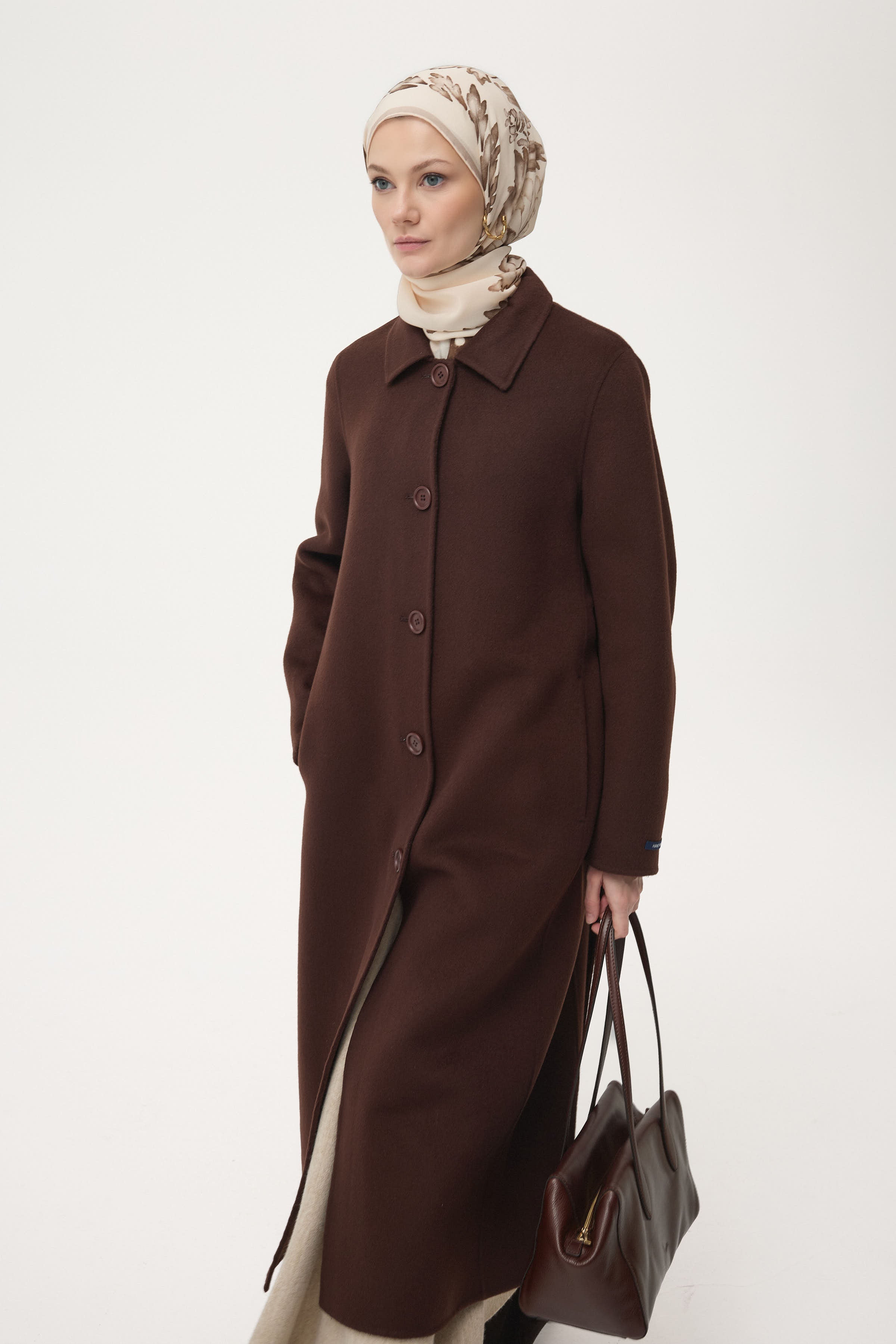 Handmade 100% Wool Shirt Collar Coat - Coffee