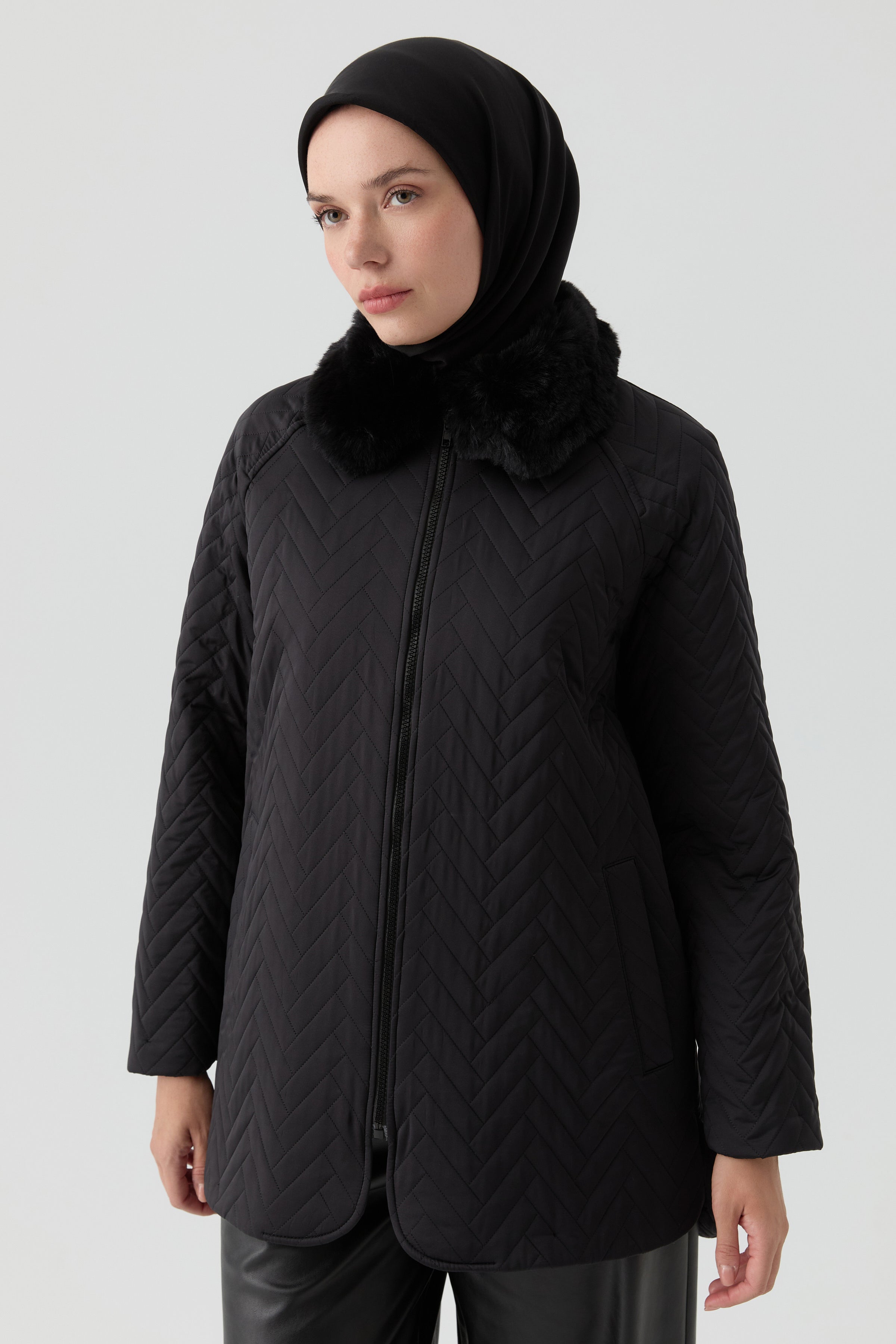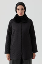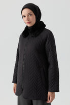 Quilted coat with plush trim - Black