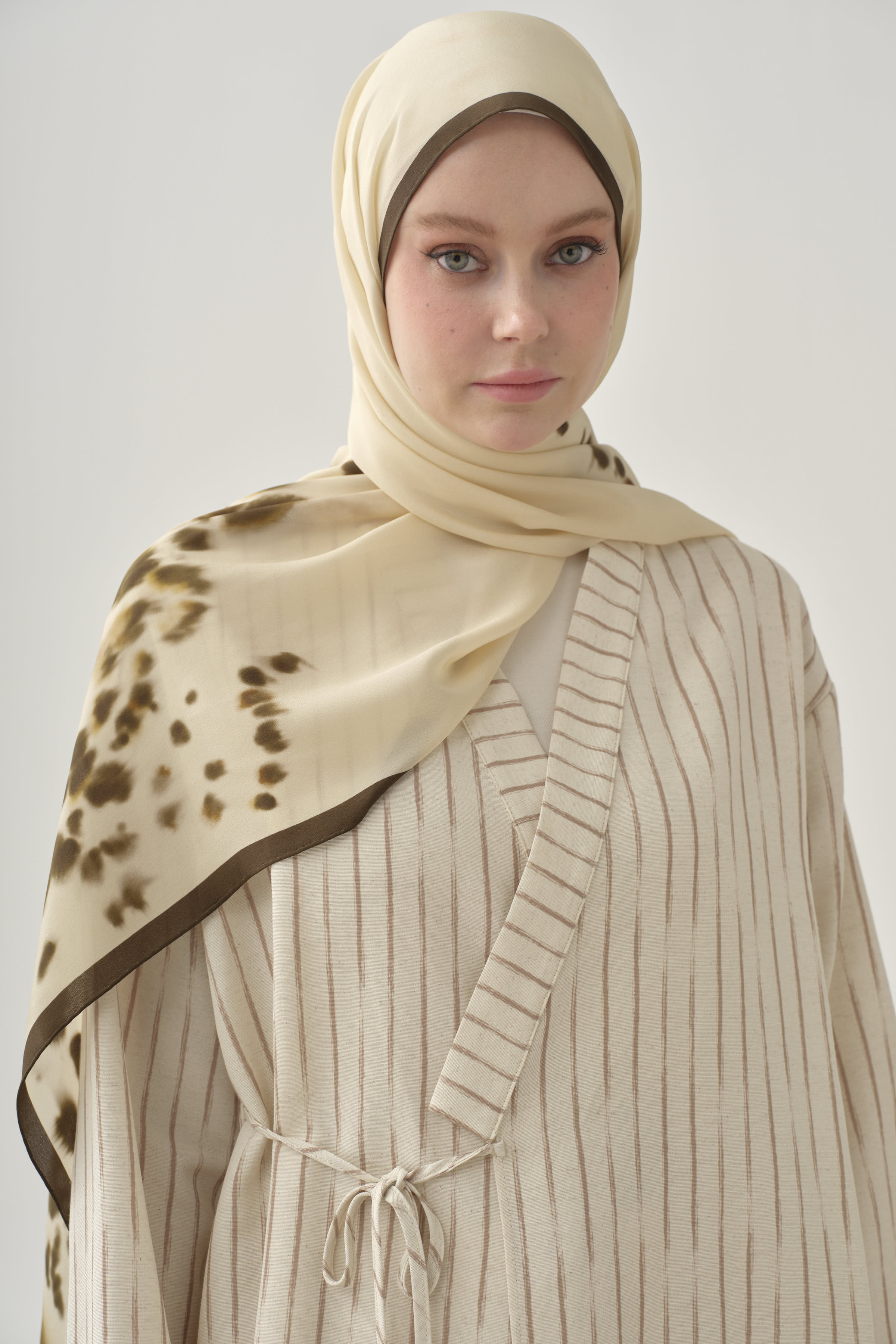 Striped kimono with knot detail - Beige