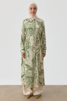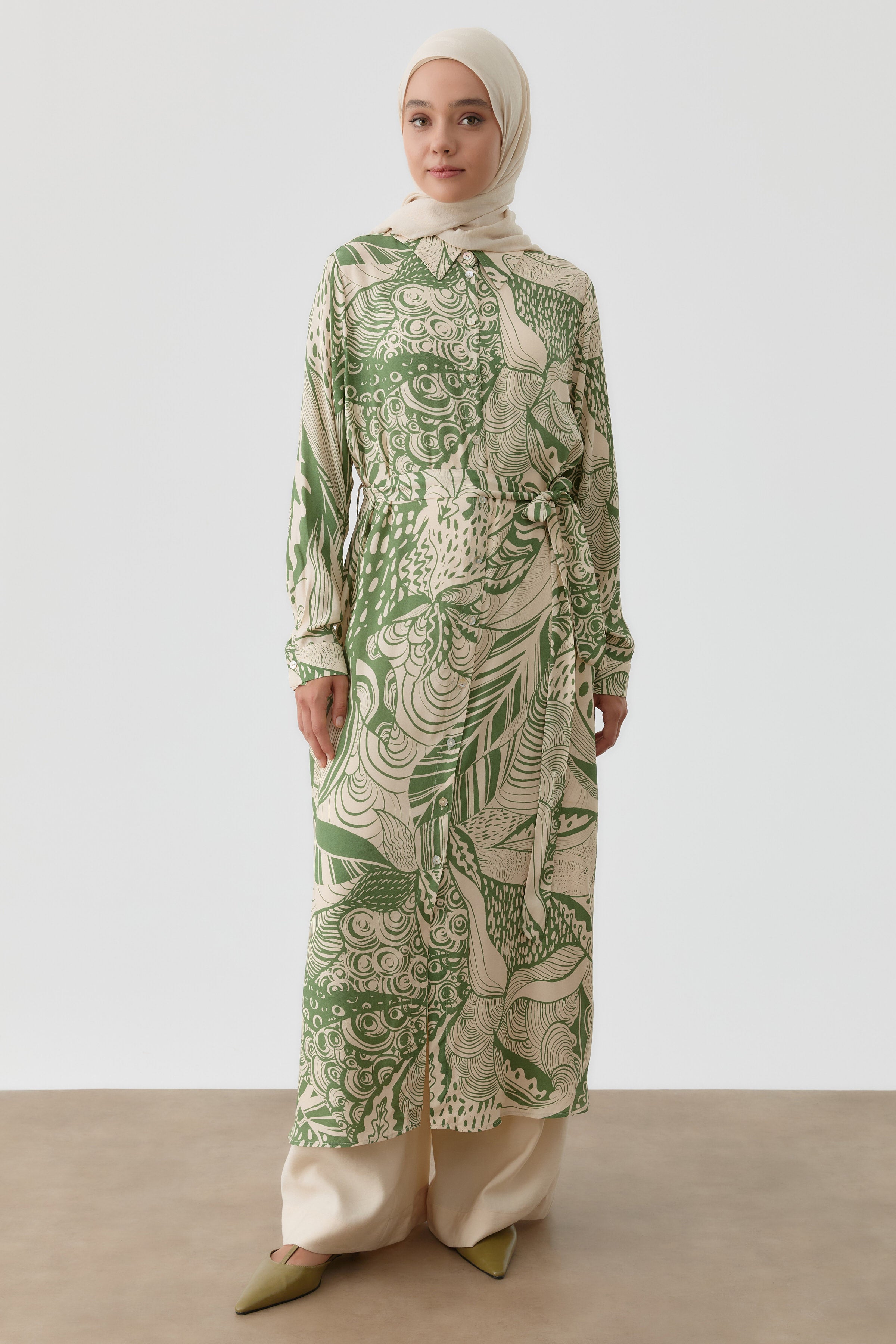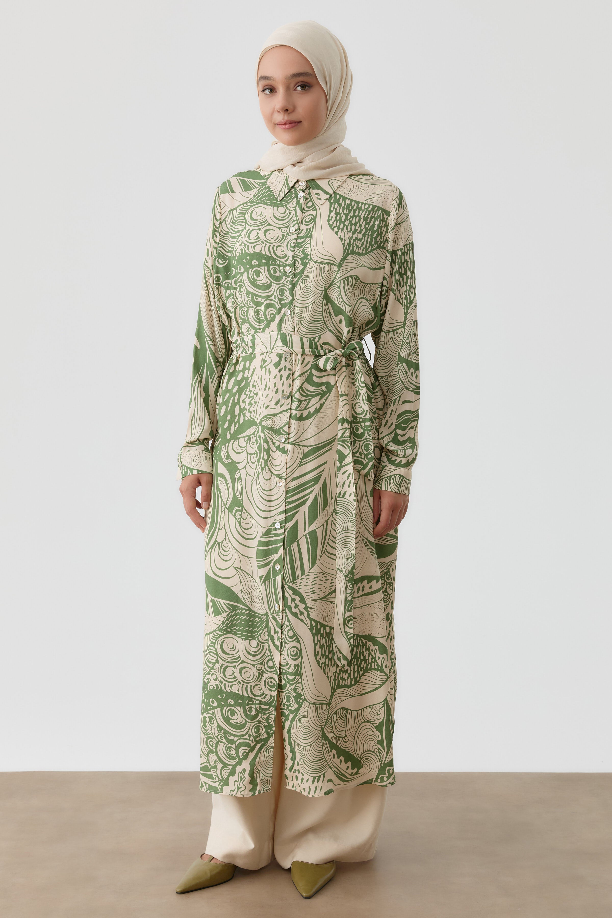 Long belted patterned tunic - Khaki