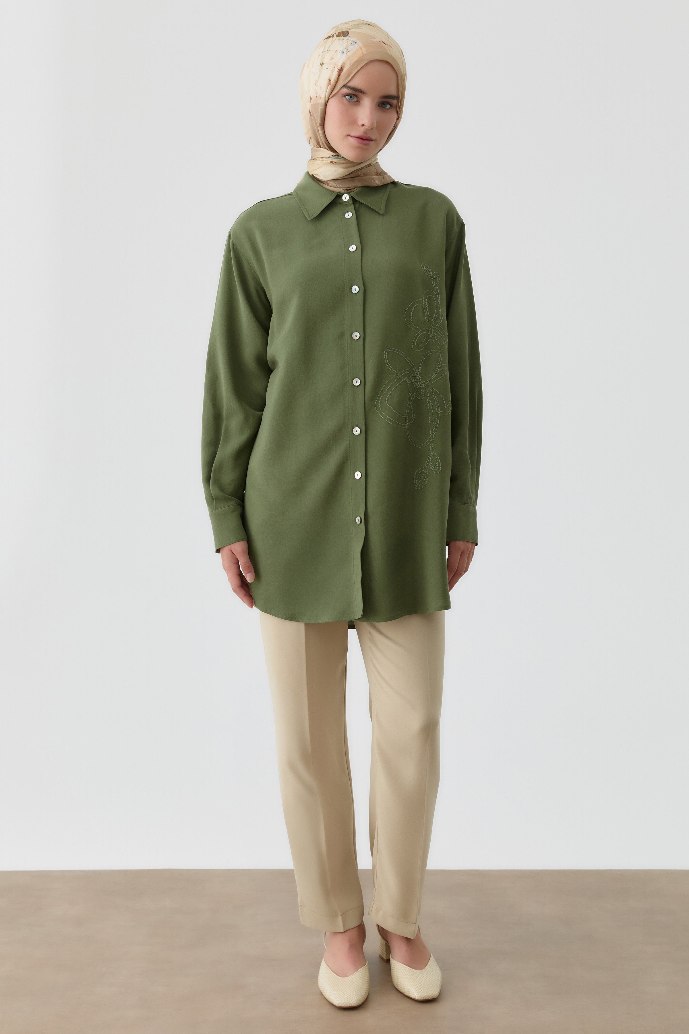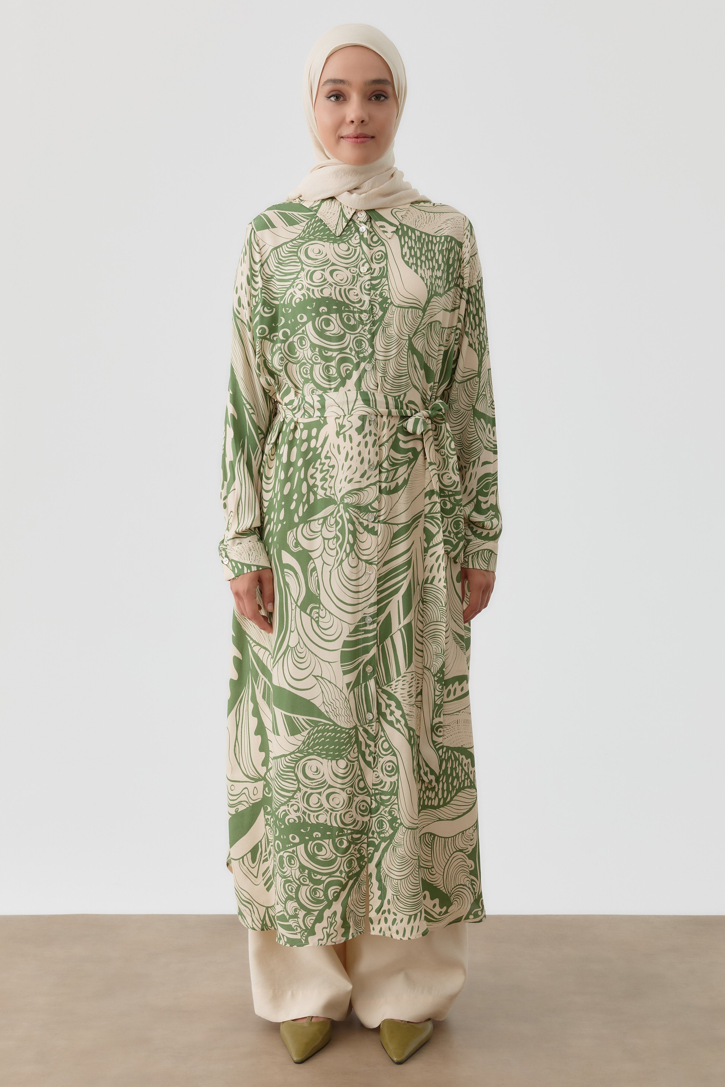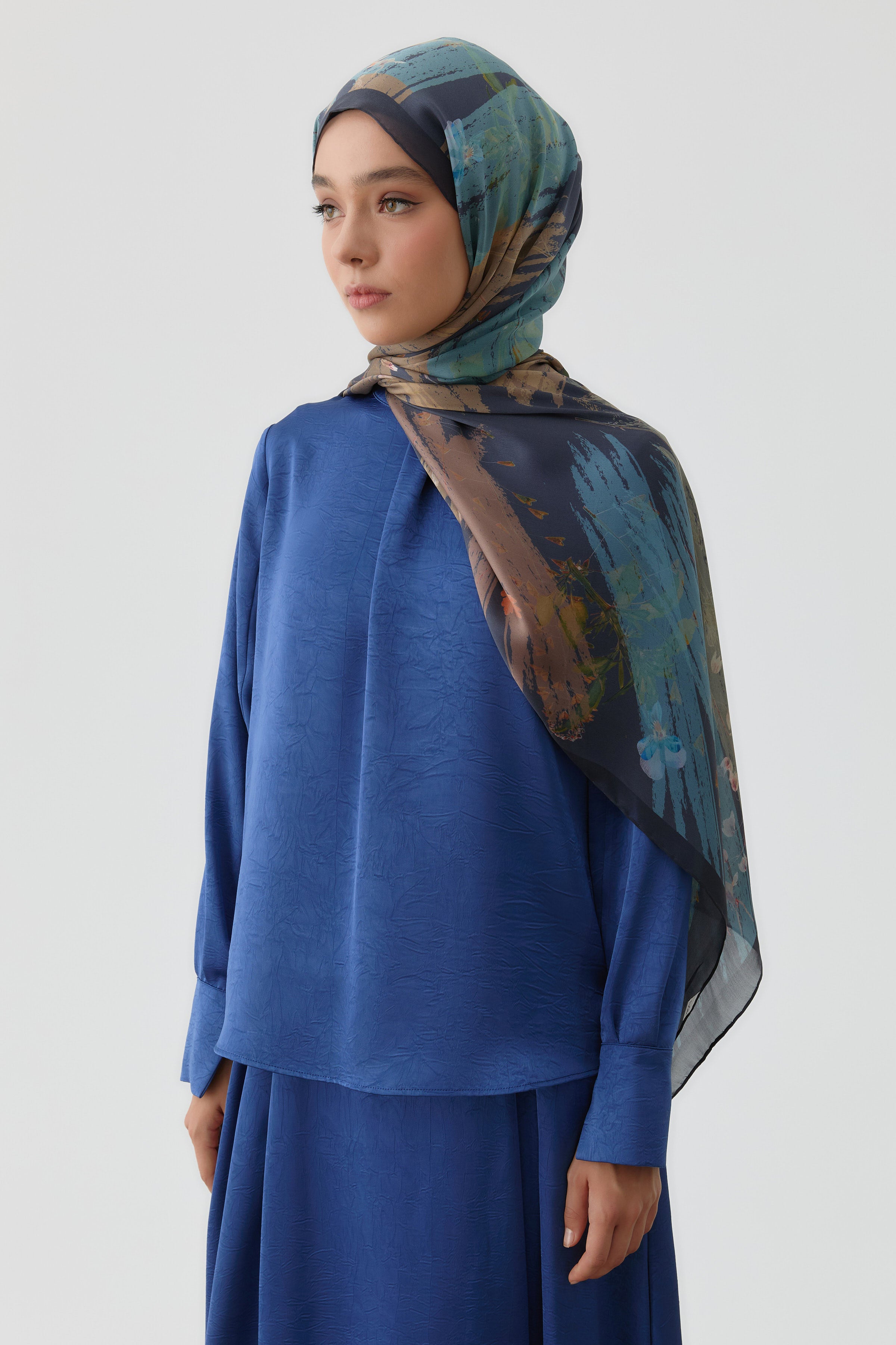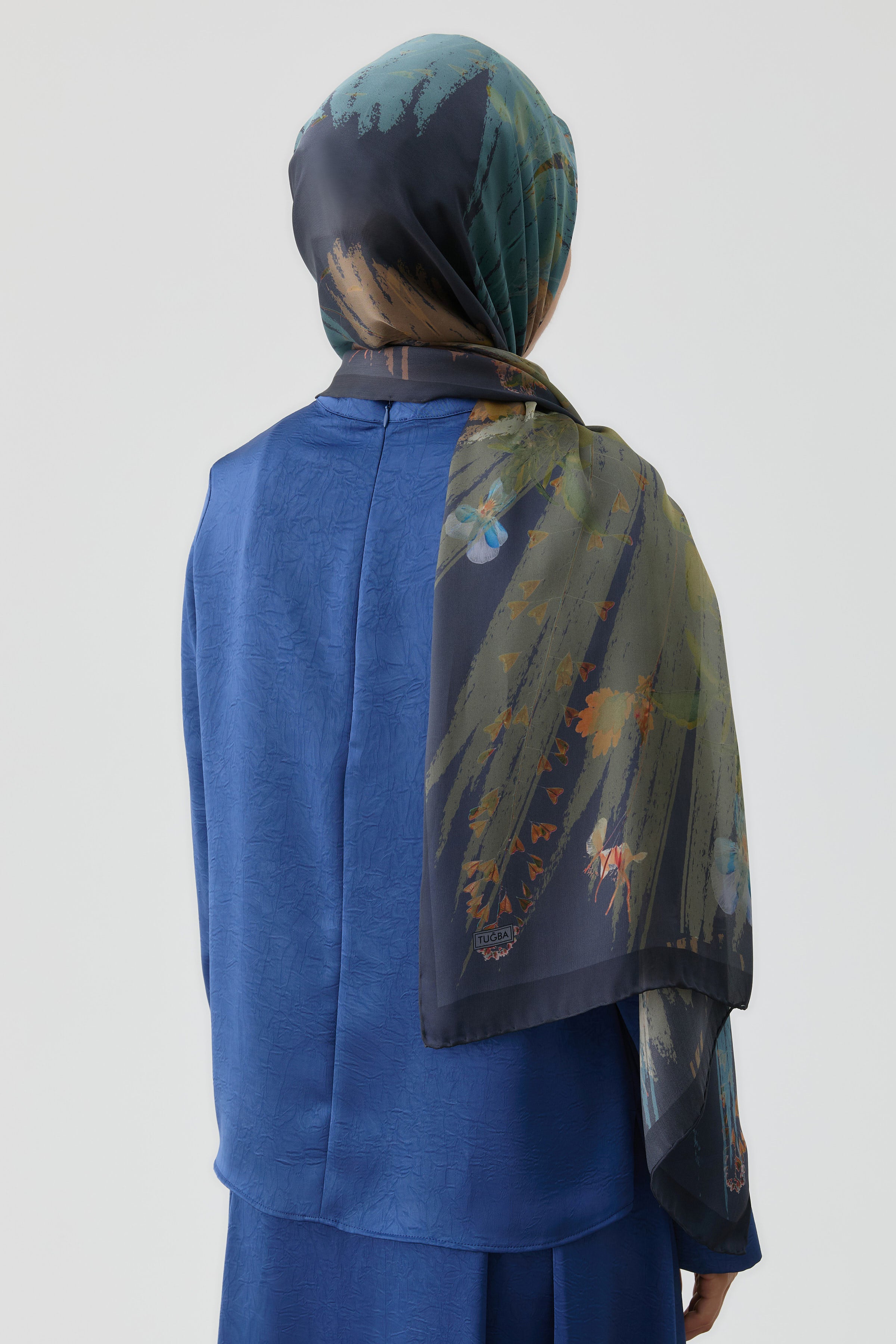 Tuğba Geometric Twill Silk Scarf - Light Green