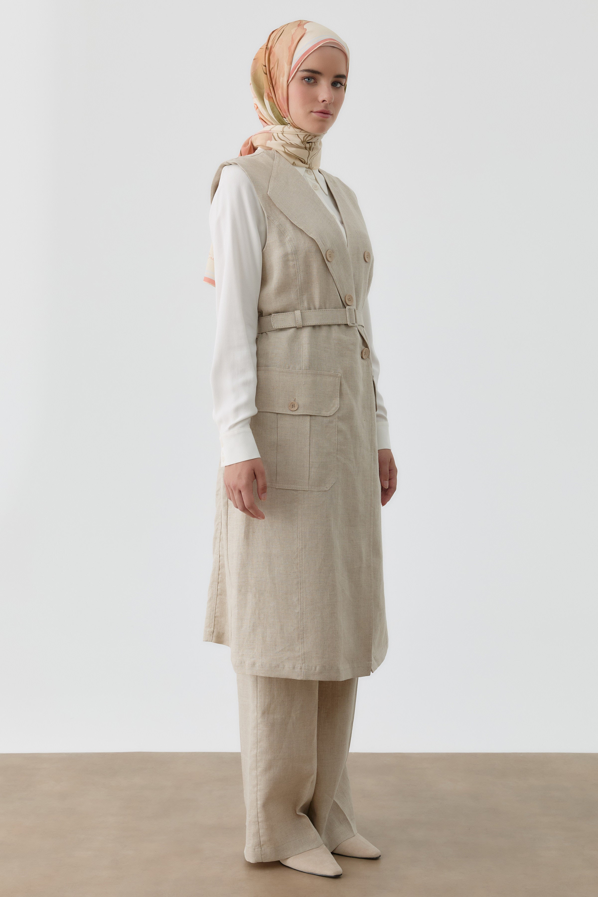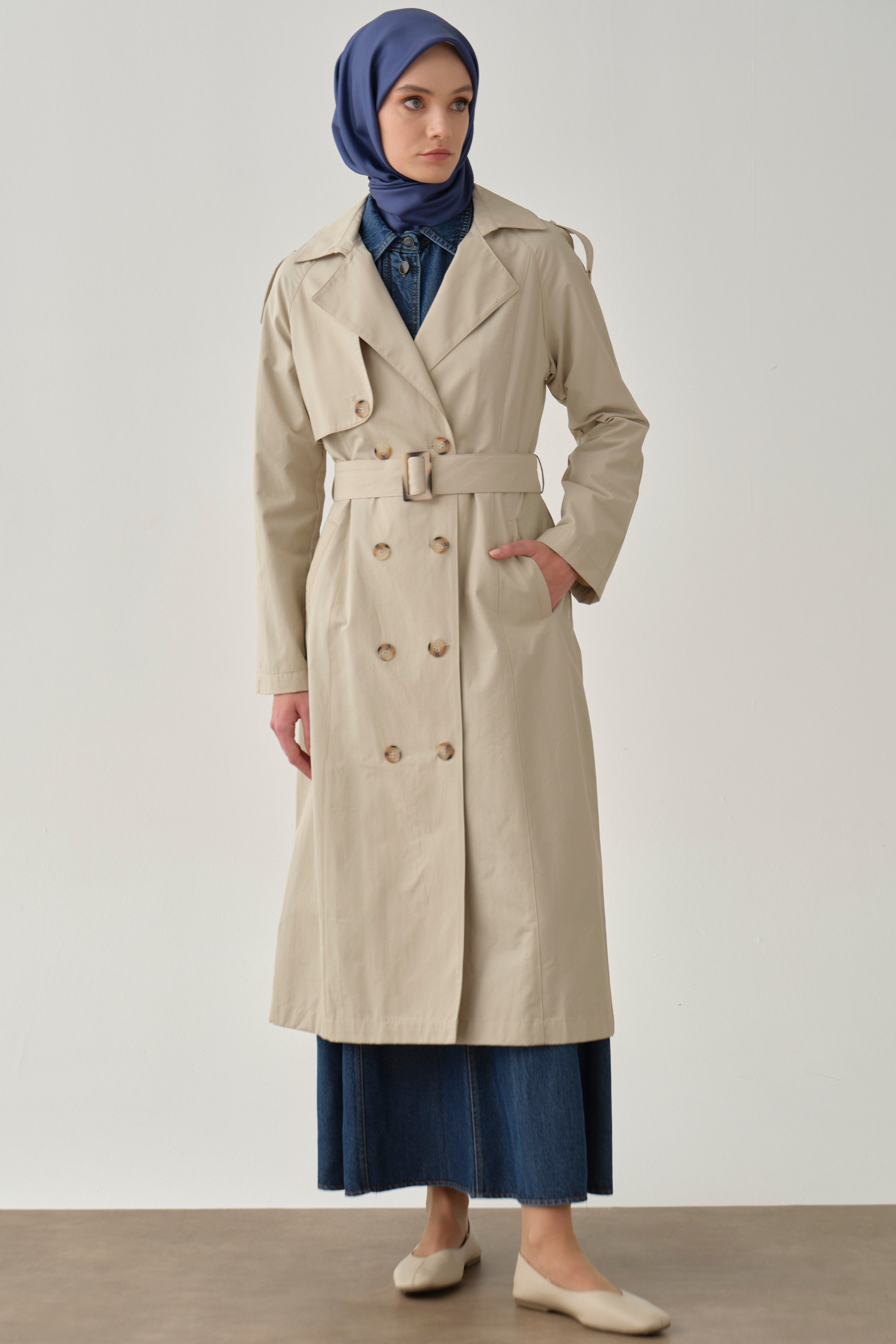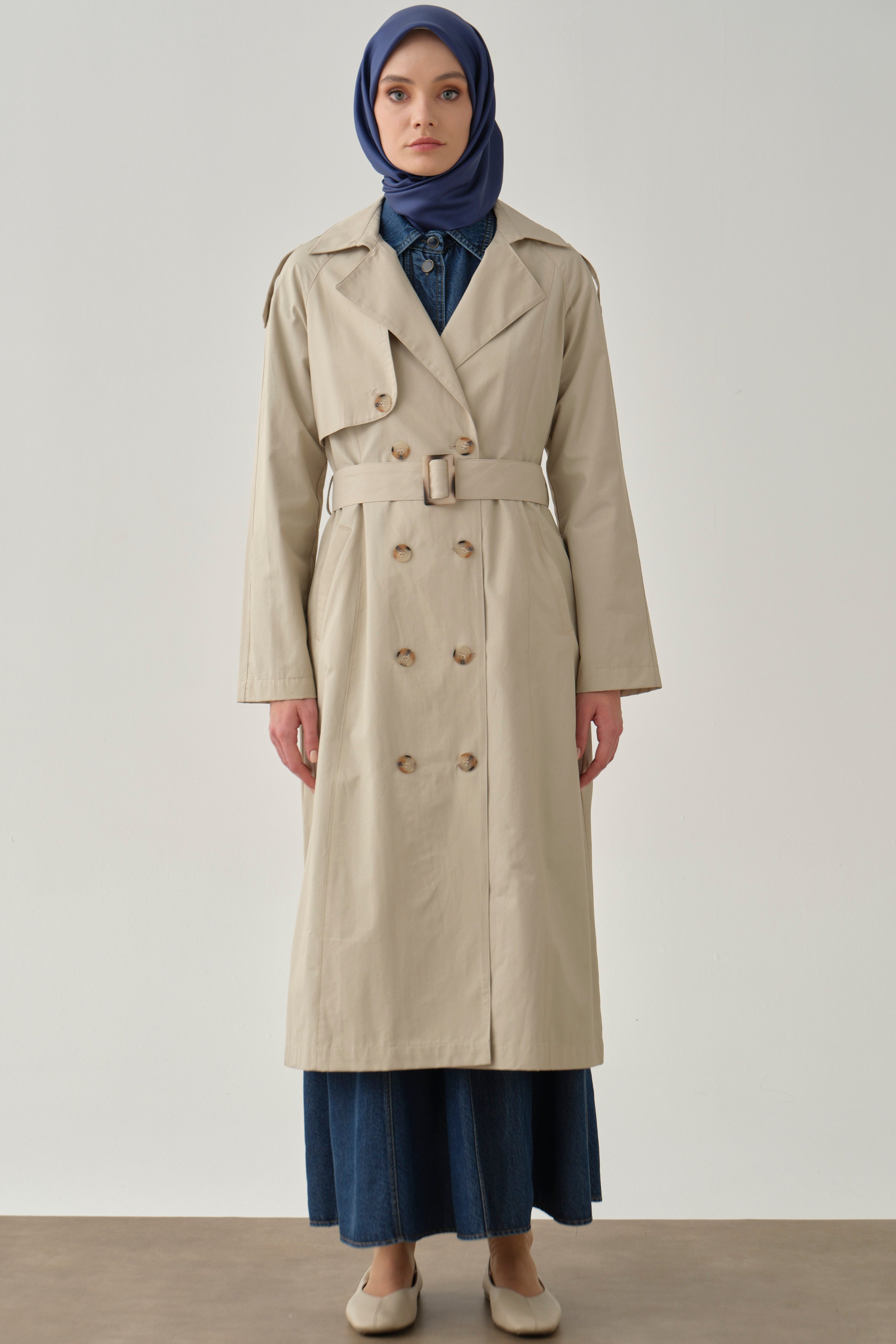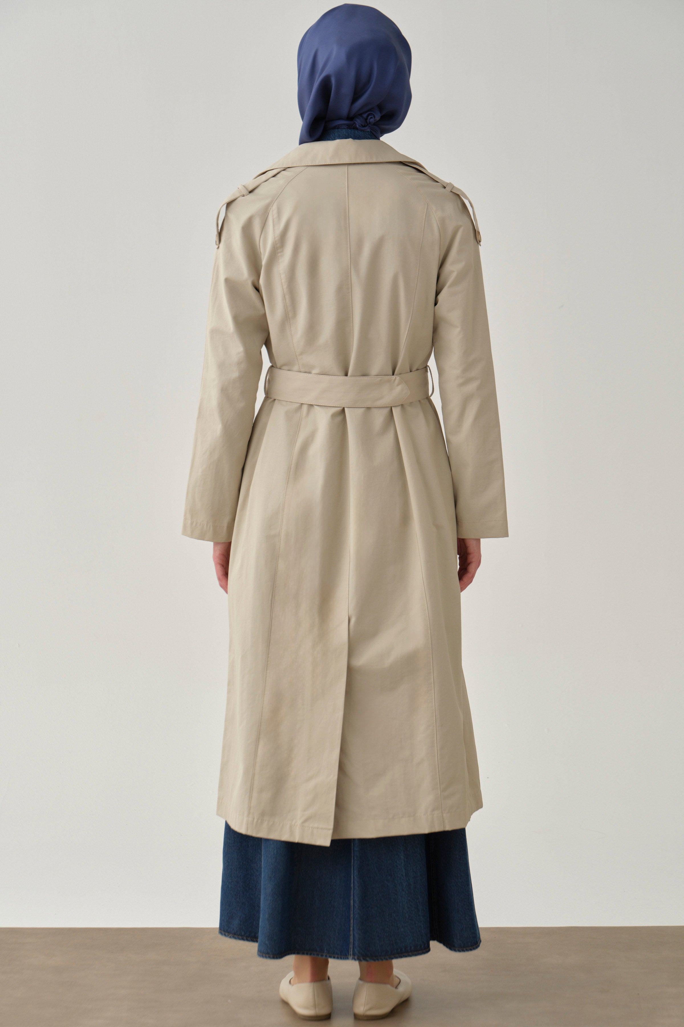 Double-breasted overcoat with tabs at the sleeves - Light beige