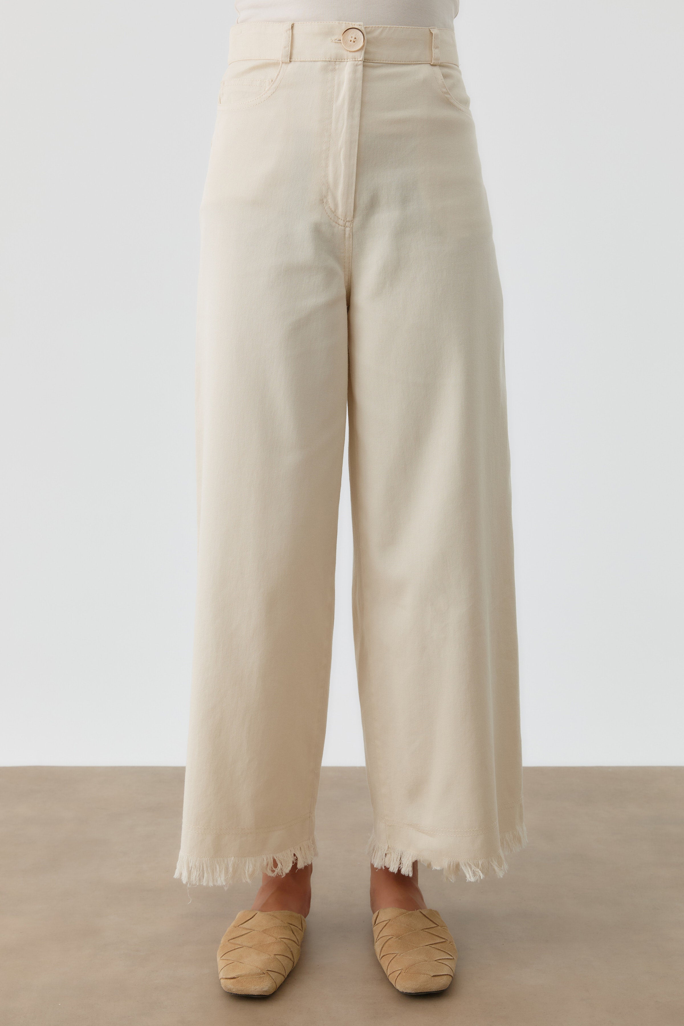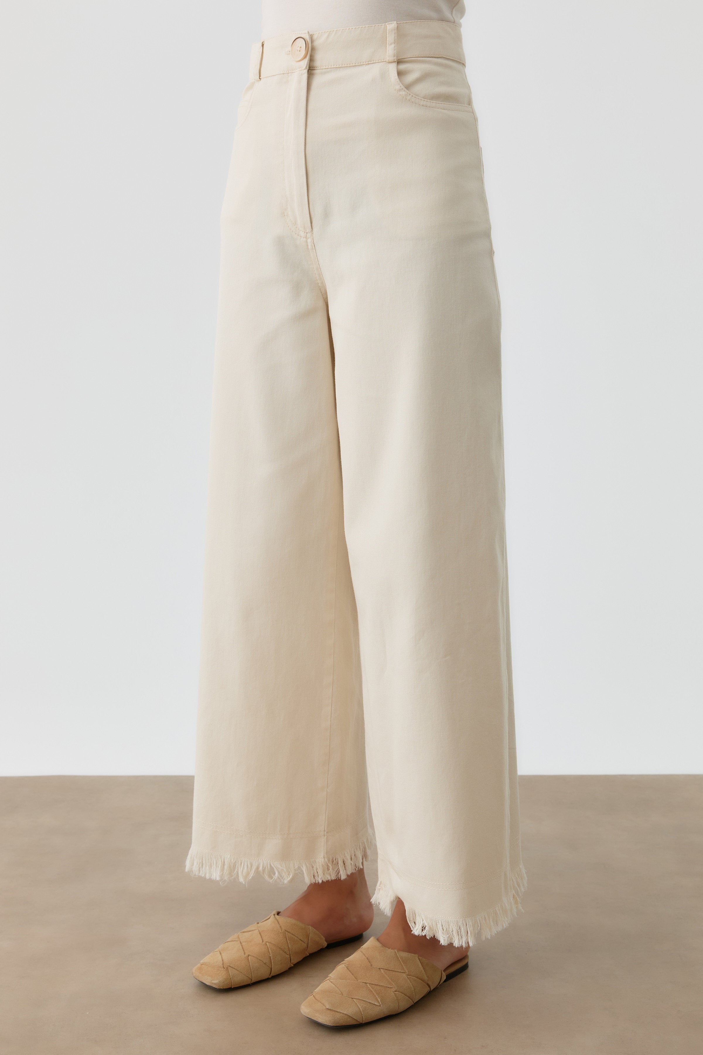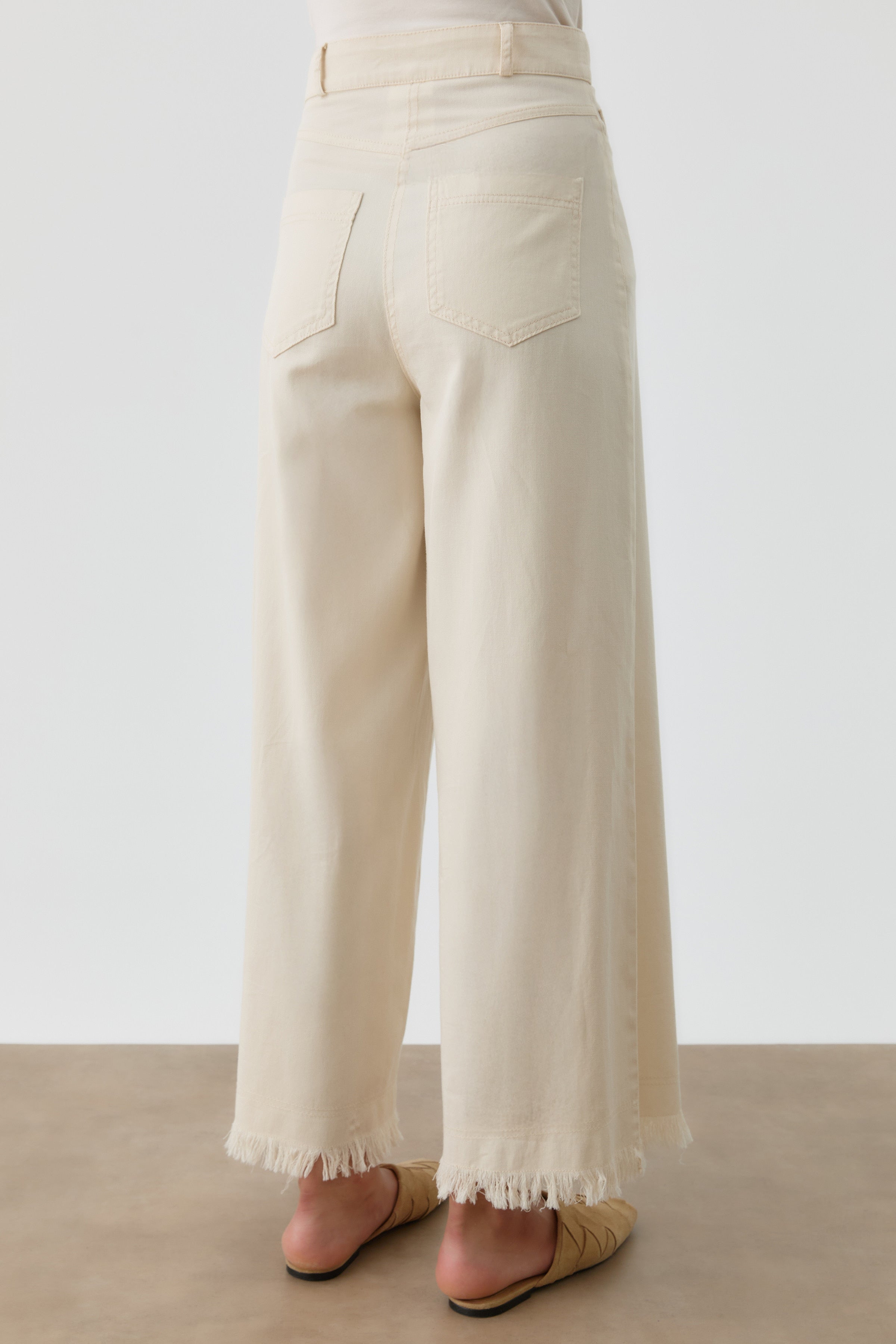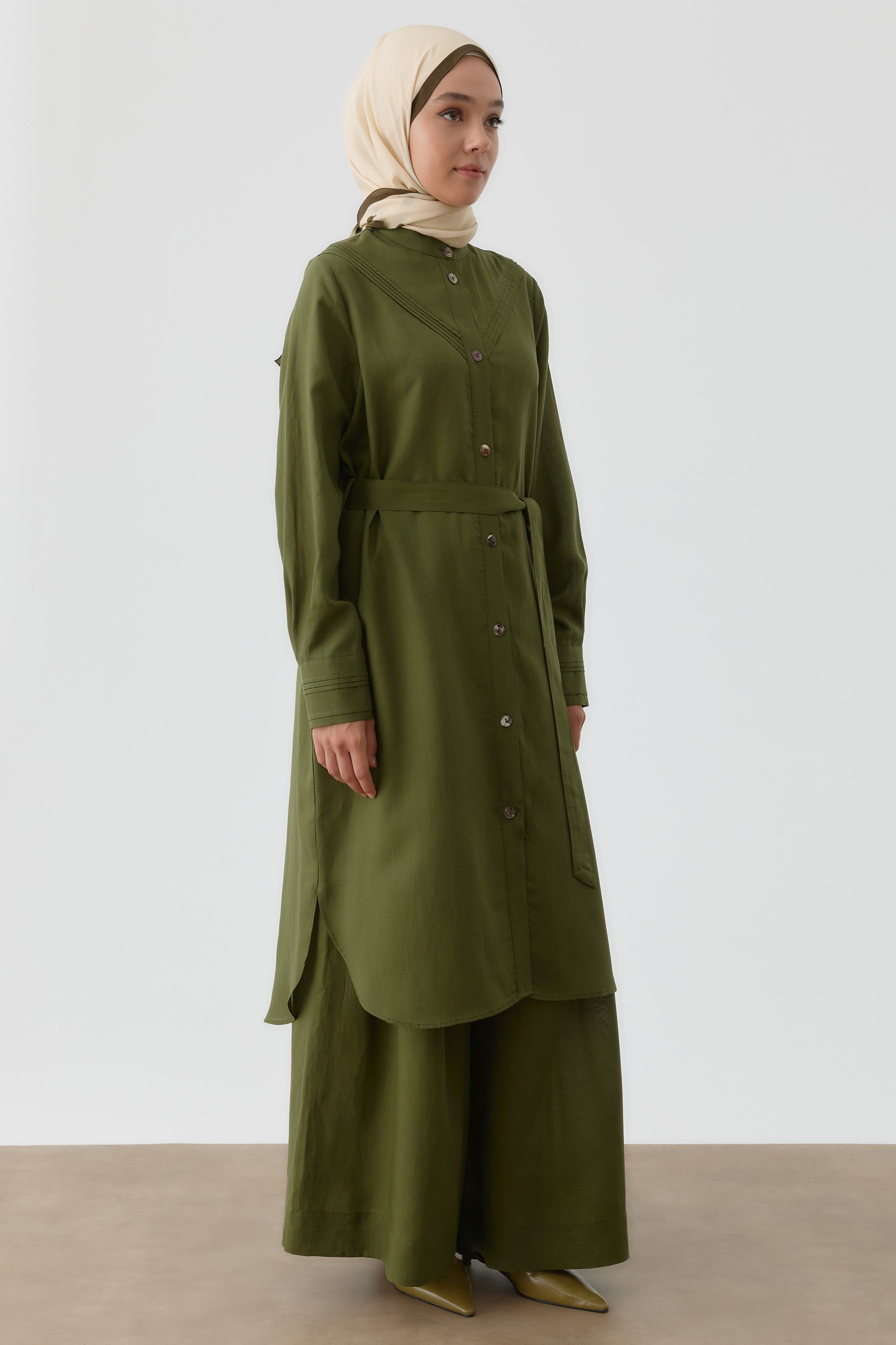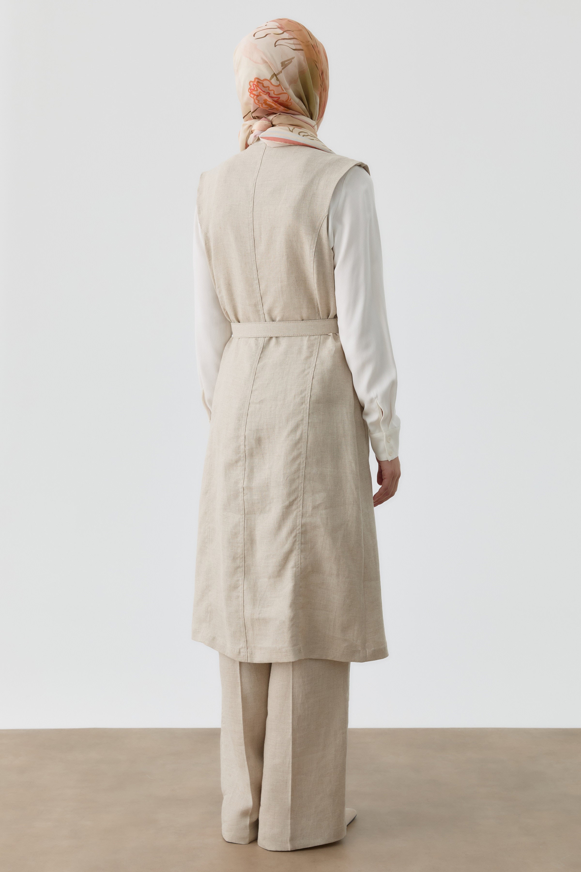 Double-breasted overcoat with tabs at the sleeves - Light beige