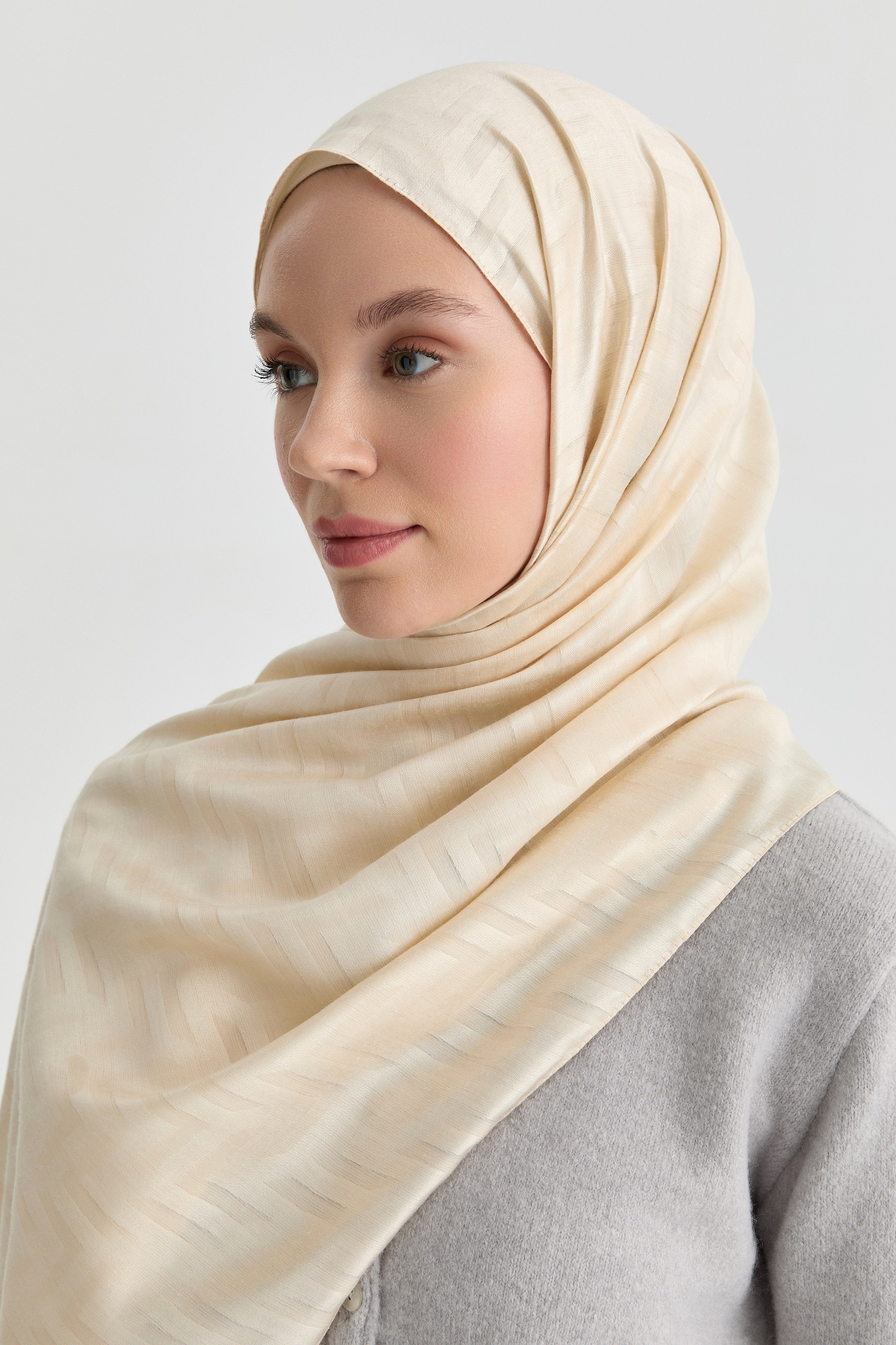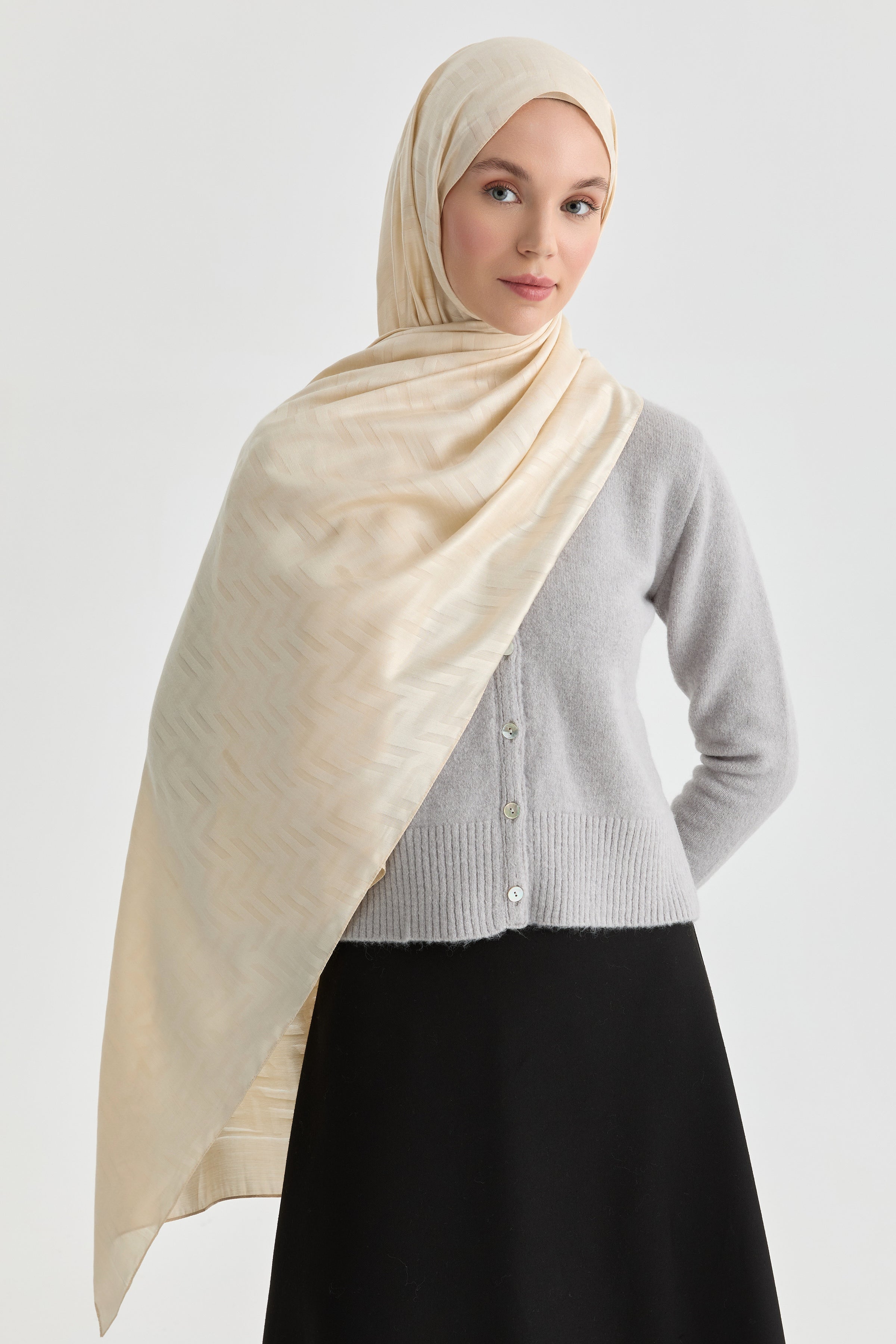 Deren Natural Jacquard Shawl - Beige