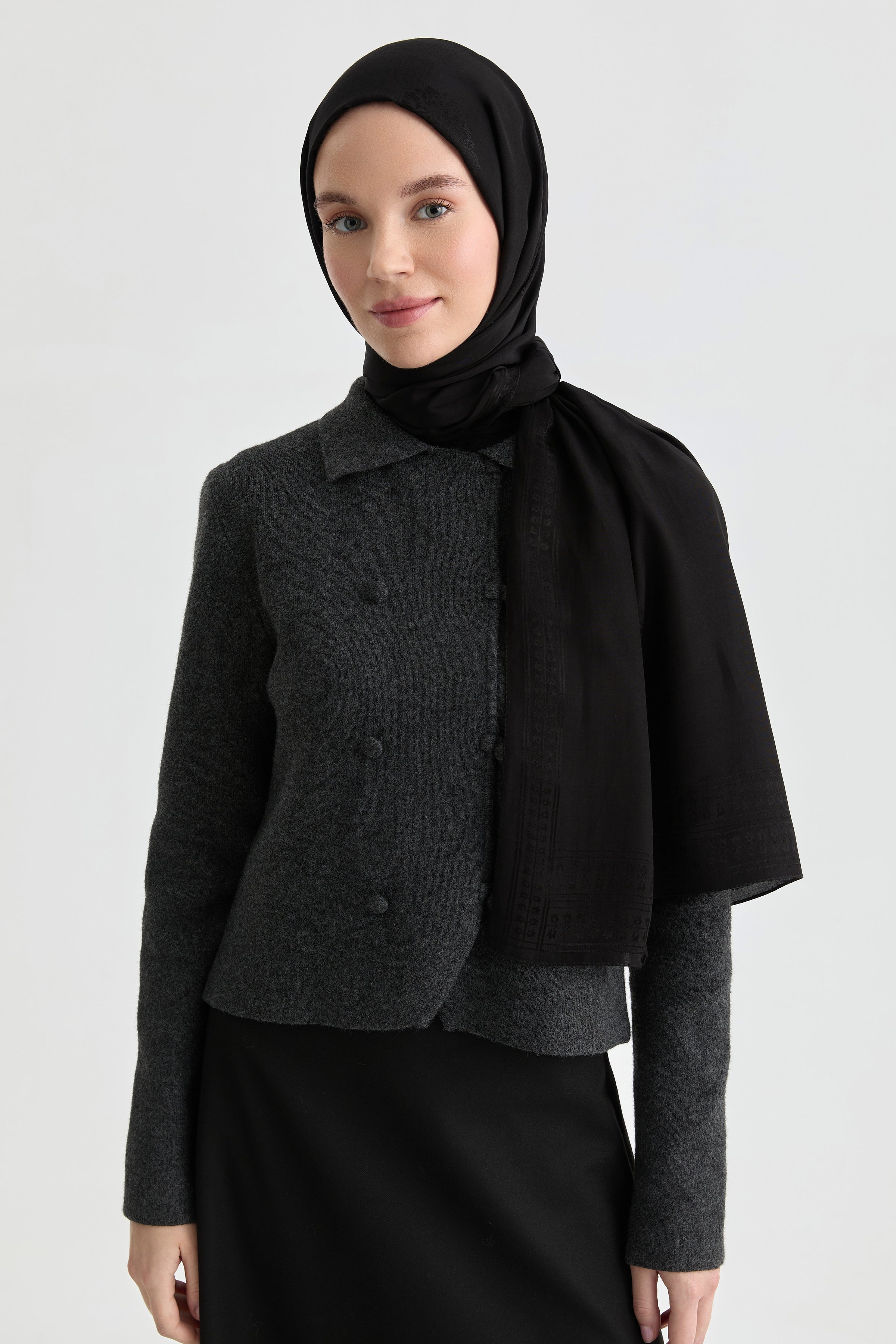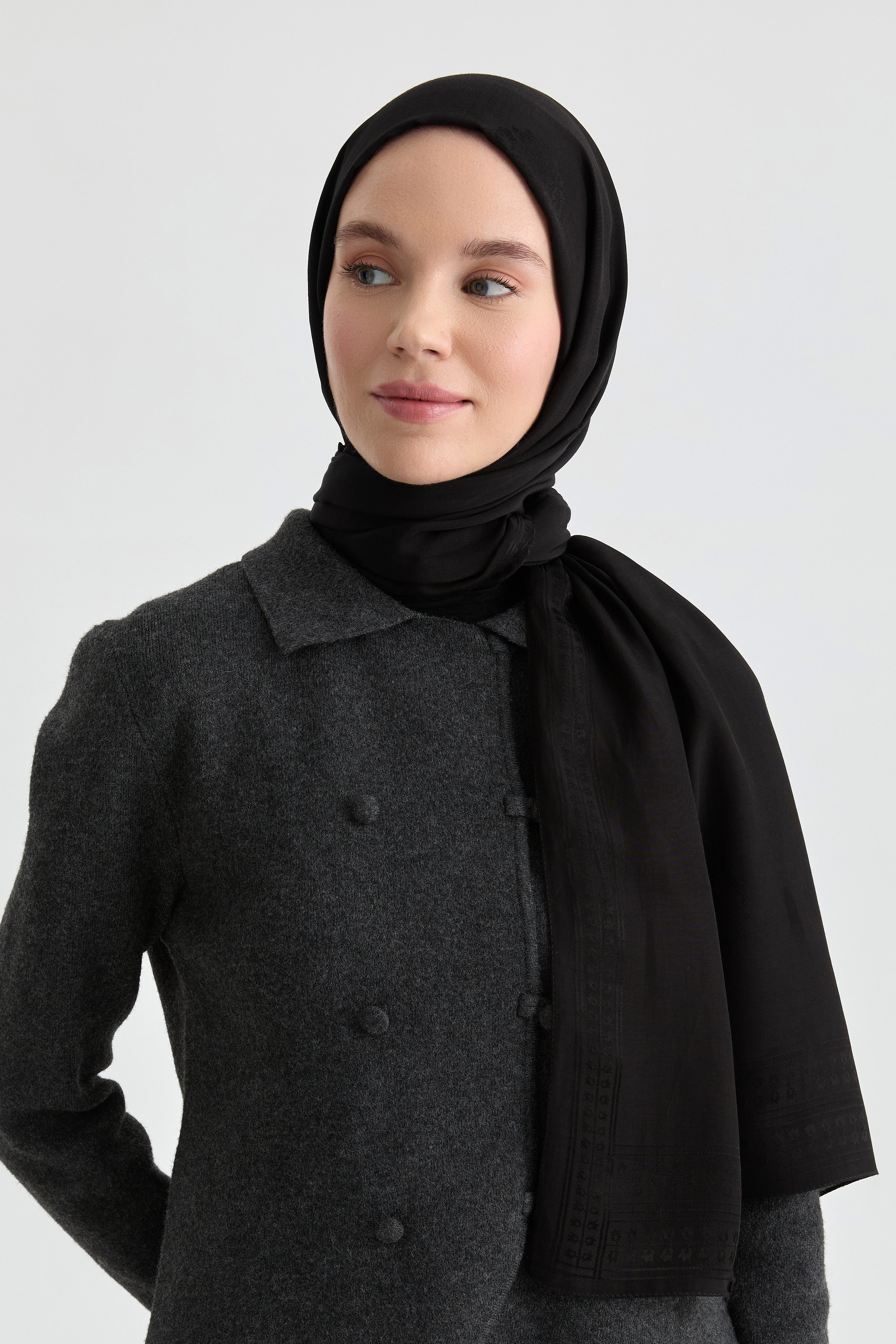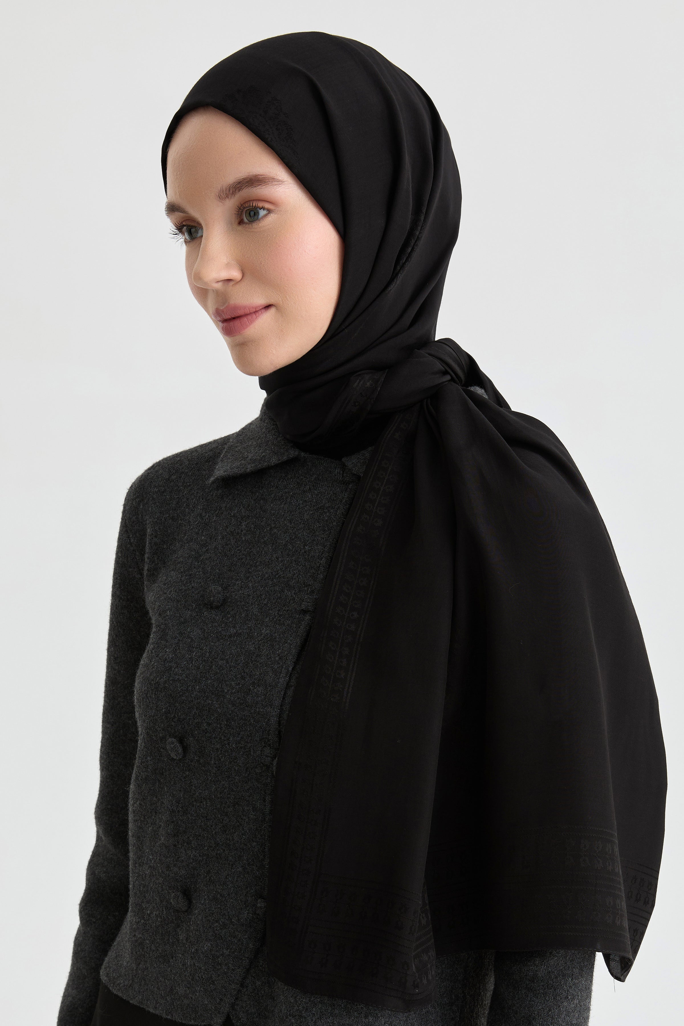 Natural Füruzan jacquard shawl - Black