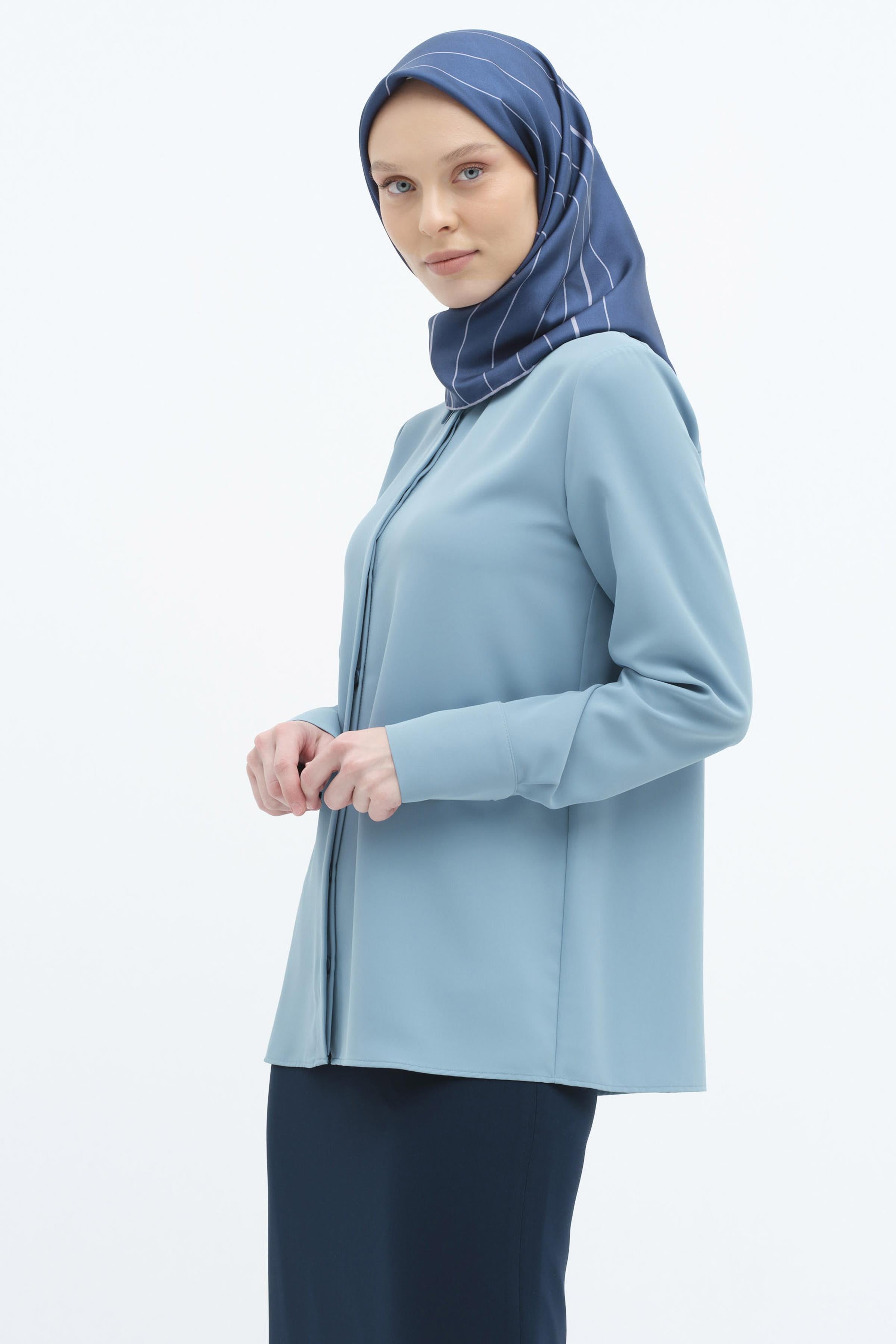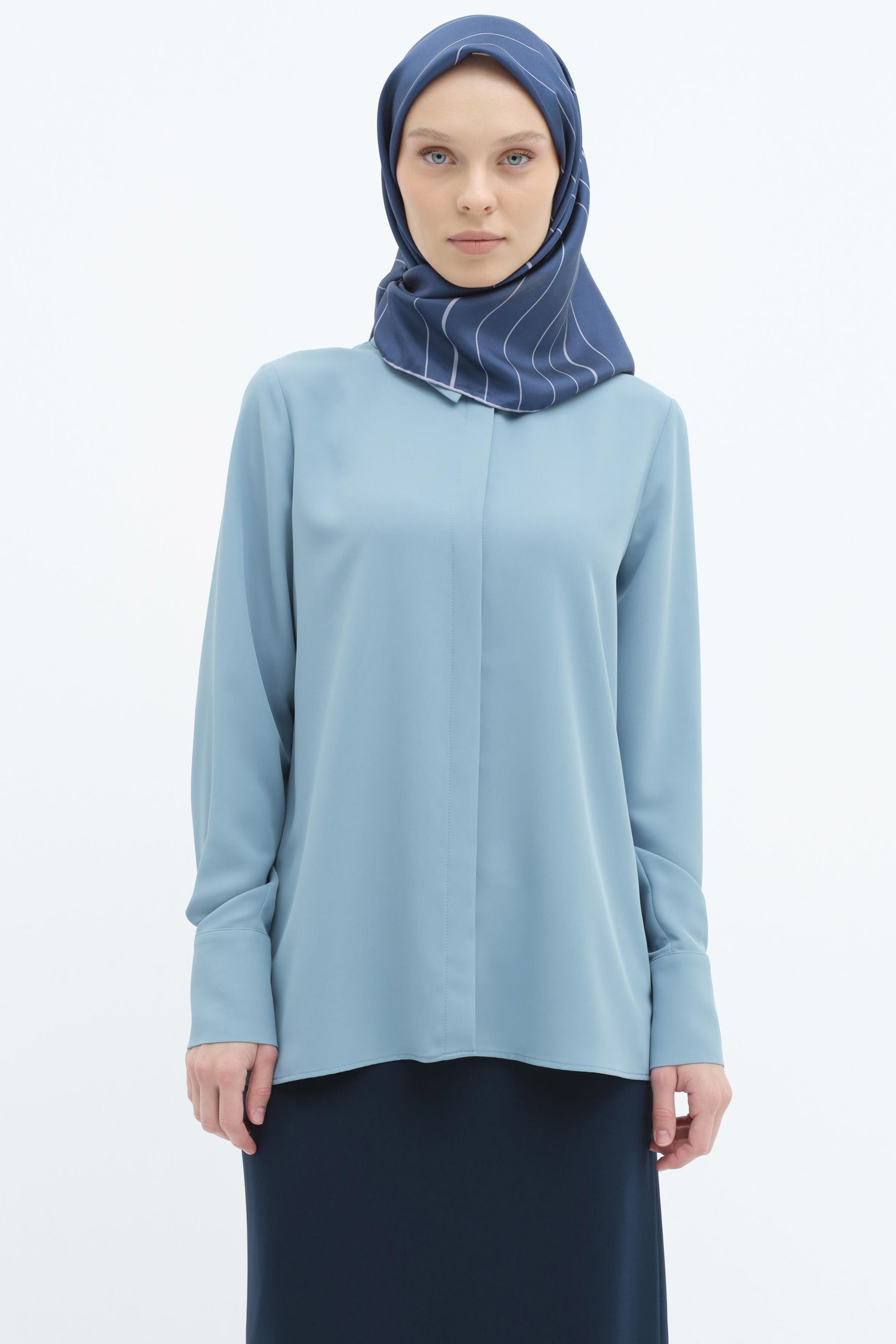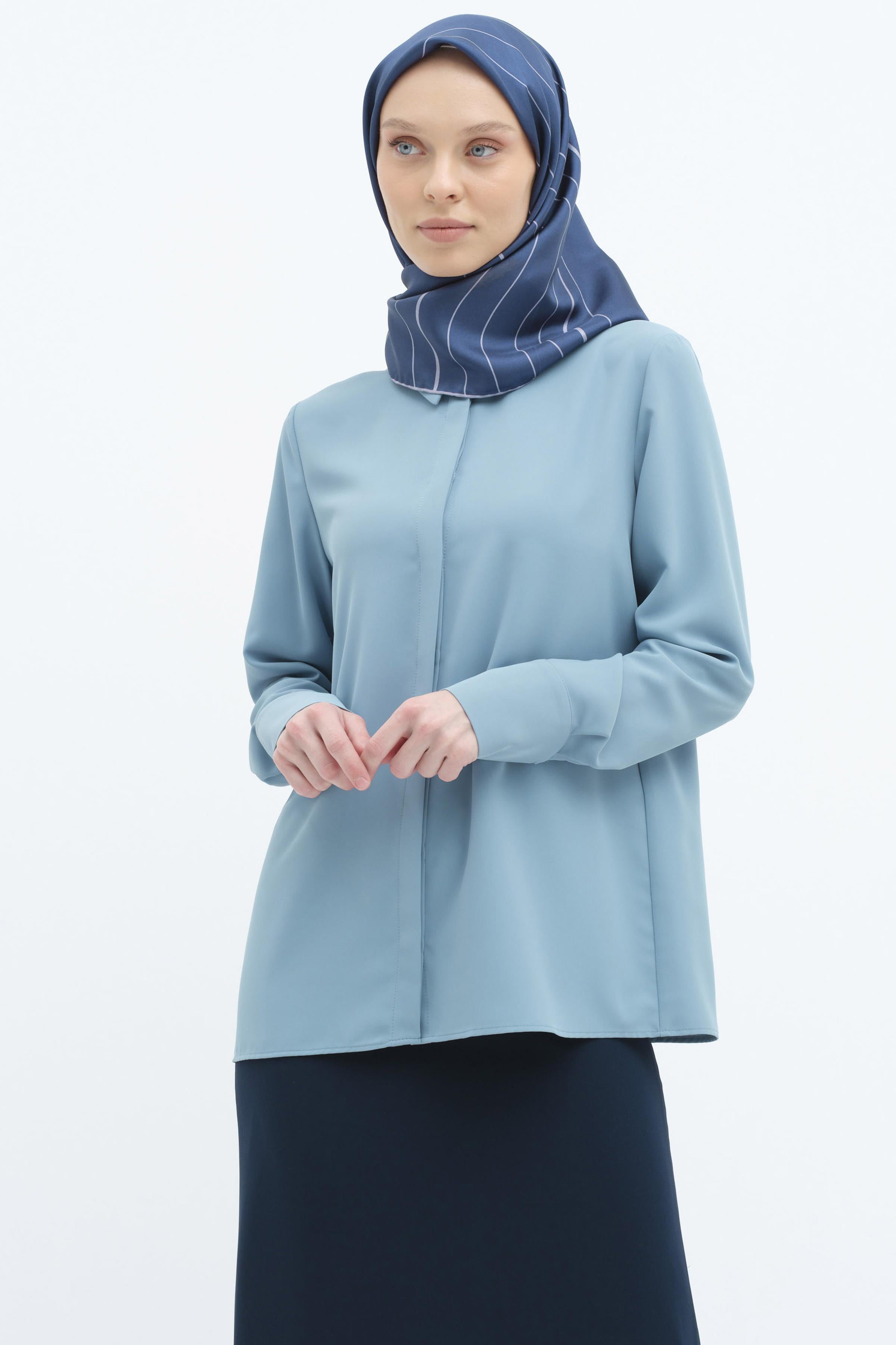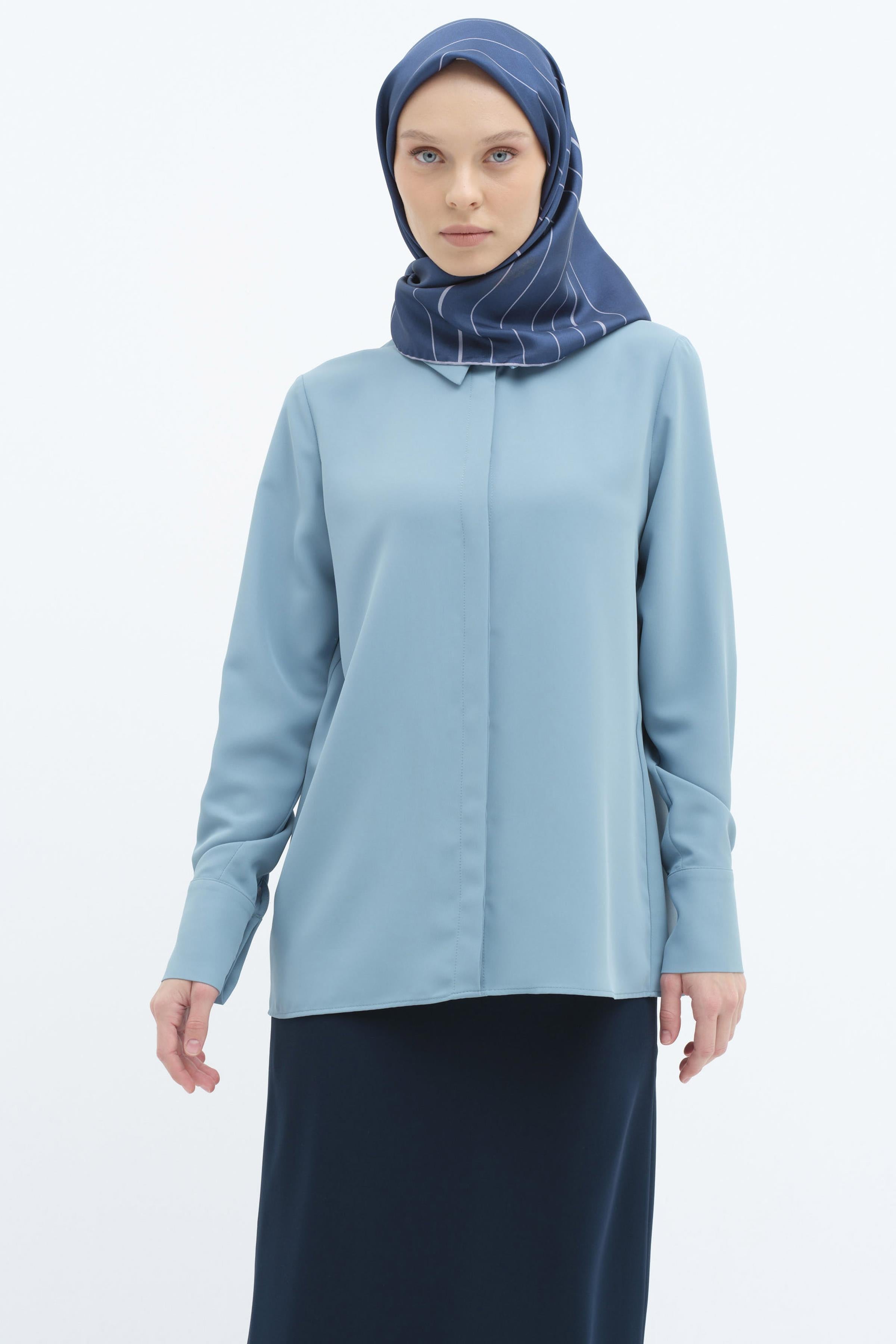 Basic shirt with hidden placket - Blue