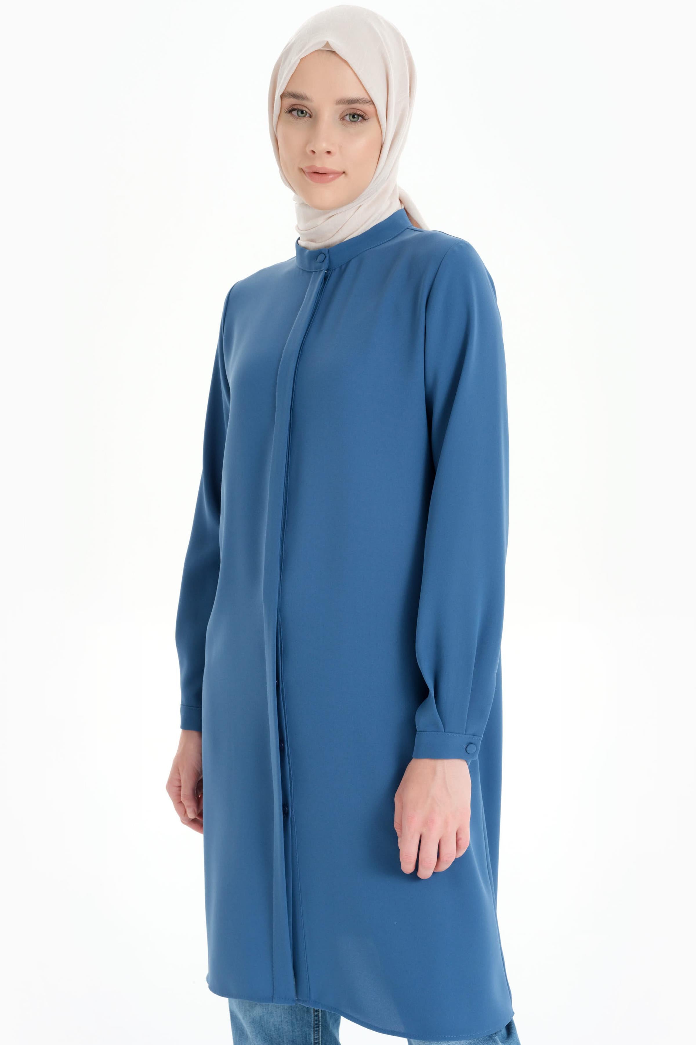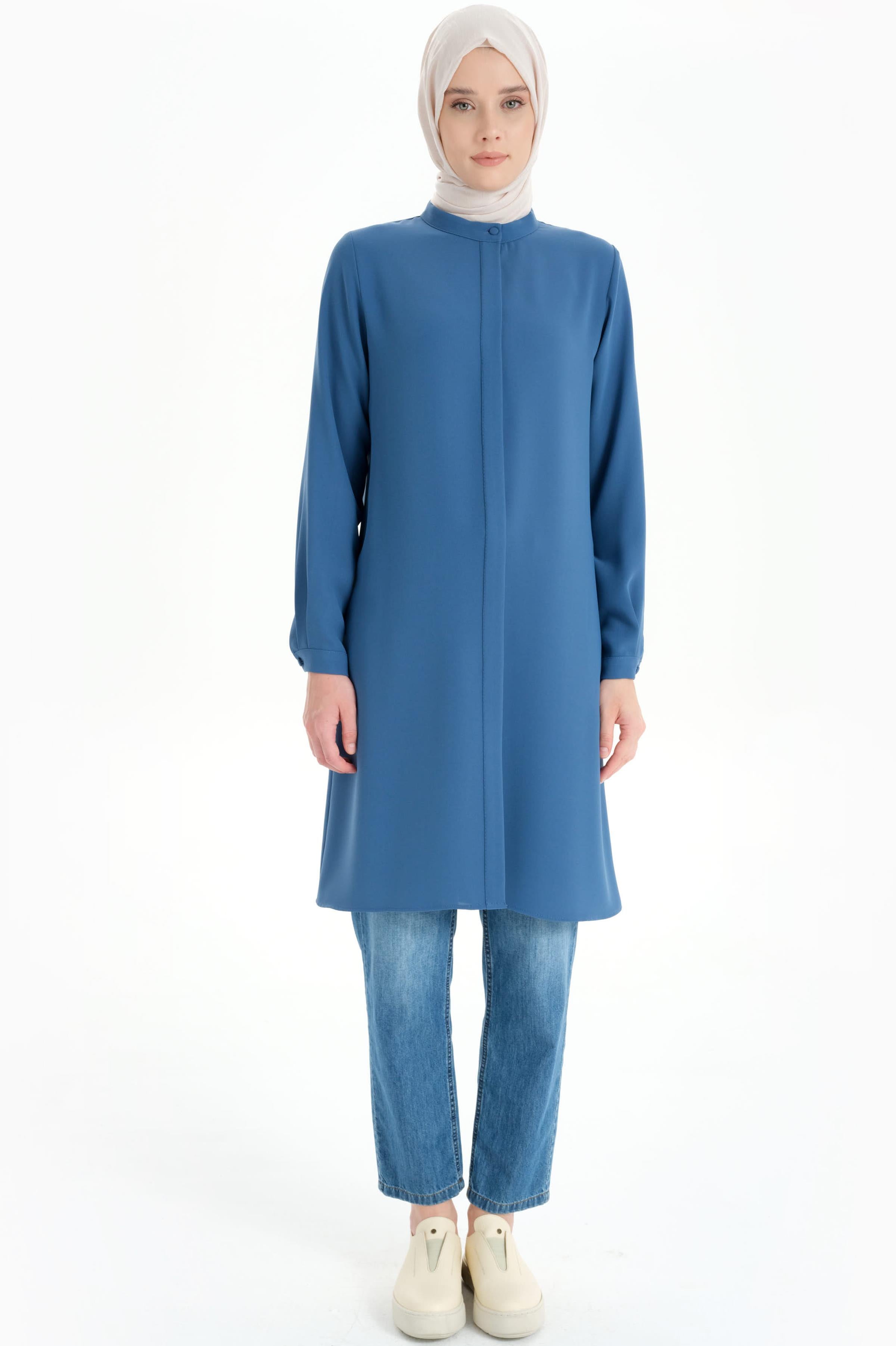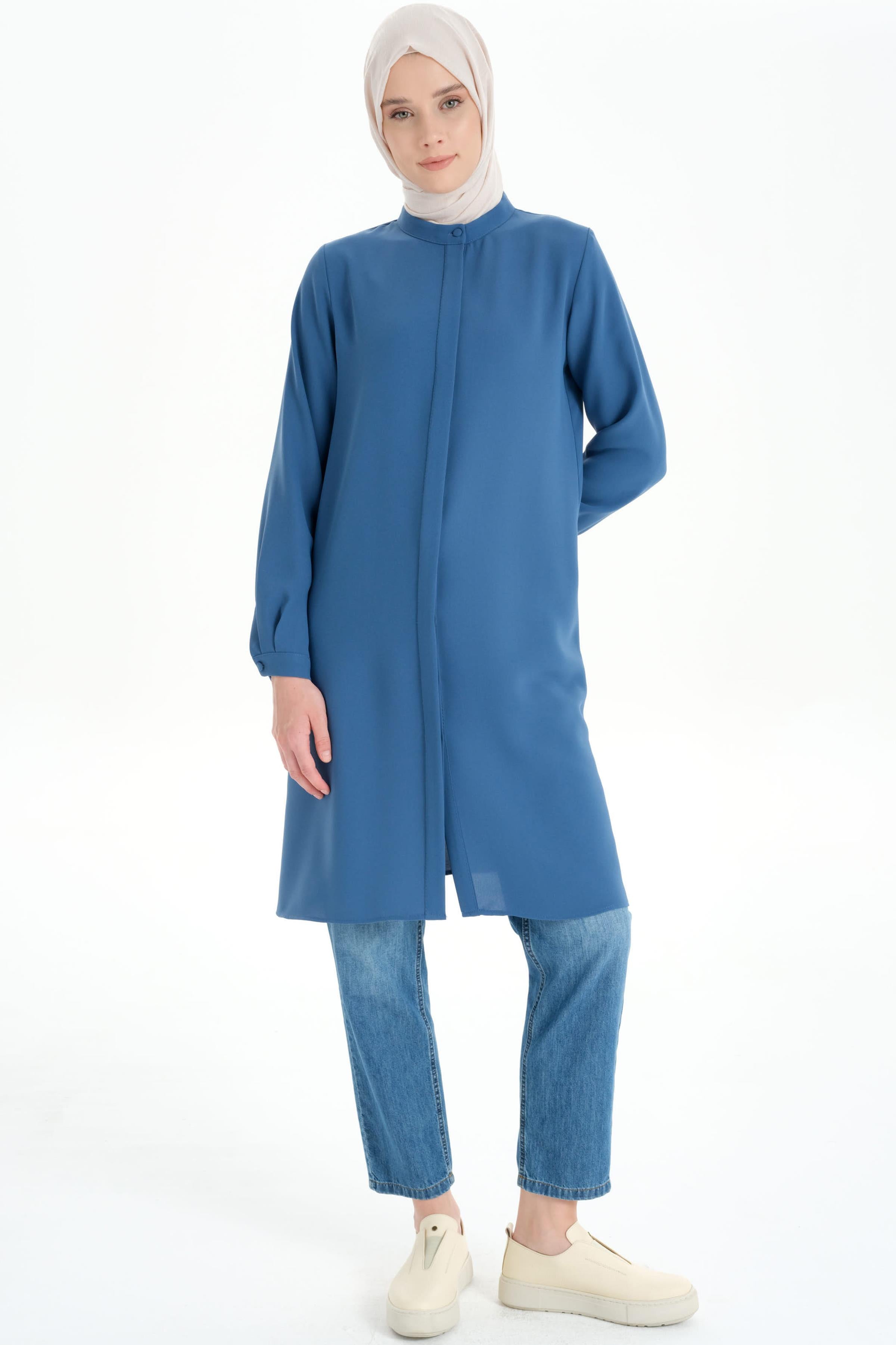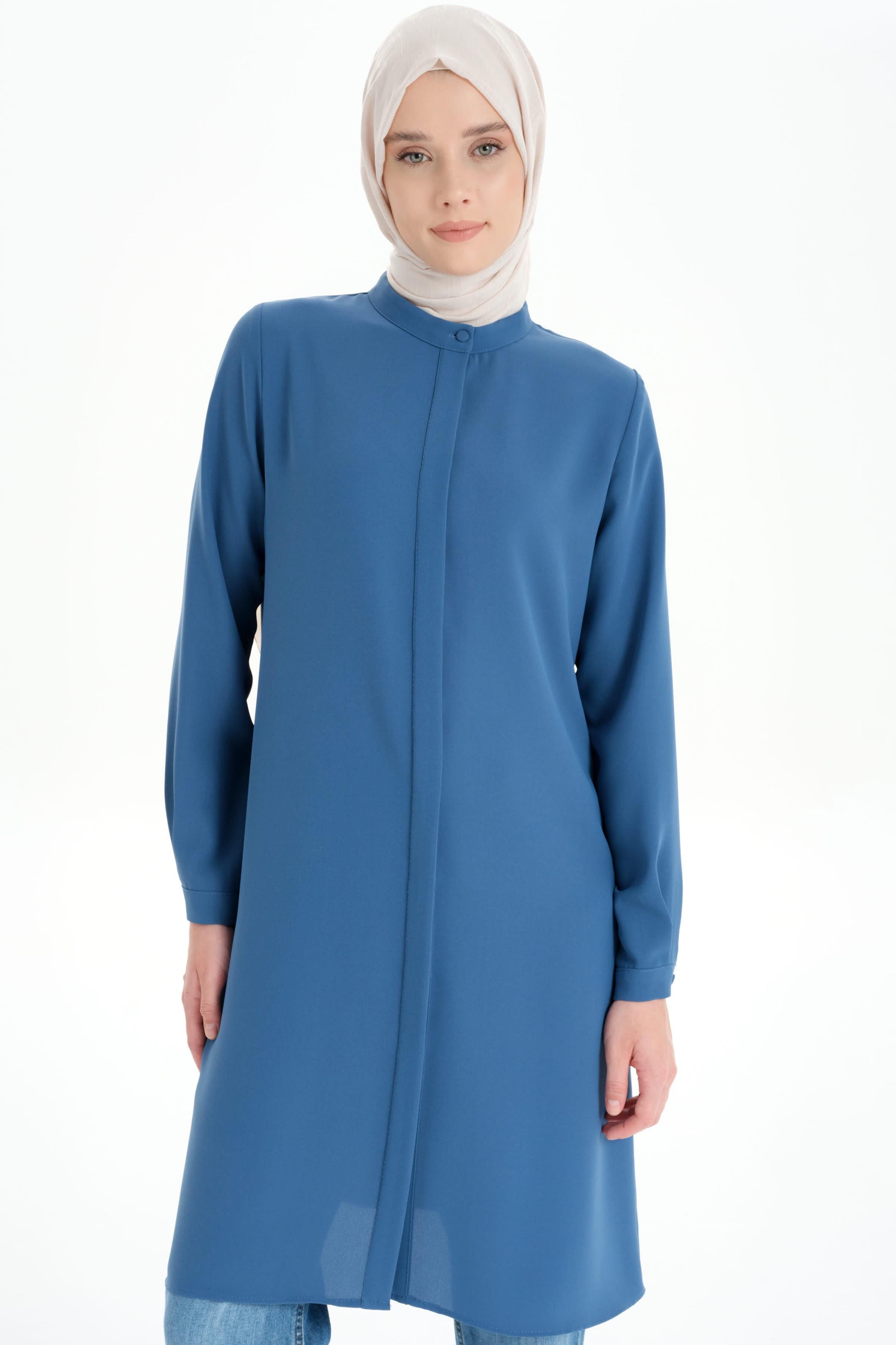 Gorgeous Tunic with Hidden Tab and Collar - Blue