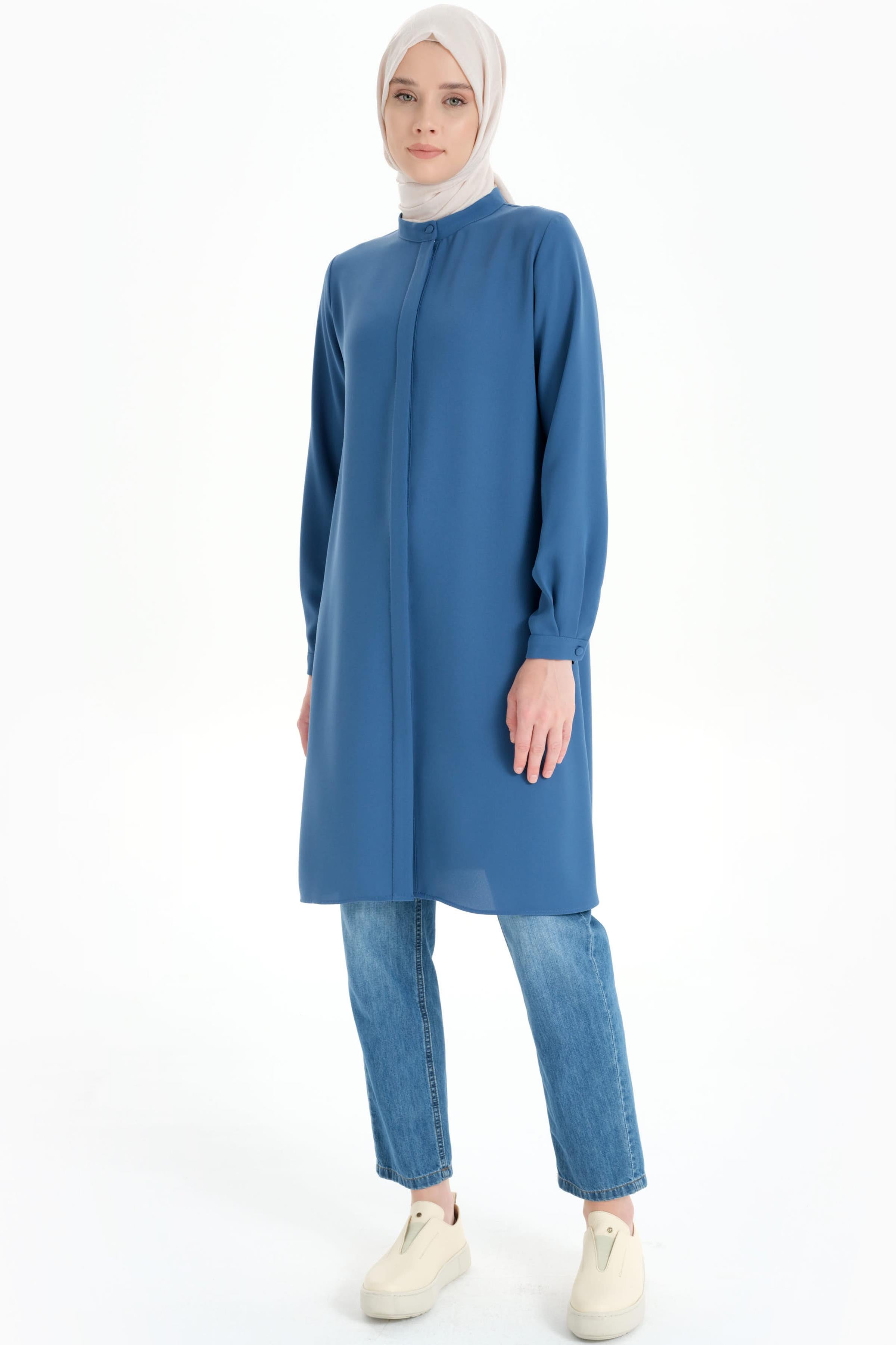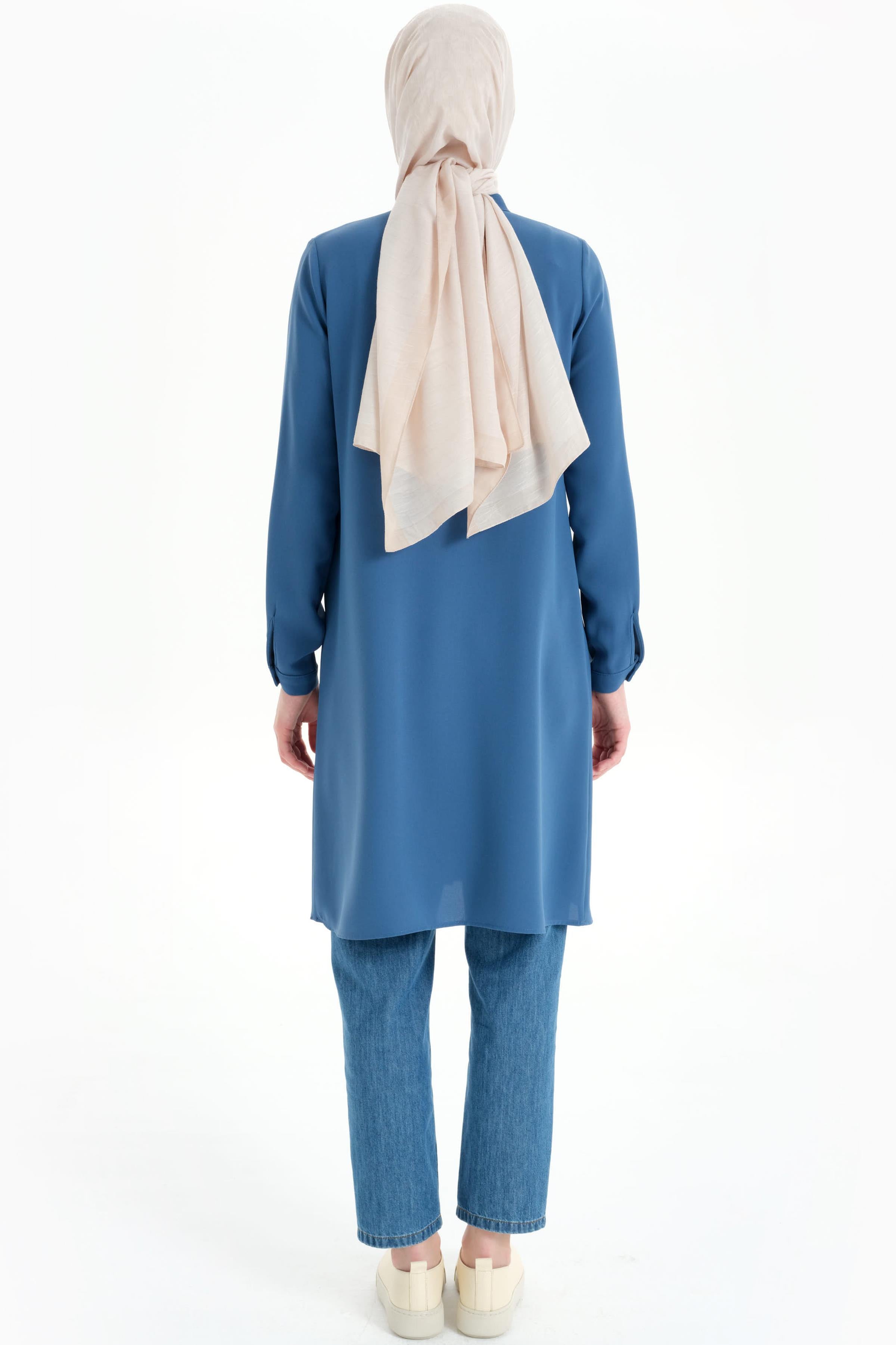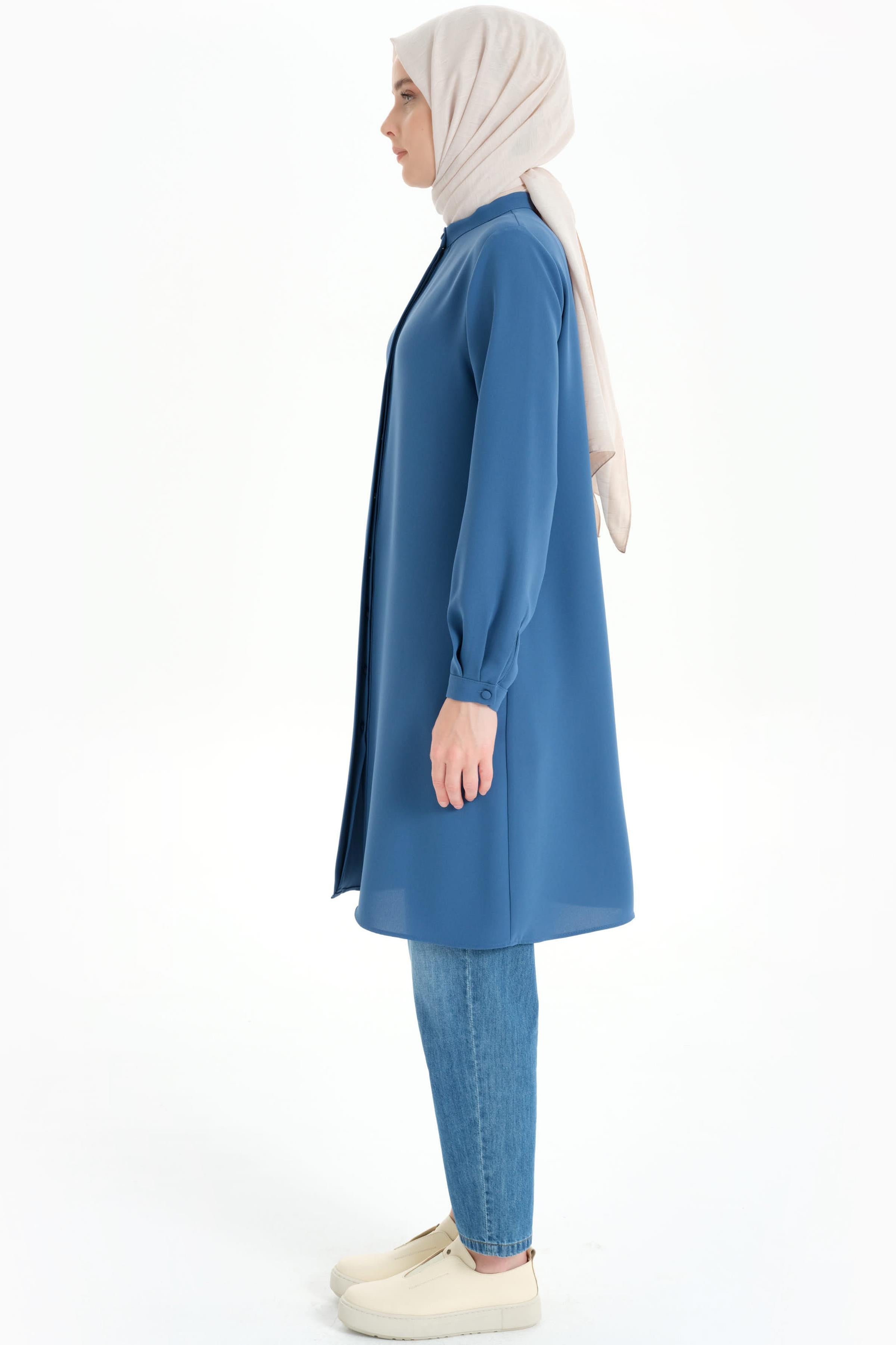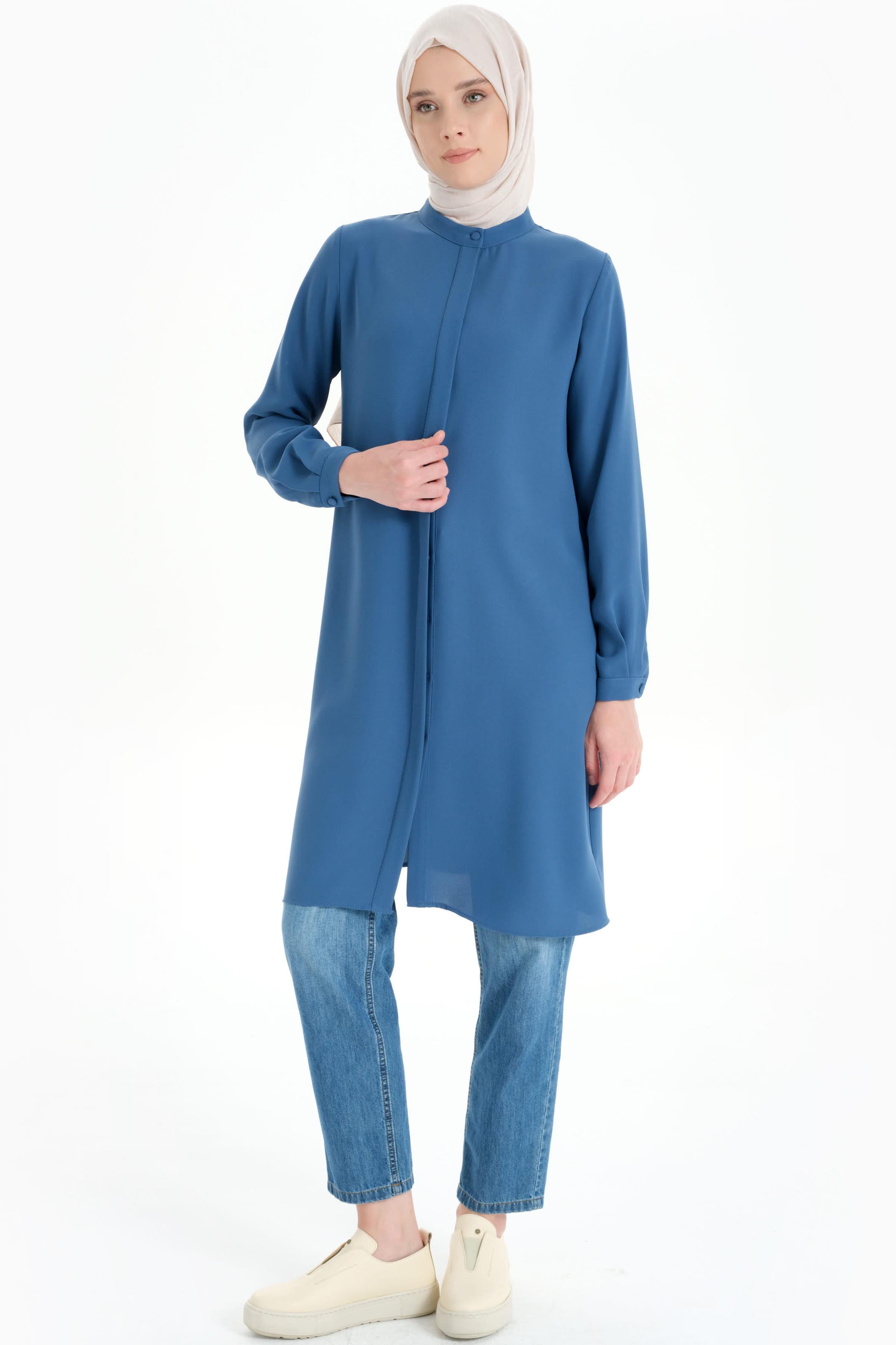 Gorgeous Tunic with Hidden Tab and Collar - Blue