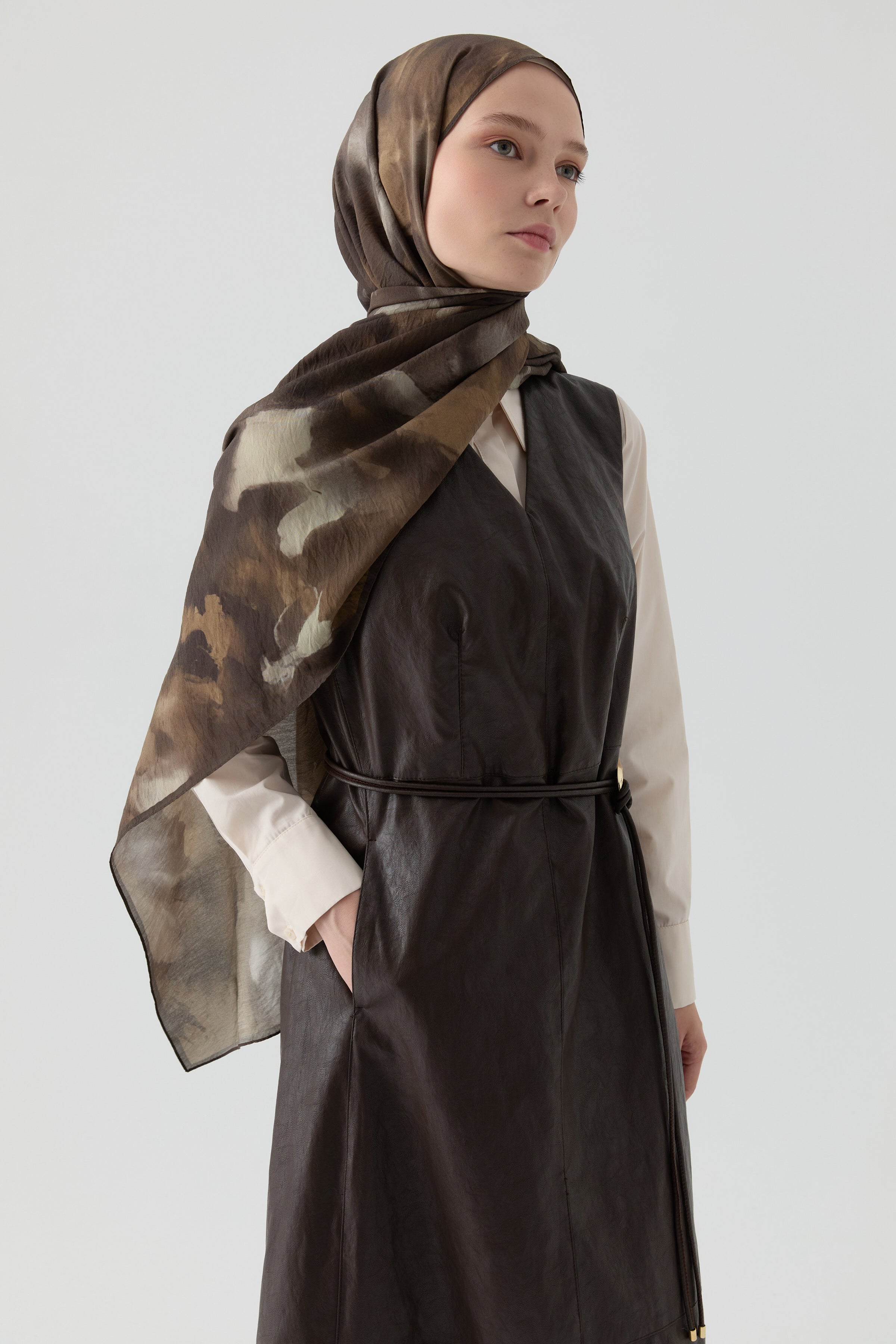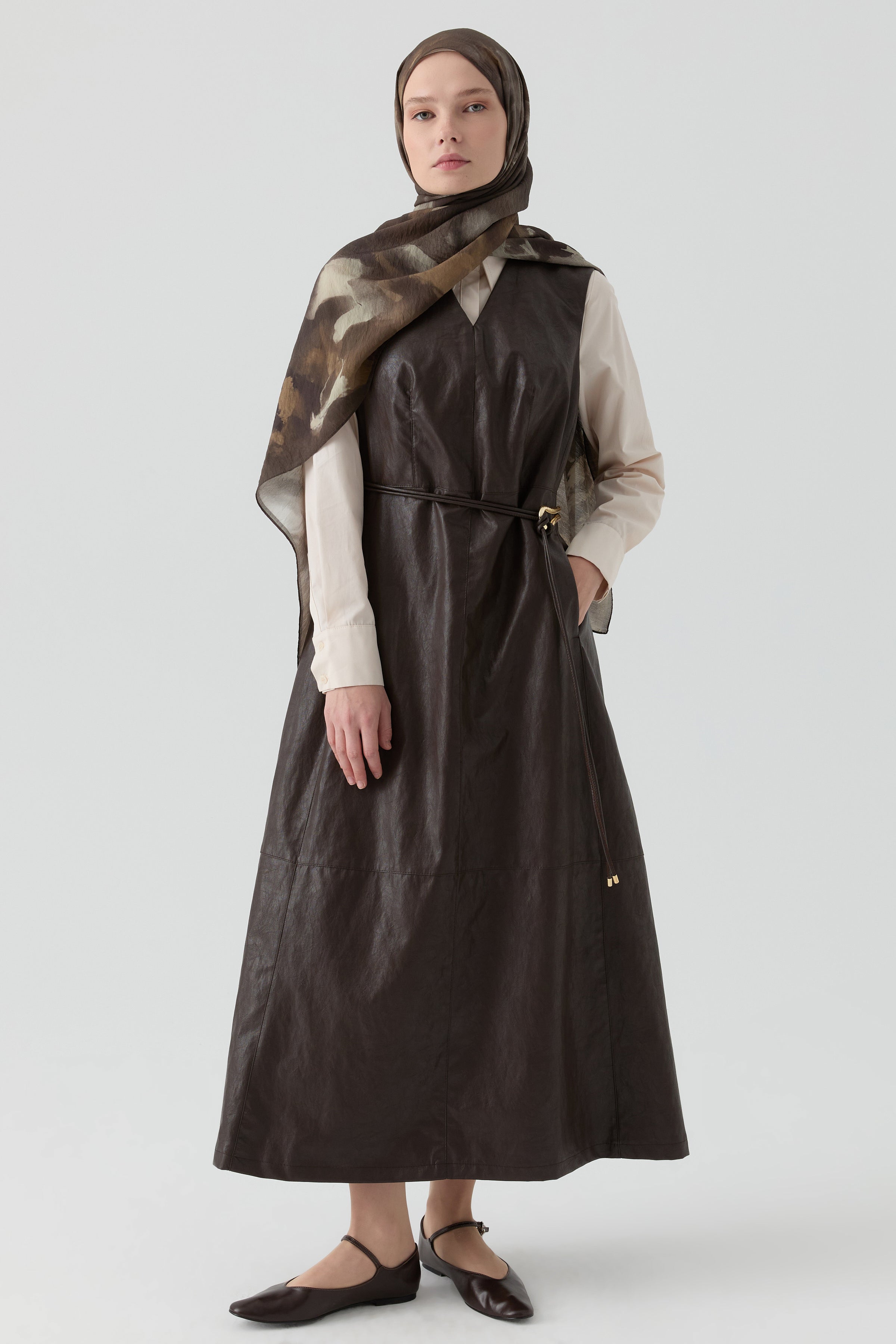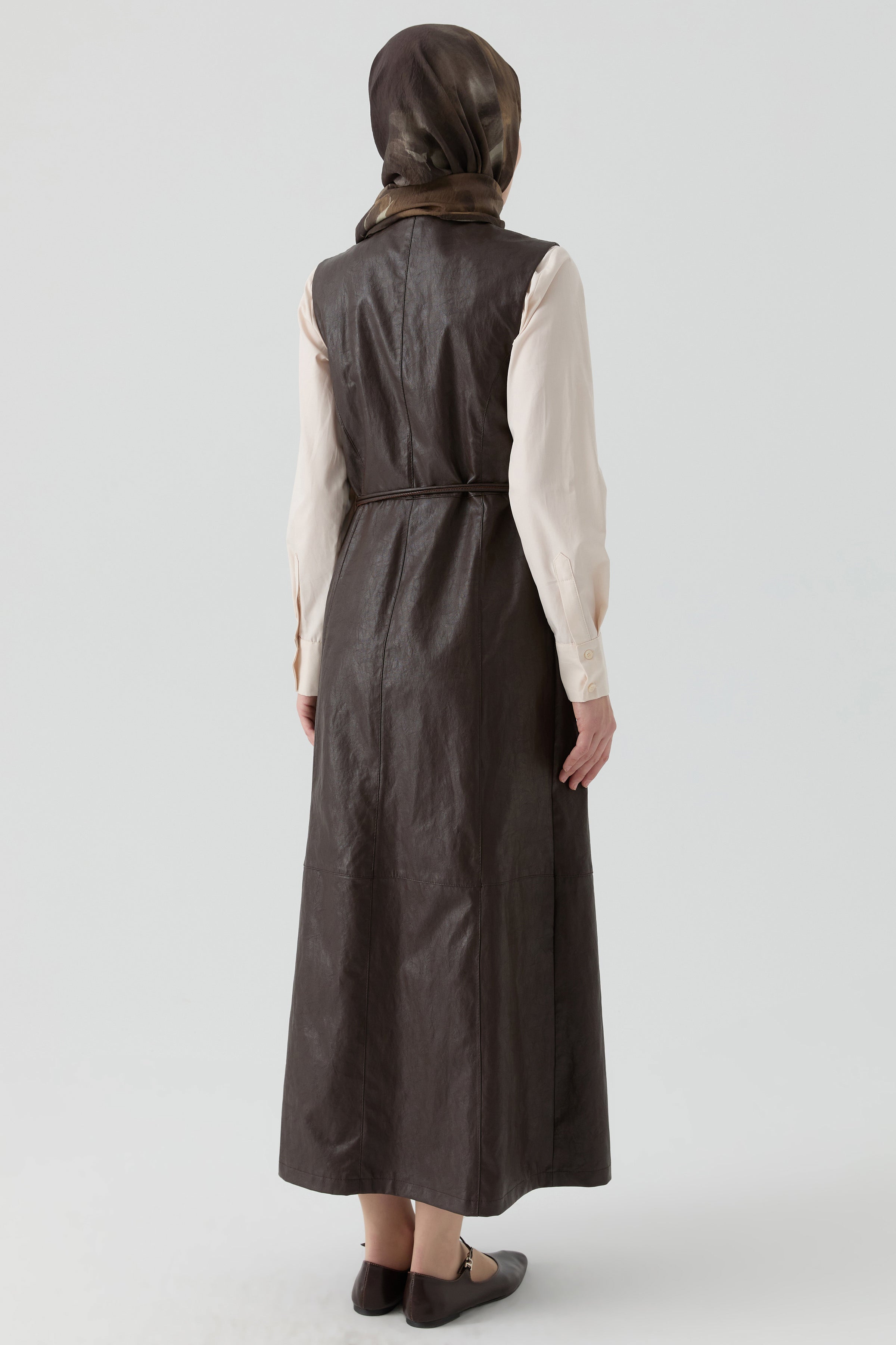 Leather skirt-dress - Coffee