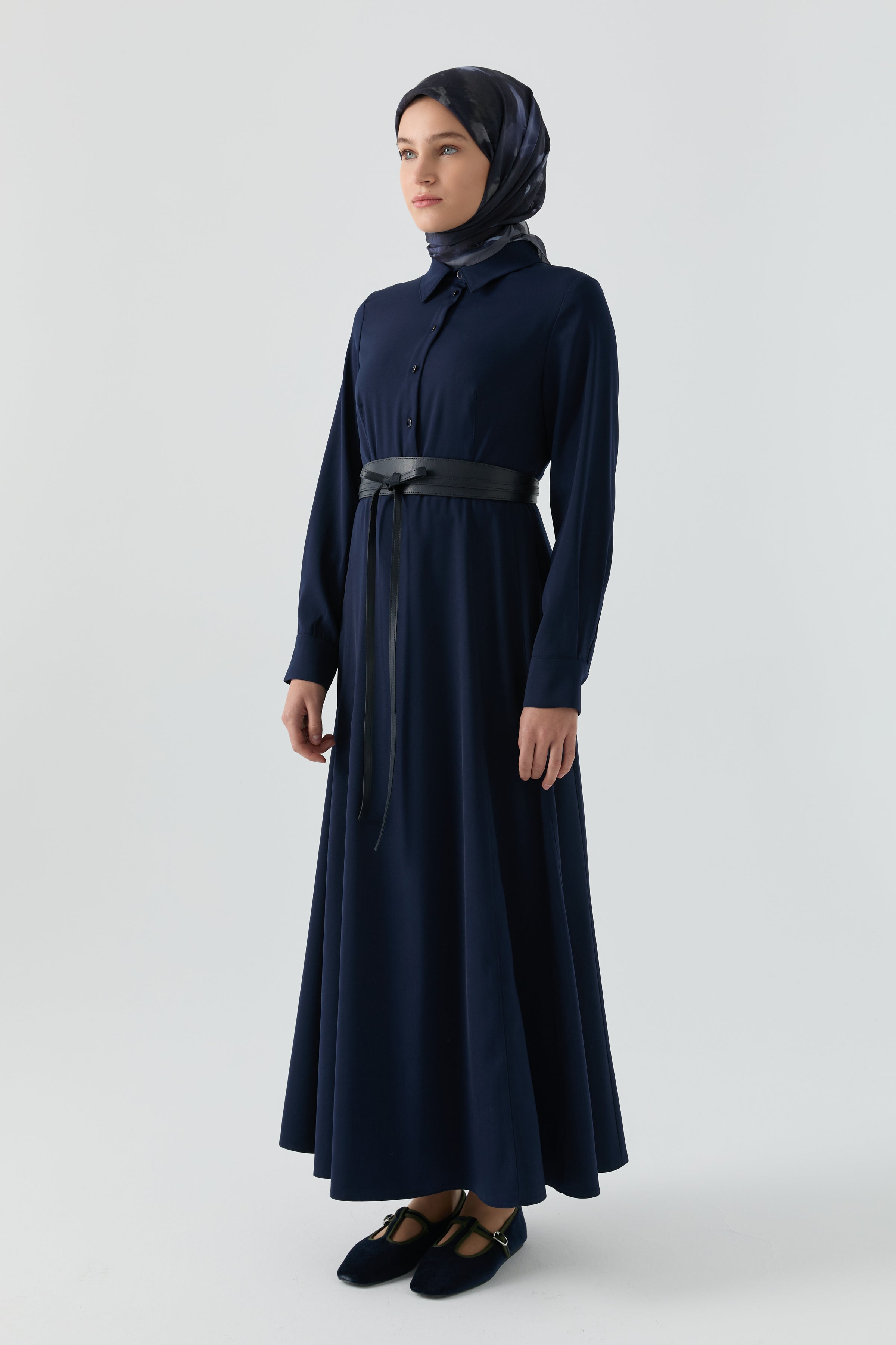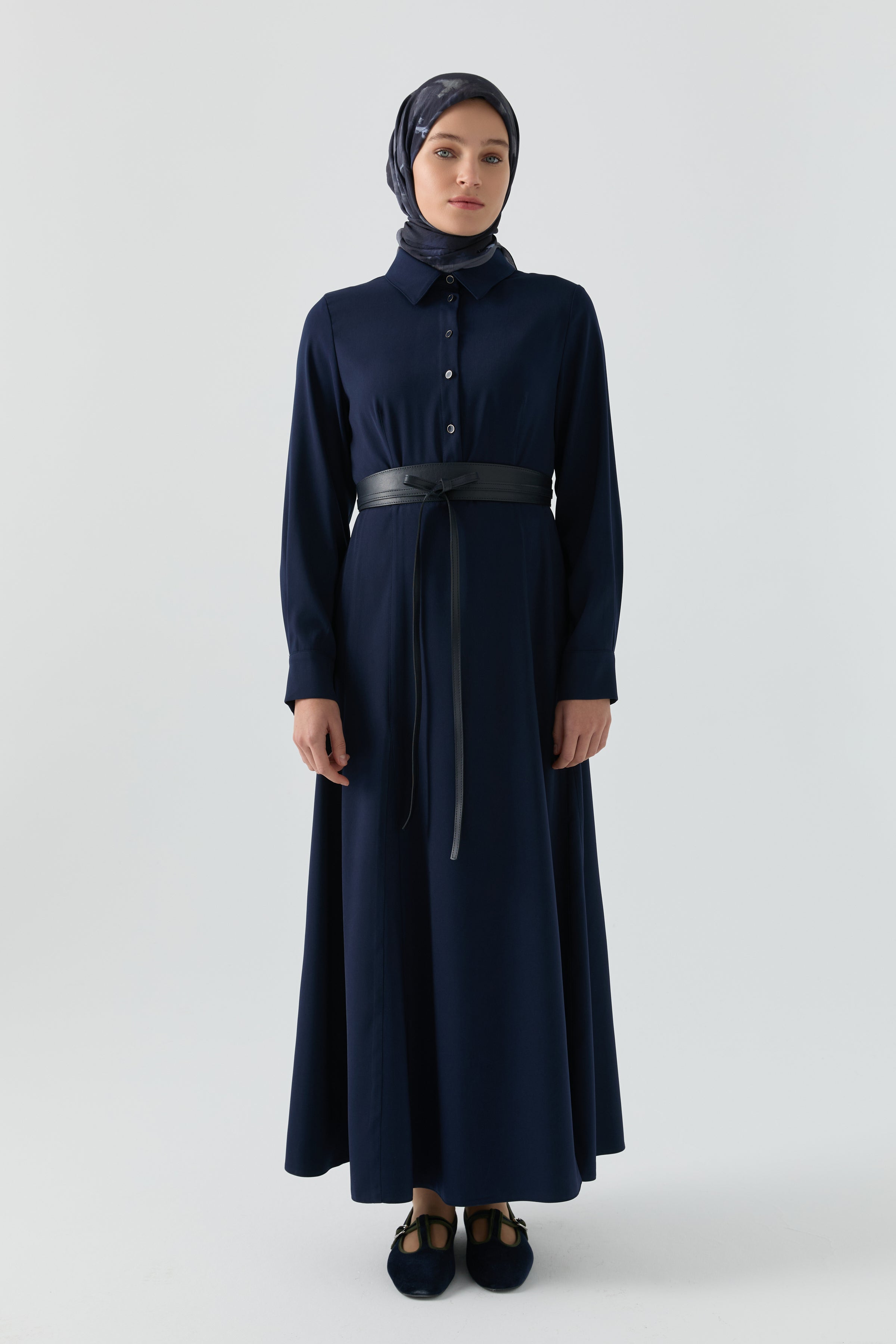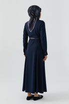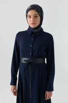 Dress with leather belt - Navy blue