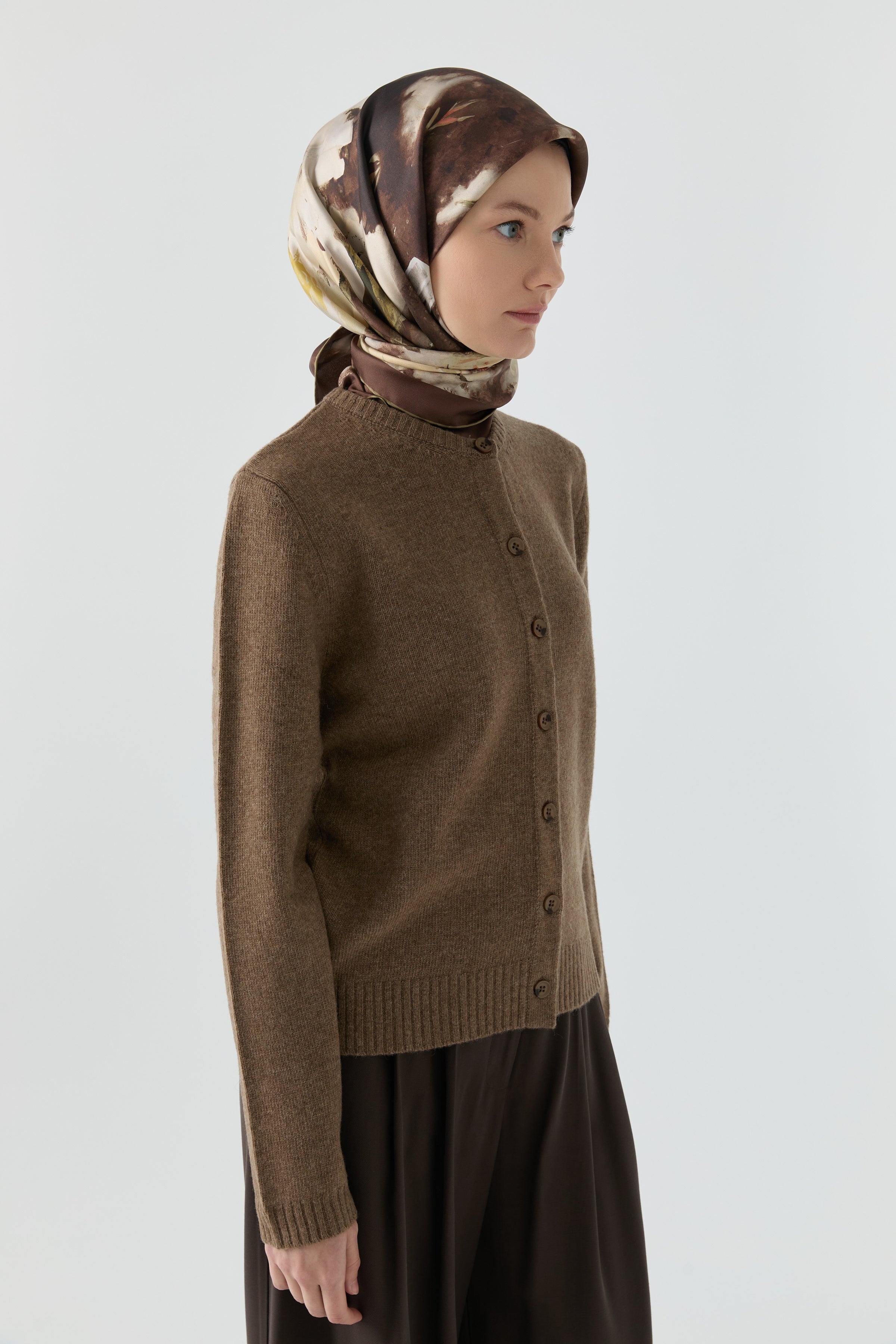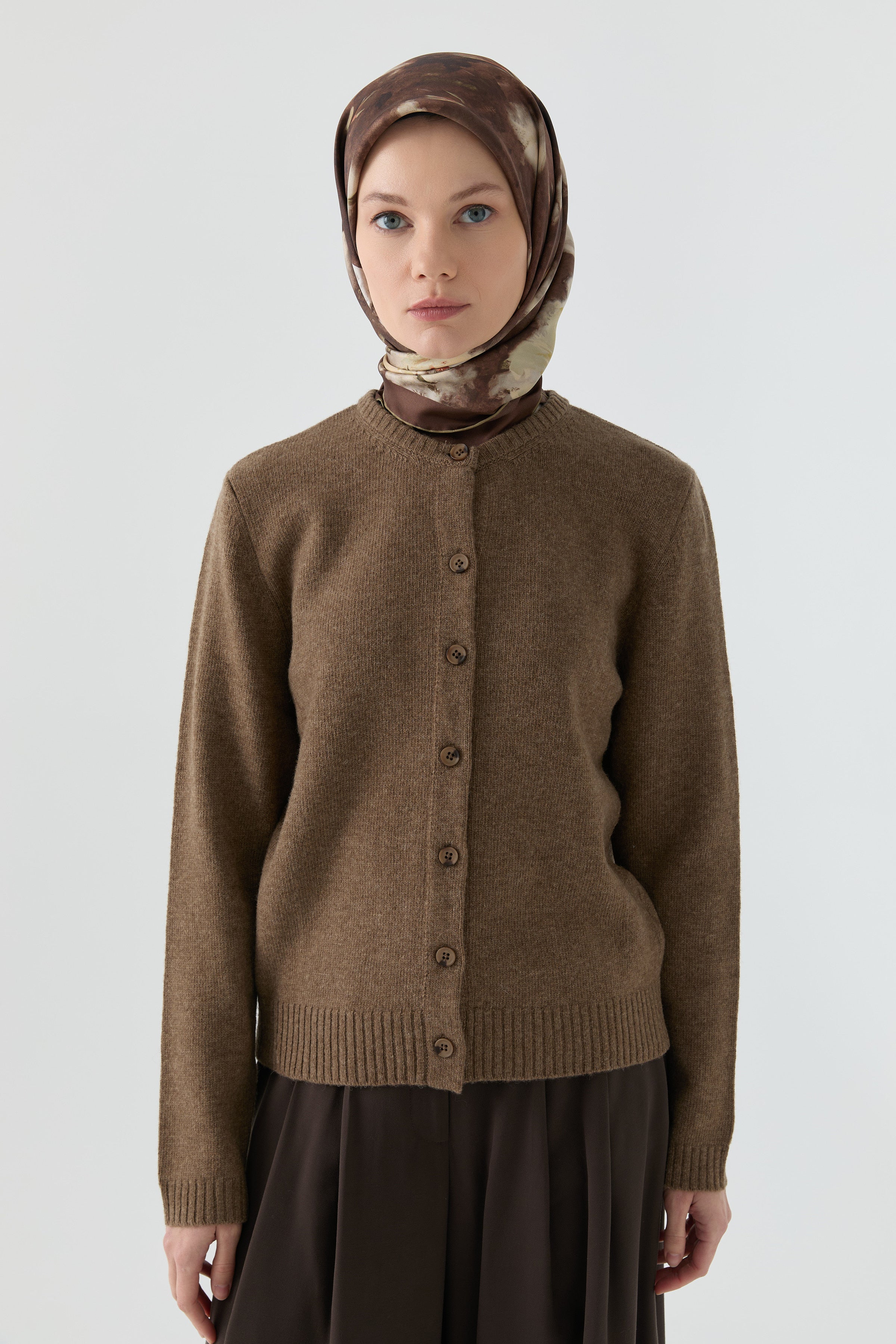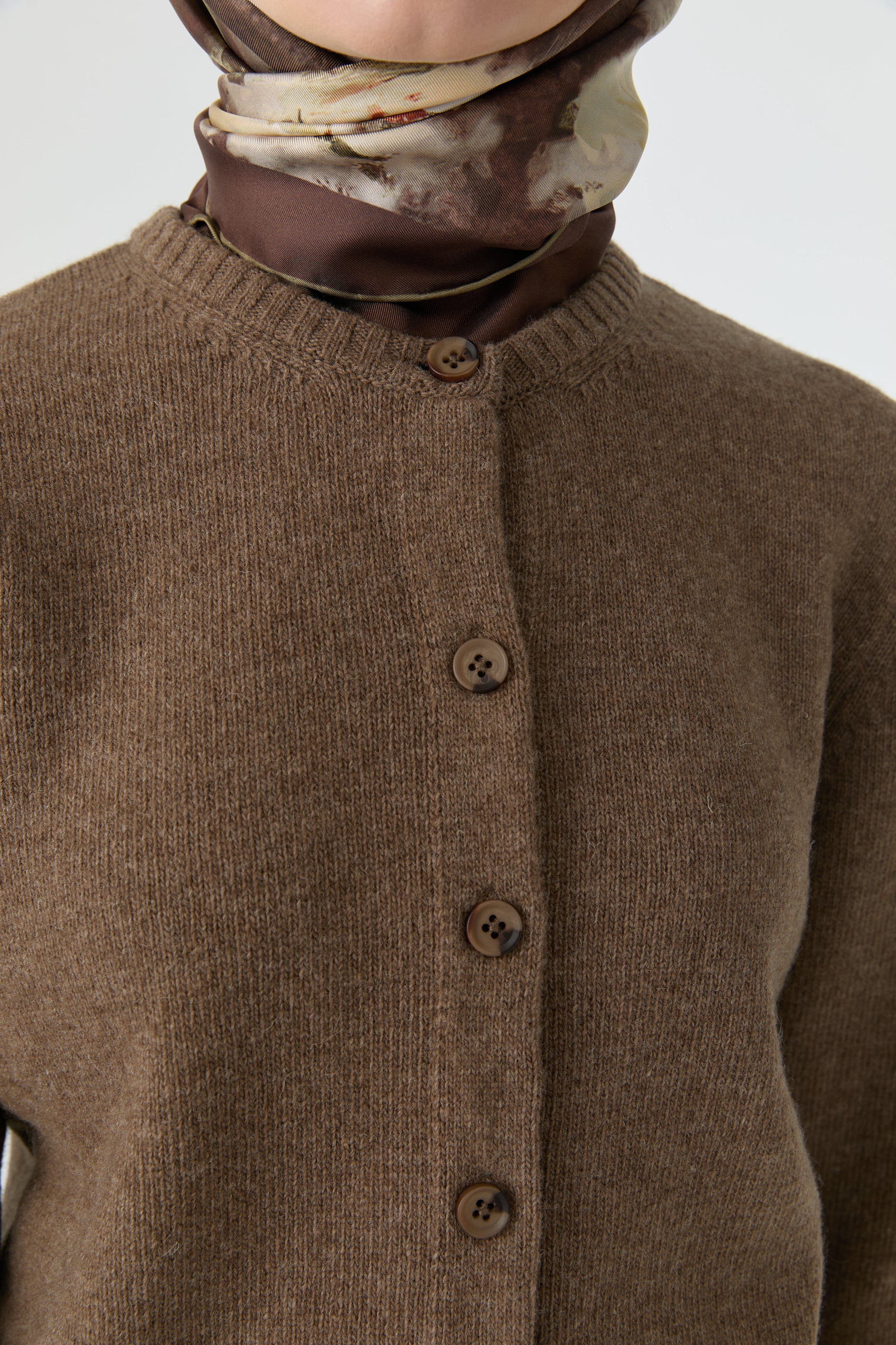 Round neck cardigan - Taupe
