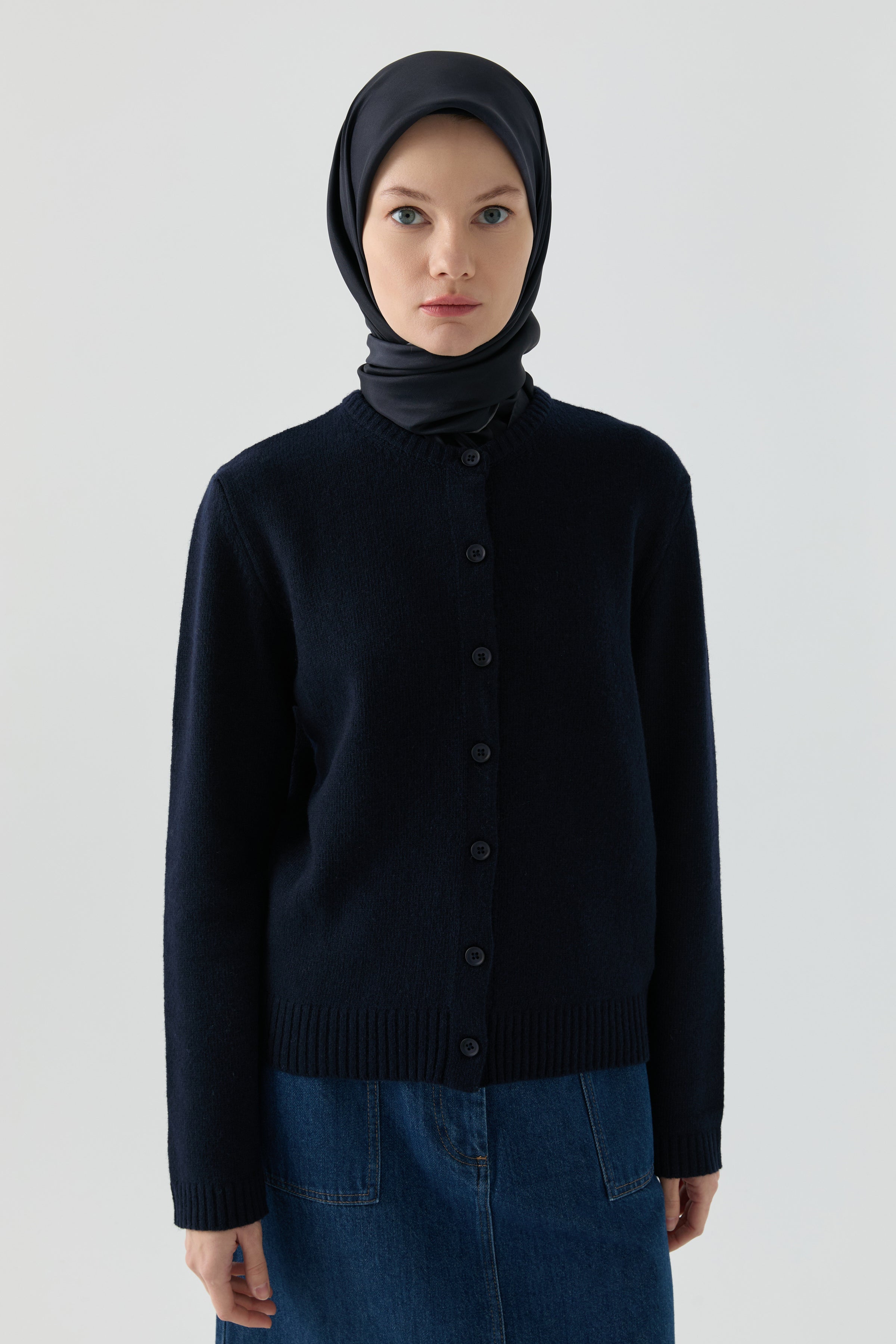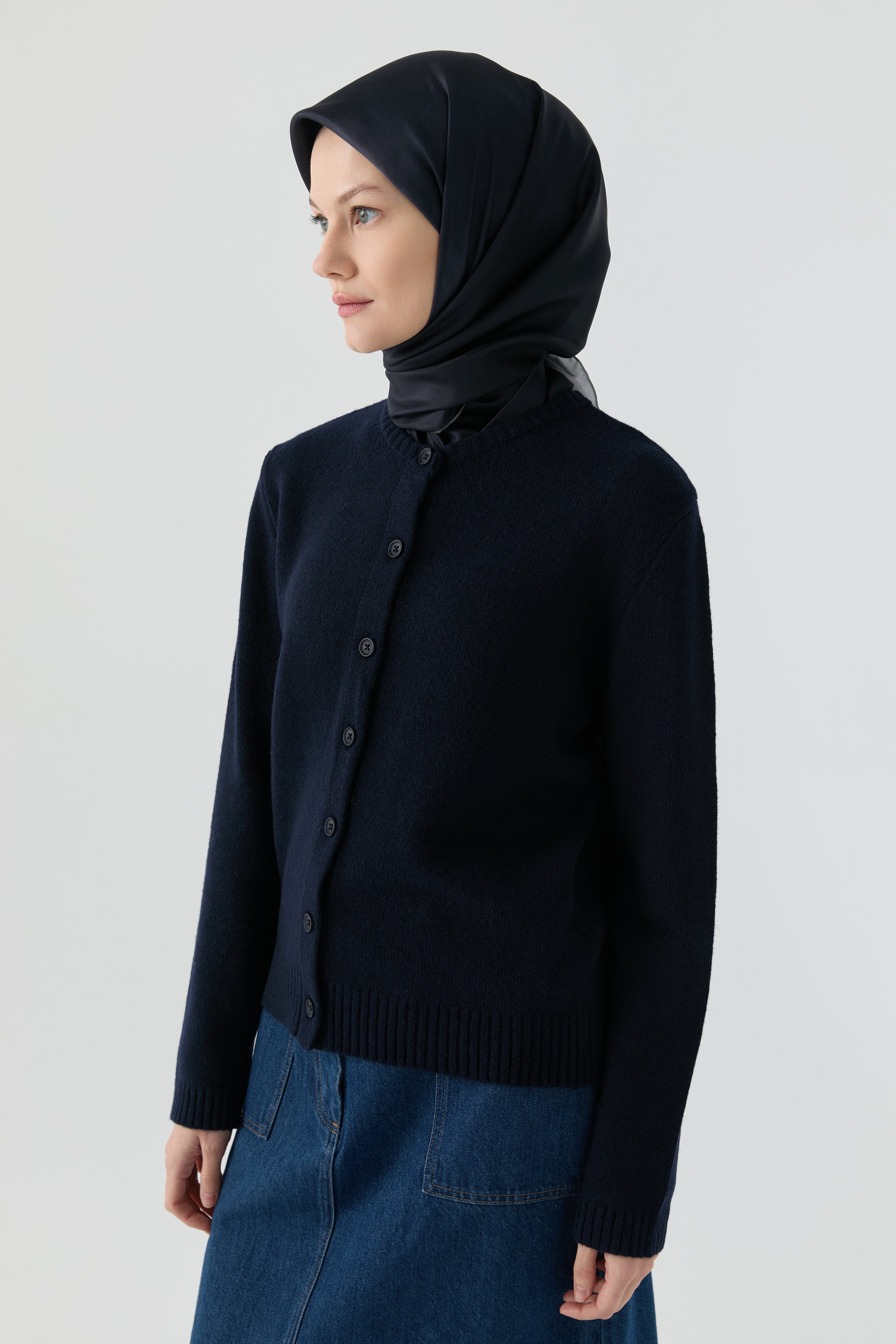 Mid-length cape with elasticated waist and knit combination - Navy blue