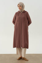 Hooded cape with fitted waist - Hazelnut