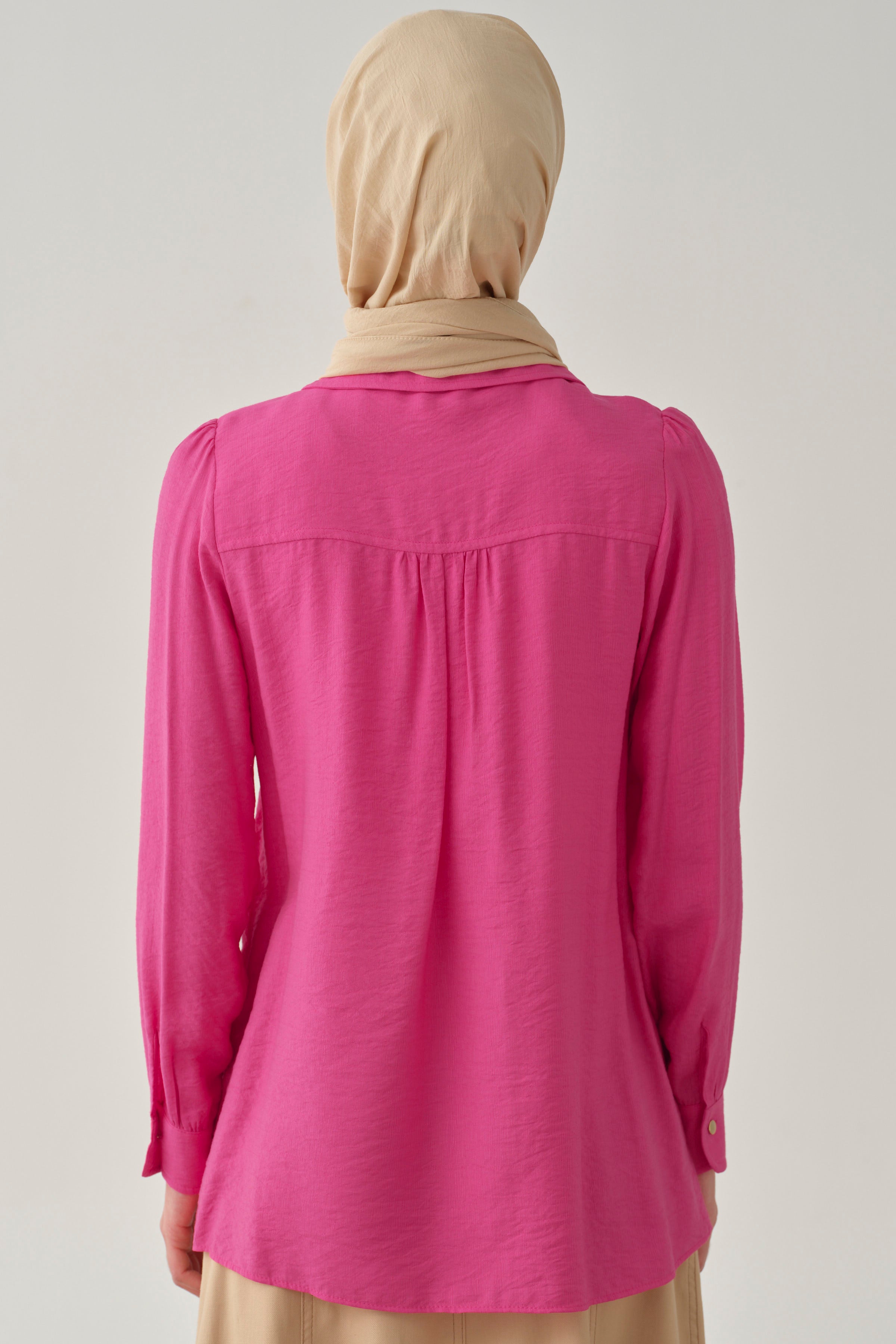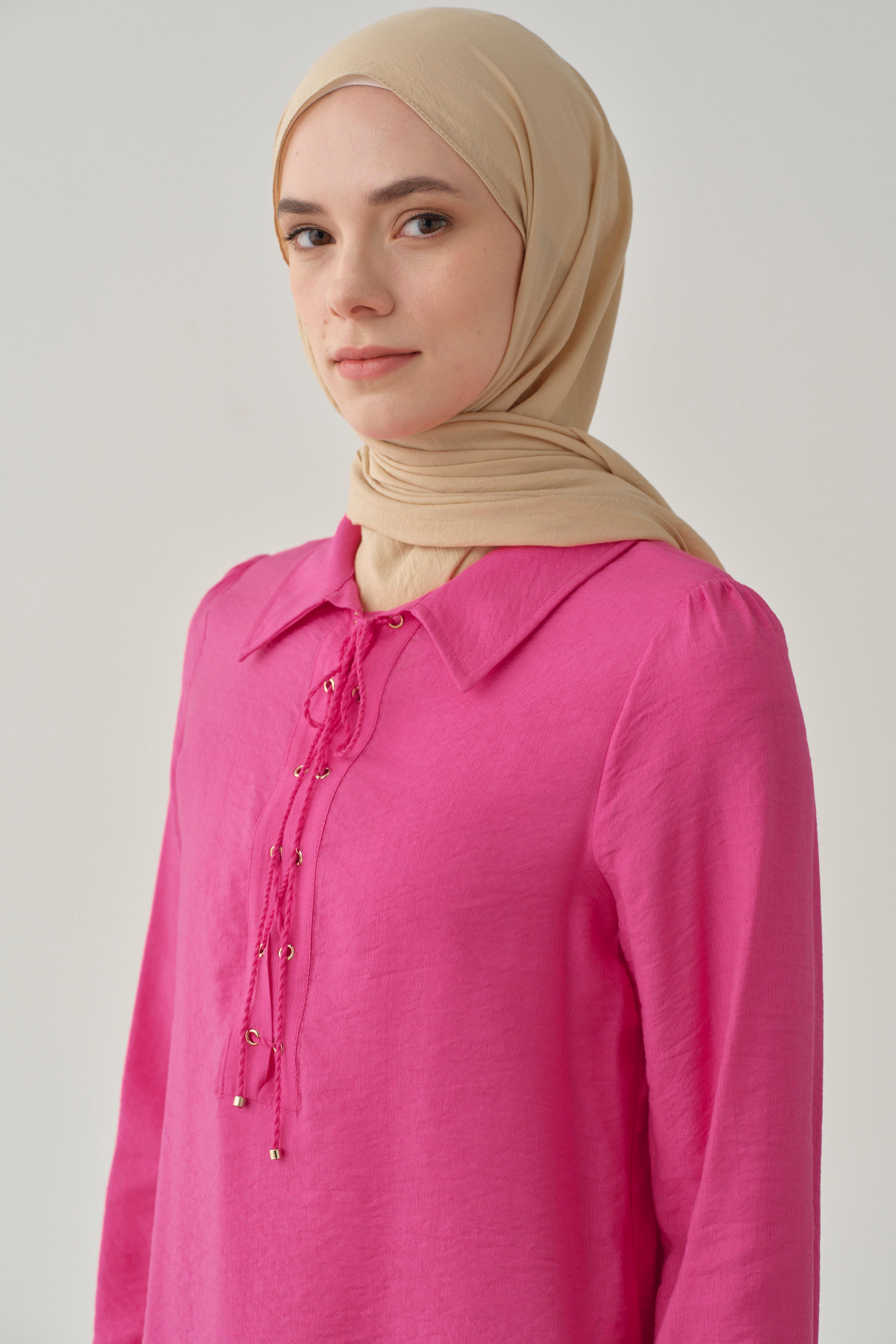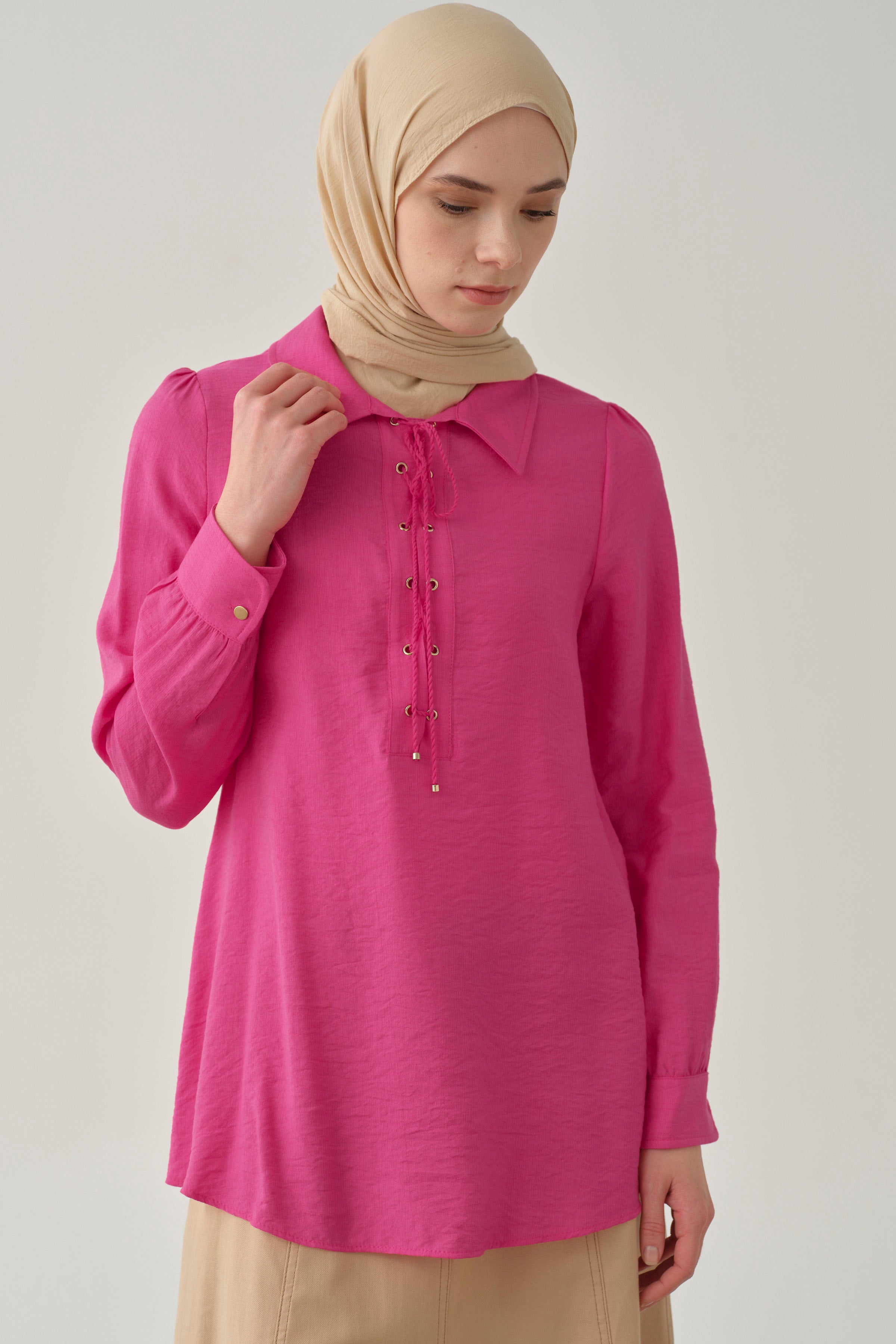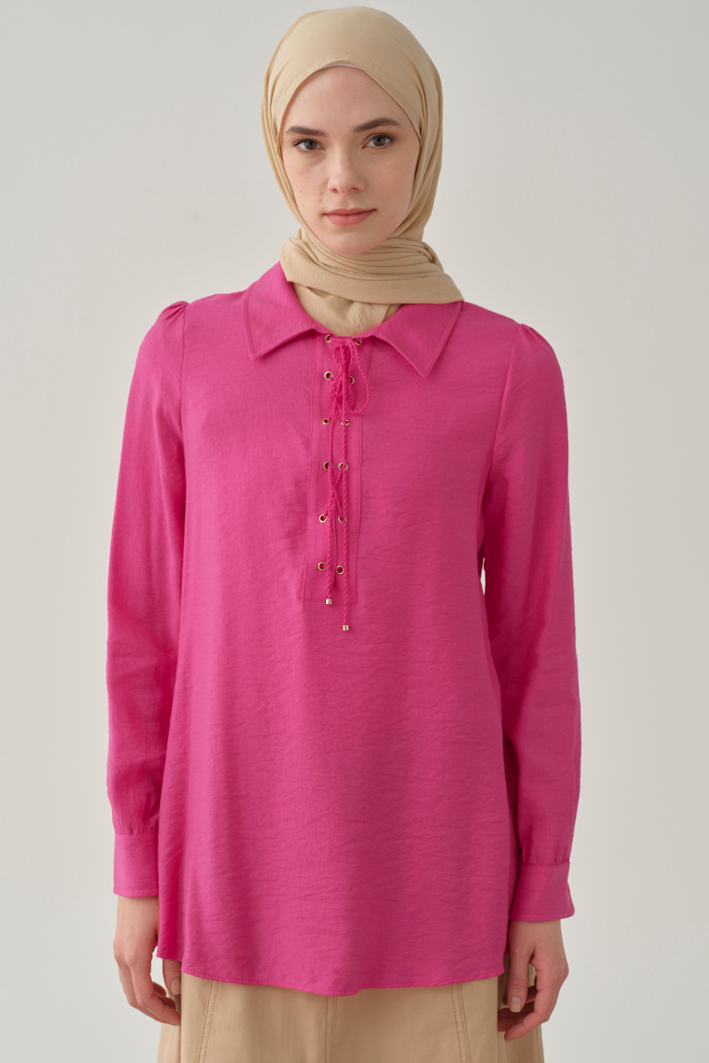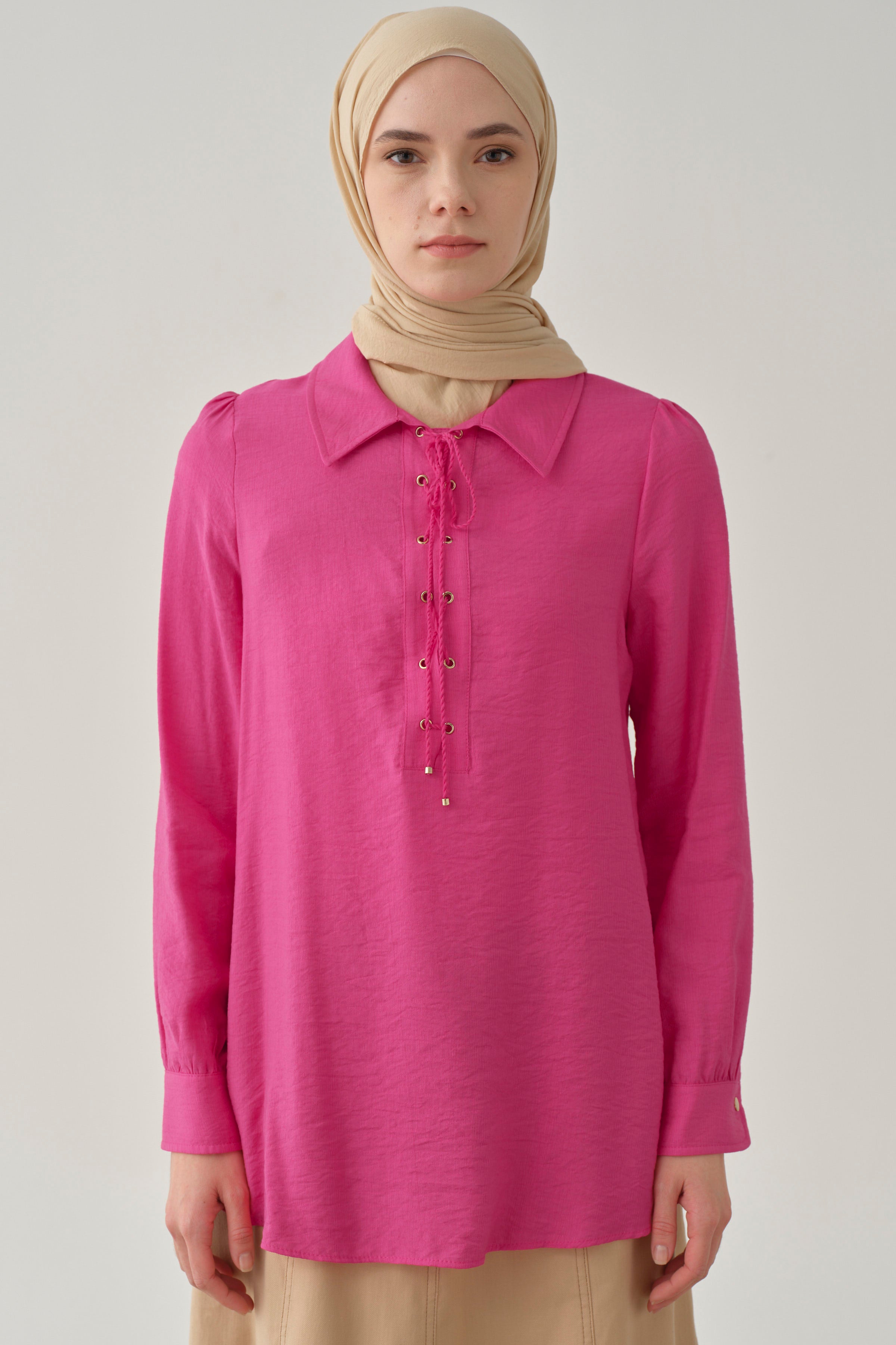 Crisscross Neckline Blouse with Tie - Fuchsia