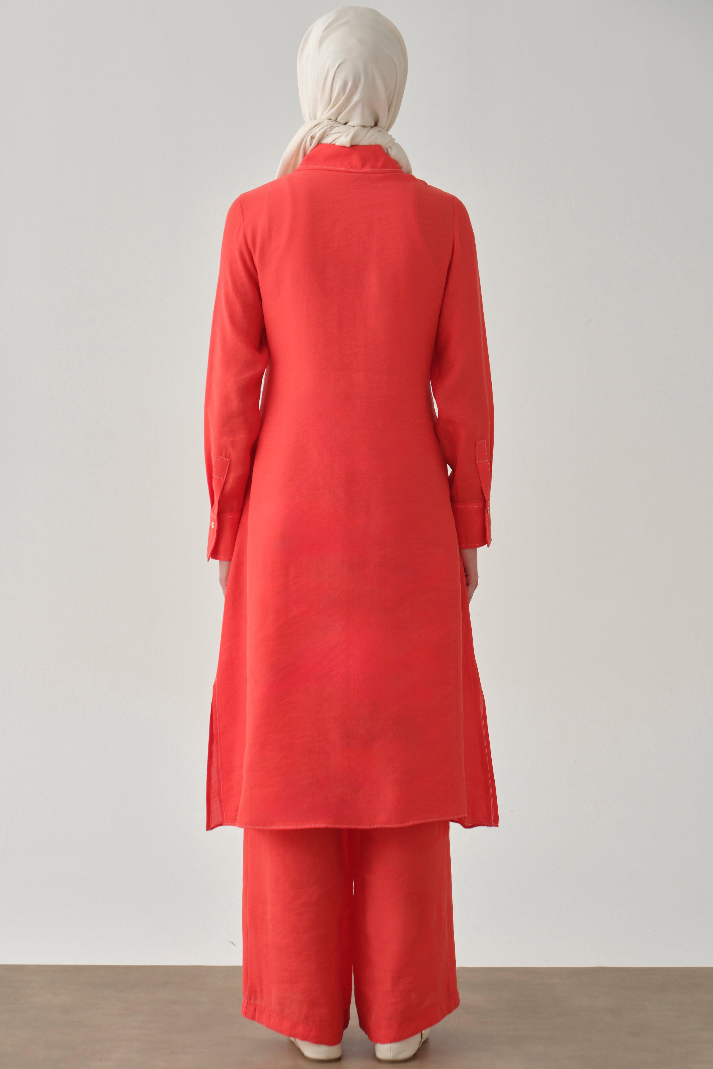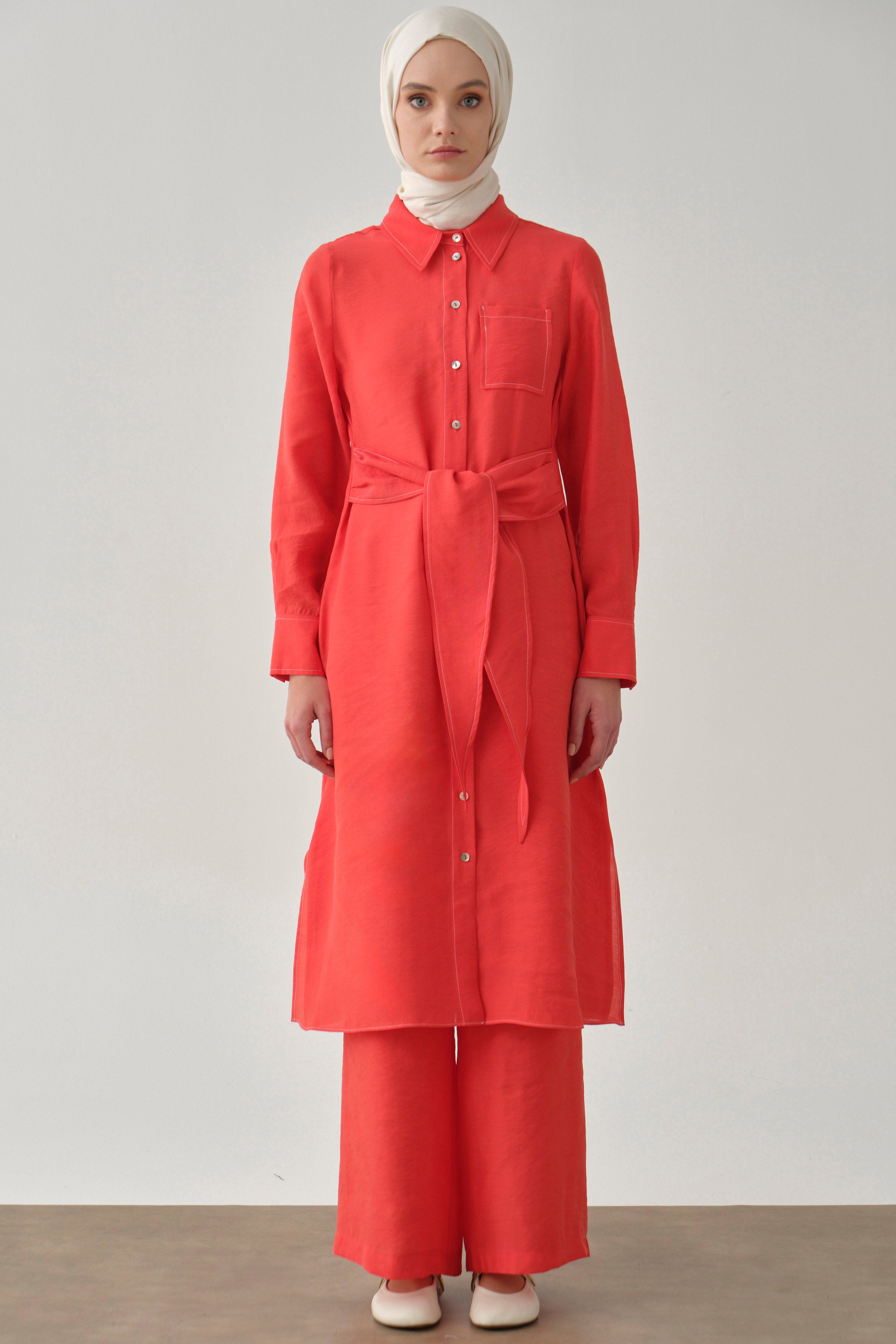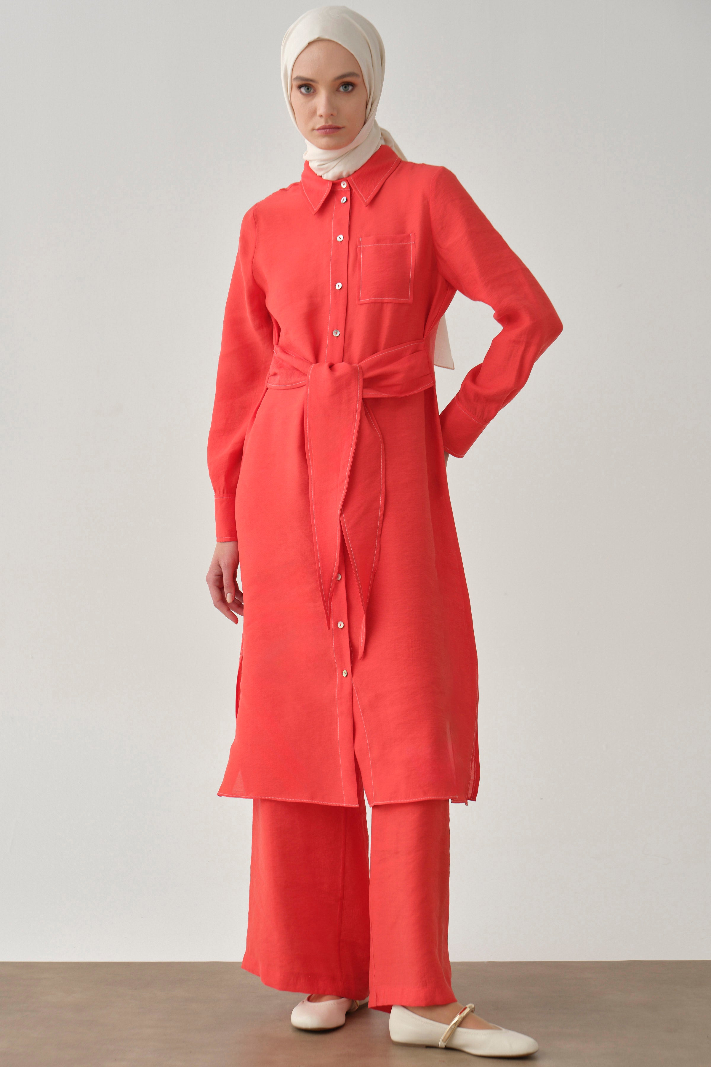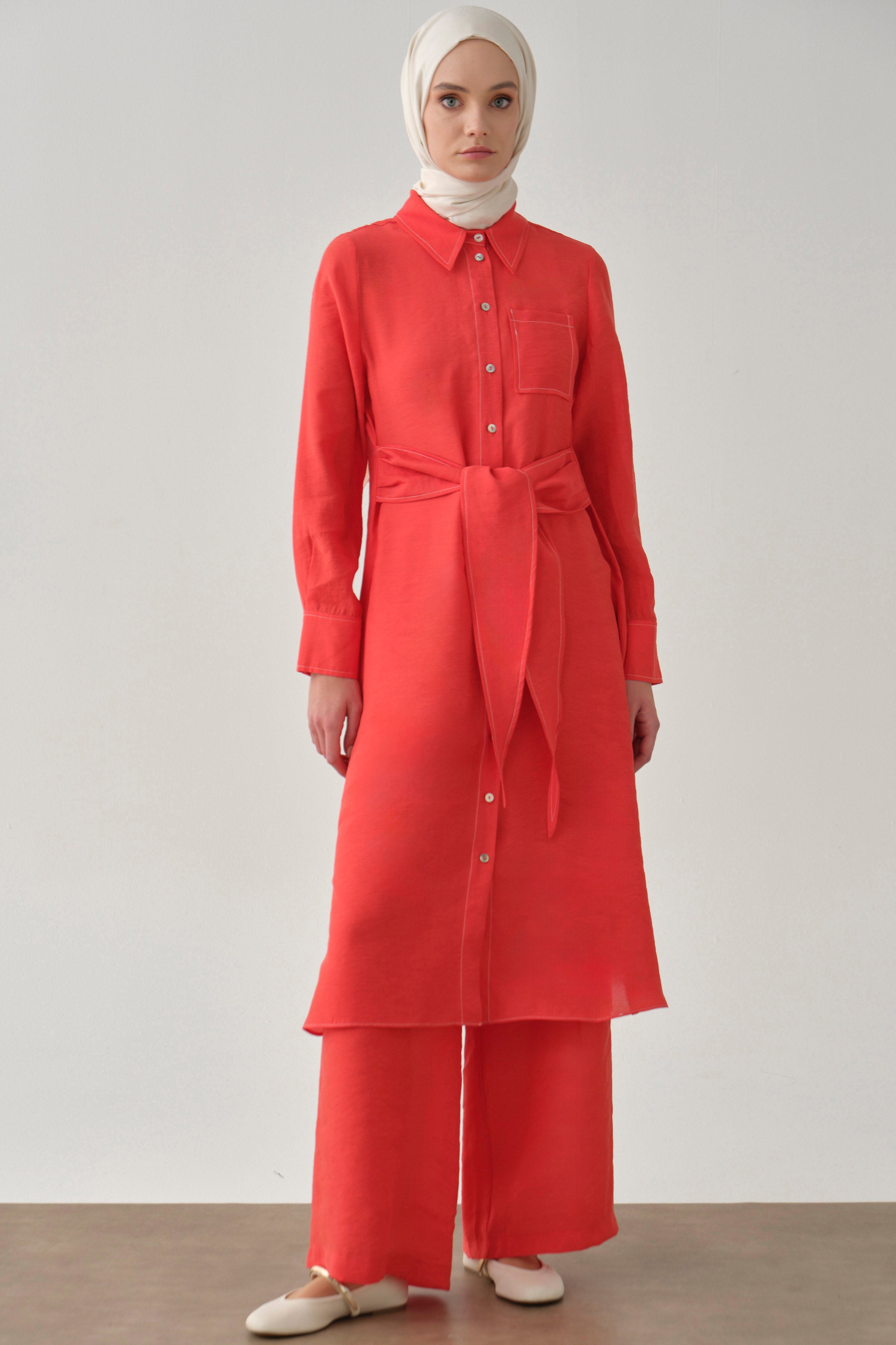 Tunic and pants set with belt - Coral