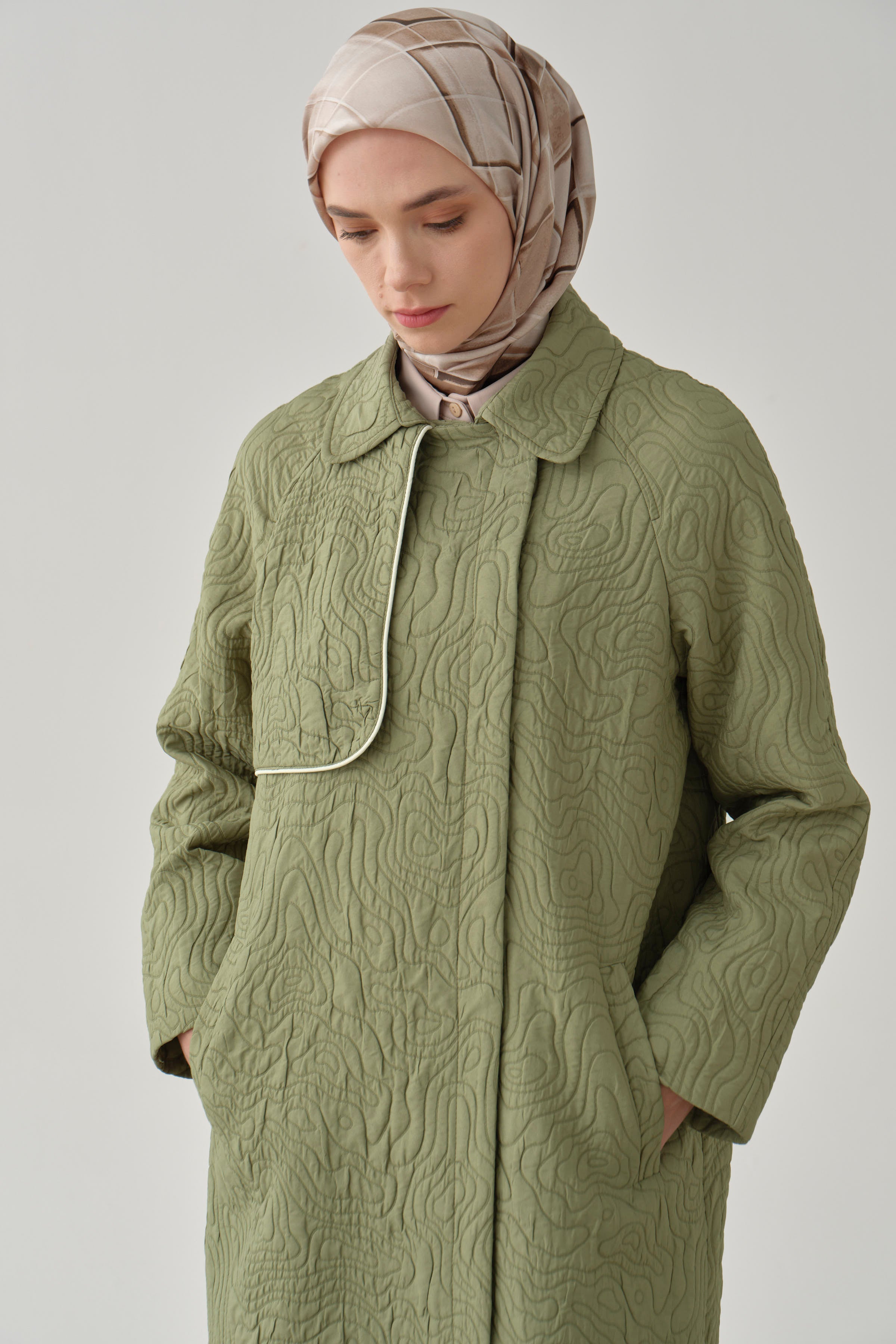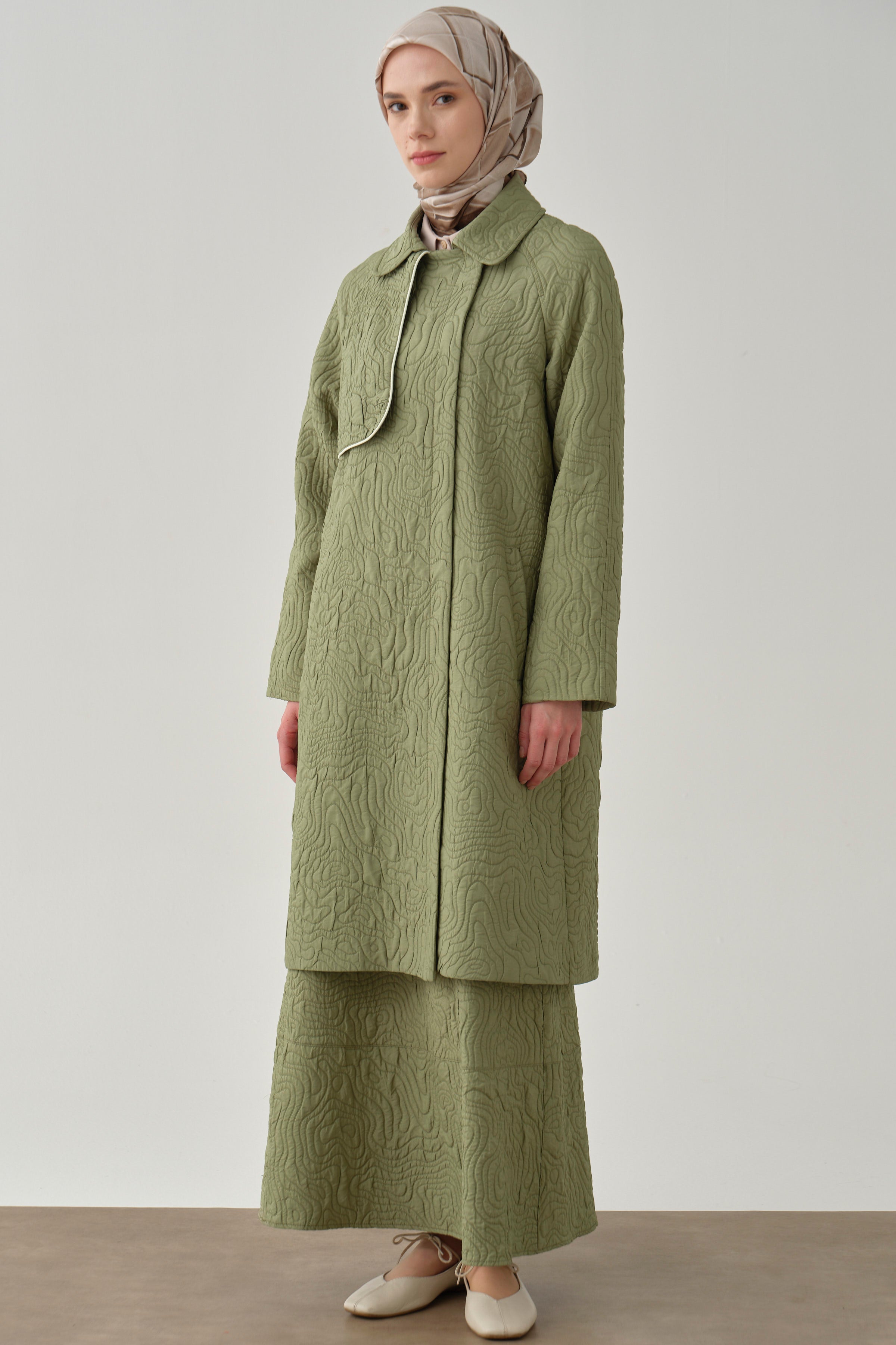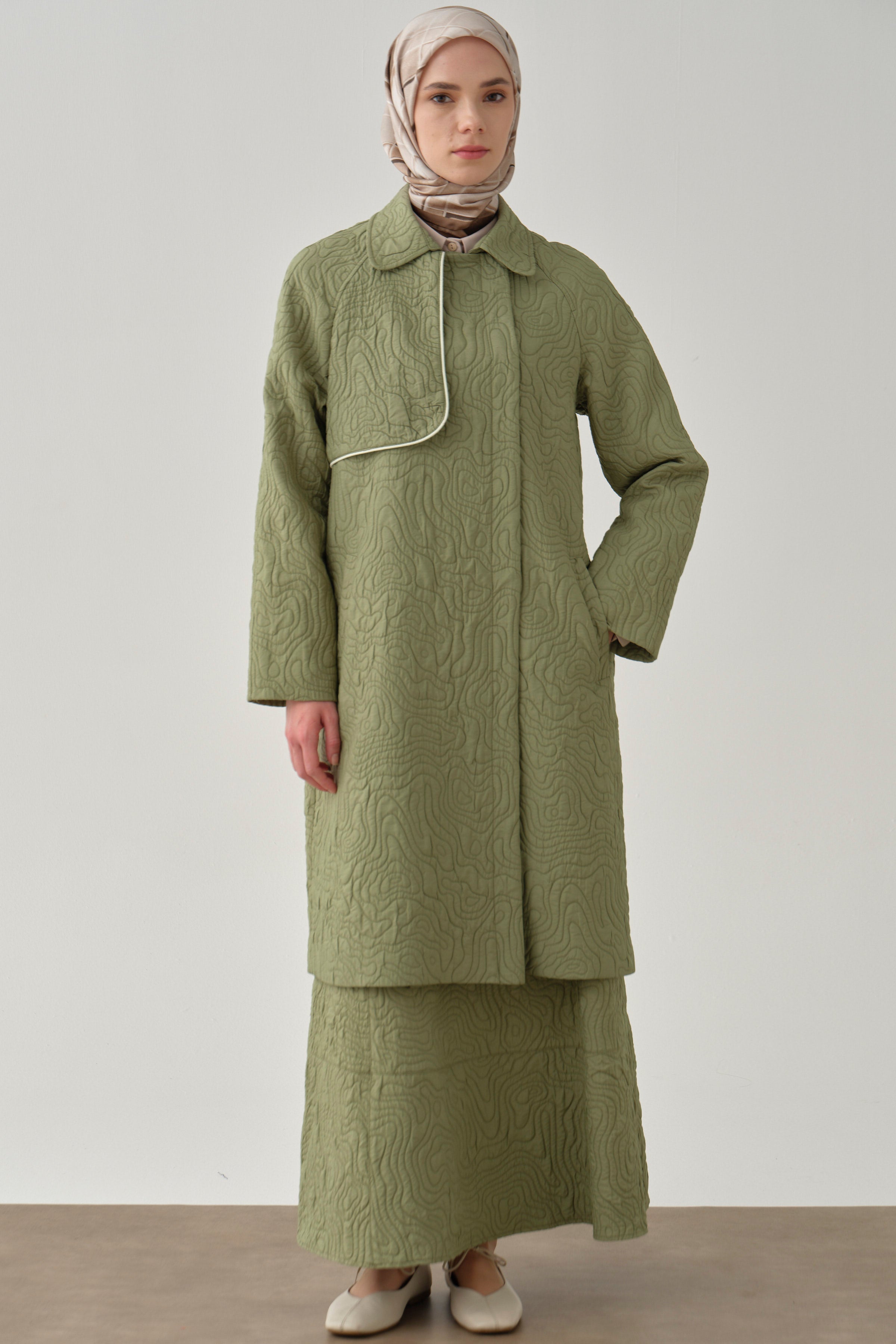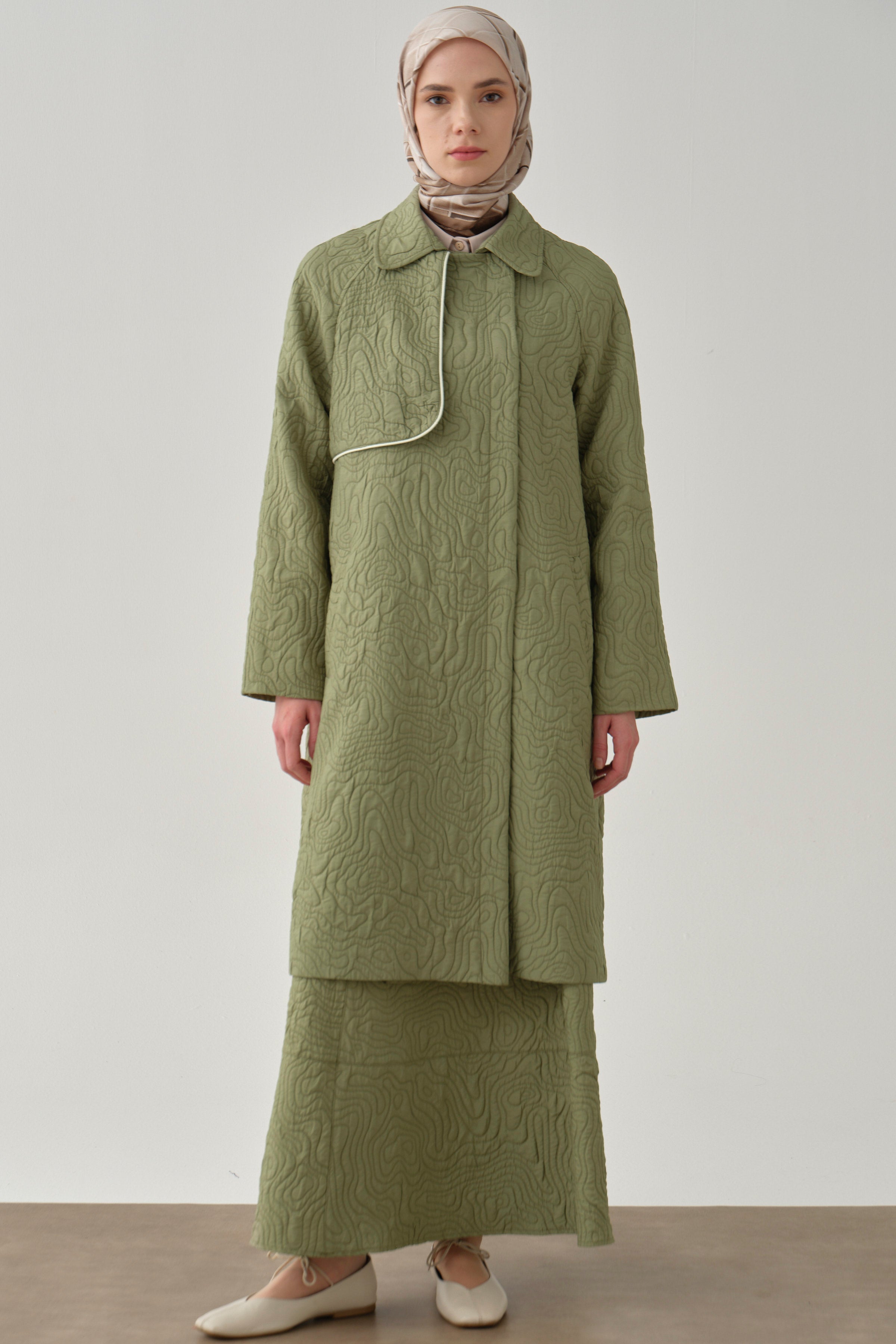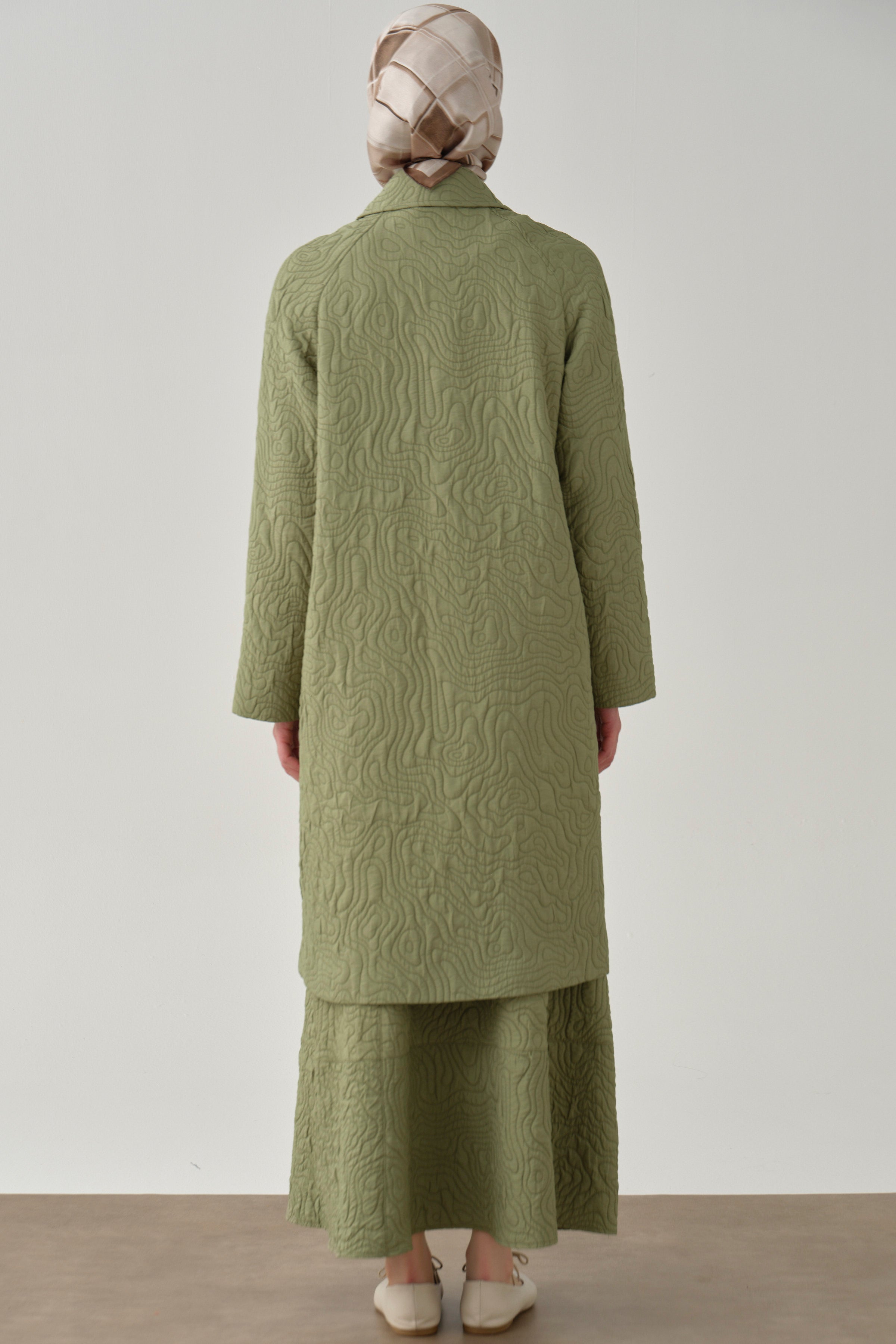 Quilted double-breasted coat with bias - Mint
