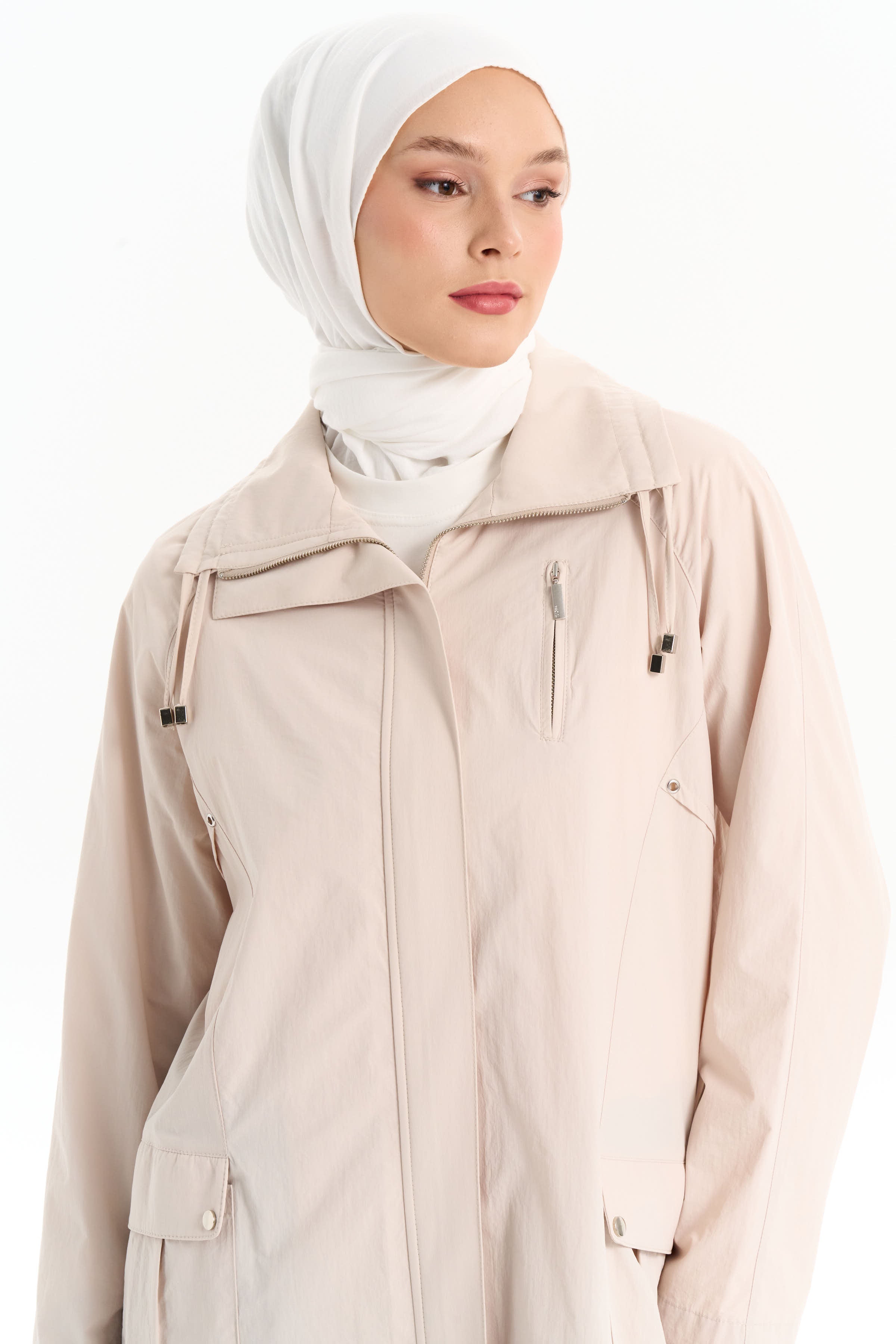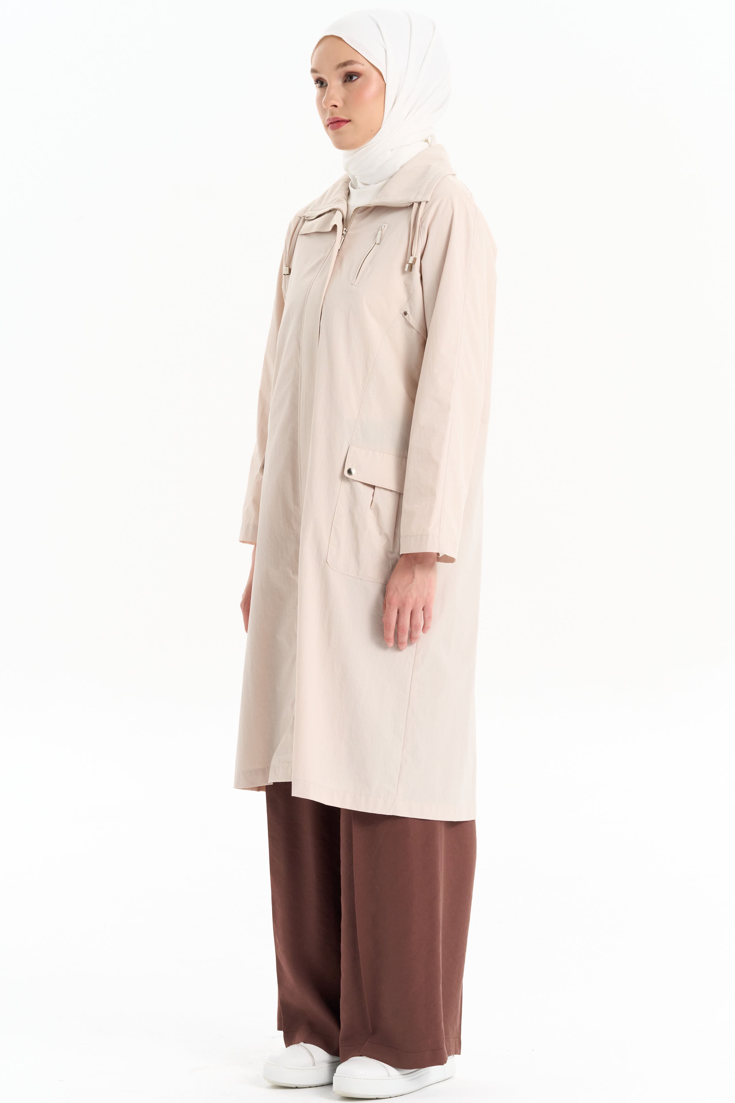 Trench coat with double bias collar - Beige