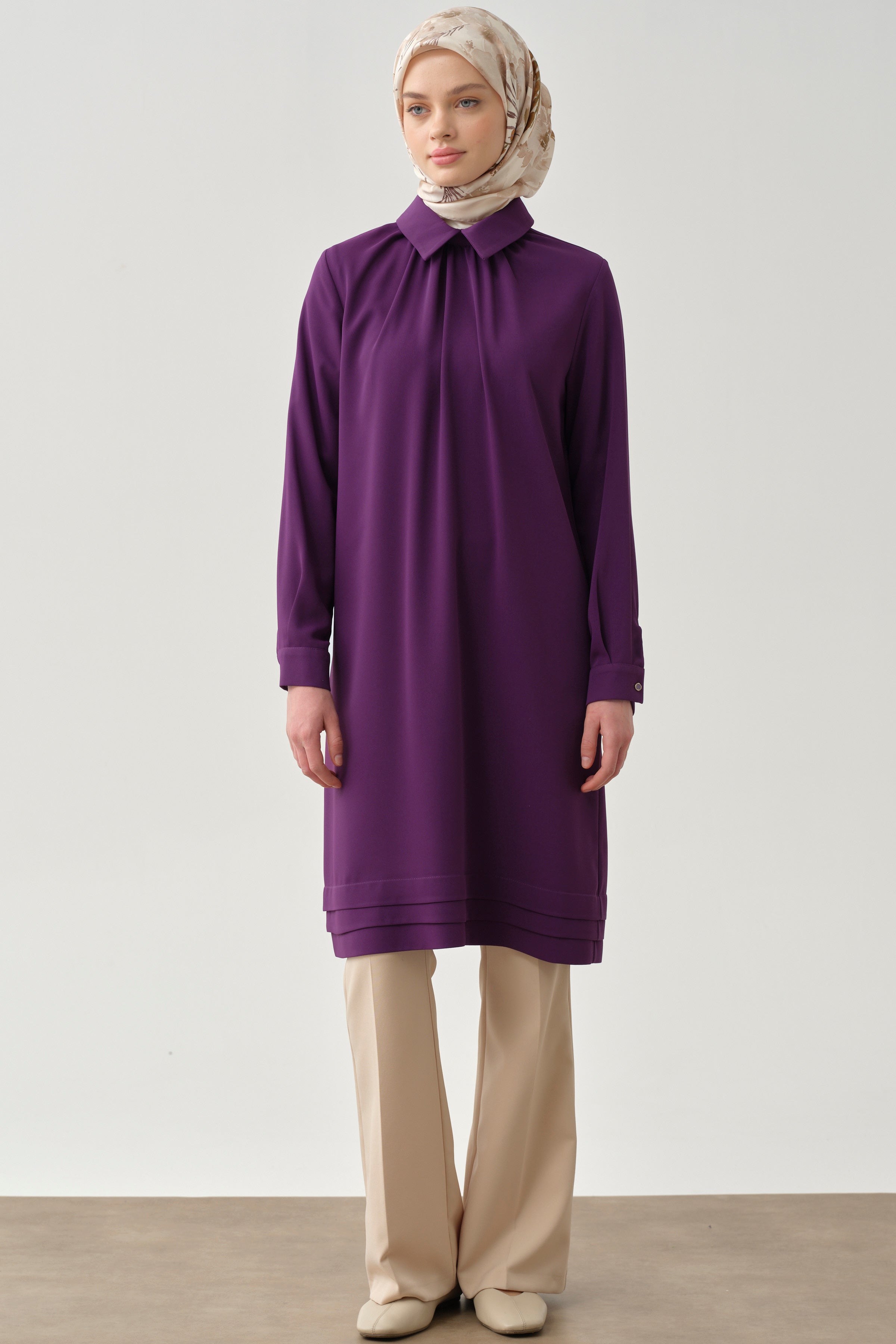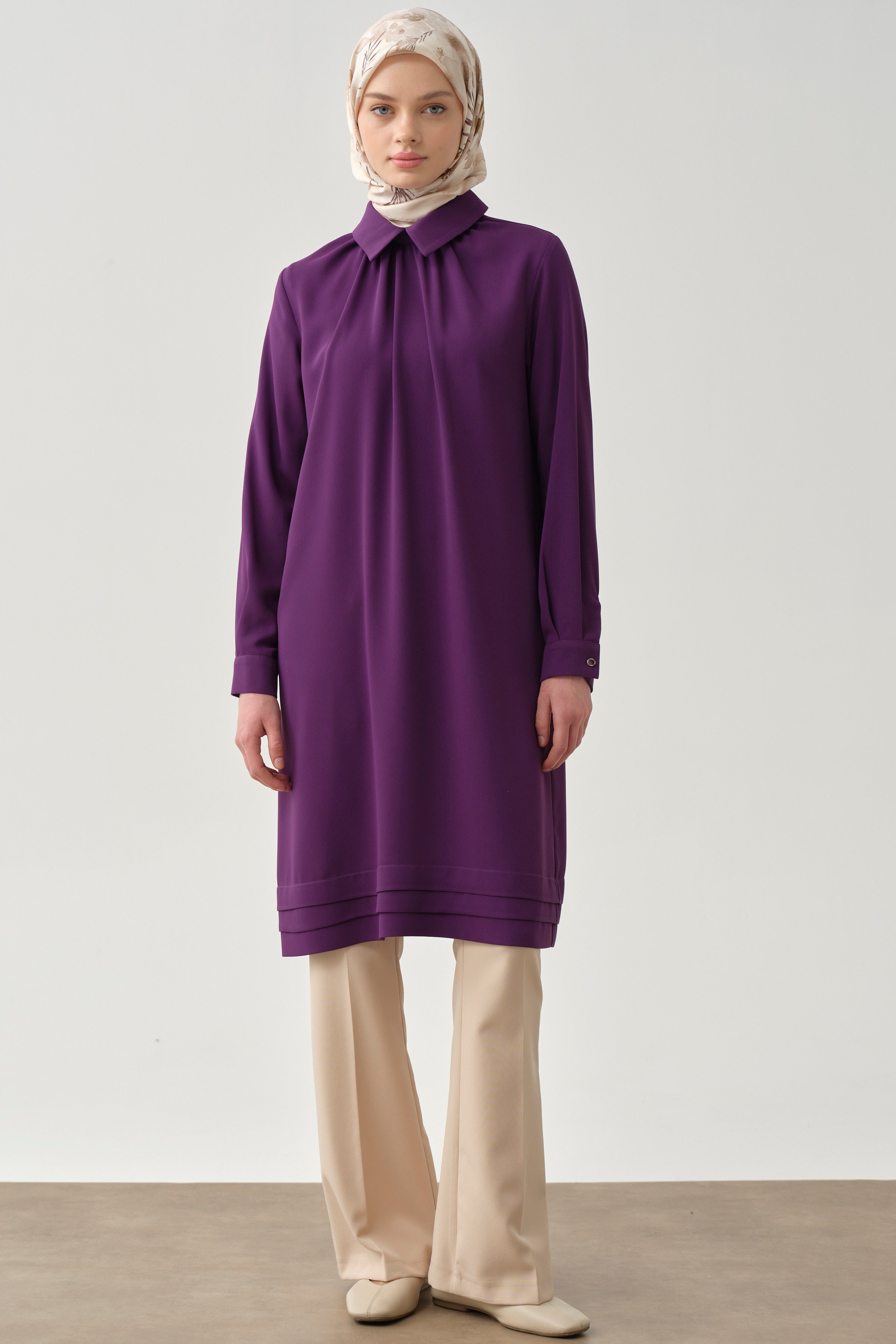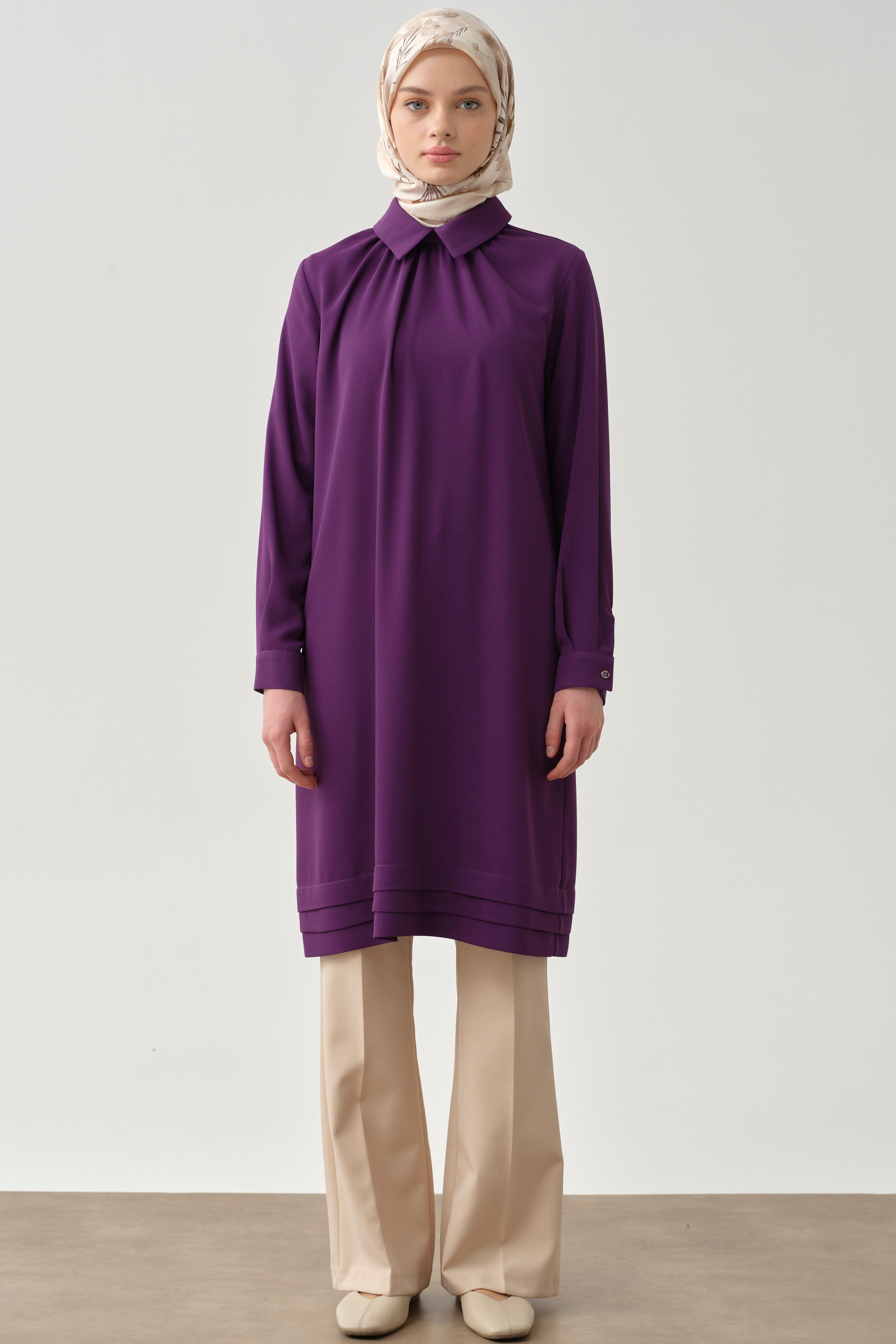 Gathered Neck Tunic with Details - Purple