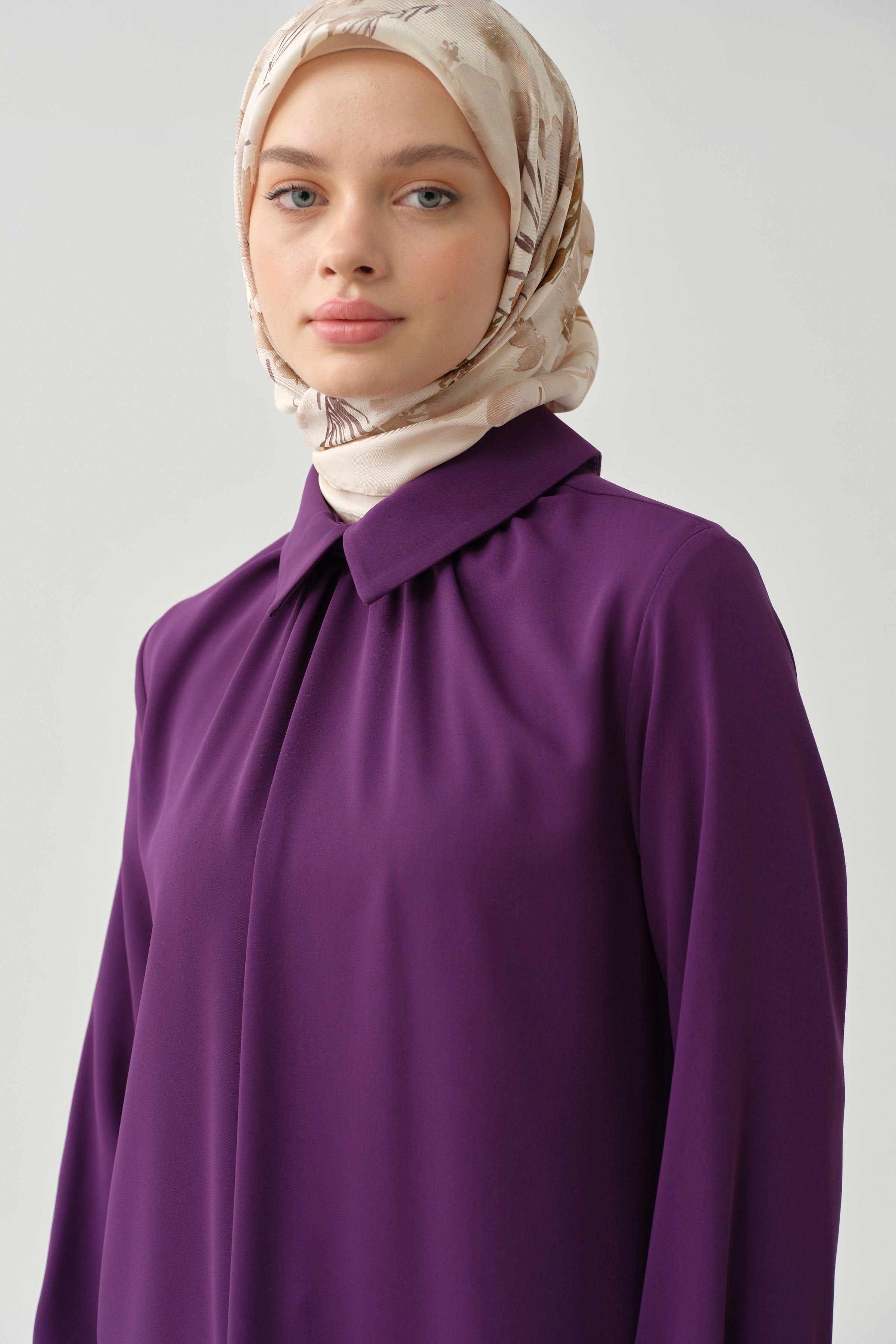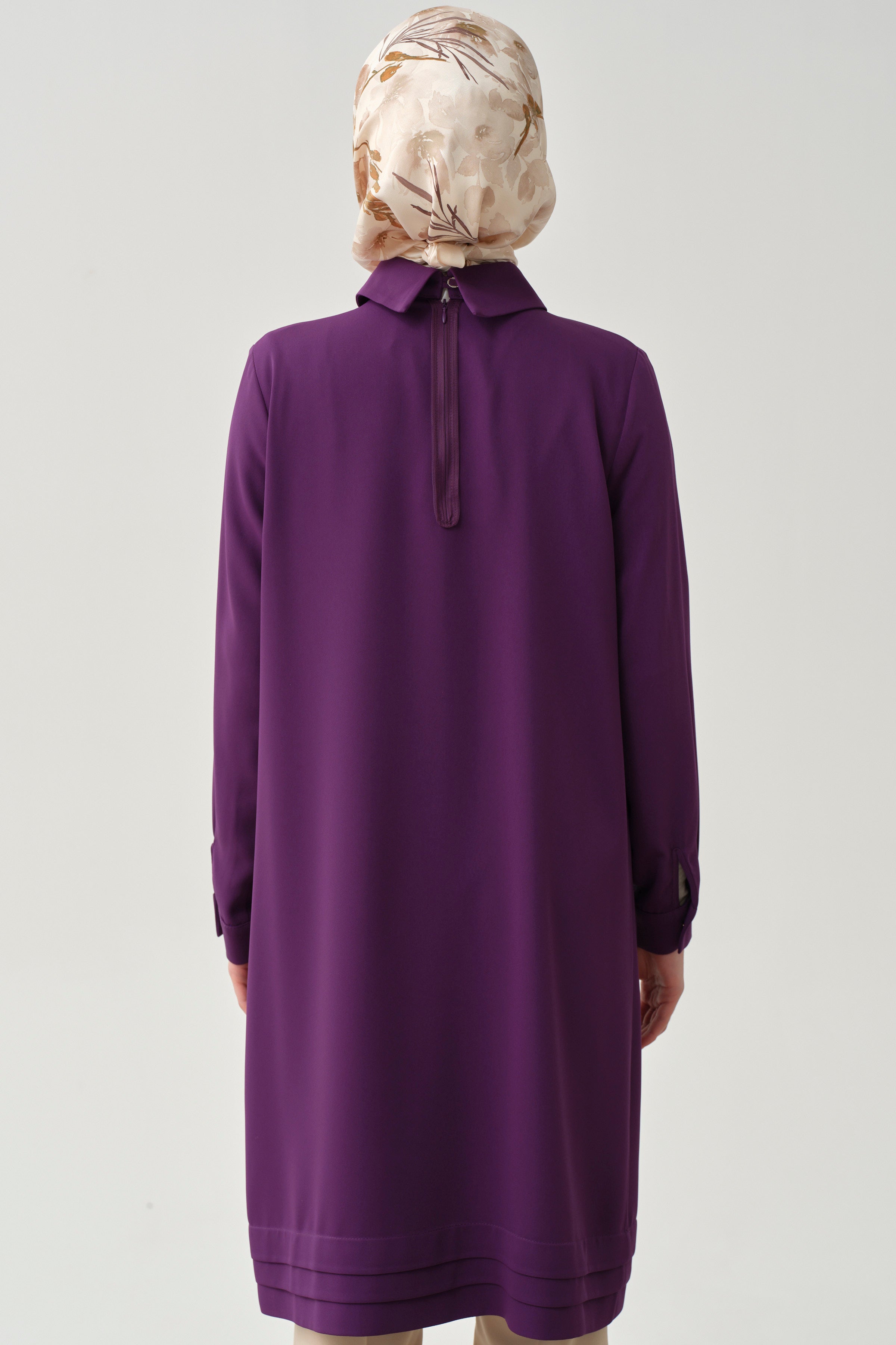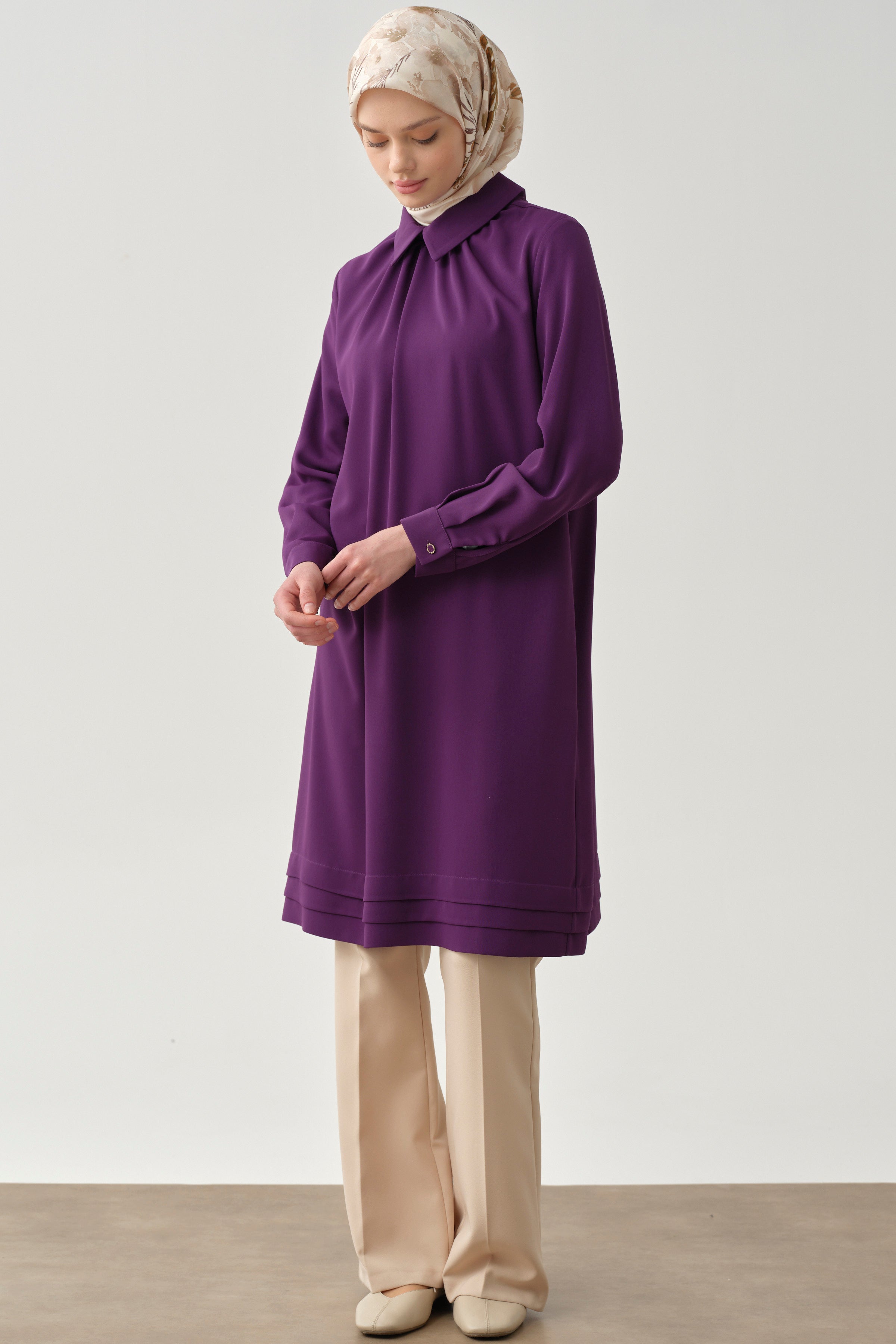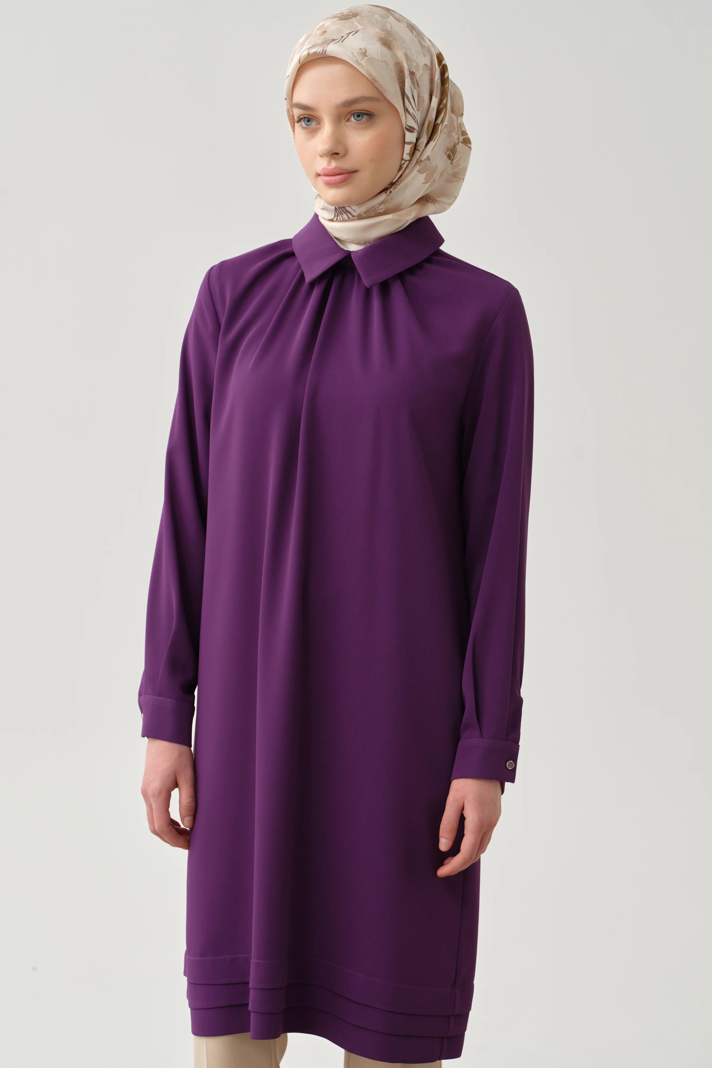 Gathered Neck Tunic with Details - Purple