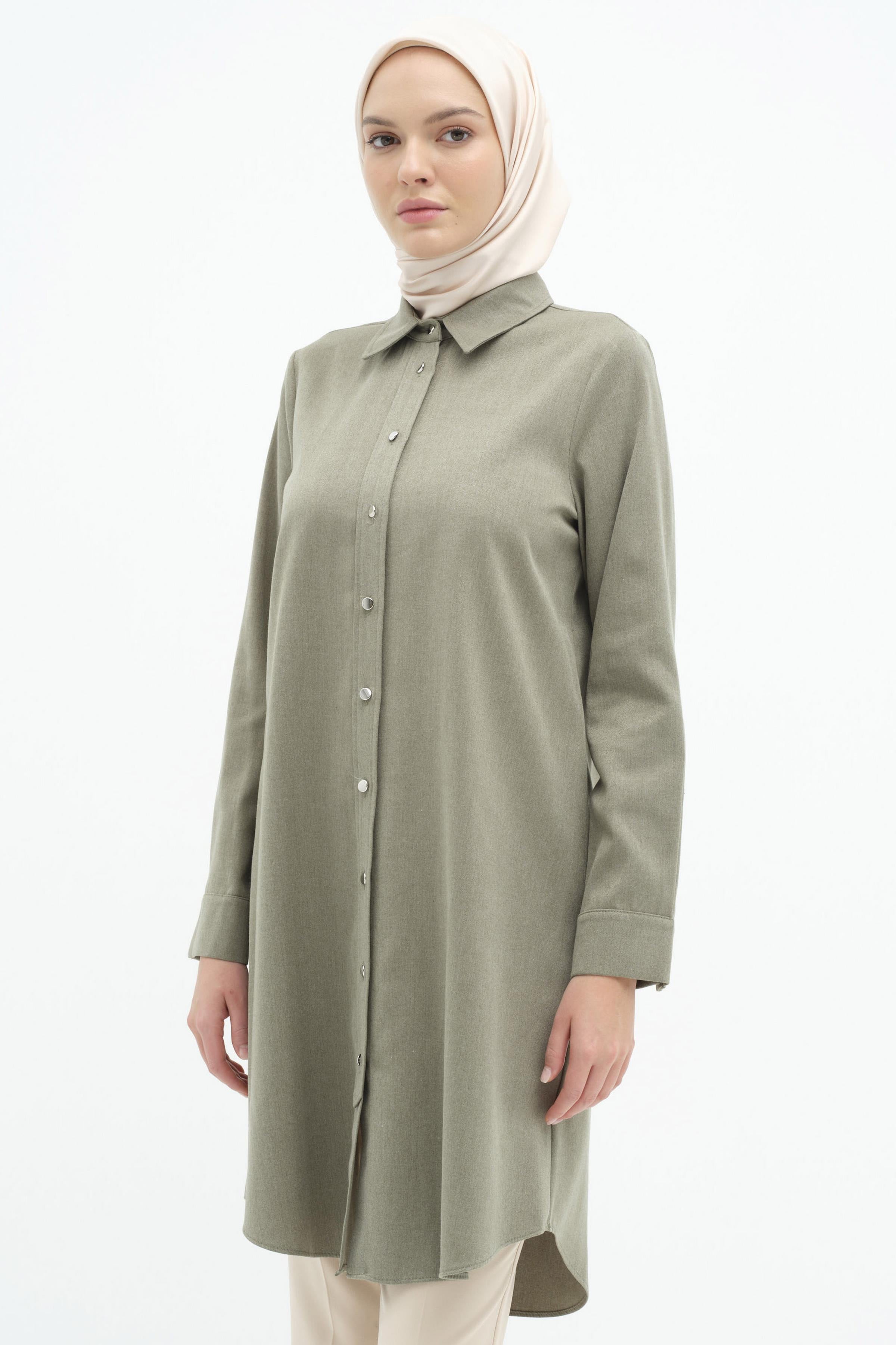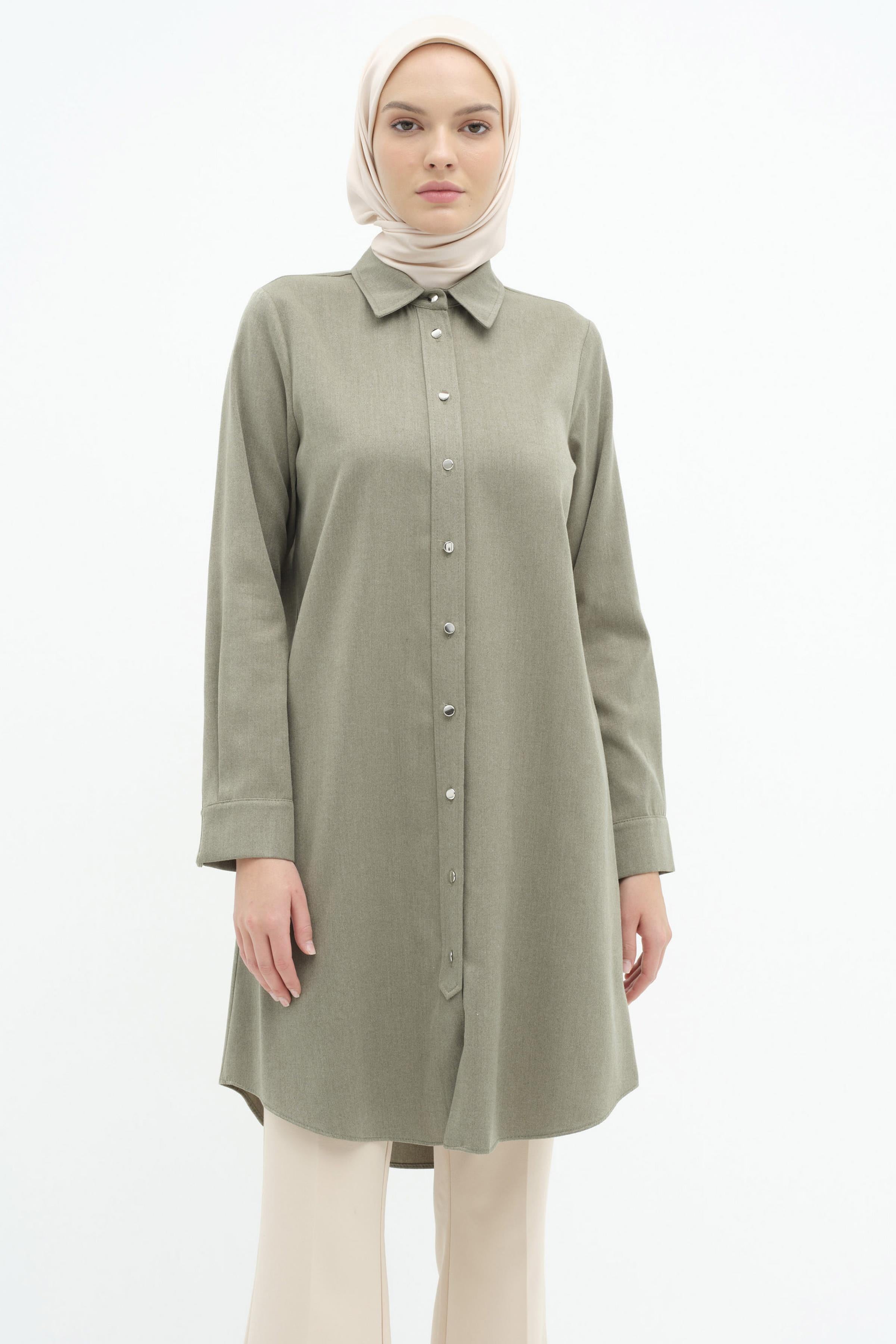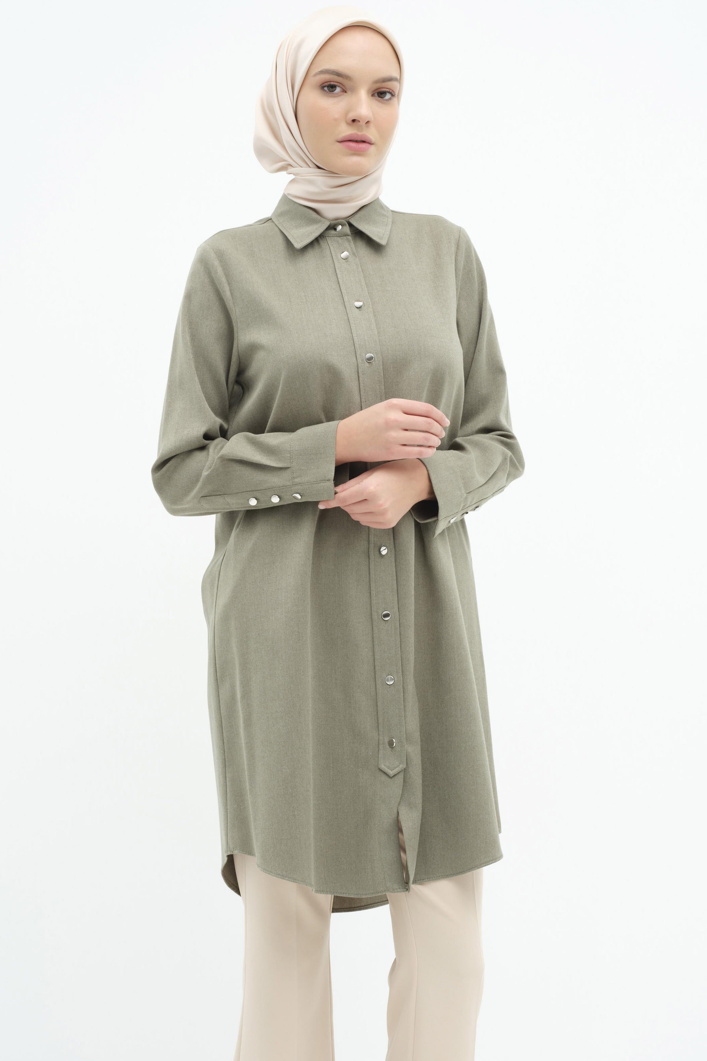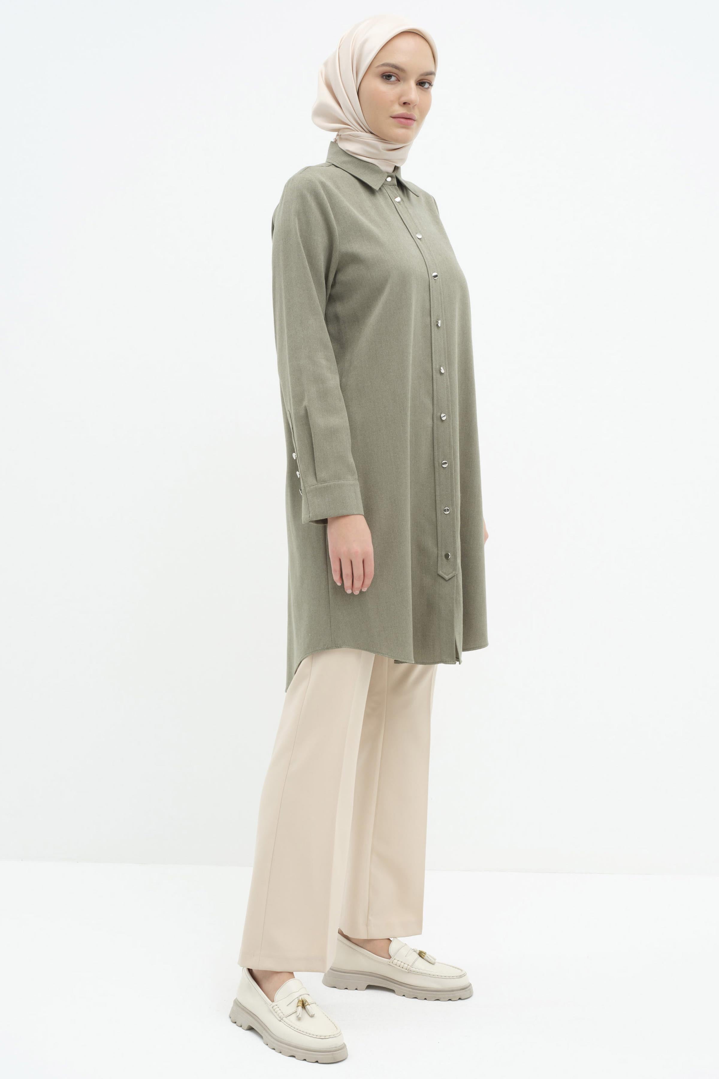 Detailed tunic with buttoned patch - Khaki