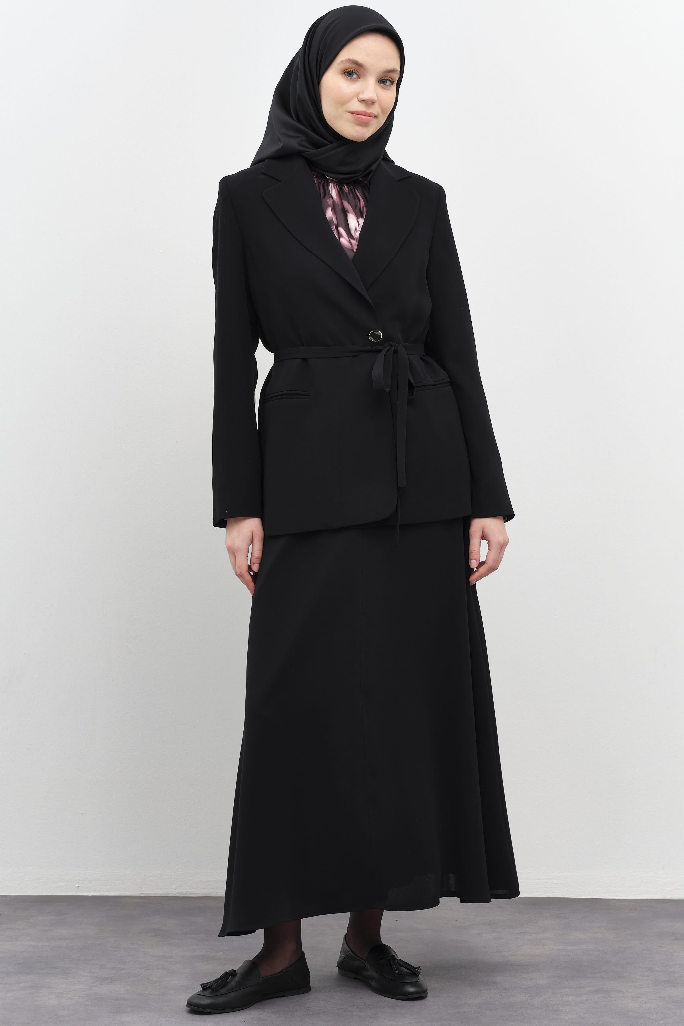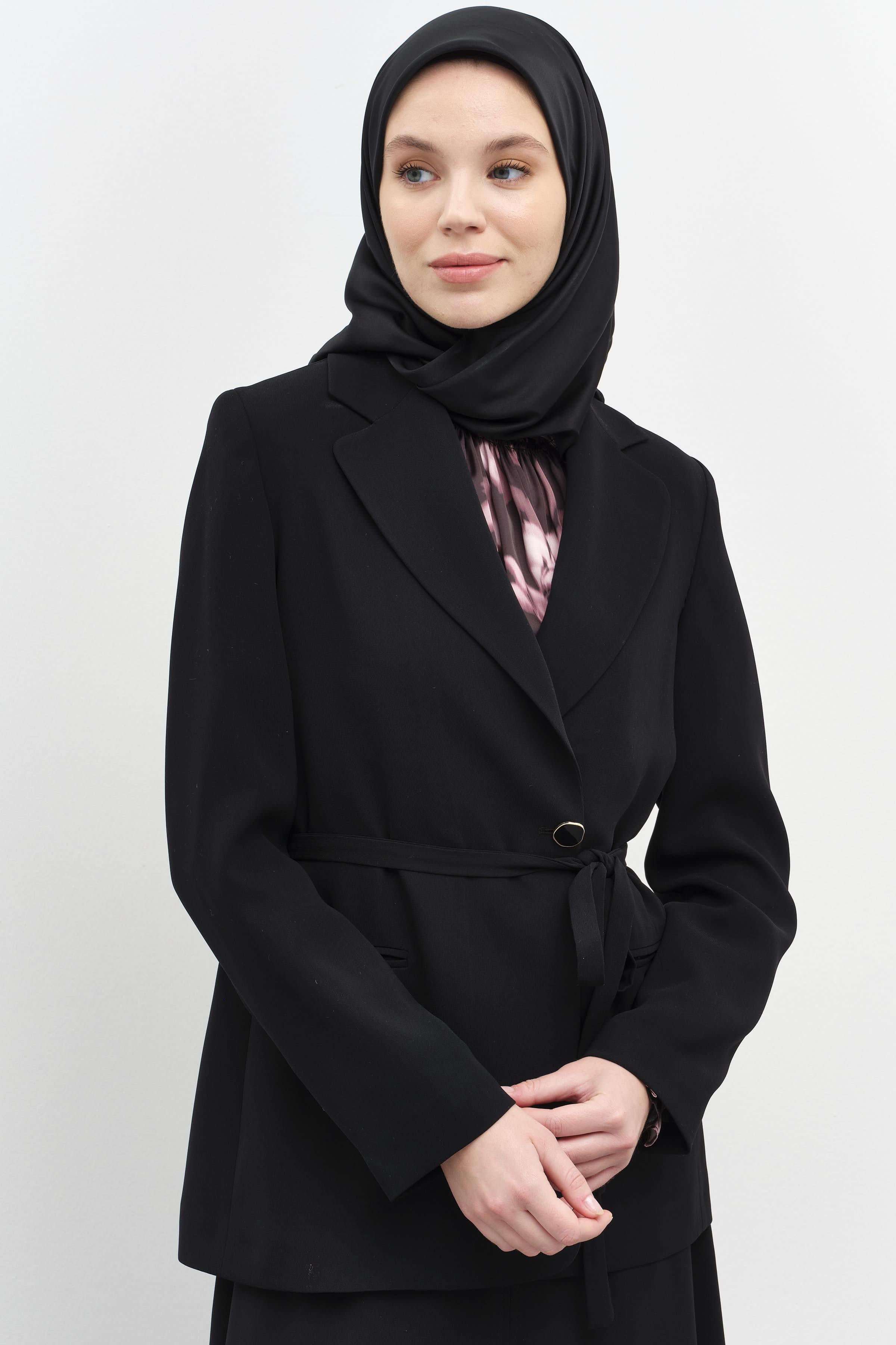 Belted jacket with hidden buttons - Black