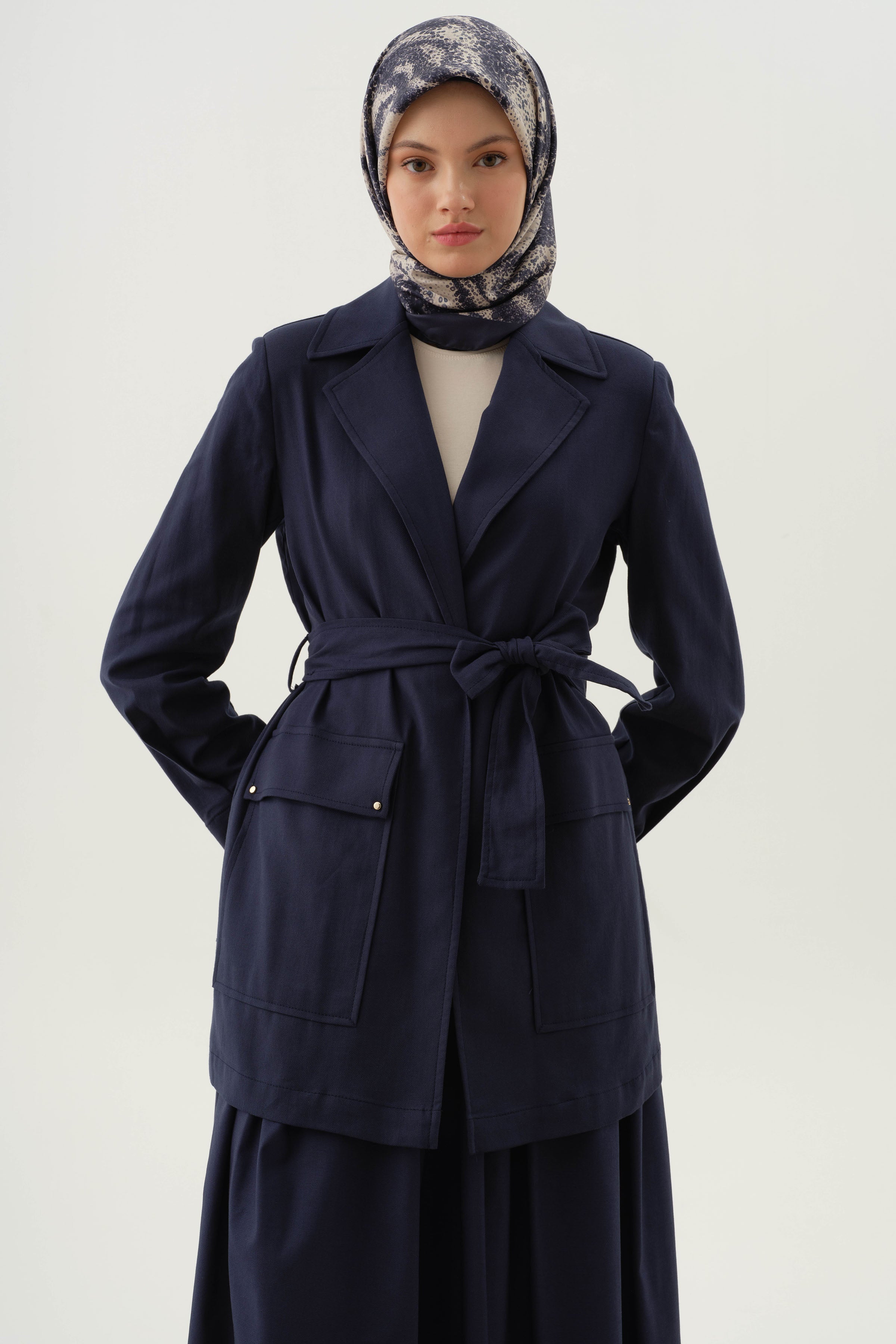 Belted jacket with stud details - Navy blue