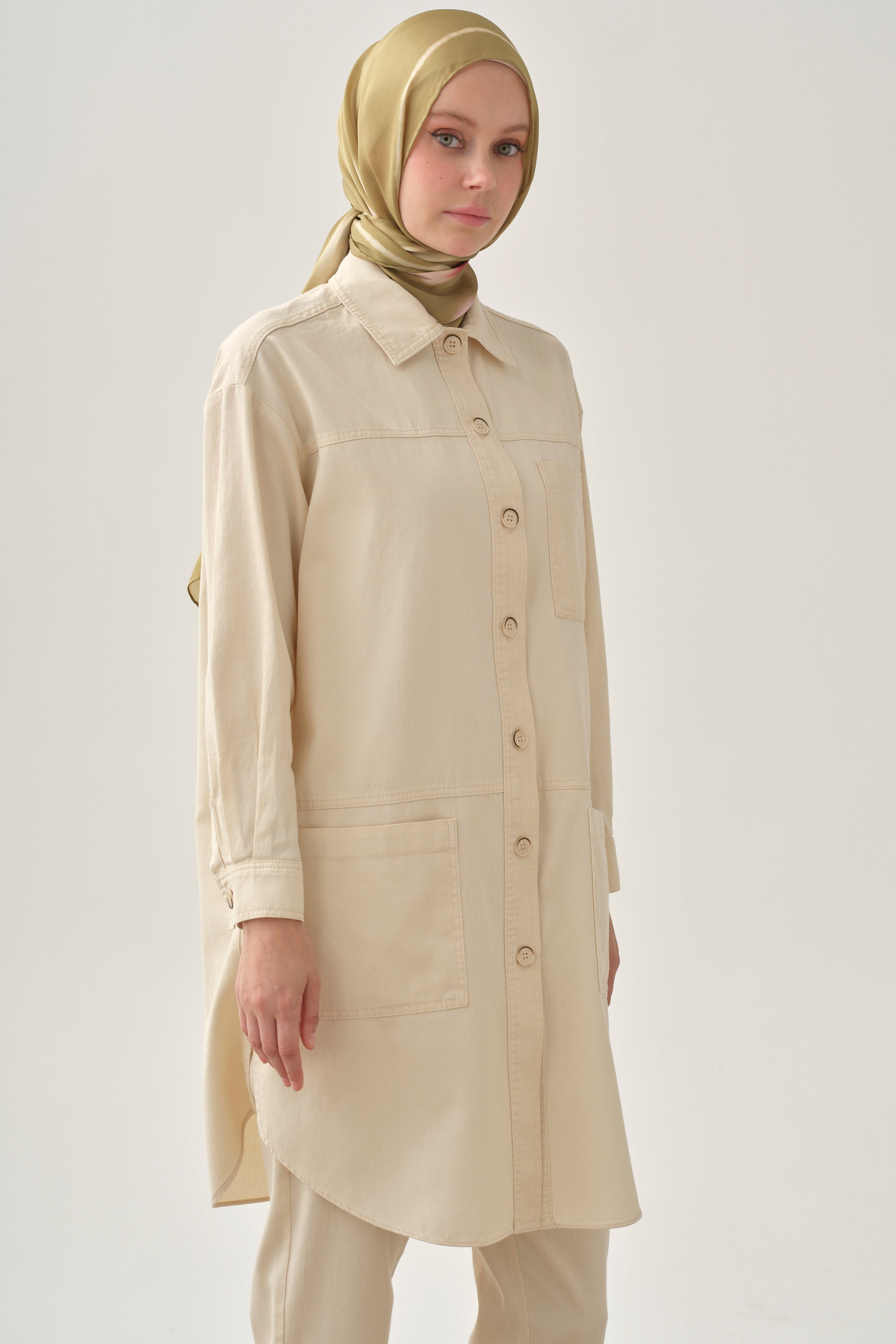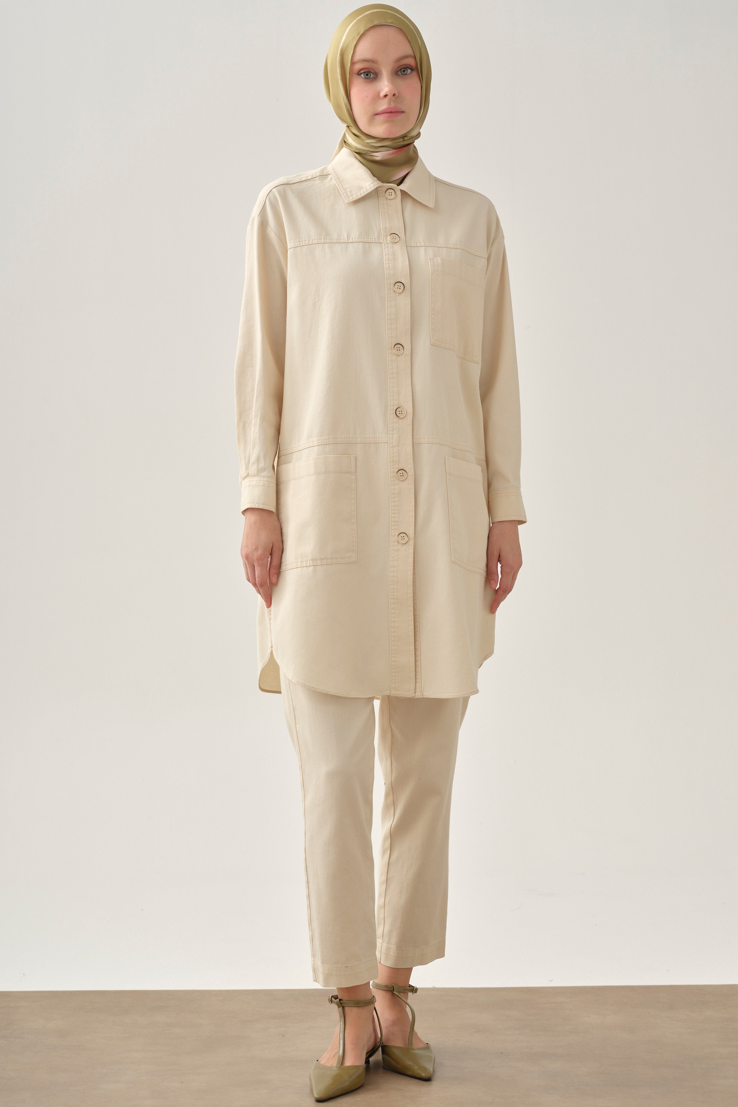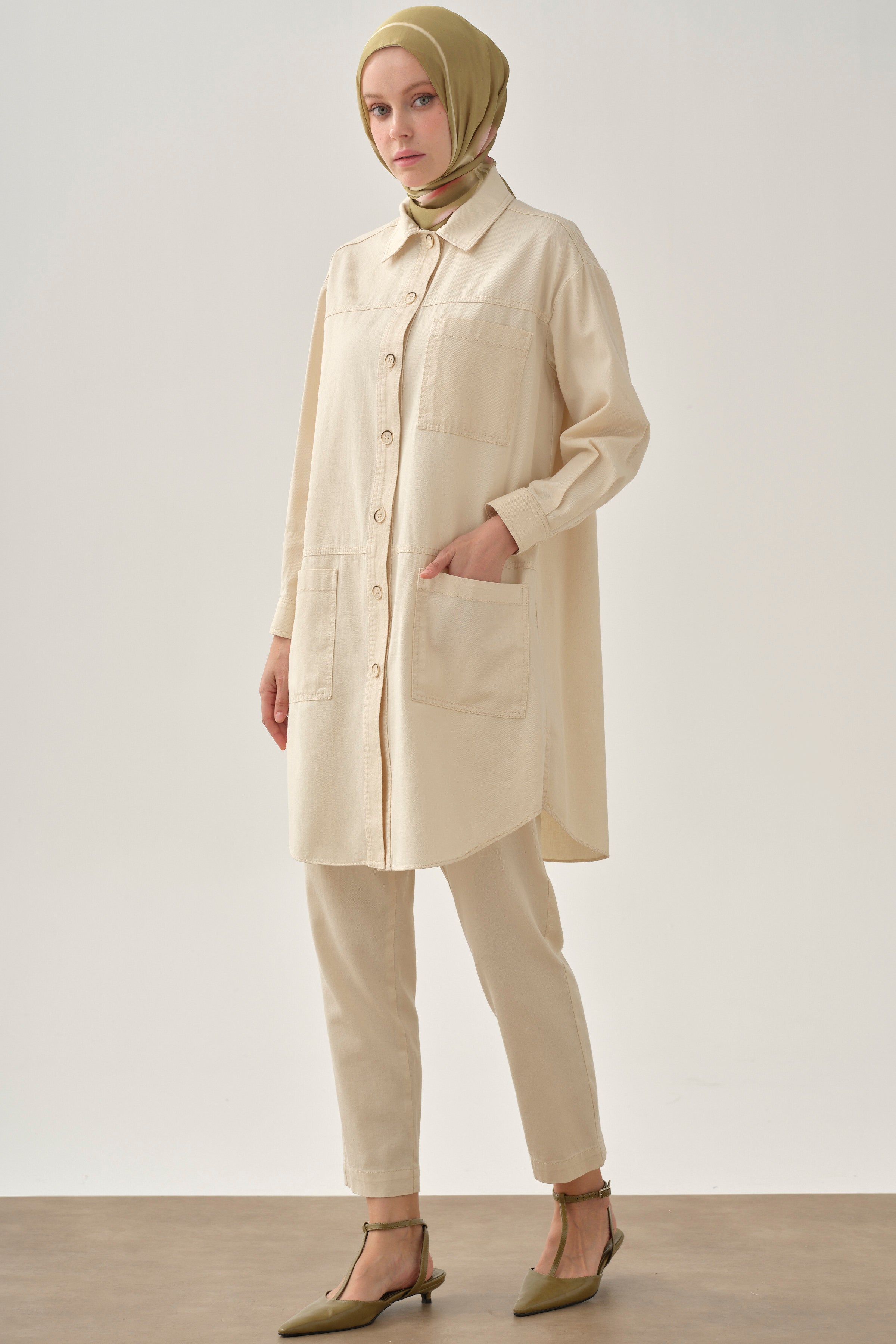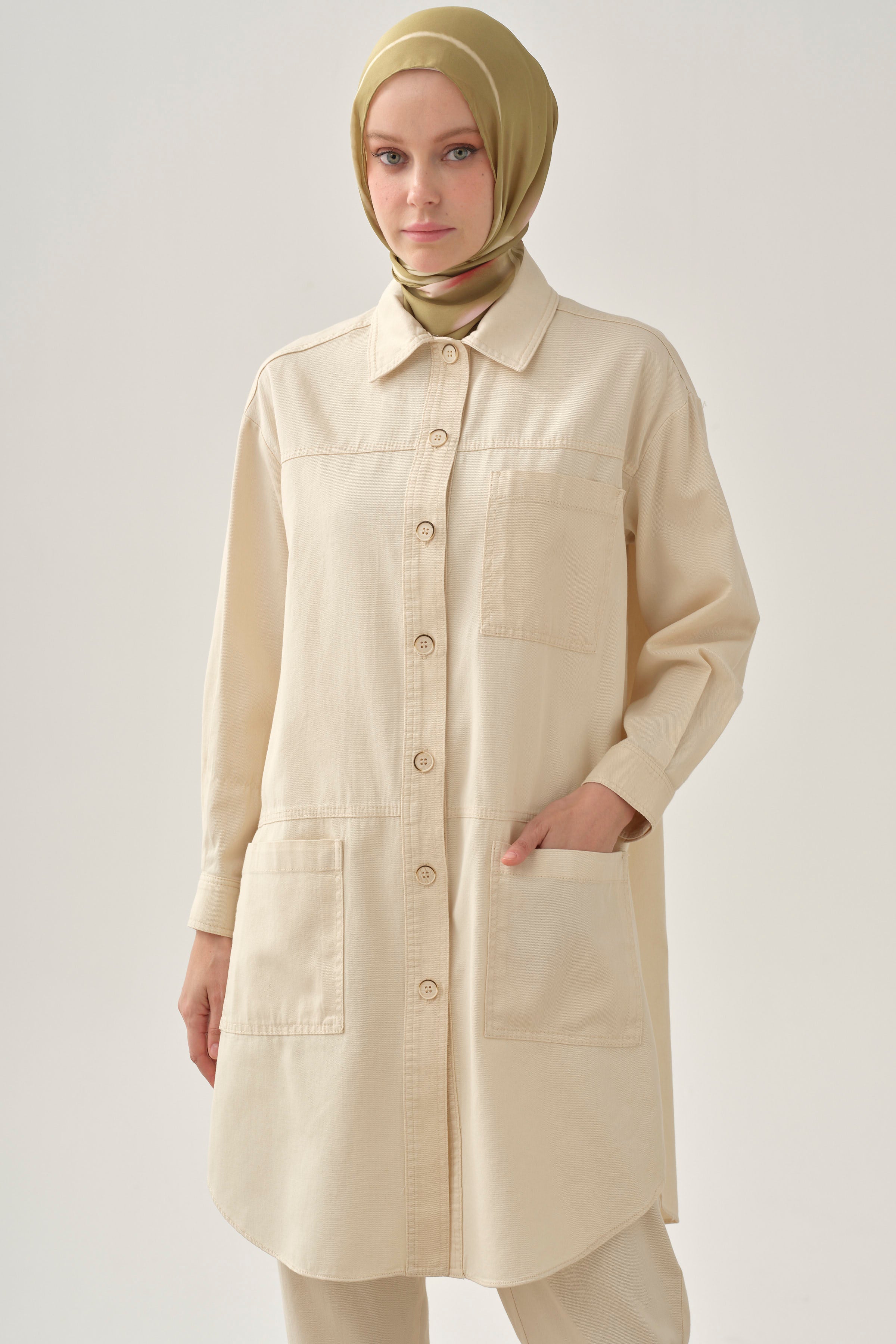 Long jacket with pocket details - Ecru