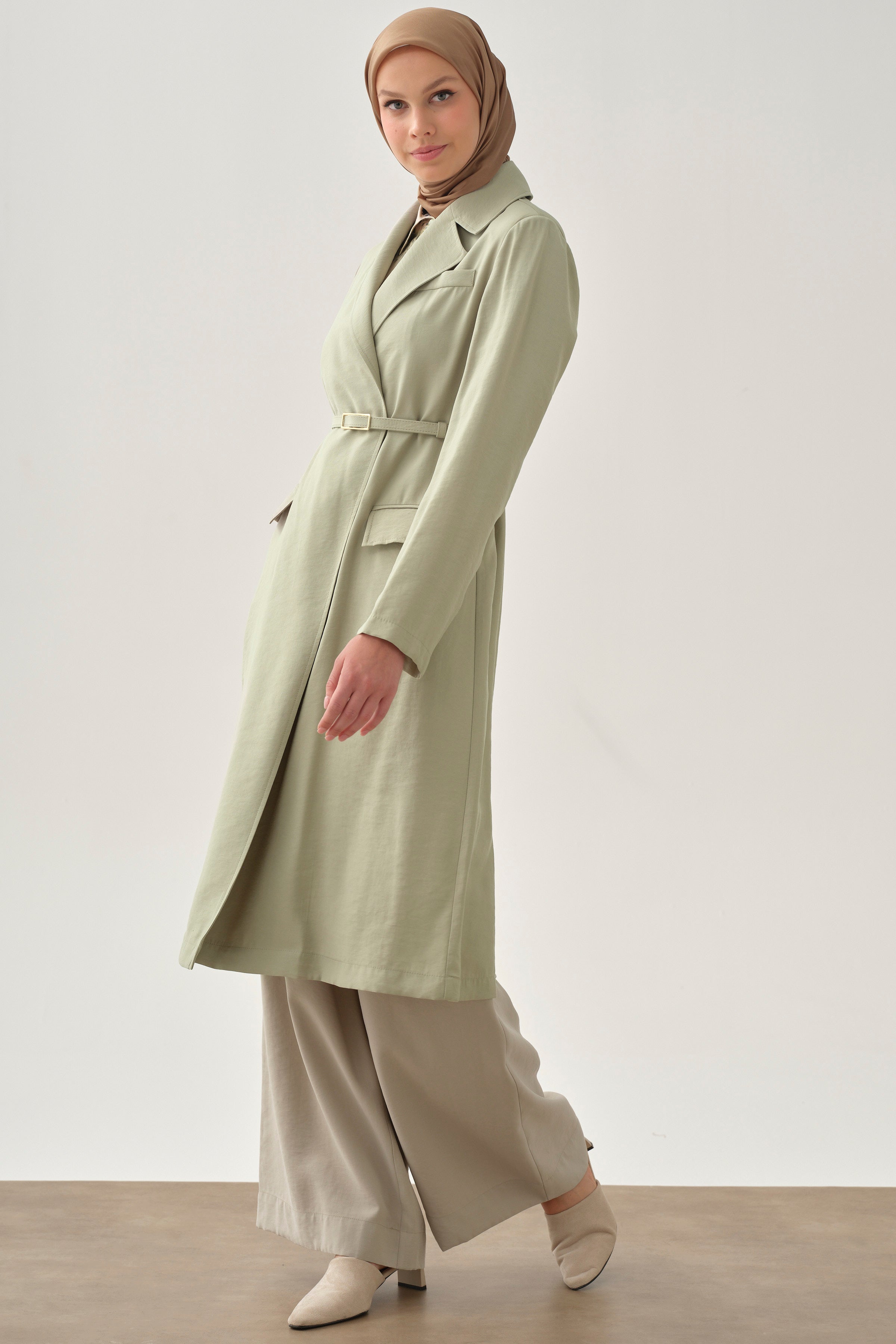 Long belted jacket - Light green