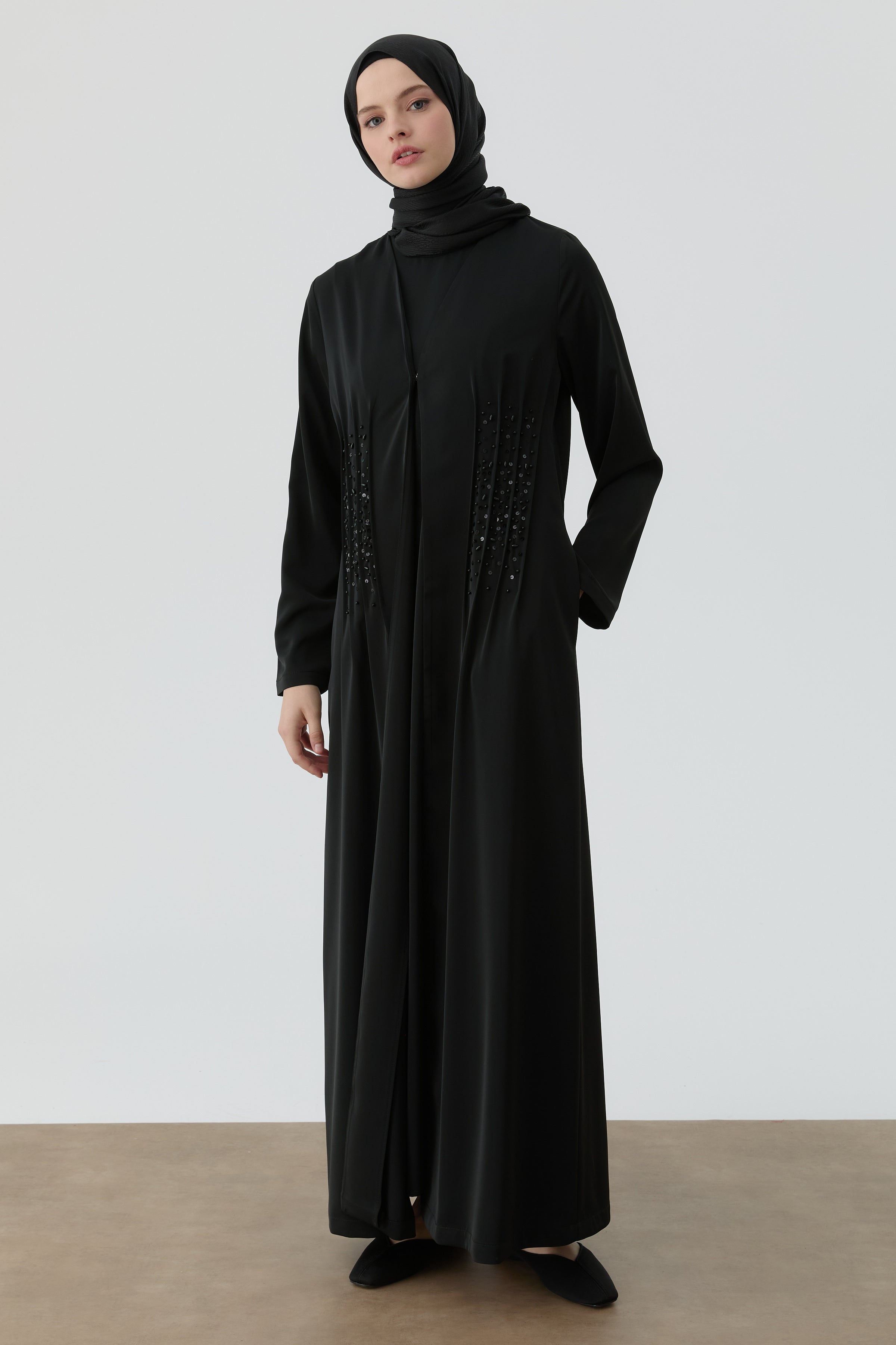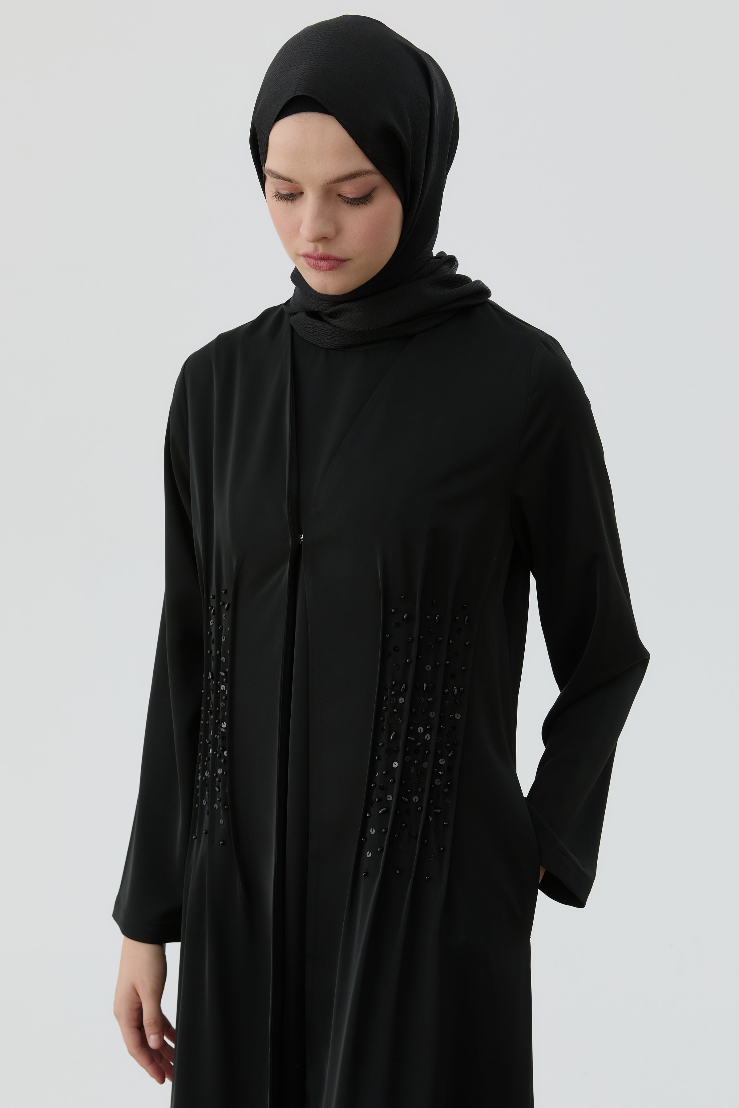 Abaya à détails nervurés à la taille - Noir