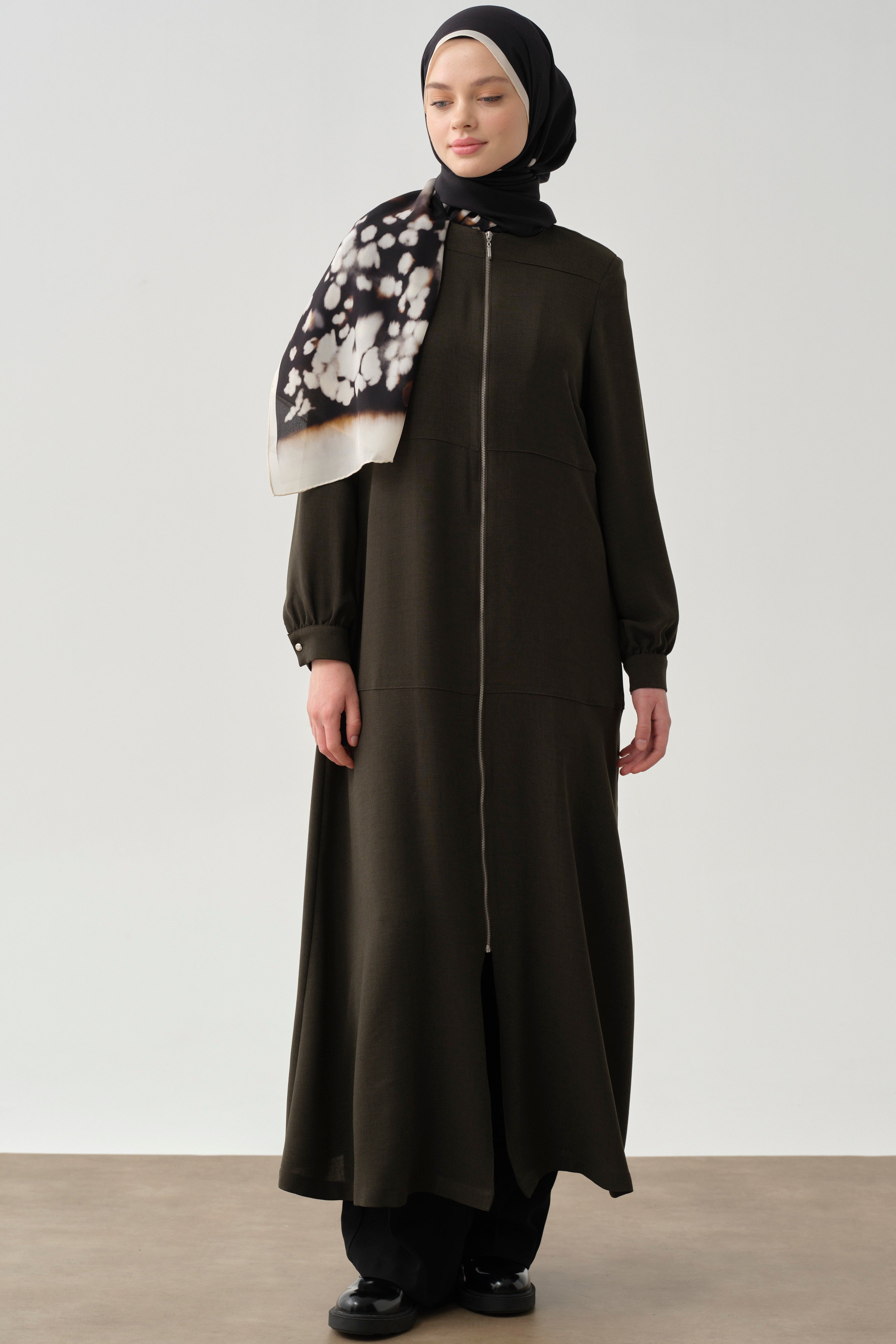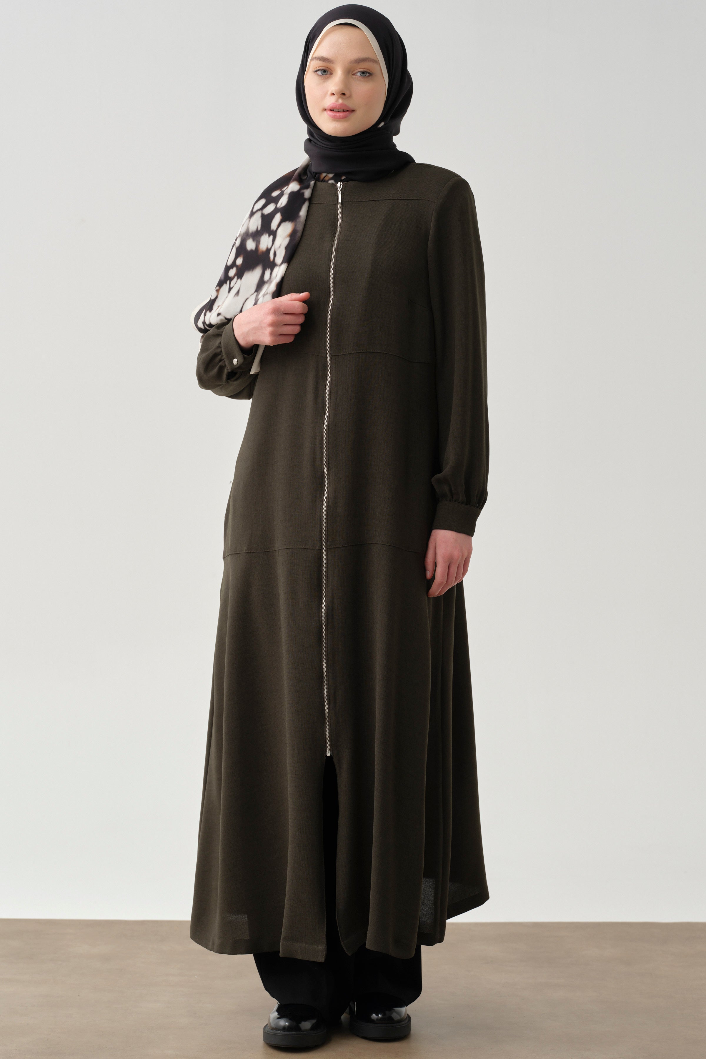 Abaya à fermeture éclair avec détails découpés - Kaki