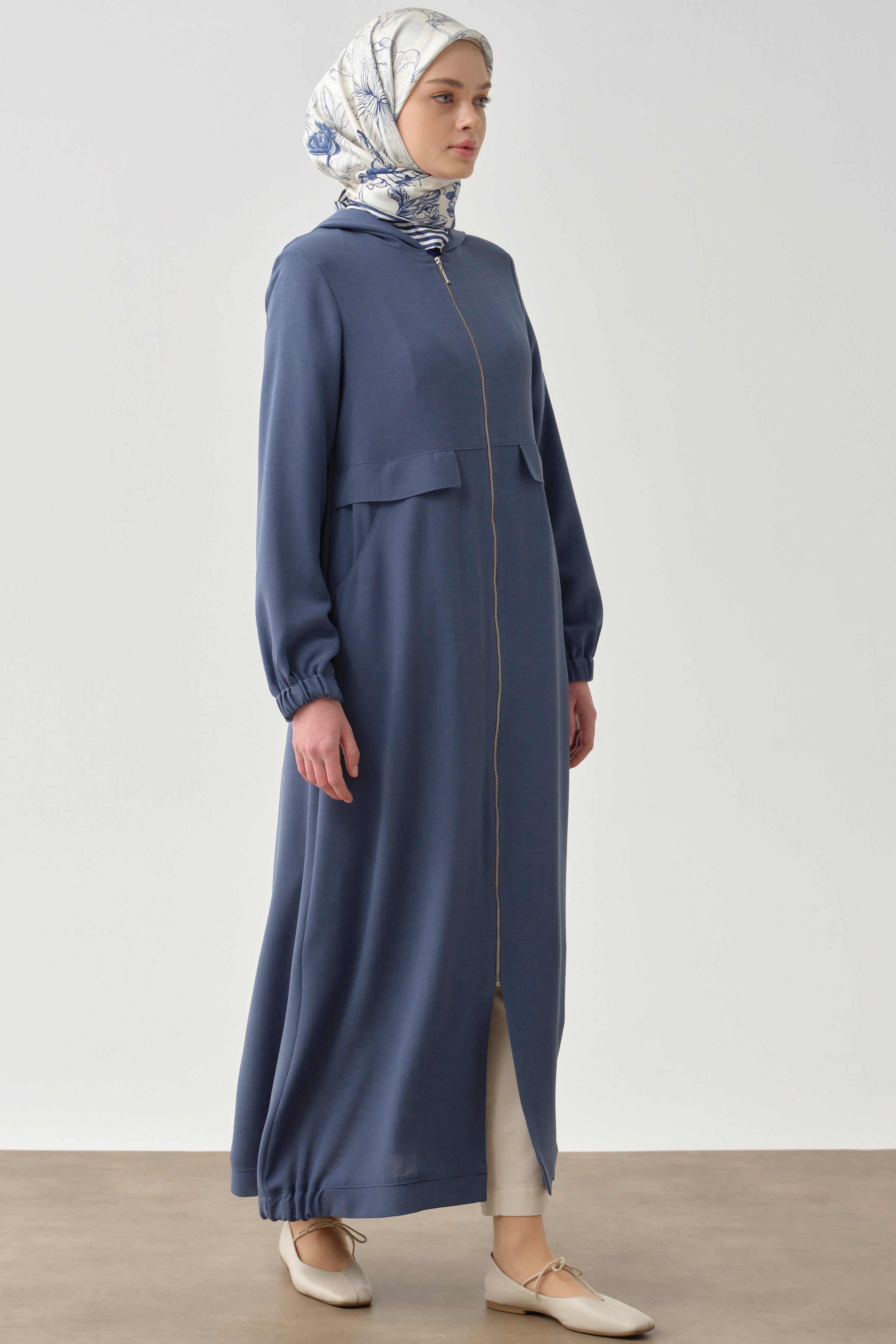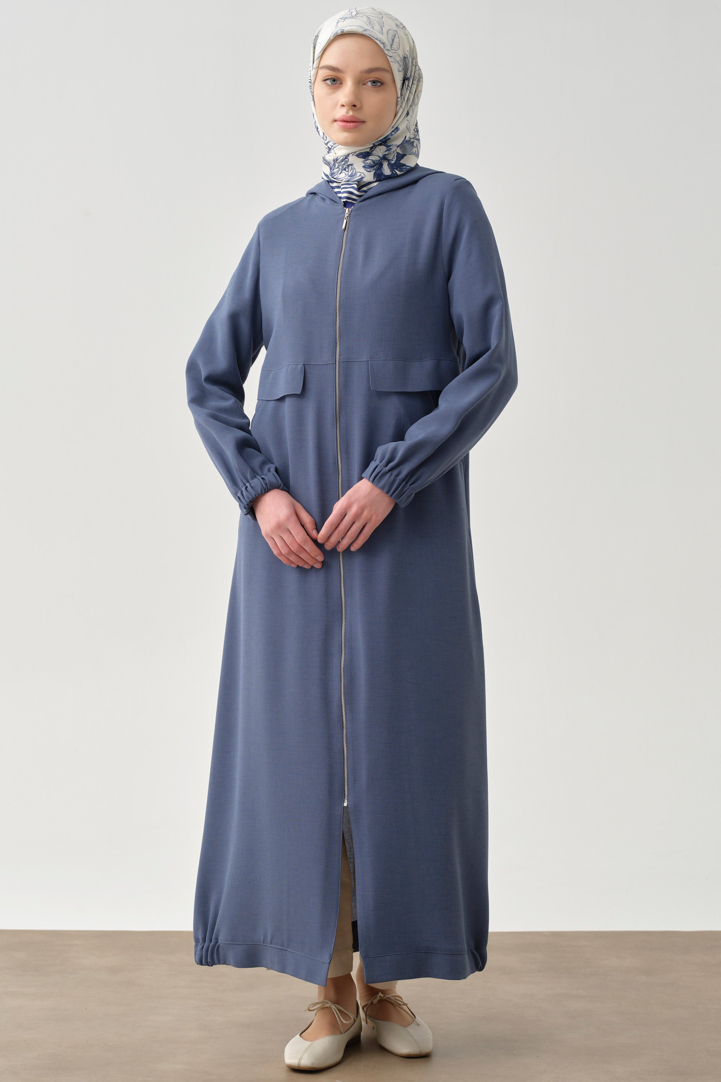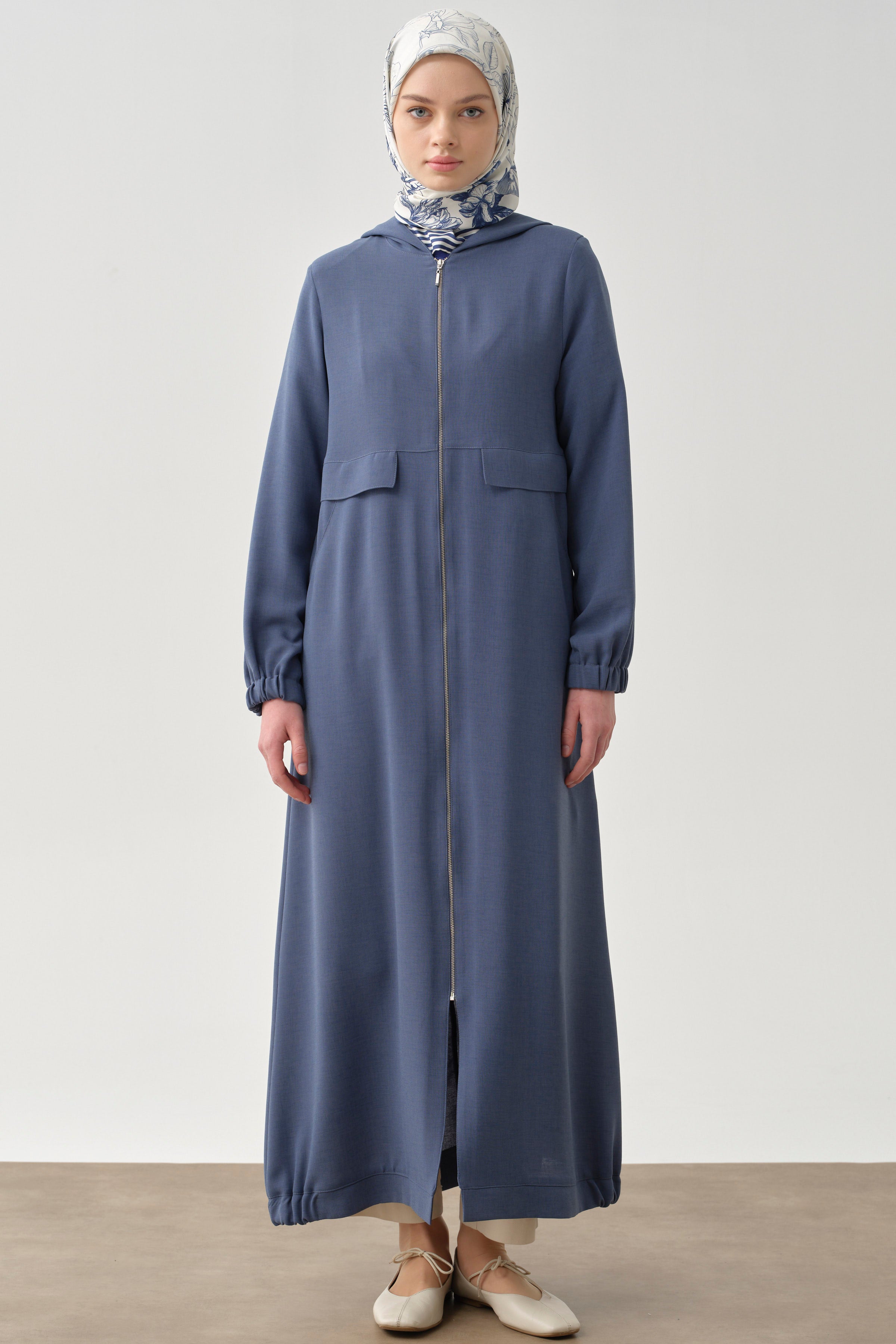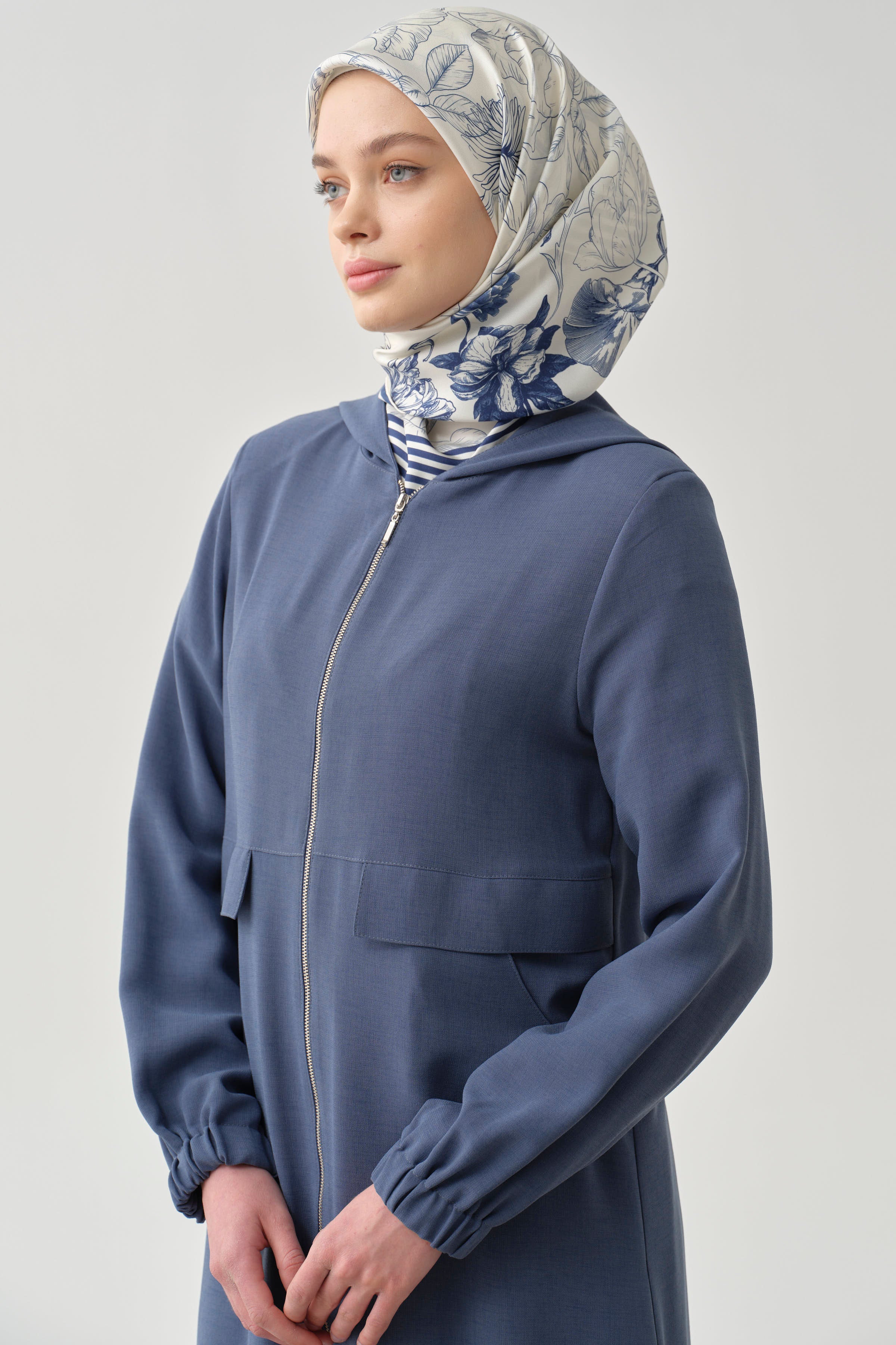 Abaya avec capuche et fermeture éclair - Bleu