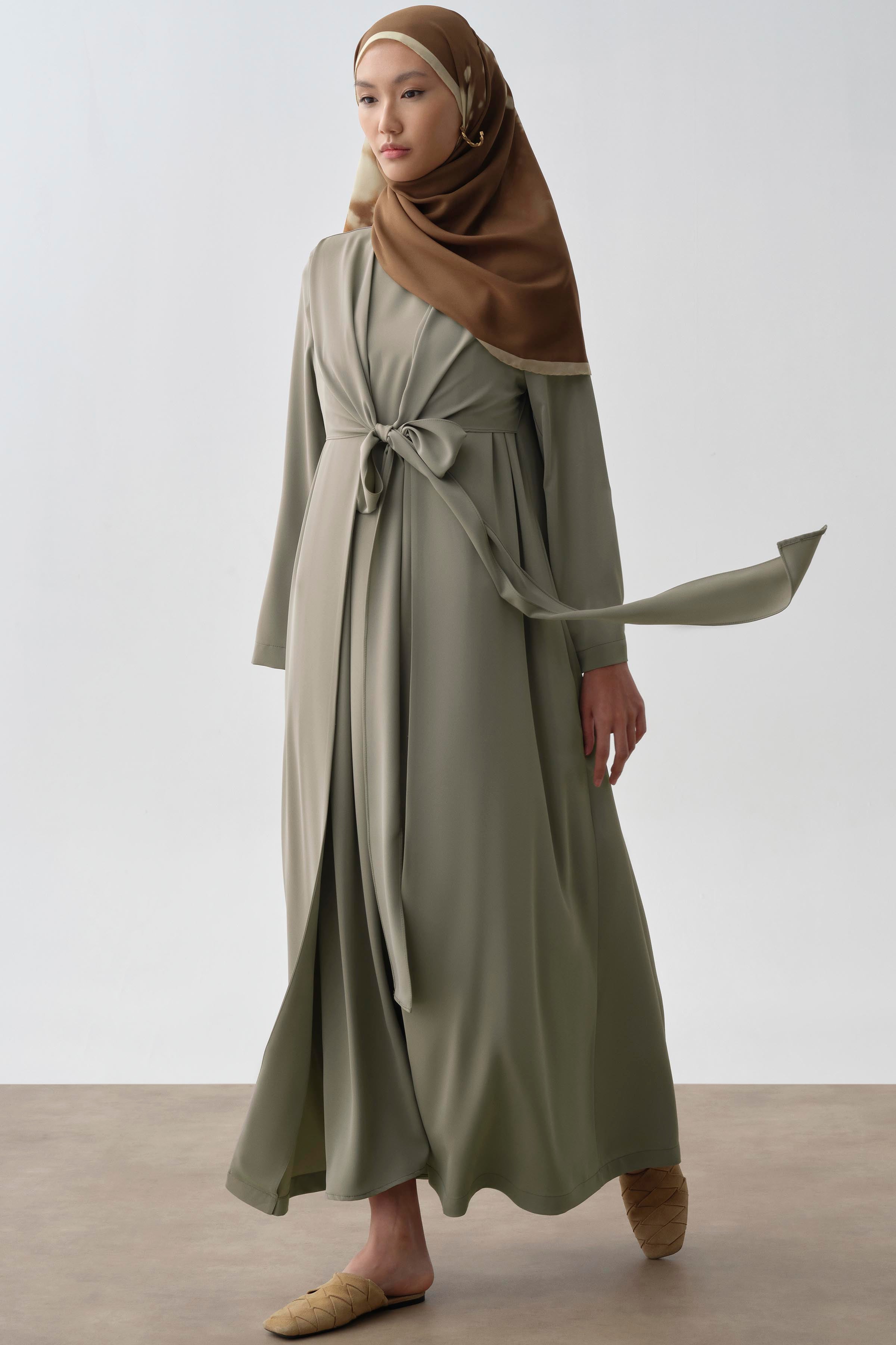 Abaya avec détail de nouage à la taille - Menthe