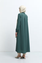 Abaya avec détail en polaire sur les manches et poignets élastiques - Vert
